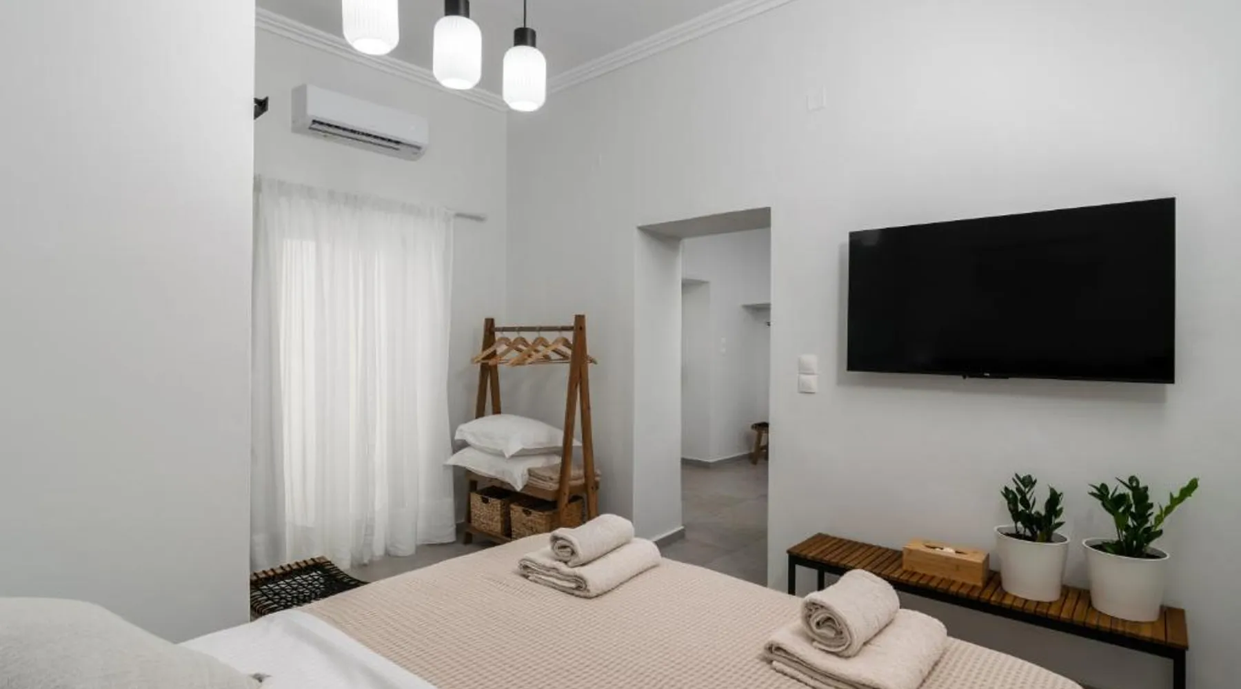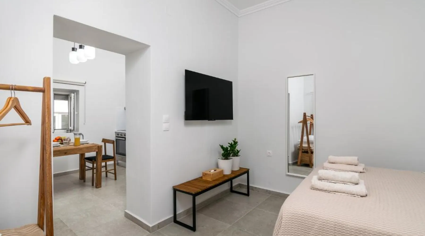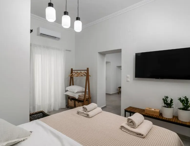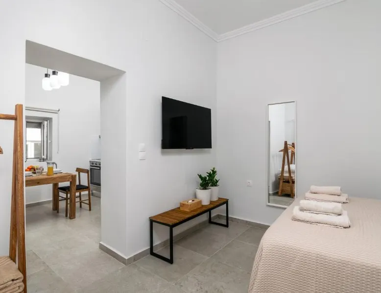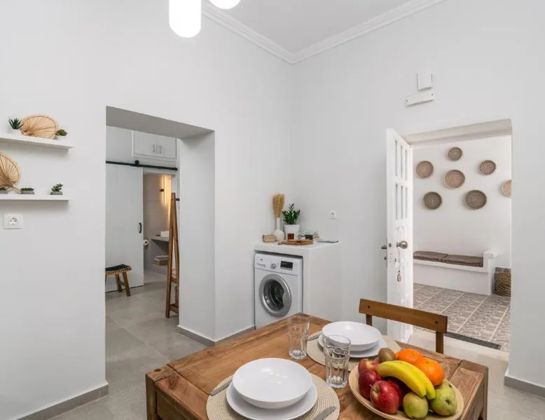 Elegant Accommodations: Melian Roots Studio in Adamas offers a comfortable apartment with one bedroom and a private terrace. The ground-floor unit features a fully equipped kitchen, air-conditioning, and a washing machine. Modern Amenities: Guests enjoy free WiFi, a dining area, and a private entrance. Additional amenities include a walk-in shower, soundproofing, and tiled floors. Convenient Location: Located 3.1 mi from Milos Island National Airport, the apartment is a short walk from Lagada Beach and Adamas Port. Nearby attractions include the Ecclesiastical Museum and Milos Mining Museum. Boasting a private entrance, this air-conditioned apartment includes a kitchen, 1 bedroom and 1 bathroom with a walk-in shower and a hairdryer. In the well-fitted kitchen, guests will find a stovetop, a refrigerator, kitchenware and an oven. There is a washing machine, soundproof walls and a terrace and complimentary wine/champagne is offered for guests. The unit has 1 bed.