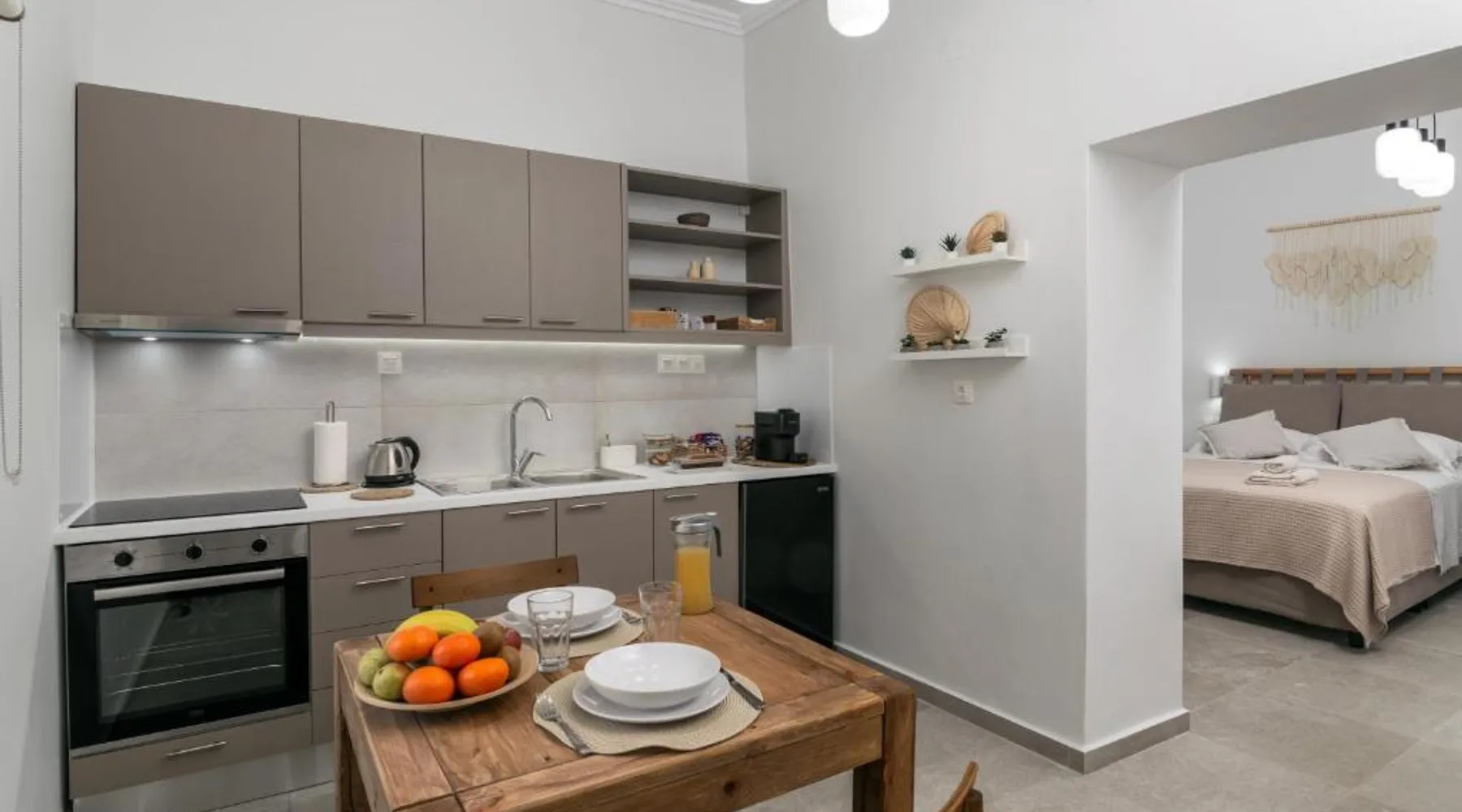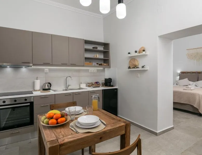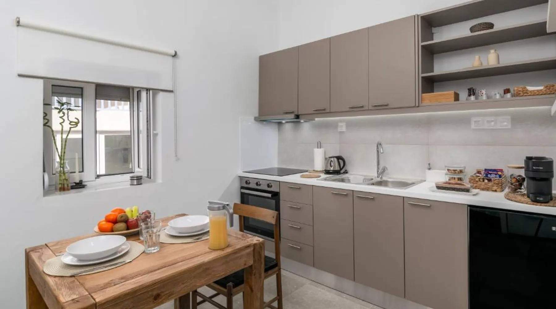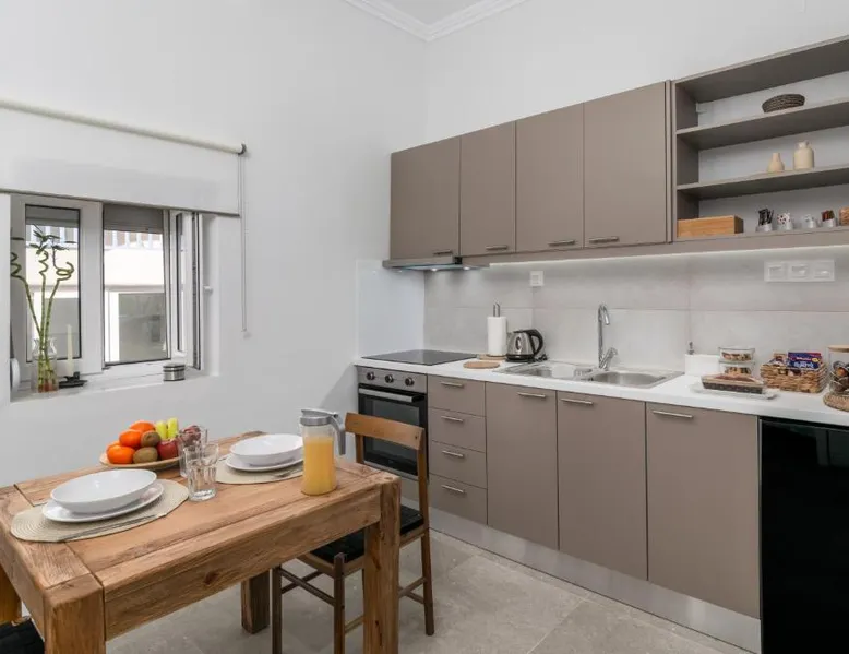 Elegant Accommodations: Melian Roots Studio in Adamas offers a comfortable apartment with one bedroom and a private terrace. The ground-floor unit features a fully equipped kitchen, air-conditioning, and a washing machine. Modern Amenities: Guests enjoy free WiFi, a dining area, and a private entrance. Additional amenities include a walk-in shower, soundproofing, and tiled floors. Convenient Location: Located 3.1 mi from Milos Island National Airport, the apartment is a short walk from Lagada Beach and Adamas Port. Nearby attractions include the Ecclesiastical Museum and Milos Mining Museum. Boasting a private entrance, this air-conditioned apartment includes a kitchen, 1 bedroom and 1 bathroom with a walk-in shower and a hairdryer. In the well-fitted kitchen, guests will find a stovetop, a refrigerator, kitchenware and an oven. There is a washing machine, soundproof walls and a terrace and complimentary wine/champagne is offered for guests. The unit has 1 bed.
