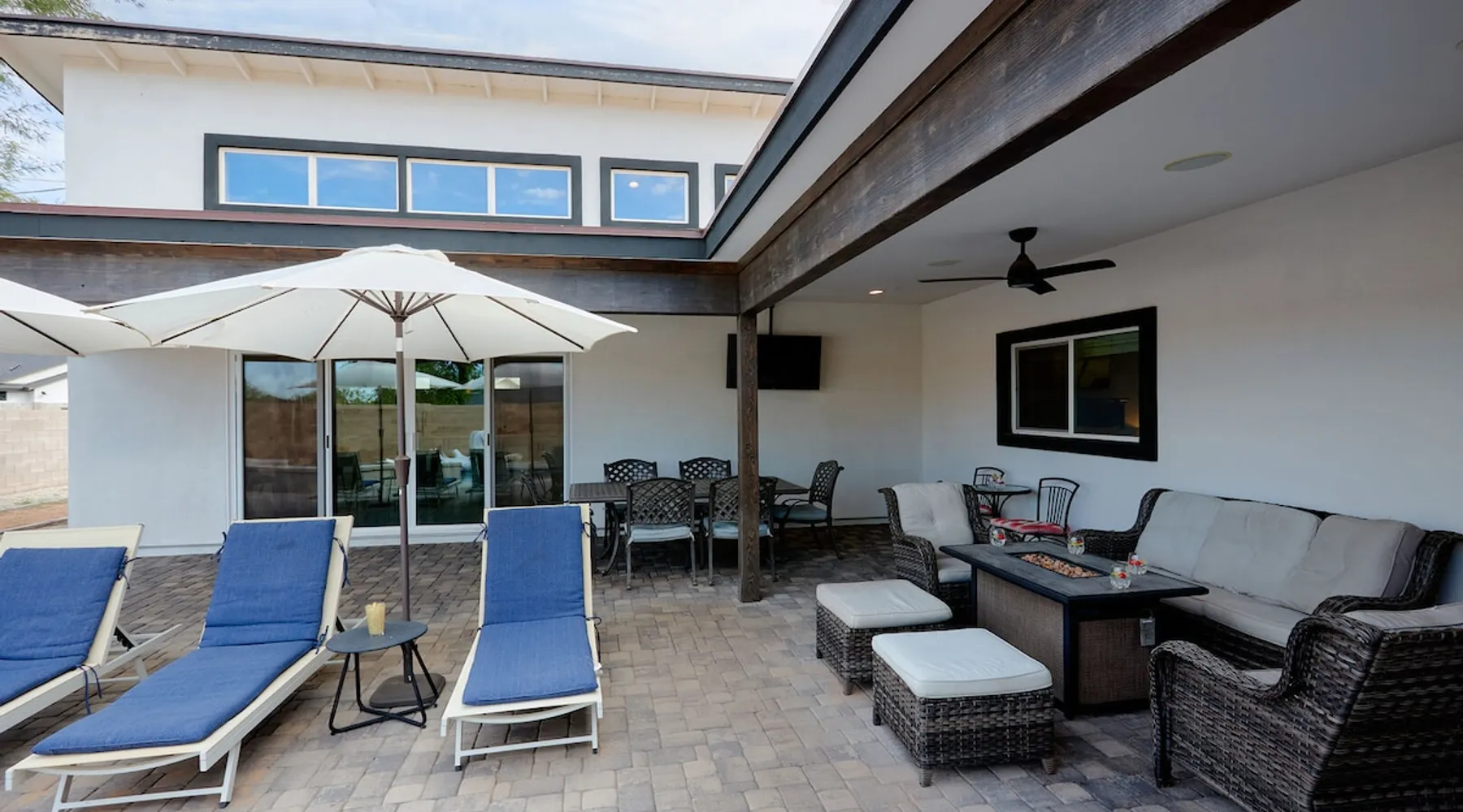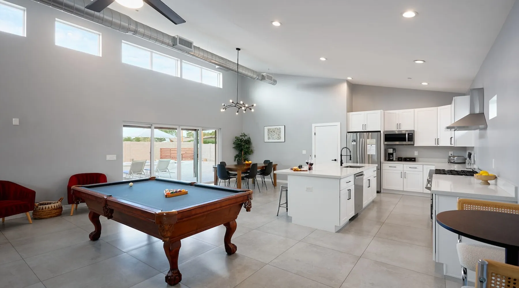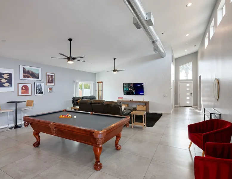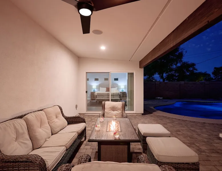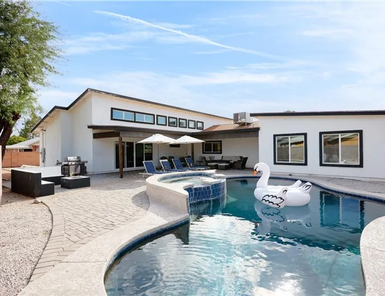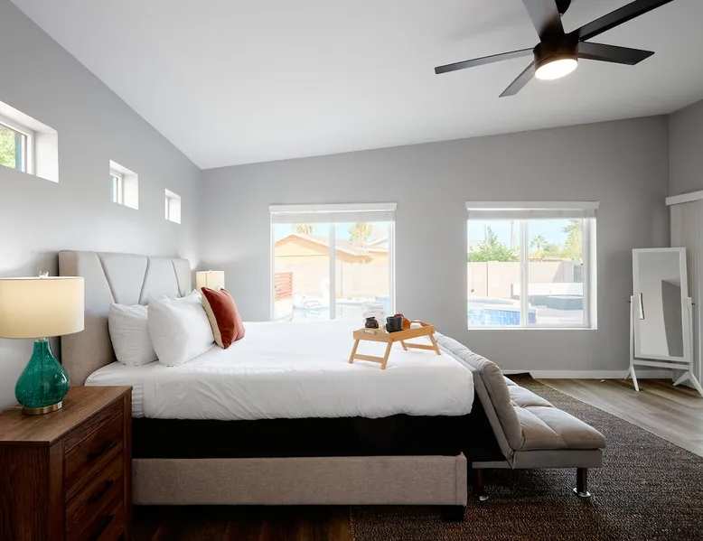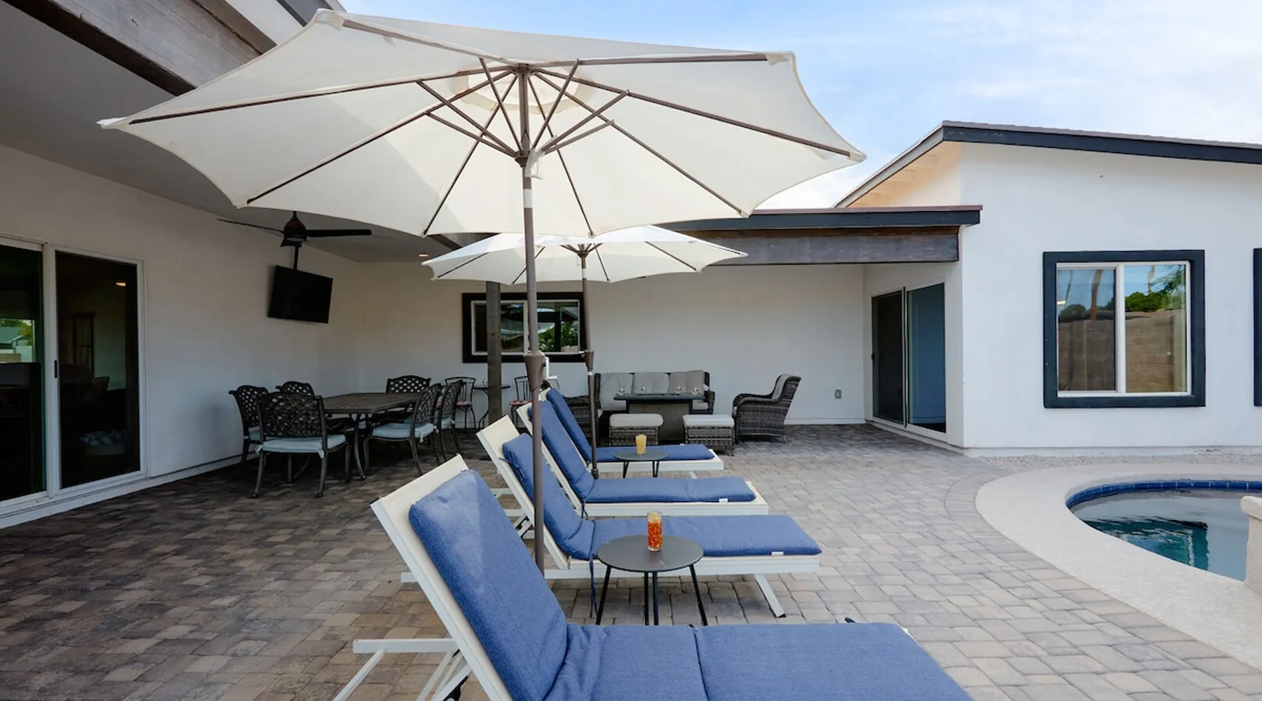 Welcome to Elysium, your Scottsdale escape where fun, relaxation, and style come together. Just minutes from Old Town Scottsdale and Fashion Square, spend your days lounging poolside under Arizona’s sunshine. In the evenings, gather around the fire pit for cozy stories or soak in the hot tub under the stars. Inside, the open-concept living areas are perfect for holiday celebrations, bachelorette parties, or any festive getaway. Your ultimate Arizona retreat begins at Elysium. The space IF YOU ARE INTERESTED IN THIS PROPERTY, PLEASE READ THE LISTING ENTIRELY. By booking, the guest agrees they have read all the details about the property and agree to our terms and conditions. ⭐ Amenities: - 5 mins to Old Town Scottsdale! - Private pool & hot tub – spa heat available for $50 a night - Fully fenced private yard with fire pit, corn hole, horse shoes, pool loungers and more - Covered patio with outdoor dining, BBQ grill, outdoor ceiling fans, and smart TV - Fully equipped kitchen with large island, bar seating & formal dining area - Smart TVs in all bedrooms - Open floor living area connecting dining area, living area, and kitchen - perfect for entertaining! - Indoor pool table - Ceiling fans throughout the whole house 🛋️ Living Areas: - Open concept living space - Cozy furnishings and smart TV - Pool table for game nights - Direct access to the backyard 🍽️ Kitchen & Dining: - Fully equipped kitchen - Stainless steel appliances - Fridge, dishwasher, single oven, 6-burner stove, microwave, & toaster - Drip coffee maker with coffee - Dining table for 6 guests - Bar seating for 5 guests - Open counter space - Kitchen Starter Kit: 2 dishwashing tablet, dish soap, 1 dish sponge, 2 laundry detergent pods, disinfectant wipes, 2 paper towel rolls, 2 trash bags, 1 coffee bag, and 4 coffee filters. 🛌 Bedrooms: - Primary Bedroom: King bed with a smart TV and en-suite bathroom - 2nd Bedroom: 2 Queen beds with a smart TV and en-suite bathroom - 3rd Bedroom: Full bed with a smart TV - 4th Bedroom: Queen bed with a smart TV - 5th Bedroom: Queen bed with a smart TV 🛁 Bathrooms: - Primary Bathroom: Dual vanity with a large stand-in shower - 2nd Bathroom: Single vanity with a stand-in shower 3rd Bathroom: Dual vanity with a shower/tub combo - Bathroom Starter Kits: 1 shampoo, 1 conditioner, 1 body wash, 1 body bar soap, 1 hand bar soap, 1 makeup wipe, 1 liner for trash can. 🚗 Parking: - 2 parking spots in the driveway - Additional street parking is available ❗️Notes to Guests & Important Details: - In compliance with city regulations, one of the outdoor firepits is currently unavailable for use. We apologize for any inconvenience. Interested in Pool Heat? This particular home does offer spa heat, spa heat is $50/night and only available for the full duration of your stay. We require 5 days' notice from check-in if you wish to add this amenity to your stay. This home does not currently have a pool heater. GoodNight Stay manages hundreds of homes throughout the Scottsdale/Phoenix Metropolitan area. If this is a required amenity for your stay, please inquire for alternative options. 🗺️ Explore the Area: 3 mins: The Eleanor 3 mins: Continental Golf Club 3 mins: Uncle Sal's 4 mins: Scottsdale Stadium 5 mins: Old Town Scottsdale 5 mins: Arizona Canal 6 mins: Entertainment District 6 mins: Chaparral Park 7 mins: Scottsdale Fashion Square 7 mins: Sloan Park 8 mins: OdySea Aquarium 8 mins: Butterfly Wonderland 8 mins: Octane Raceway 8 mins: Mavrix Entertainment 8 mins: Topgolf 8 mins: Talking Stick Resort and Casino 8 mins: Talking Stick Golf Club 8 mins: Salt River Fields 8 mins: Tempe Town Lake 8 mins: Arizona State University 10 mins: Arcadia, Arizona 10 mins: Paradise Valley, Arizona 10 mins: Phoenician Golf Club 10 mins: Desert Botanical Garden 11 mins: Phoenix Zoo 11 mins: Silverado Golf Club 12 mins: Phoenix Sky Harbor 13 mins: StarFire Golf Club 13 mins: Barrett Jackson Westworld - Arabian Horse Show 14 mins: Camelback Mountain 15 mins: TPC Scottsdale - Waste Management - Phoenix Open 17 mins: Scottsdale Quarter 17 mins: Kierland Commons 19 mins: Chase Field - Diamondbacks 19 mins: Footprint Center - Phoenix Suns 30 mins: State Farm Stadium - Arizona Cardinals Add Ons: - Air Mattresses ($50 - 1 per reservation) - GoodNight Stay is partnered with the best baby equipment rental service for additional equipment! Please inquire if you'd like to take advantage of this amenity using our special link. Please note: This is an add-on and not included in your reservation. Additional House Rules: - Booking guests must be at least 25 years old. - Same-day move-ins shall not be honored after 10 am Arizona Time. - All guests with a confirmed criminal record shall be declined and asked to cancel the booking at their own expense. - The guest agrees to provide identity authentication via a third-party platform operating for GoodNight Stay. They will authenticate the name, address, phone number, and photo ID verification. If this is not provided within 48 hours of booking, GoodNight Stay has the right to cancel the booking without penalty. - Maximum of 2 pets under 35lbs each, $100 fee per pet required. - Unfortunately, additional items cannot be provided if requested as these are to kick-start your stay. - All listed amenities are to be used at the guest s risk. The homeowner and GoodNight Stay are not liable in any way for the risk, danger, injury, or damages caused to the other party. - Parties, events, or weddings are not allowed. - City of Scottsdale requires no more than 6 non-related adults per home not including children TPT License Number:21187591 Guest access Guests have access to the entire property and outdoor space. Other things to note All our properties include all the essentials and needs to allow for a comfortable and enjoyable stay! The items listed below are provided in every single one of our properties: o Starter Kits for kitchen and bathrooms! - Kitchen set includes: 2 dishw
