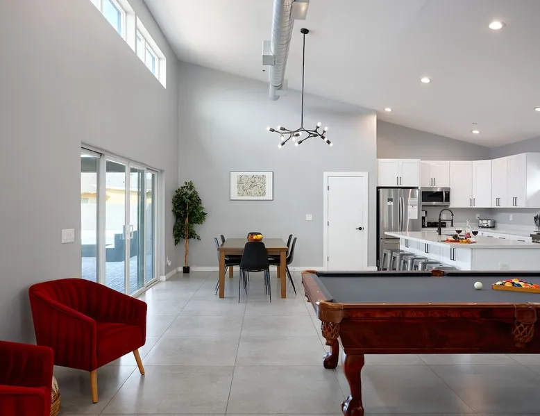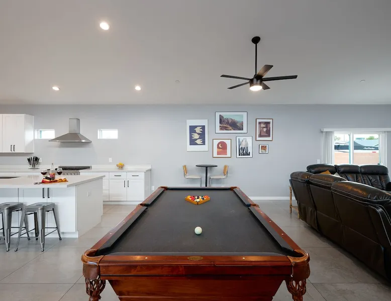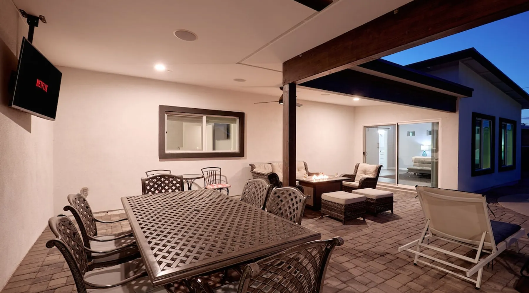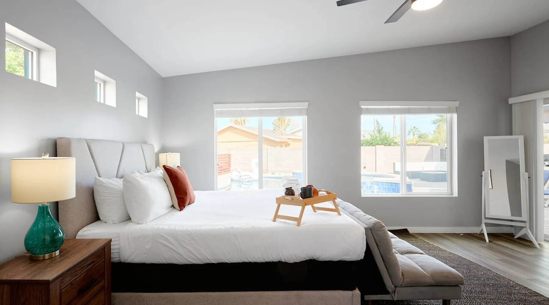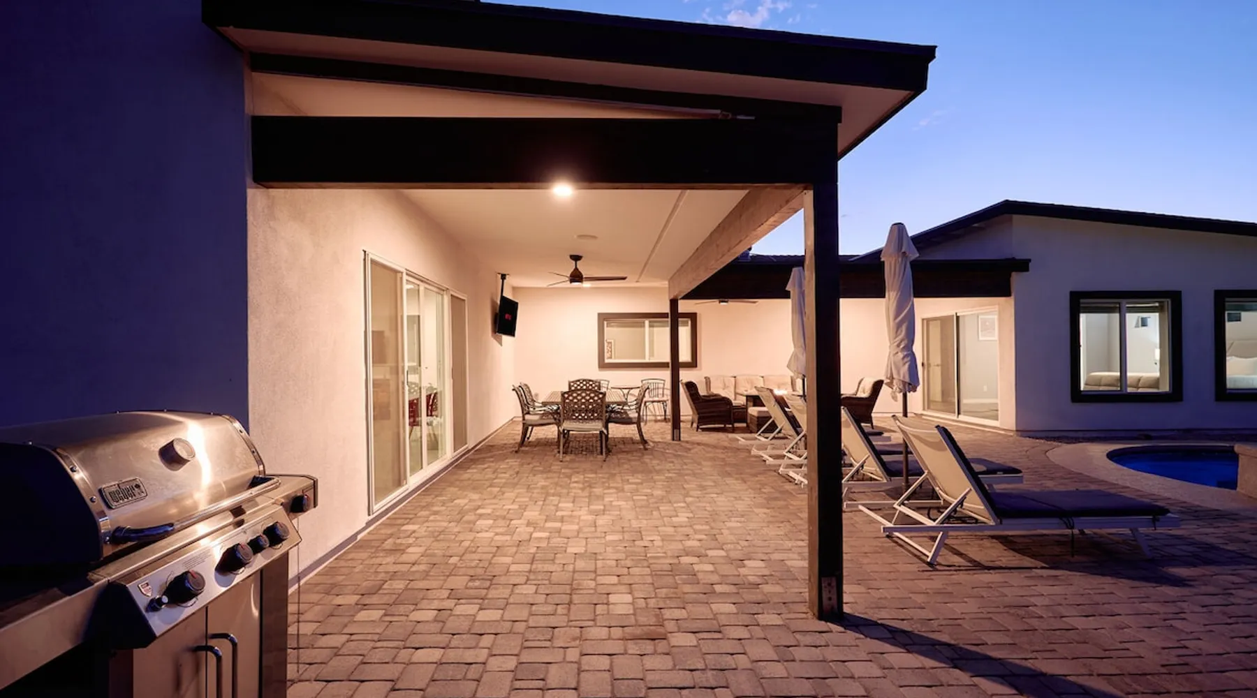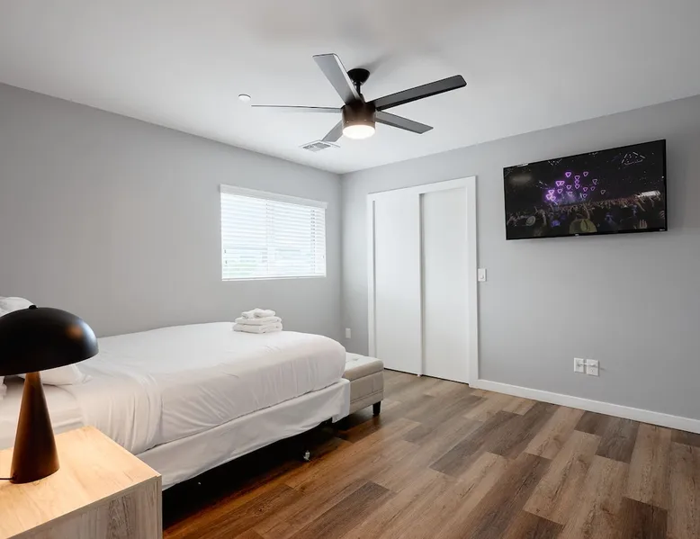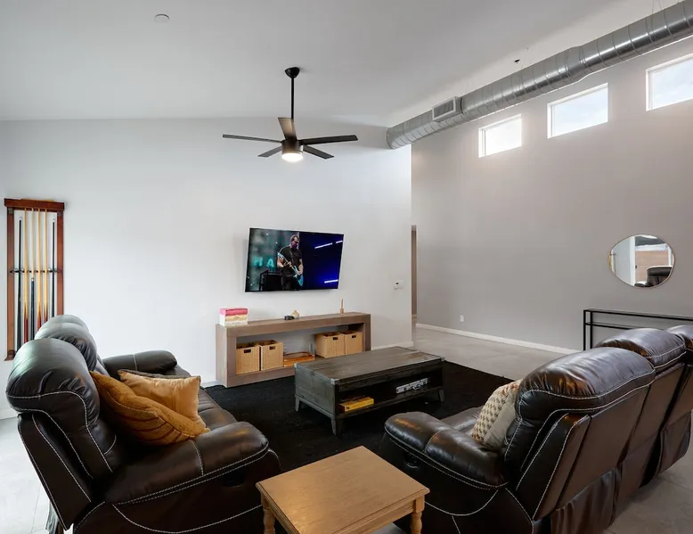 Welcome to Elysium, your Scottsdale escape where fun, relaxation, and style come together. Just minutes from Old Town Scottsdale and Fashion Square, spend your days lounging poolside under Arizona’s sunshine. In the evenings, gather around the fire pit for cozy stories or soak in the hot tub under the stars. Inside, the open-concept living areas are perfect for holiday celebrations, bachelorette parties, or any festive getaway. Your ultimate Arizona retreat begins at Elysium. The space IF YOU ARE INTERESTED IN THIS PROPERTY, PLEASE READ THE LISTING ENTIRELY. By booking, the guest agrees they have read all the details about the property and agree to our terms and conditions. ⭐ Amenities: - 5 mins to Old Town Scottsdale! - Private pool & hot tub – spa heat available for $50 a night - Fully fenced private yard with fire pit, corn hole, horse shoes, pool loungers and more - Covered patio with outdoor dining, BBQ grill, outdoor ceiling fans, and smart TV - Fully equipped kitchen with large island, bar seating & formal dining area - Smart TVs in all bedrooms - Open floor living area connecting dining area, living area, and kitchen - perfect for entertaining! - Indoor pool table - Ceiling fans throughout the whole house 🛋️ Living Areas: - Open concept living space - Cozy furnishings and smart TV - Pool table for game nights - Direct access to the backyard 🍽️ Kitchen & Dining: - Fully equipped kitchen - Stainless steel appliances - Fridge, dishwasher, single oven, 6-burner stove, microwave, & toaster - Drip coffee maker with coffee - Dining table for 6 guests - Bar seating for 5 guests - Open counter space - Kitchen Starter Kit: 2 dishwashing tablet, dish soap, 1 dish sponge, 2 laundry detergent pods, disinfectant wipes, 2 paper towel rolls, 2 trash bags, 1 coffee bag, and 4 coffee filters. 🛌 Bedrooms: - Primary Bedroom: King bed with a smart TV and en-suite bathroom - 2nd Bedroom: 2 Queen beds with a smart TV and en-suite bathroom - 3rd Bedroom: Full bed with a smart TV - 4th Bedroom: Queen bed with a smart TV - 5th Bedroom: Queen bed with a smart TV 🛁 Bathrooms: - Primary Bathroom: Dual vanity with a large stand-in shower - 2nd Bathroom: Single vanity with a stand-in shower 3rd Bathroom: Dual vanity with a shower/tub combo - Bathroom Starter Kits: 1 shampoo, 1 conditioner, 1 body wash, 1 body bar soap, 1 hand bar soap, 1 makeup wipe, 1 liner for trash can. 🚗 Parking: - 2 parking spots in the driveway - Additional street parking is available ❗️Notes to Guests & Important Details: - In compliance with city regulations, one of the outdoor firepits is currently unavailable for use. We apologize for any inconvenience. Interested in Pool Heat? This particular home does offer spa heat, spa heat is $50/night and only available for the full duration of your stay. We require 5 days' notice from check-in if you wish to add this amenity to your stay. This home does not currently have a pool heater. GoodNight Stay manages hundreds of homes throughout the Scottsdale/Phoenix Metropolitan area. If this is a required amenity for your stay, please inquire for alternative options. 🗺️ Explore the Area: 3 mins: The Eleanor 3 mins: Continental Golf Club 3 mins: Uncle Sal's 4 mins: Scottsdale Stadium 5 mins: Old Town Scottsdale 5 mins: Arizona Canal 6 mins: Entertainment District 6 mins: Chaparral Park 7 mins: Scottsdale Fashion Square 7 mins: Sloan Park 8 mins: OdySea Aquarium 8 mins: Butterfly Wonderland 8 mins: Octane Raceway 8 mins: Mavrix Entertainment 8 mins: Topgolf 8 mins: Talking Stick Resort and Casino 8 mins: Talking Stick Golf Club 8 mins: Salt River Fields 8 mins: Tempe Town Lake 8 mins: Arizona State University 10 mins: Arcadia, Arizona 10 mins: Paradise Valley, Arizona 10 mins: Phoenician Golf Club 10 mins: Desert Botanical Garden 11 mins: Phoenix Zoo 11 mins: Silverado Golf Club 12 mins: Phoenix Sky Harbor 13 mins: StarFire Golf Club 13 mins: Barrett Jackson Westworld - Arabian Horse Show 14 mins: Camelback Mountain 15 mins: TPC Scottsdale - Waste Management - Phoenix Open 17 mins: Scottsdale Quarter 17 mins: Kierland Commons 19 mins: Chase Field - Diamondbacks 19 mins: Footprint Center - Phoenix Suns 30 mins: State Farm Stadium - Arizona Cardinals Add Ons: - Air Mattresses ($50 - 1 per reservation) - GoodNight Stay is partnered with the best baby equipment rental service for additional equipment! Please inquire if you'd like to take advantage of this amenity using our special link. Please note: This is an add-on and not included in your reservation. Additional House Rules: - Booking guests must be at least 25 years old. - Same-day move-ins shall not be honored after 10 am Arizona Time. - All guests with a confirmed criminal record shall be declined and asked to cancel the booking at their own expense. - The guest agrees to provide identity authentication via a third-party platform operating for GoodNight Stay. They will authenticate the name, address, phone number, and photo ID verification. If this is not provided within 48 hours of booking, GoodNight Stay has the right to cancel the booking without penalty. - Maximum of 2 pets under 35lbs each, $100 fee per pet required. - Unfortunately, additional items cannot be provided if requested as these are to kick-start your stay. - All listed amenities are to be used at the guest s risk. The homeowner and GoodNight Stay are not liable in any way for the risk, danger, injury, or damages caused to the other party. - Parties, events, or weddings are not allowed. - City of Scottsdale requires no more than 6 non-related adults per home not including children TPT License Number:21187591 Guest access Guests have access to the entire property and outdoor space. Other things to note All our properties include all the essentials and needs to allow for a comfortable and enjoyable stay! The items listed below are provided in every single one of our properties: o Starter Kits for kitchen and bathrooms! - Kitchen set includes: 2 dishw