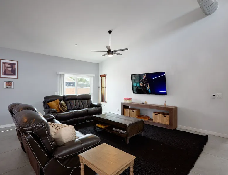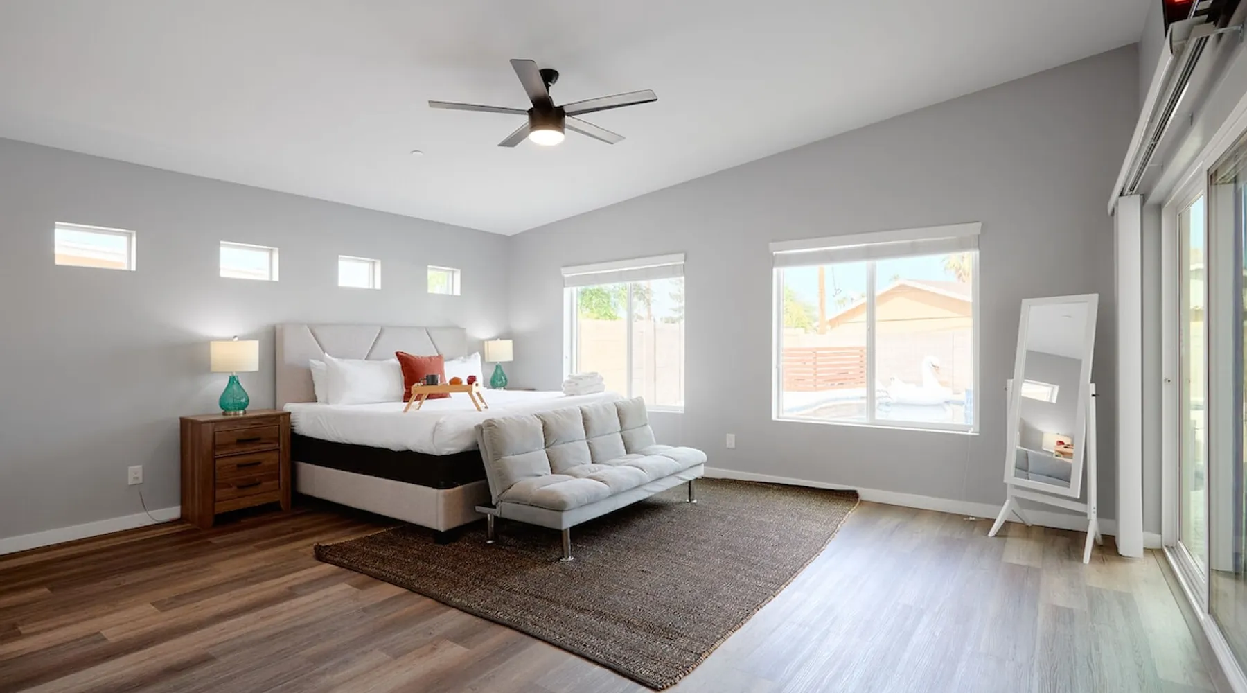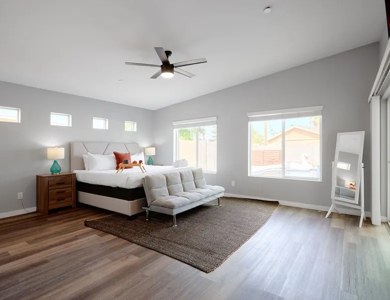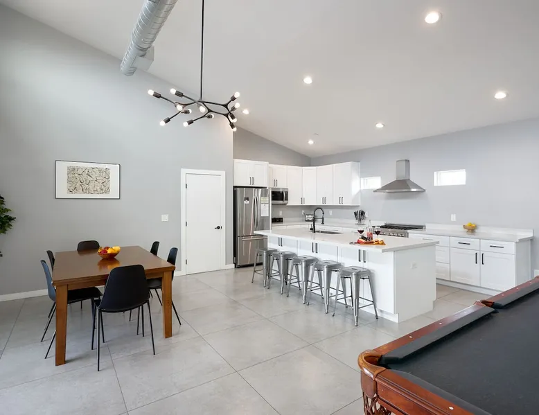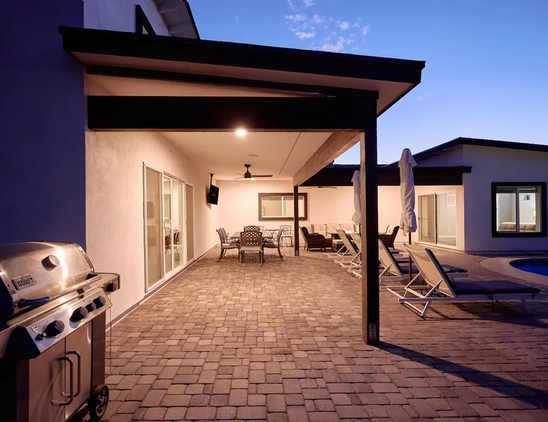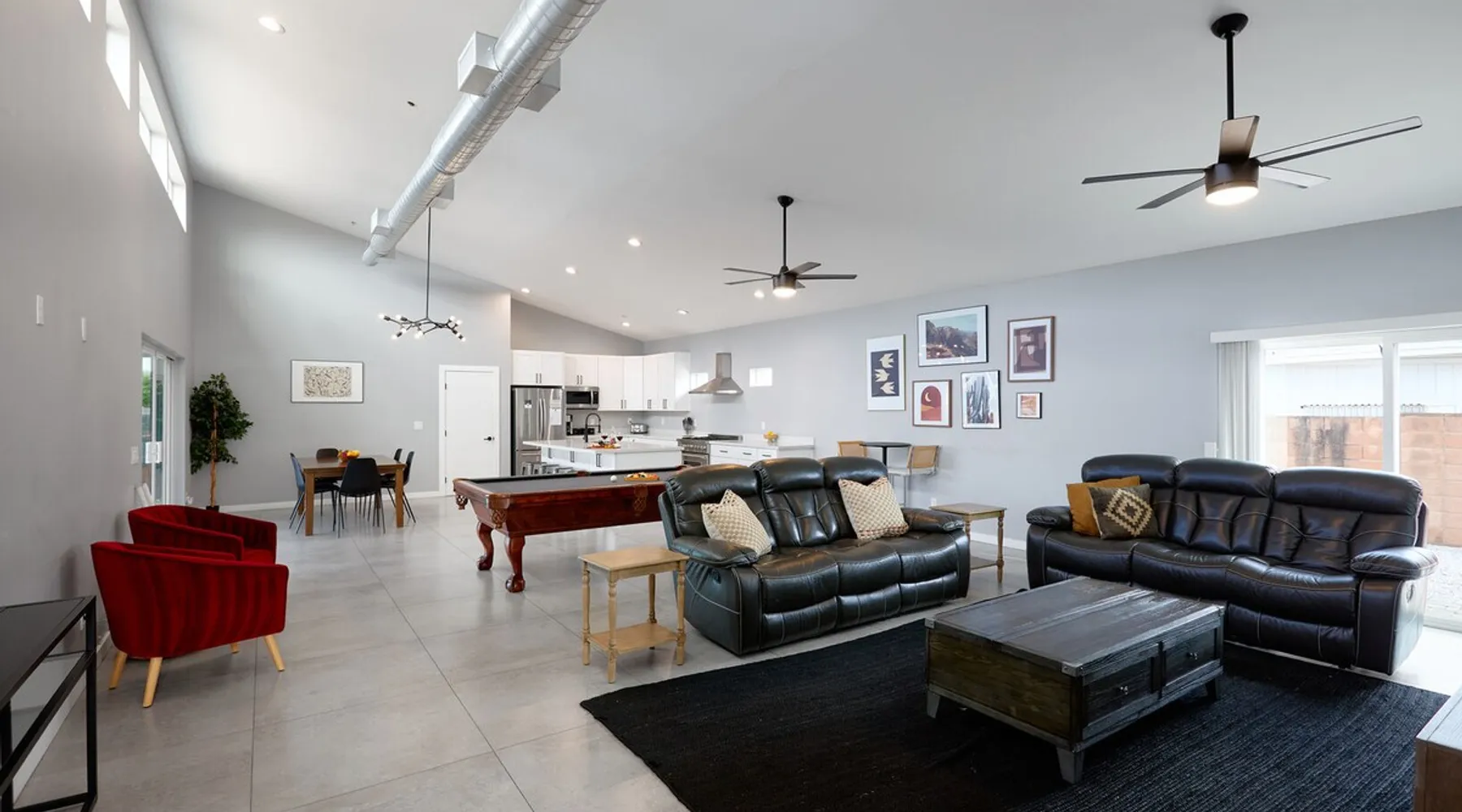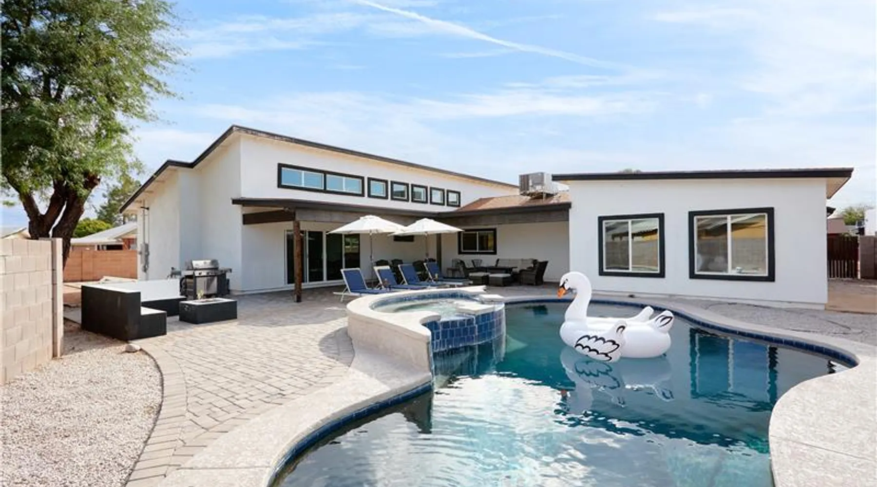 Welcome to Elysium, your Scottsdale escape where fun, relaxation, and style come together. Just minutes from Old Town Scottsdale and Fashion Square, spend your days lounging poolside under Arizona’s sunshine. In the evenings, gather around the fire pit for cozy stories or soak in the hot tub under the stars. Inside, the open-concept living areas are perfect for holiday celebrations, bachelorette parties, or any festive getaway. Your ultimate Arizona retreat begins at Elysium. The space IF YOU ARE INTERESTED IN THIS PROPERTY, PLEASE READ THE LISTING ENTIRELY. By booking, the guest agrees they have read all the details about the property and agree to our terms and conditions. ⭐ Amenities: - 5 mins to Old Town Scottsdale! - Private pool & hot tub – spa heat available for $50 a night - Fully fenced private yard with fire pit, corn hole, horse shoes, pool loungers and more - Covered patio with outdoor dining, BBQ grill, outdoor ceiling fans, and smart TV - Fully equipped kitchen with large island, bar seating & formal dining area - Smart TVs in all bedrooms - Open floor living area connecting dining area, living area, and kitchen - perfect for entertaining! - Indoor pool table - Ceiling fans throughout the whole house 🛋️ Living Areas: - Open concept living space - Cozy furnishings and smart TV - Pool table for game nights - Direct access to the backyard 🍽️ Kitchen & Dining: - Fully equipped kitchen - Stainless steel appliances - Fridge, dishwasher, single oven, 6-burner stove, microwave, & toaster - Drip coffee maker with coffee - Dining table for 6 guests - Bar seating for 5 guests - Open counter space - Kitchen Starter Kit: 2 dishwashing tablet, dish soap, 1 dish sponge, 2 laundry detergent pods, disinfectant wipes, 2 paper towel rolls, 2 trash bags, 1 coffee bag, and 4 coffee filters. 🛌 Bedrooms: - Primary Bedroom: King bed with a smart TV and en-suite bathroom - 2nd Bedroom: 2 Queen beds with a smart TV and en-suite bathroom - 3rd Bedroom: Full bed with a smart TV - 4th Bedroom: Queen bed with a smart TV - 5th Bedroom: Queen bed with a smart TV 🛁 Bathrooms: - Primary Bathroom: Dual vanity with a large stand-in shower - 2nd Bathroom: Single vanity with a stand-in shower 3rd Bathroom: Dual vanity with a shower/tub combo - Bathroom Starter Kits: 1 shampoo, 1 conditioner, 1 body wash, 1 body bar soap, 1 hand bar soap, 1 makeup wipe, 1 liner for trash can. 🚗 Parking: - 2 parking spots in the driveway - Additional street parking is available ❗️Notes to Guests & Important Details: - In compliance with city regulations, one of the outdoor firepits is currently unavailable for use. We apologize for any inconvenience. Interested in Pool Heat? This particular home does offer spa heat, spa heat is $50/night and only available for the full duration of your stay. We require 5 days' notice from check-in if you wish to add this amenity to your stay. This home does not currently have a pool heater. GoodNight Stay manages hundreds of homes throughout the Scottsdale/Phoenix Metropolitan area. If this is a required amenity for your stay, please inquire for alternative options. 🗺️ Explore the Area: 3 mins: The Eleanor 3 mins: Continental Golf Club 3 mins: Uncle Sal's 4 mins: Scottsdale Stadium 5 mins: Old Town Scottsdale 5 mins: Arizona Canal 6 mins: Entertainment District 6 mins: Chaparral Park 7 mins: Scottsdale Fashion Square 7 mins: Sloan Park 8 mins: OdySea Aquarium 8 mins: Butterfly Wonderland 8 mins: Octane Raceway 8 mins: Mavrix Entertainment 8 mins: Topgolf 8 mins: Talking Stick Resort and Casino 8 mins: Talking Stick Golf Club 8 mins: Salt River Fields 8 mins: Tempe Town Lake 8 mins: Arizona State University 10 mins: Arcadia, Arizona 10 mins: Paradise Valley, Arizona 10 mins: Phoenician Golf Club 10 mins: Desert Botanical Garden 11 mins: Phoenix Zoo 11 mins: Silverado Golf Club 12 mins: Phoenix Sky Harbor 13 mins: StarFire Golf Club 13 mins: Barrett Jackson Westworld - Arabian Horse Show 14 mins: Camelback Mountain 15 mins: TPC Scottsdale - Waste Management - Phoenix Open 17 mins: Scottsdale Quarter 17 mins: Kierland Commons 19 mins: Chase Field - Diamondbacks 19 mins: Footprint Center - Phoenix Suns 30 mins: State Farm Stadium - Arizona Cardinals Add Ons: - Air Mattresses ($50 - 1 per reservation) - GoodNight Stay is partnered with the best baby equipment rental service for additional equipment! Please inquire if you'd like to take advantage of this amenity using our special link. Please note: This is an add-on and not included in your reservation. Additional House Rules: - Booking guests must be at least 25 years old. - Same-day move-ins shall not be honored after 10 am Arizona Time. - All guests with a confirmed criminal record shall be declined and asked to cancel the booking at their own expense. - The guest agrees to provide identity authentication via a third-party platform operating for GoodNight Stay. They will authenticate the name, address, phone number, and photo ID verification. If this is not provided within 48 hours of booking, GoodNight Stay has the right to cancel the booking without penalty. - Maximum of 2 pets under 35lbs each, $100 fee per pet required. - Unfortunately, additional items cannot be provided if requested as these are to kick-start your stay. - All listed amenities are to be used at the guest s risk. The homeowner and GoodNight Stay are not liable in any way for the risk, danger, injury, or damages caused to the other party. - Parties, events, or weddings are not allowed. - City of Scottsdale requires no more than 6 non-related adults per home not including children TPT License Number:21187591 Guest access Guests have access to the entire property and outdoor space. Other things to note All our properties include all the essentials and needs to allow for a comfortable and enjoyable stay! The items listed below are provided in every single one of our properties: o Starter Kits for kitchen and bathrooms! - Kitchen set includes: 2 dishw