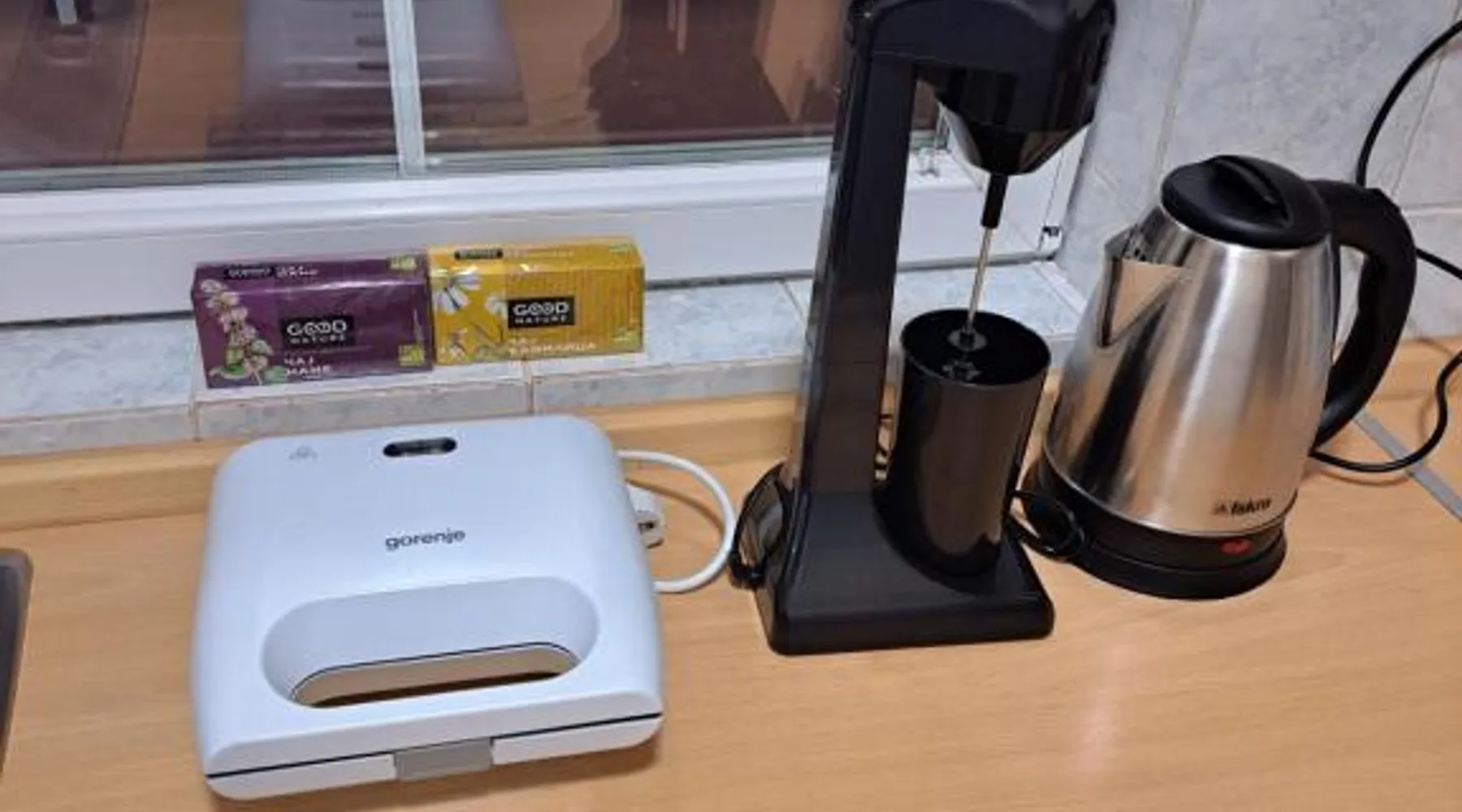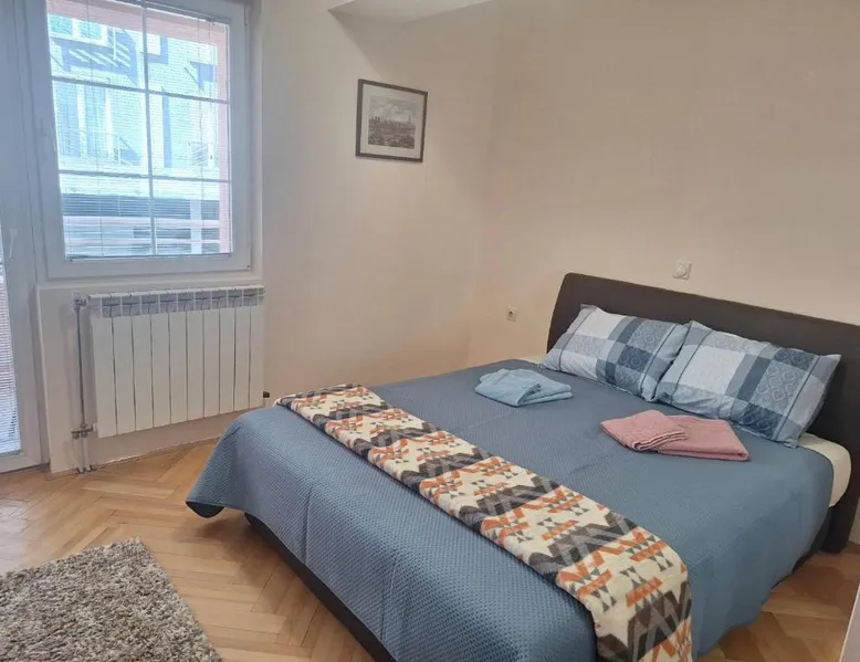 Comfortable Living: One Bedroom Apartment In Skopje - Center offers a comfortable apartment in Skopje, North Macedonia. The property features one bedroom and one bathroom, ensuring a cozy stay. Modern Amenities: Guests enjoy free WiFi, air-conditioning, and a balcony. The apartment includes a fully equipped kitchen with a stovetop, toaster, and electric kettle. Additional amenities include a washing machine, dining table, work desk, and tea and coffee maker. Convenient Location: Located 13 mi from Skopje International Airport, the apartment is near attractions such as Stone Bridge (1.2 mi), Macedonia Square (19-minute walk), and Museum of the City of Skopje (1.2 mi). Free parking is available on-site. Guest Satisfaction: Highly rated by guests for its value for money, friendly host, and convenient location. The air-conditioned apartment has 1 bedroom, 1 bathroom with a bath and a kitchen. The apartment's kitchen, which features a stovetop and a toaster, is available for cooking and storing food. The apartment offers a washing machine, a tea and coffee maker, heating, as well as a balcony. The unit has 1 bed.
