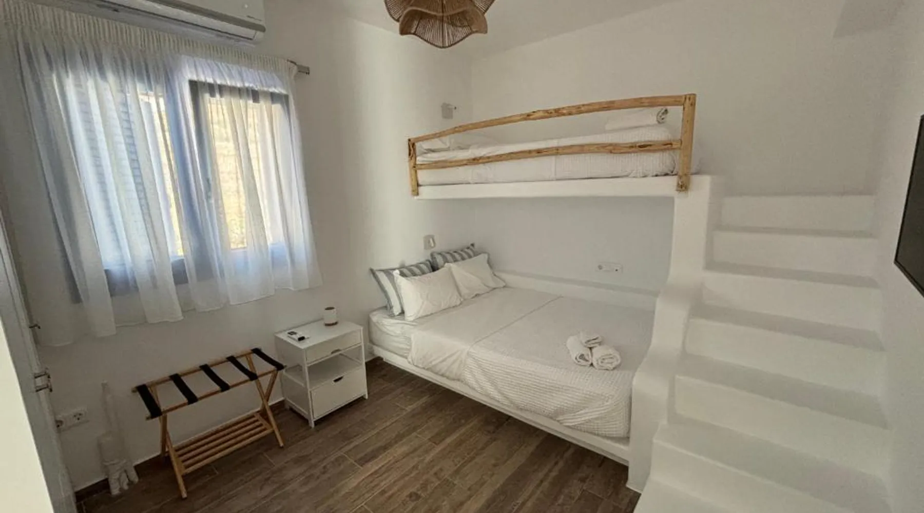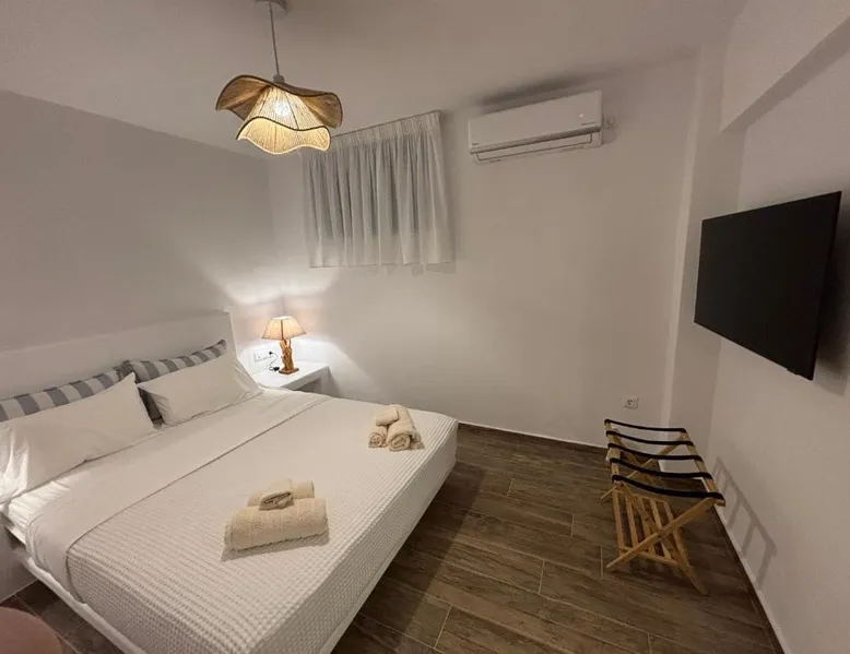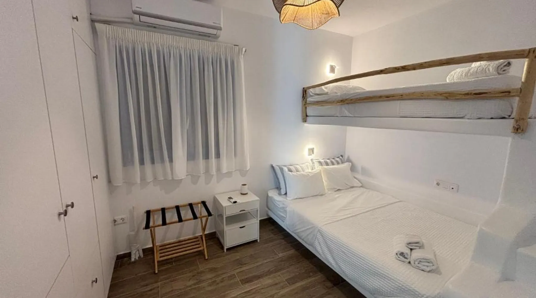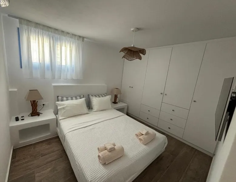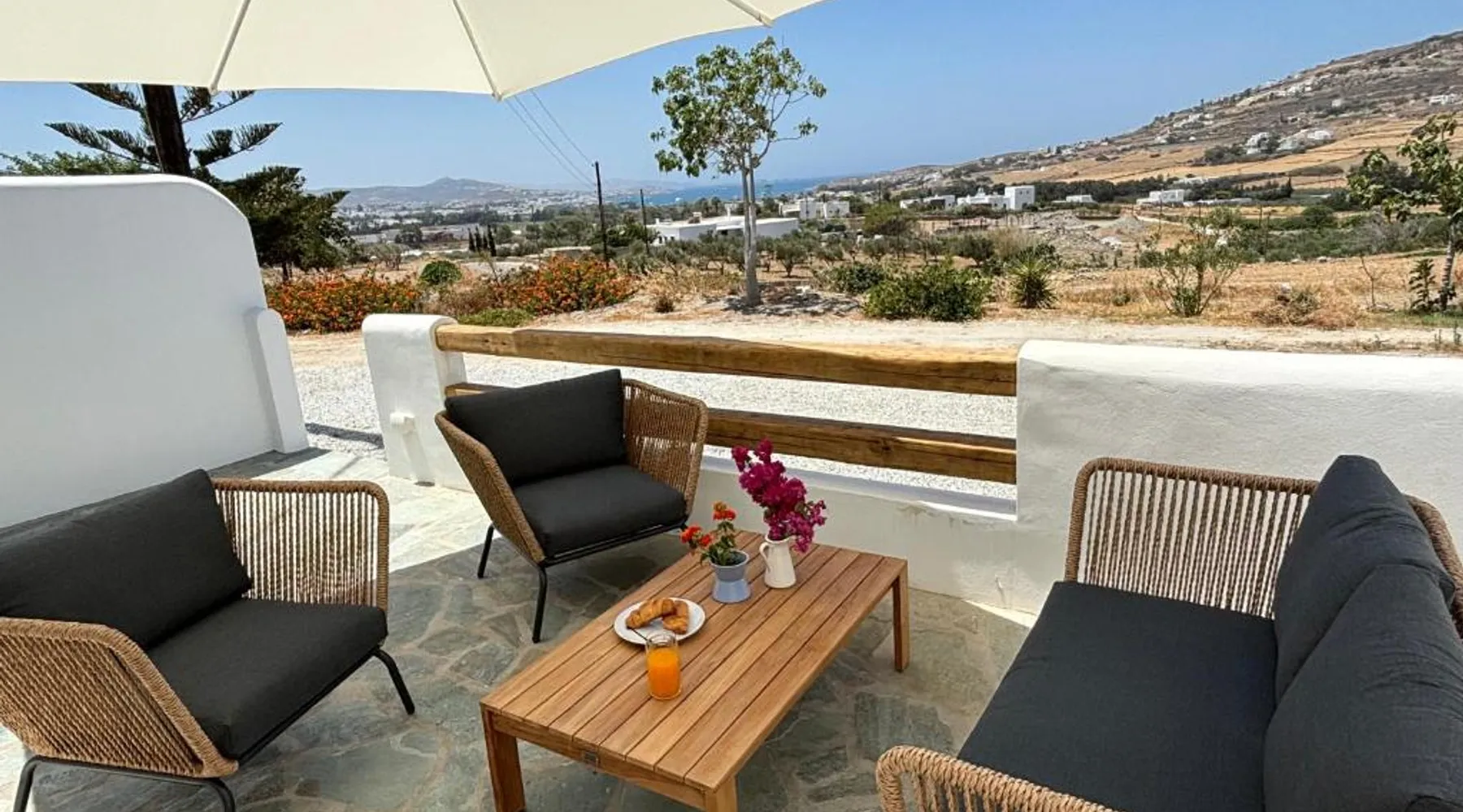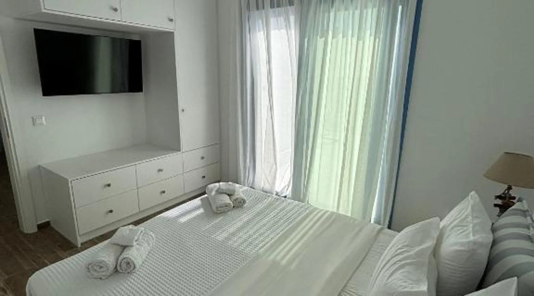 Sun Terrace and Garden: Paros Relux in Kampos Paros offers a sun terrace and a lush garden. Guests can relax in the outdoor seating area and enjoy sea views. Free WiFi is available throughout the apartment. Comfortable Amenities: The apartment features air-conditioning, a terrace, and a kitchenette. Additional amenities include a balcony, washing machine, and private bathroom. Free on-site private parking is provided. Convenient Location: Located 8.1 mi from Paros National Airport, the property is near Livadia (1.3 mi), Archaeological Museum of Paros and Church of Ekatontapyliani (1.8 mi), Venetian Harbor and Castle (5 mi), and Paros Park (5 mi). Featuring a private entrance, this air-conditioned apartment consists of 1 living room, 2 separate bedrooms and 1 bathroom with a walk-in shower and a bath. Guests can make meals in the kitchen that is equipped with a stovetop, a refrigerator, a dishwasher and kitchenware. The spacious apartment provides a washing machine, soundproof walls, a tea and coffee maker as well as a terrace with sea views. The unit offers 5 beds.