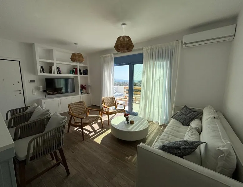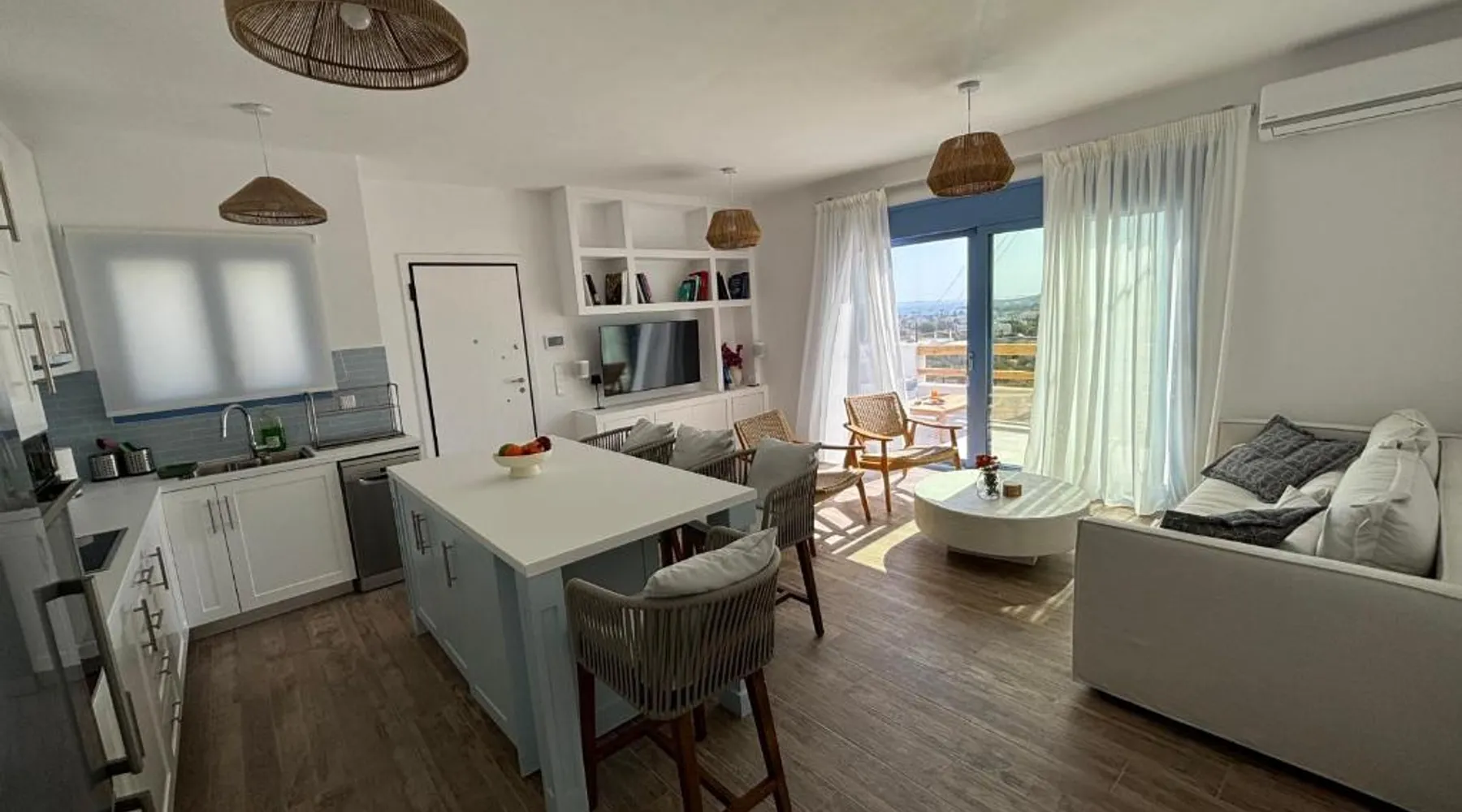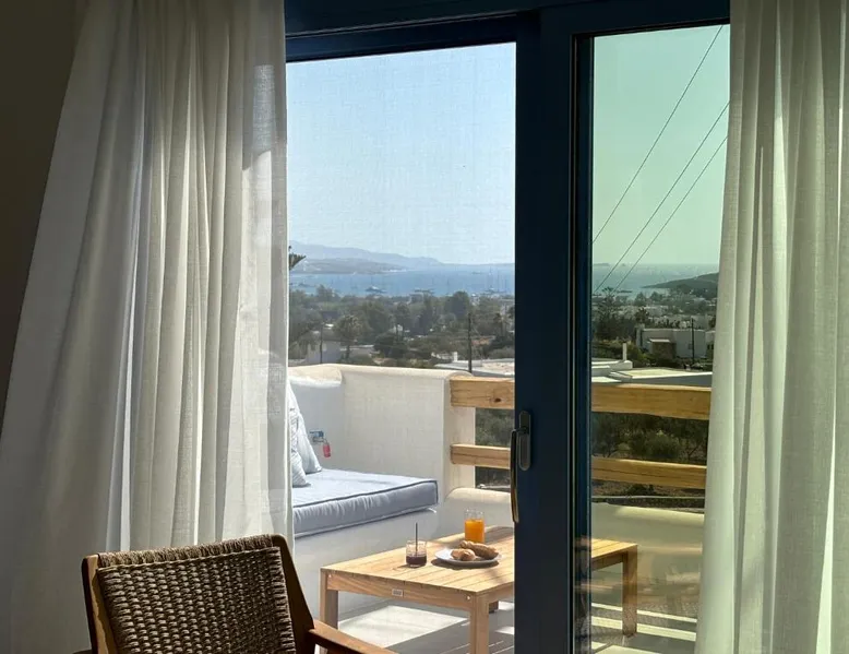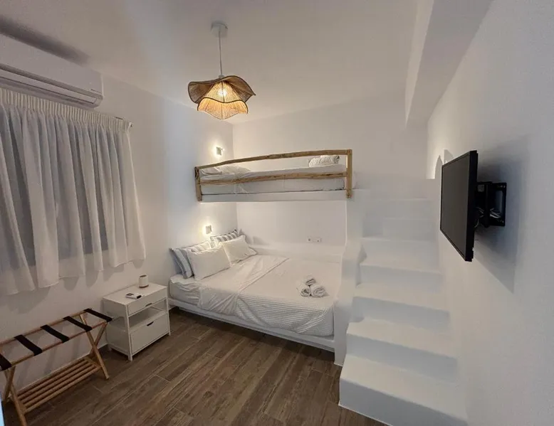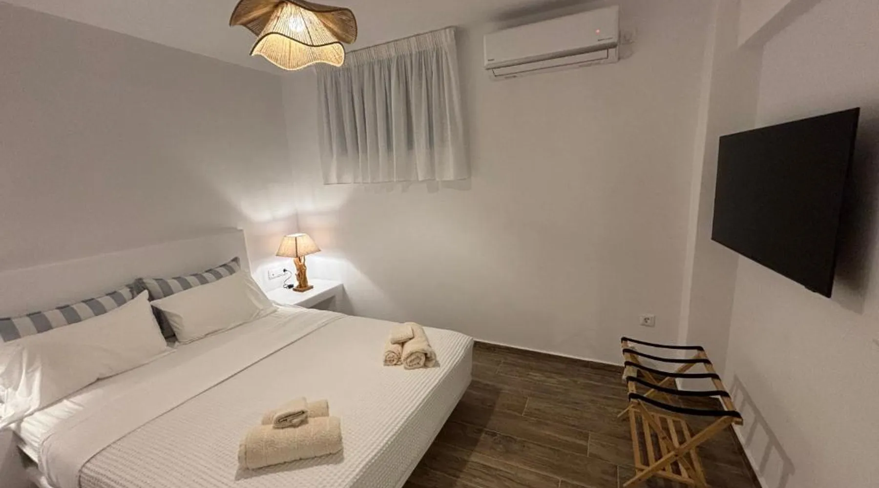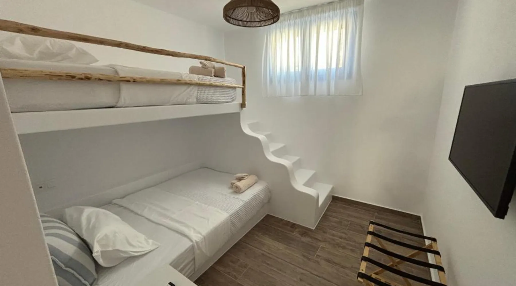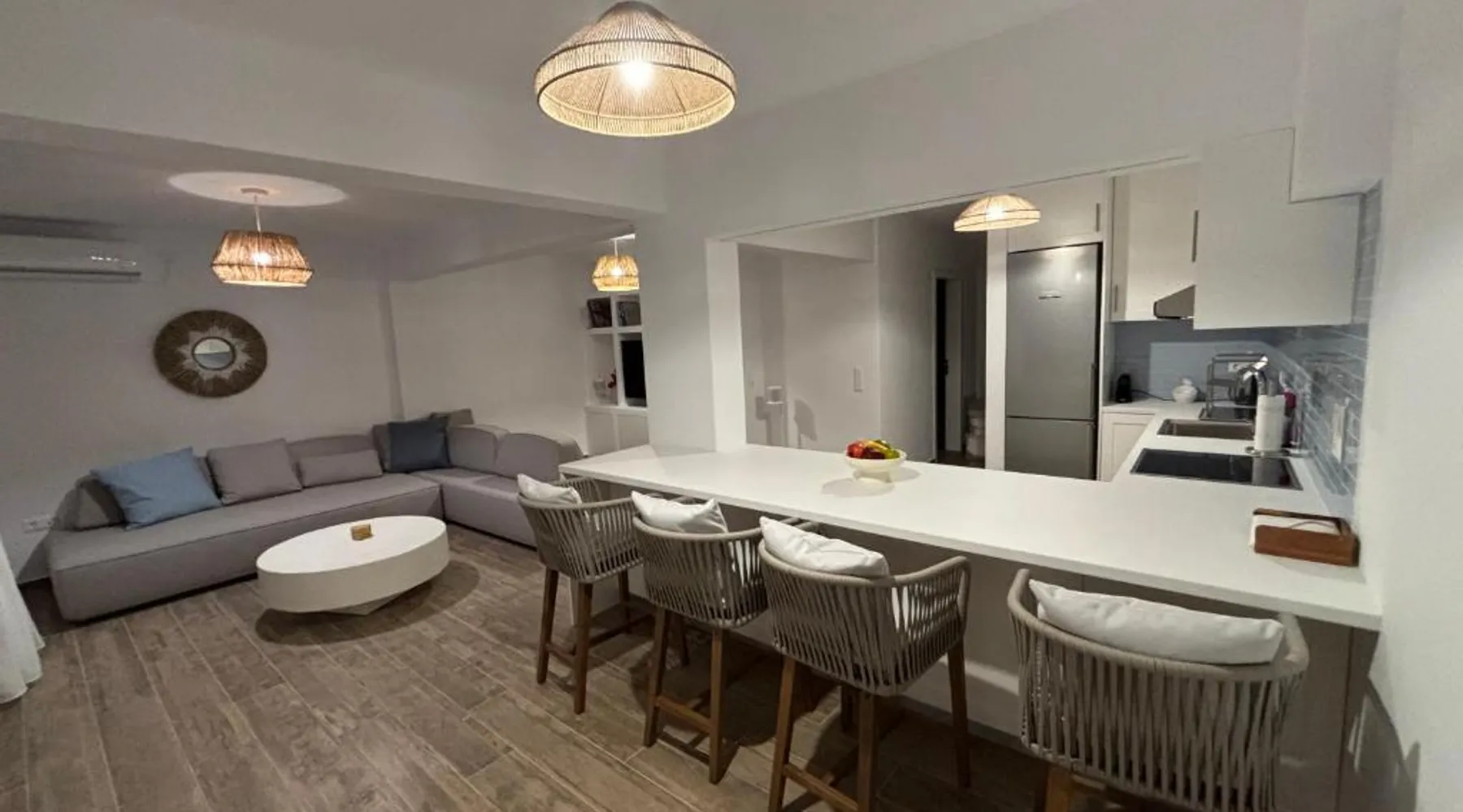 Sun Terrace and Garden: Paros Relux in Kampos Paros offers a sun terrace and a lush garden. Guests can relax in the outdoor seating area and enjoy sea views. Free WiFi is available throughout the apartment. Comfortable Amenities: The apartment features air-conditioning, a terrace, and a kitchenette. Additional amenities include a balcony, washing machine, and private bathroom. Free on-site private parking is provided. Convenient Location: Located 8.1 mi from Paros National Airport, the property is near Livadia (1.3 mi), Archaeological Museum of Paros and Church of Ekatontapyliani (1.8 mi), Venetian Harbor and Castle (5 mi), and Paros Park (5 mi). Featuring a private entrance, this air-conditioned apartment consists of 1 living room, 2 separate bedrooms and 1 bathroom with a walk-in shower and a bath. Guests can make meals in the kitchen that is equipped with a stovetop, a refrigerator, a dishwasher and kitchenware. The spacious apartment provides a washing machine, soundproof walls, a tea and coffee maker as well as a terrace with sea views. The unit offers 5 beds.