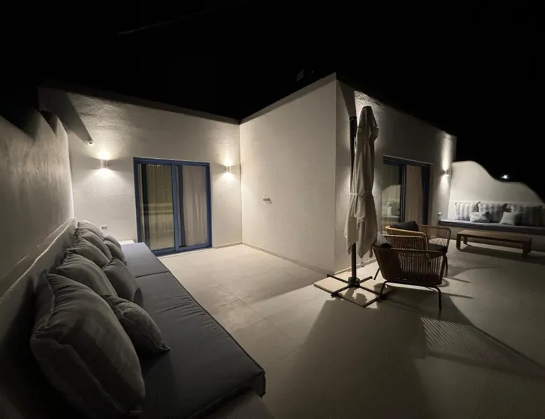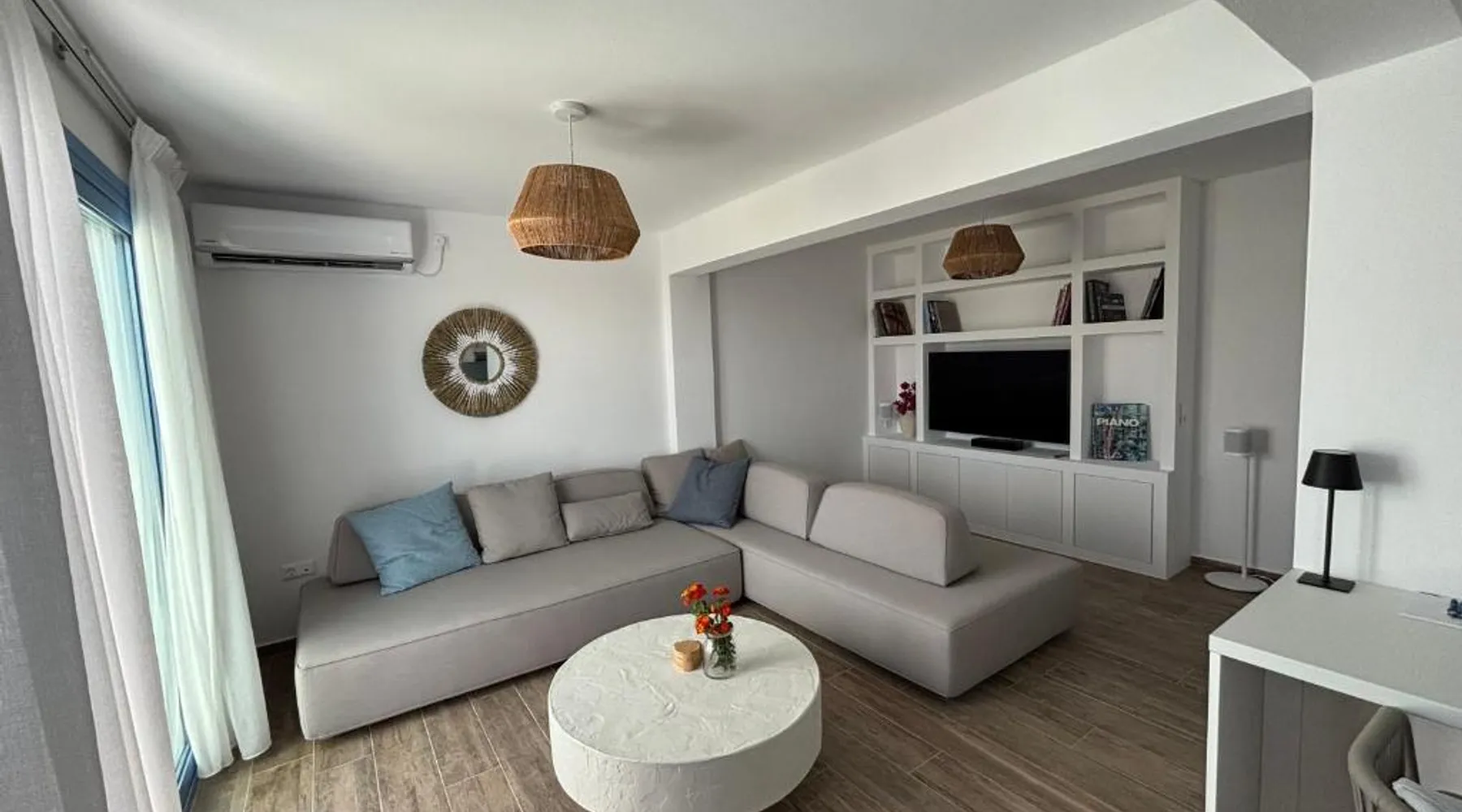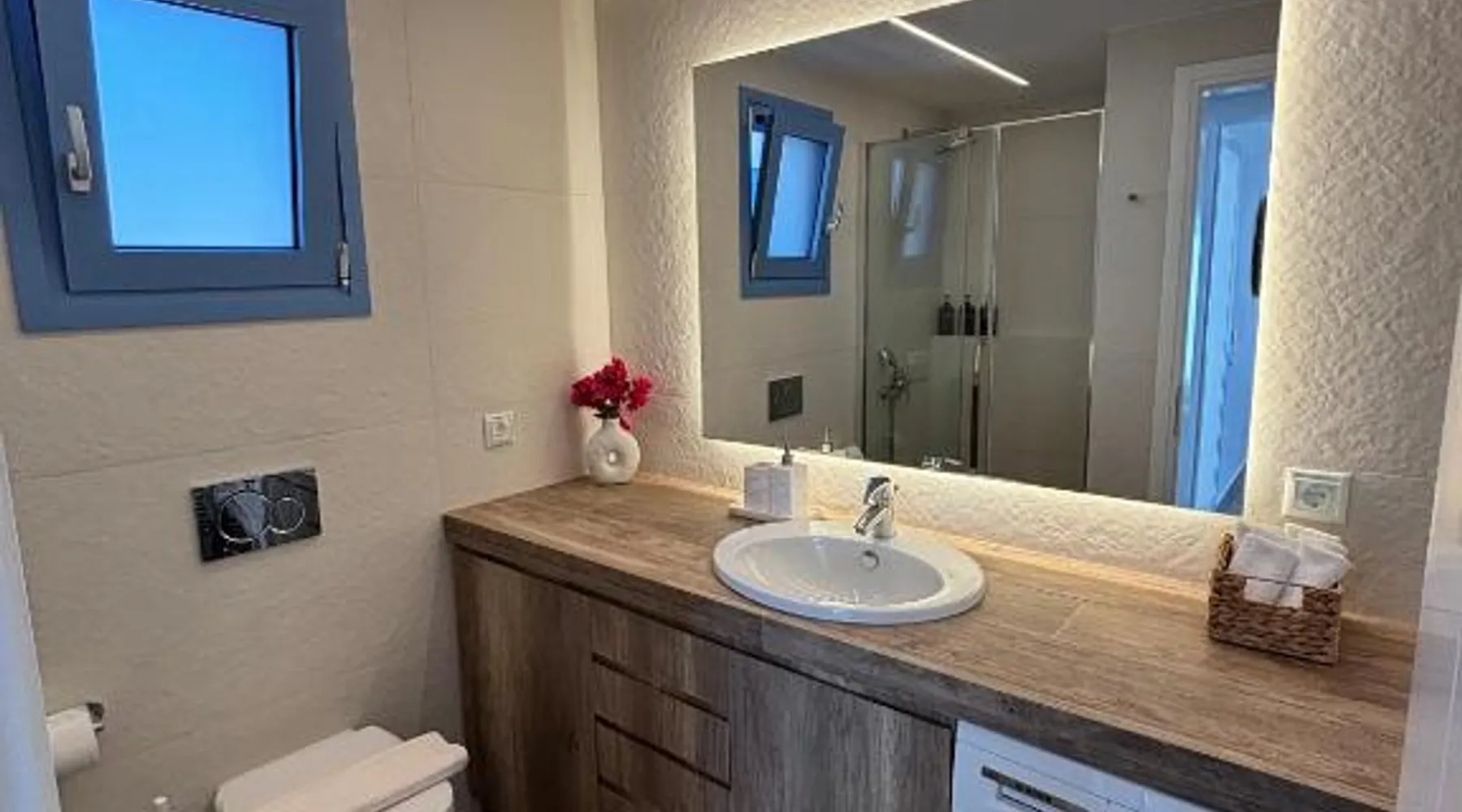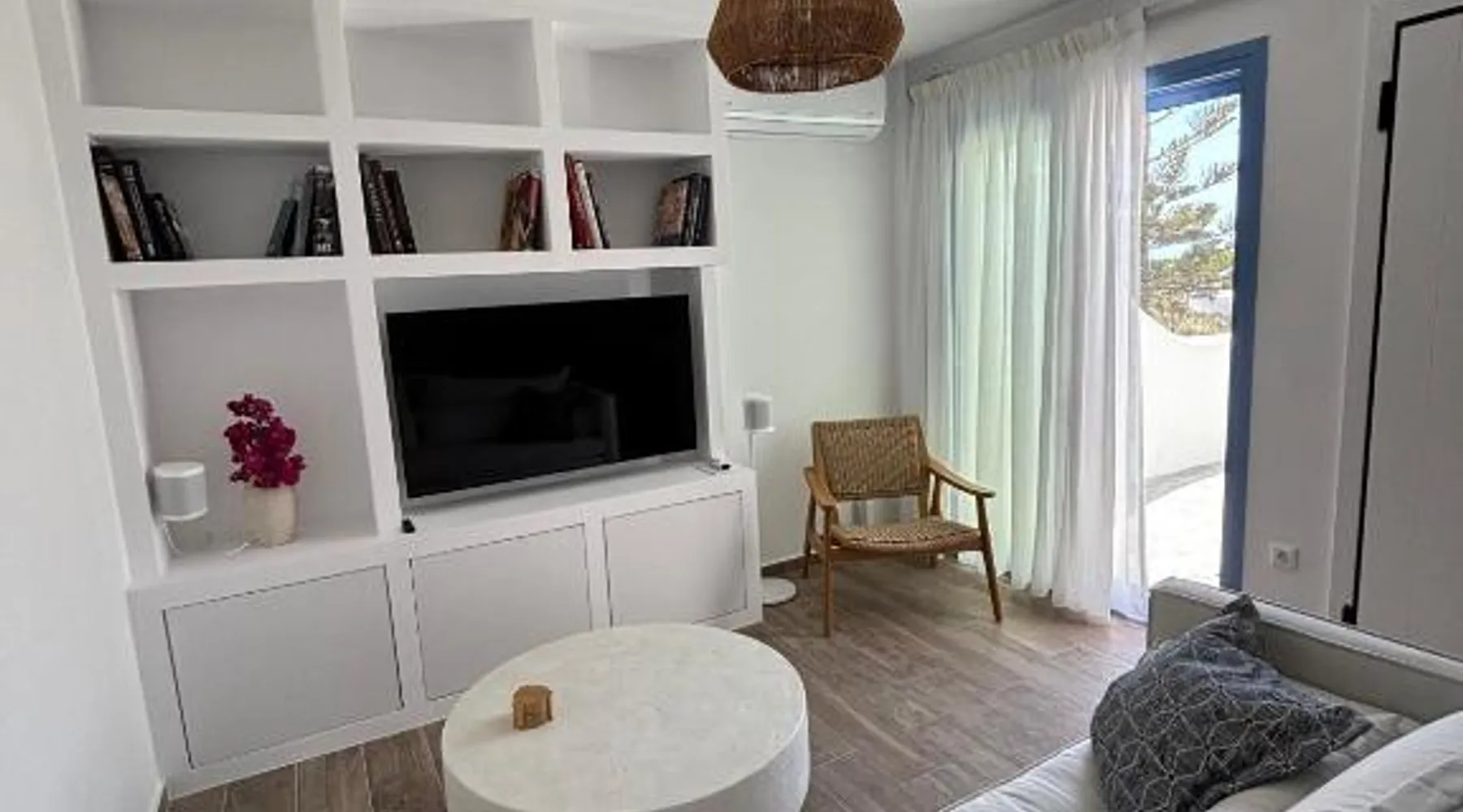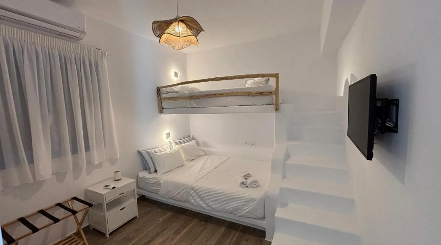 Sun Terrace and Garden: Paros Relux in Kampos Paros offers a sun terrace and a lush garden. Guests can relax in the outdoor seating area and enjoy sea views. Free WiFi is available throughout the apartment. Comfortable Amenities: The apartment features air-conditioning, a terrace, and a kitchenette. Additional amenities include a balcony, washing machine, and private bathroom. Free on-site private parking is provided. Convenient Location: Located 8.1 mi from Paros National Airport, the property is near Livadia (1.3 mi), Archaeological Museum of Paros and Church of Ekatontapyliani (1.8 mi), Venetian Harbor and Castle (5 mi), and Paros Park (5 mi). Featuring a private entrance, this air-conditioned apartment consists of 1 living room, 2 separate bedrooms and 1 bathroom with a walk-in shower and a bath. Guests can make meals in the kitchen that is equipped with a stovetop, a refrigerator, a dishwasher and kitchenware. The spacious apartment provides a washing machine, soundproof walls, a tea and coffee maker as well as a terrace with sea views. The unit offers 5 beds.