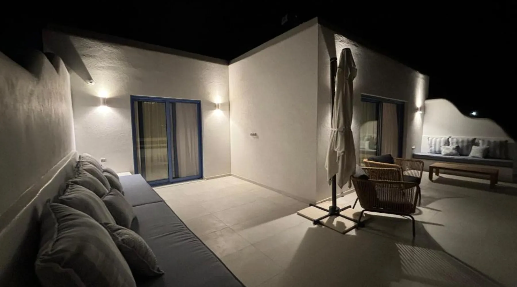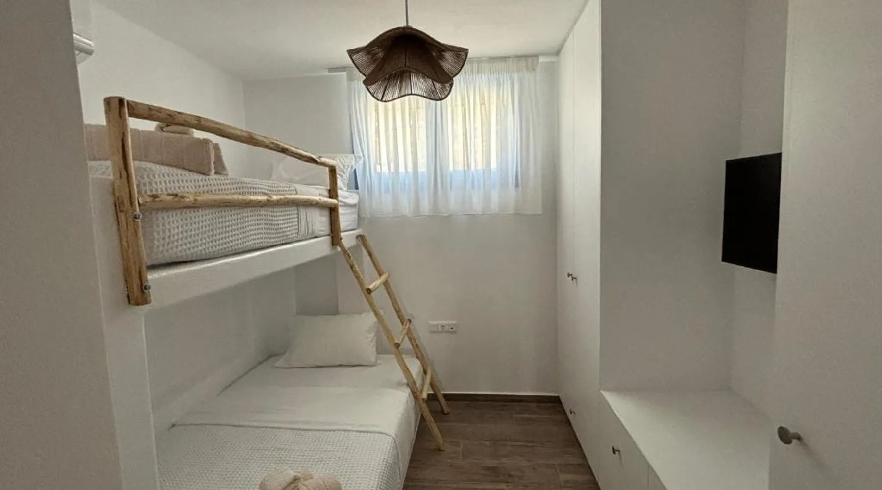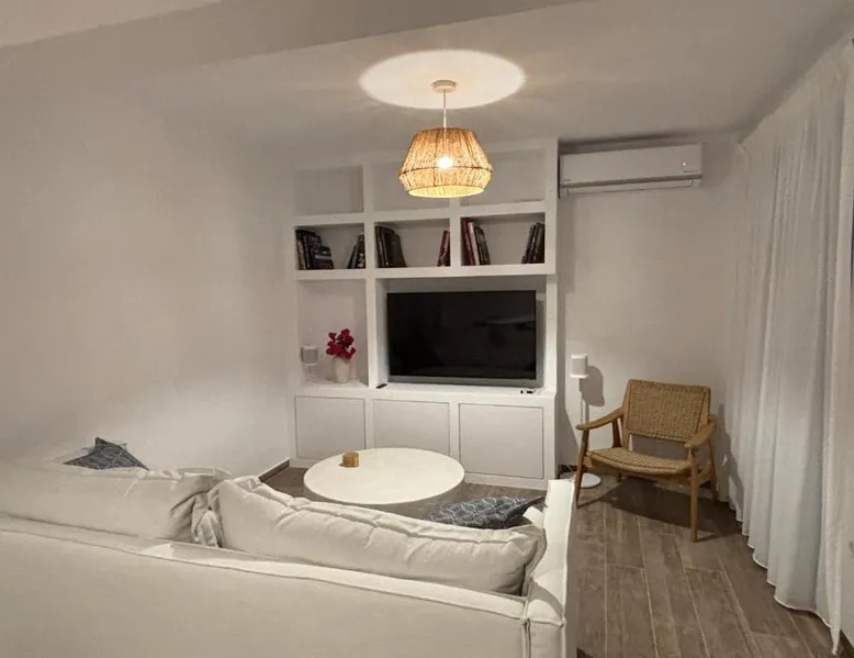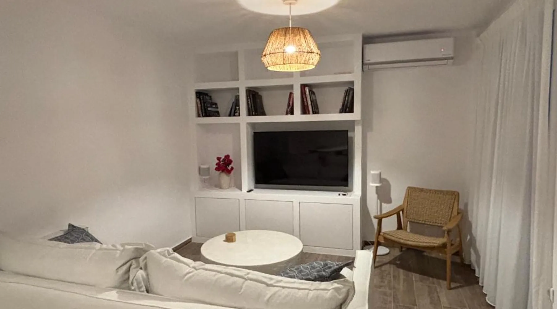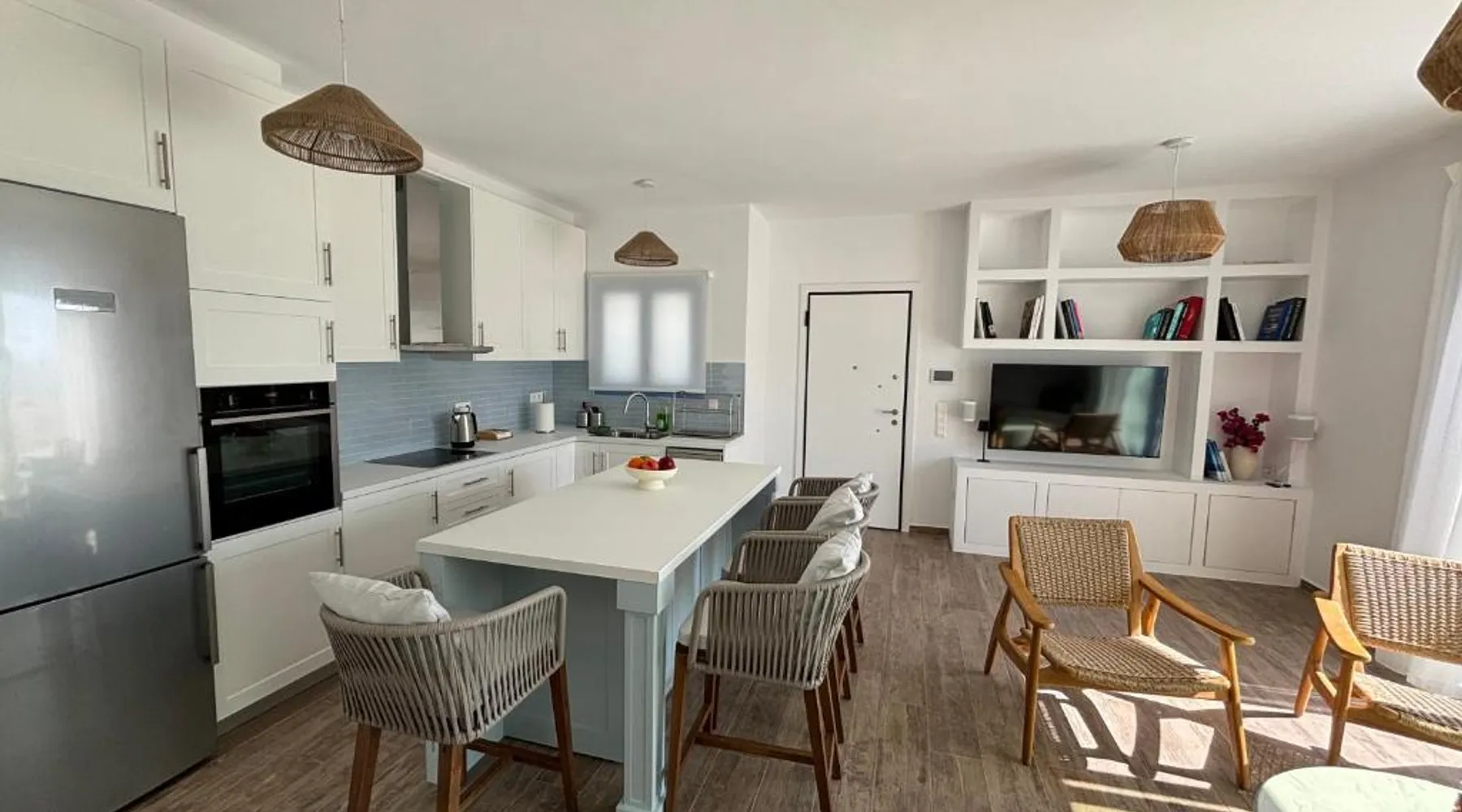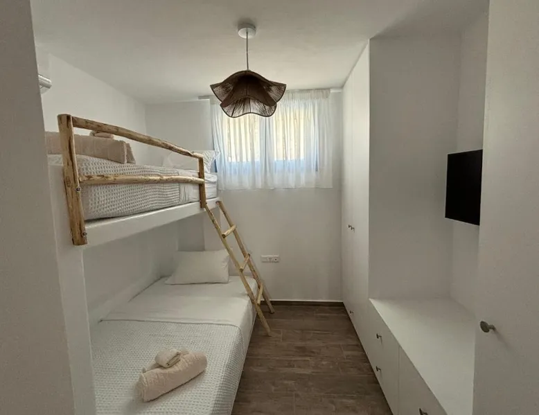Sun Terrace and Garden: Paros Relux in Kampos Paros offers a sun terrace and a lush garden. Guests can relax in the outdoor seating area and enjoy sea views. Free WiFi is available throughout the apartment. Comfortable Amenities: The apartment features air-conditioning, a terrace, and a kitchenette. Additional amenities include a balcony, washing machine, and private bathroom. Free on-site private parking is provided. Convenient Location: Located 8.1 mi from Paros National Airport, the property is near Livadia (1.3 mi), Archaeological Museum of Paros and Church of Ekatontapyliani (1.8 mi), Venetian Harbor and Castle (5 mi), and Paros Park (5 mi). Featuring a private entrance, this air-conditioned apartment consists of 1 living room, 2 separate bedrooms and 1 bathroom with a walk-in shower and a bath. Guests can make meals in the kitchen that is equipped with a stovetop, a refrigerator, a dishwasher and kitchenware. The spacious apartment provides a washing machine, soundproof walls, a tea and coffee maker as well as a terrace with sea views. The unit offers 5 beds.