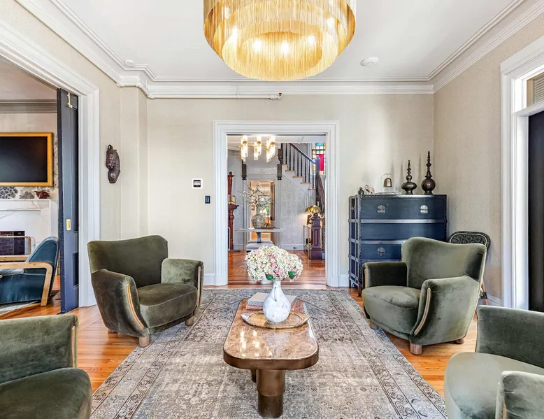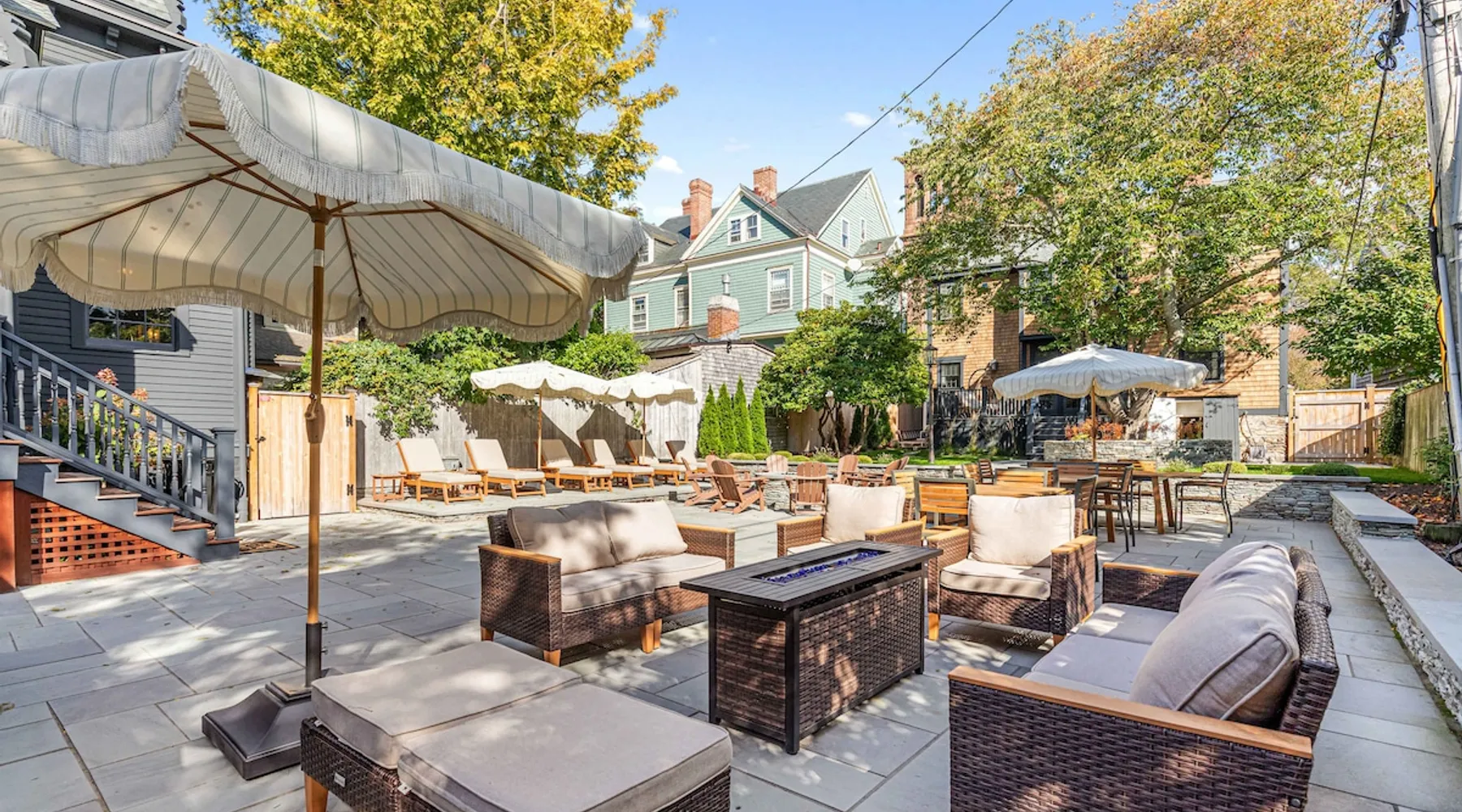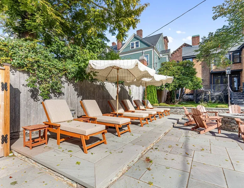 Welcome to Newport’s premier luxury inn, experience the charm of seaside elegance in our restored luxury estate. Located in the heart of downtown just steps away from Thames Street and Bowens Wharf! Putting you right in the middle of the best shopping, dining, and nightlife. Enjoy spaces like the fully stocked kitchen, beautiful backyard with a gas fire pit, and EV charging stations. Just one block from the water, you’ll be surrounded by Newport’s rich history and vibrant waterfront scene The space The home offers 7 spacious bedrooms and 9 total beds including 2 luxury pull-out sofas, including separate full marble bathrooms for each bedroom, and full laundry. The gourmet kitchen includes a large center island with comfortable seating for 4, marble countertops, stainless steel commercial-grade appliances, 2 wine refrigerators, and an abundance of dinnerware, cutlery, etc. The kitchen is adjacent to the dining room through the butlers pantry which can accommodate seating for 12, from here find the beautifully decorated parlor and living room with a gas fireplace. The property has a large bluestone patio which glows at night due to the thoughtfully designed architectural lighting. The courtyard has a built in gas fire pit, standing heaters, outdoor couches and chaise lounges which also surround an additional fire pit, and a propane grill. We have a large driveway that can fit 14 cars with stacked parking and we didn't stop there, we had a 2 port, state of the art EV charger installed in the driveway for all of our EV drivers out there. The home is ideal for entertaining and relaxing after a day at one of the nearby beaches. Looking to host a wedding party, rehearsal dinner, garden party... then this is without a doubt the rental for you. Walking distance (1 min.) to downtown Newport’s world-class shopping, dining, and entertainment located at Bowen's or Hammett's wharf and along thames street. Enjoy your vacation out on the town with peace of mind that your bed is only steps away. Guest access Don't fumble around with keys or confusing check in instructions at The Royce, the entire property is smart! All access is by means of easy smart locks with unique codes. Registration Details RE.06168-STR, expiry date: 2026-08-16