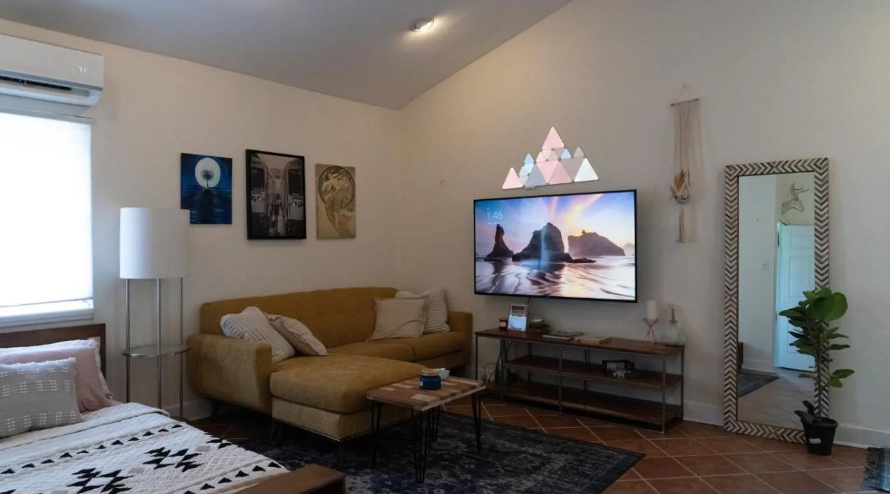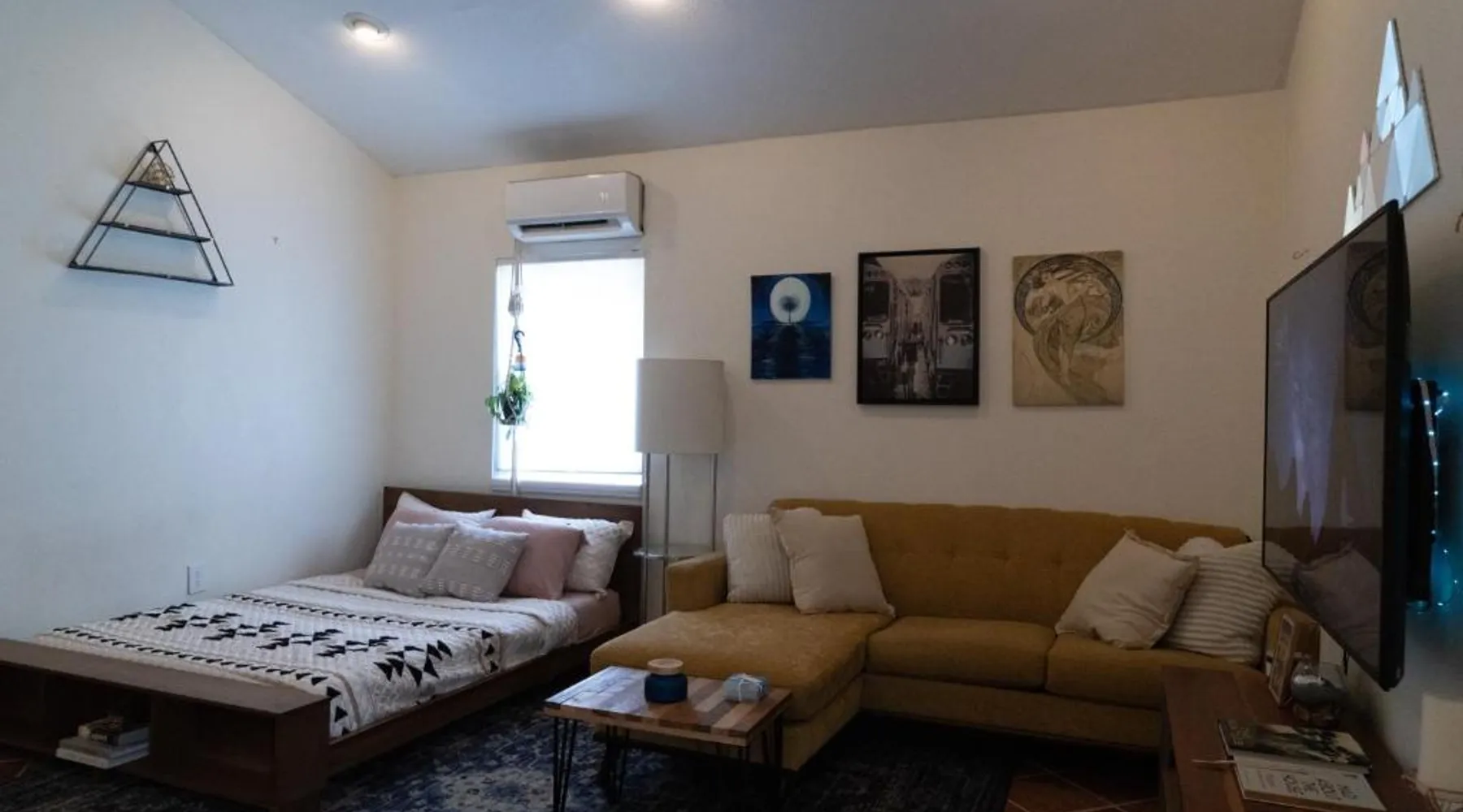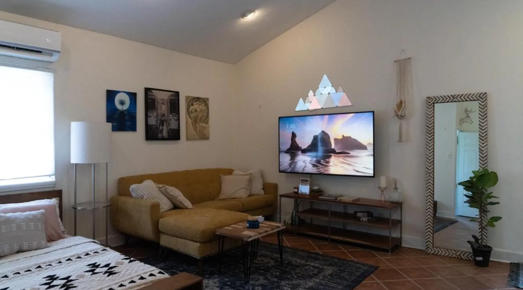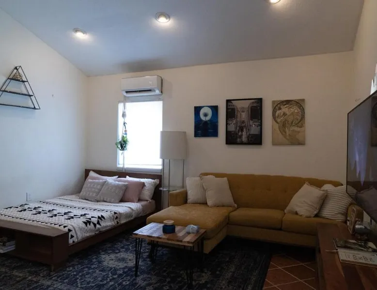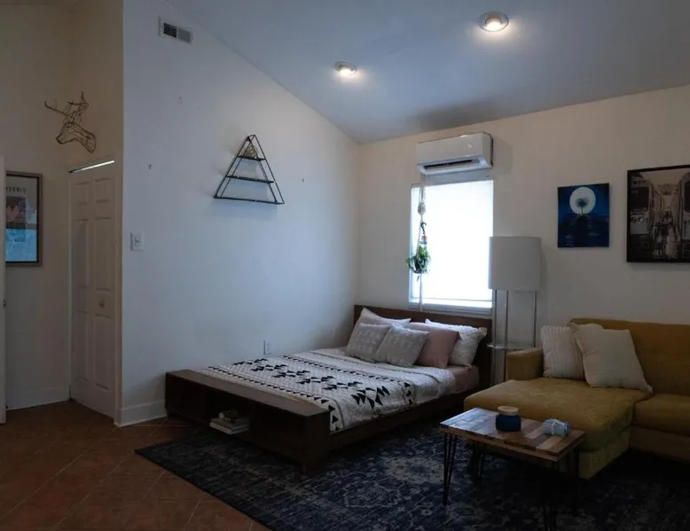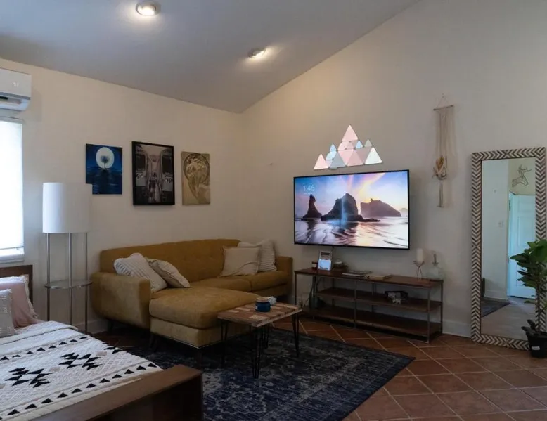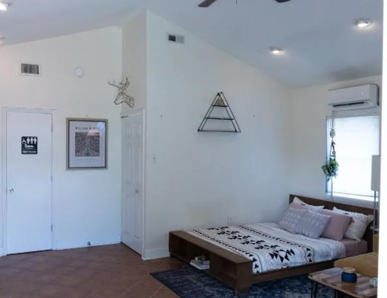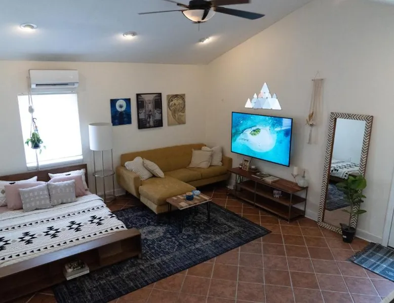 Modern Comforts: Lofty Dreams B&B in Orlando offers a recently renovated holiday home with a terrace, bar, and free WiFi. Guests enjoy air-conditioning, a kitchenette, and a living room with a sofa bed. Convenient Facilities: The property features a laundry service, family rooms, and free on-site private parking. Additional amenities include streaming services, a washing machine, and a work desk. Prime Location: Located 2.5 mi from Orlando International Airport, the B&B is near attractions such as Florida Mall (3.7 mi) and Universal Studios Florida (8.1 mi). Water sports are available in the surrounding area. Featuring a private entrance, this air-conditioned holiday home is consisted of of 1 living room, 1 separate bedroom and 1 bathroom with a shower and a hairdryer. Guests can make meals in the kitchen that is fitted with a stovetop, a refrigerator, kitchenware and a microwave. Boasting a terrace with garden views, this holiday home also offers a washing machine and a flat-screen TV with streaming services. The unit offers 2 beds.
