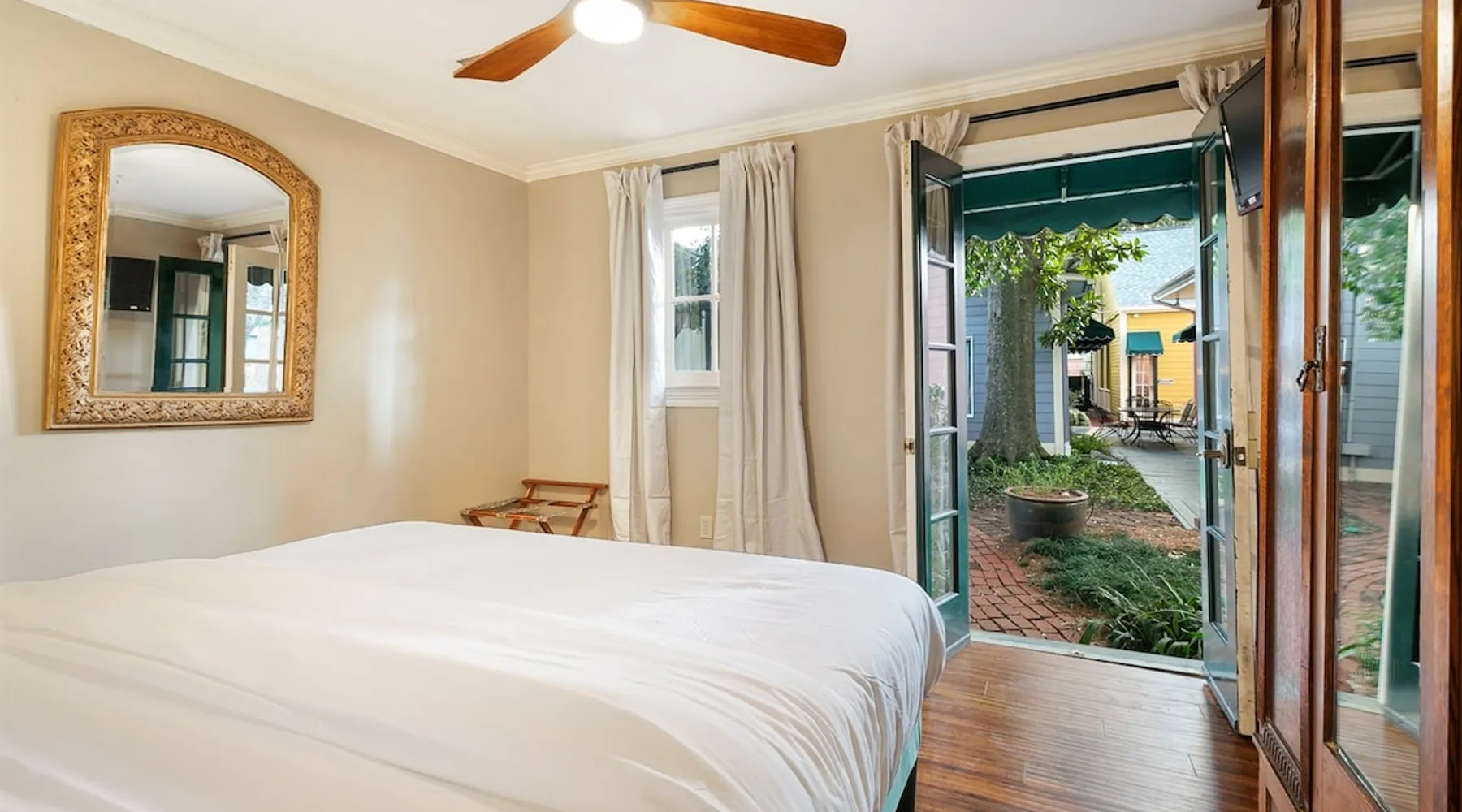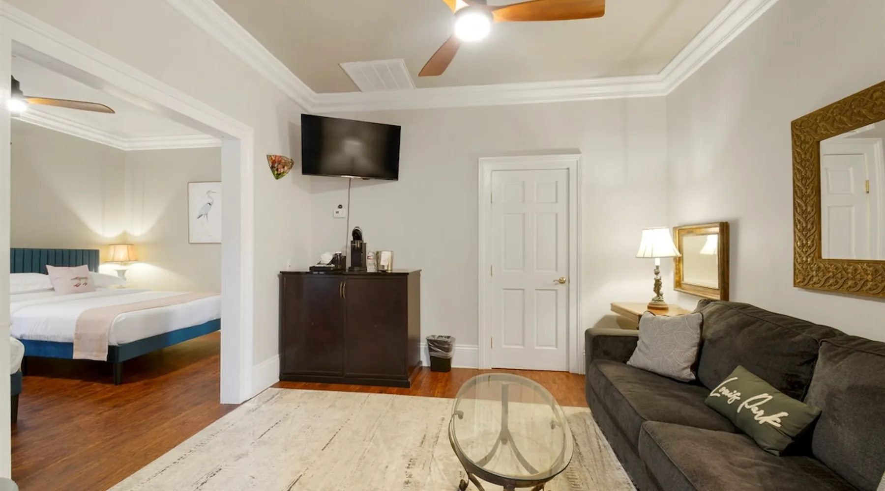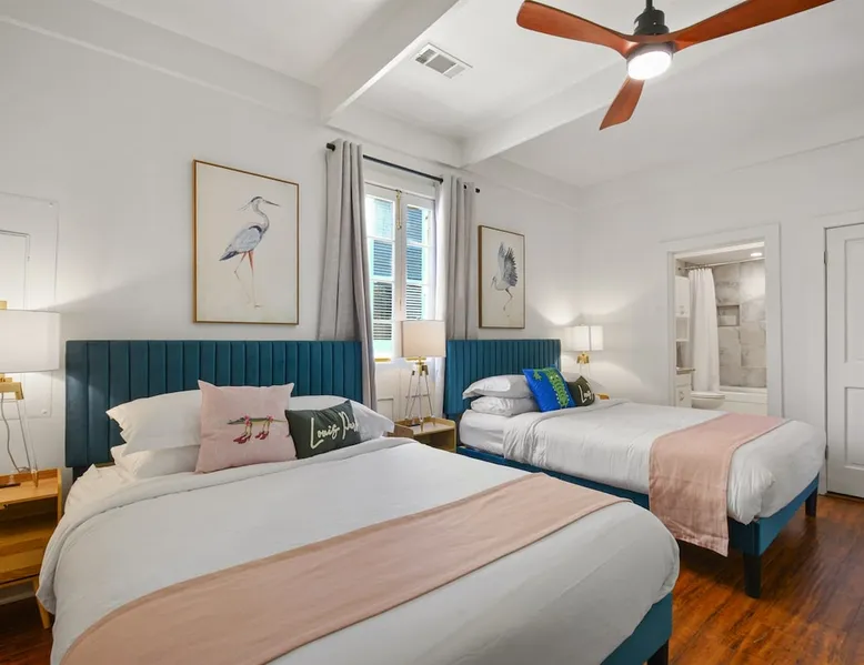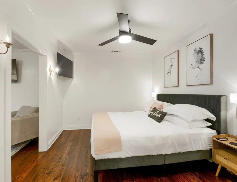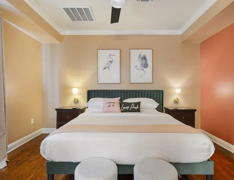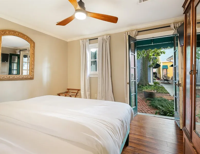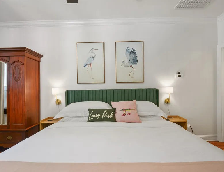 Welcome to Louis Park Hotel, an exclusive gated property steps from the French Quarter. Perfect for group getaways, reunions, weddings, and company retreats, this historic property blends New Orleans charm with boutique hotel comfort. The compound features 11 private guest houses with modern amenities, 12 parking spots, and a landscaped courtyard with outdoor seating — ideal for cocktails, music, or coffee. Each suite honors local jazz legends and is equipped with AC, Wi-Fi, and plush bedding. The space The Al Hirt Guest House sleeps up to eight guests in two bedrooms, each with two queen beds. A full bathroom with a bathtub is accessed through the second bedroom. Guests enjoy direct access to our full kitchen and lobby space, The Commons. The King Oliver Guest House accommodates up to four guests with one king bedroom and an attached living room featuring a queen sleeper sofa. Highlights include exposed brick walls and beams, a full bathroom with a walk-in shower, and direct access to the landscaped courtyard. The Bolden Guest House offers space for up to four guests with a king bedroom and an attached living room with a queen sleeper sofa. Its exposed brick construction, renovated bathroom with a tub and walk-in shower, and direct access to the landscaped courtyard. The White Guest House is a serene retreat for two guests, offering a king bedroom with blackout curtains, a cozy seating area, and a renovated bathroom with walk-in shower. Guests can relax in the landscaped courtyard just outside the door. The Mayfield Guest House is designed for up to four guests, featuring a king bedroom, an attached living room with a queen sleeper sofa, and a renovated bathroom with a modern shower. The Shorty Guest House sleeps four and includes a king bedroom and an attached living room with a queen sleeper sofa. The exposed historic beams, renovated bathroom with tub and separate walk-in shower make this guest house a cozy option. The Connick Guest House accommodates six guests with two bedrooms: one with a king bed and the other with a queen bed and a queen sleeper sofa. Its Jack-and-Jill bathroom and courtyard access offer convenience and comfort. The Kermit Guest House is ideal for up to four guests, featuring a king bedroom, a separate living room with a queen sleeper sofa, a bathroom with walk-in shower, and 11-foot ceilings. Direct access to the courtyard compliments the space. The Fountain Guest House accommodates up to six guests with one bedroom offering two queen beds and an attached living room with a queen sleeper sofa. The renovated bathroom with a walk-in shower and courtyard access ensures a comfortable stay. The Marsalis Guest House offers accommodations for up to eight guests. It features a king bedroom with a private gallery-style porch, an attached living room with a queen sleeper sofa, and a second bedroom with two queen beds. With a full-size kitchen, a Jacuzzi-style tub, and 11-foot ceilings, it’s both luxurious and spacious. The Armstrong Guest House sleeps four guests in one king bedroom and a queen sleeper sofa in the attached living room. It includes a compact kitchen, 11-foot ceilings, a Jacuzzi-style tub, and a private side gallery-style porch. Guest access Guests renting the entire property have exclusive use of all 11 guest houses, the landscaped courtyard, and the private parking lot. Each guest house is fully equipped for a comfortable stay, with private bathrooms, premium linens, and thoughtful amenities. Other things to note • Sleeping Arrangements: 14 bedrooms with king or queen beds, plus sleeper sofas in living rooms. • Bathrooms: 12.5 modern bathrooms, some with Jacuzzi tubs or walk-in showers. • Kitchen Access: Full kitchens in Al Hirt and Marsalis, compact kitchens in other guest houses. • Outdoor Spaces: Landscaped courtyard with seating and secure on-site parking for 8–11 vehicles. Registration details 24-XSTR-18160