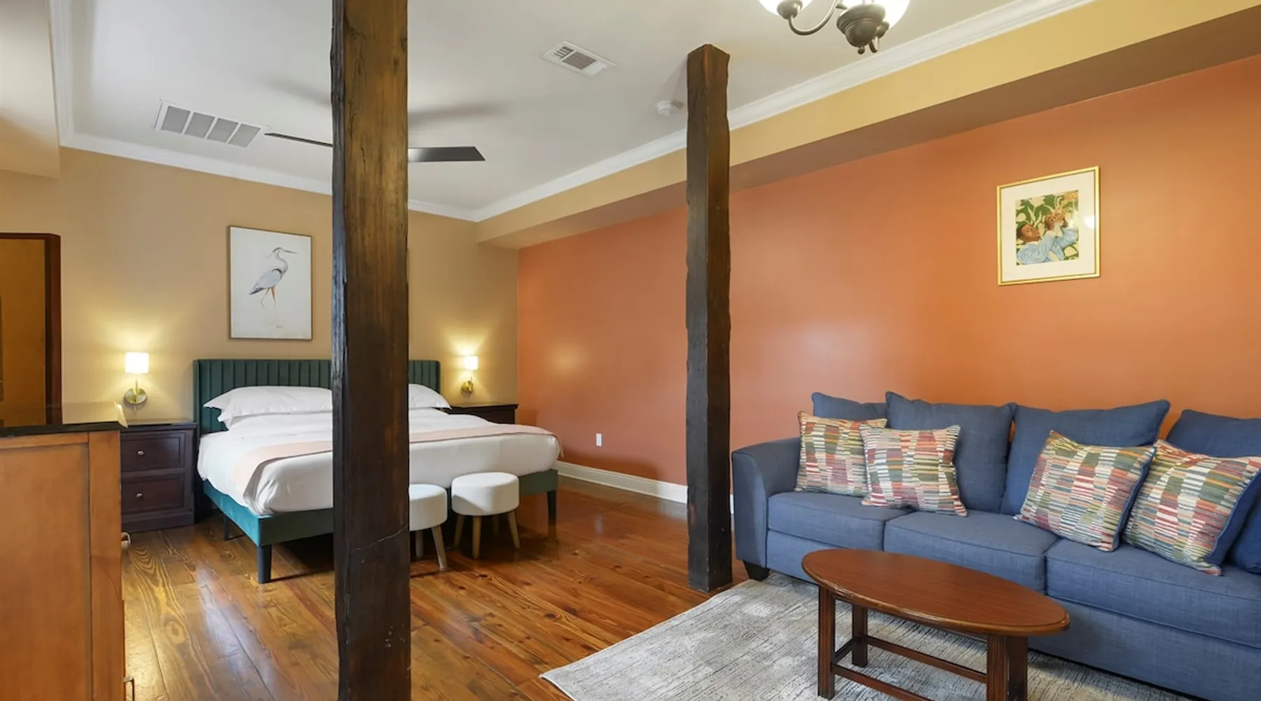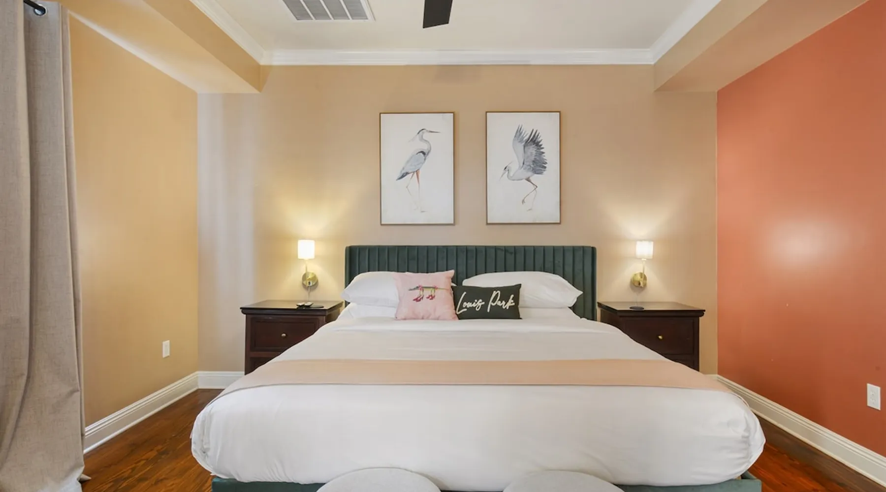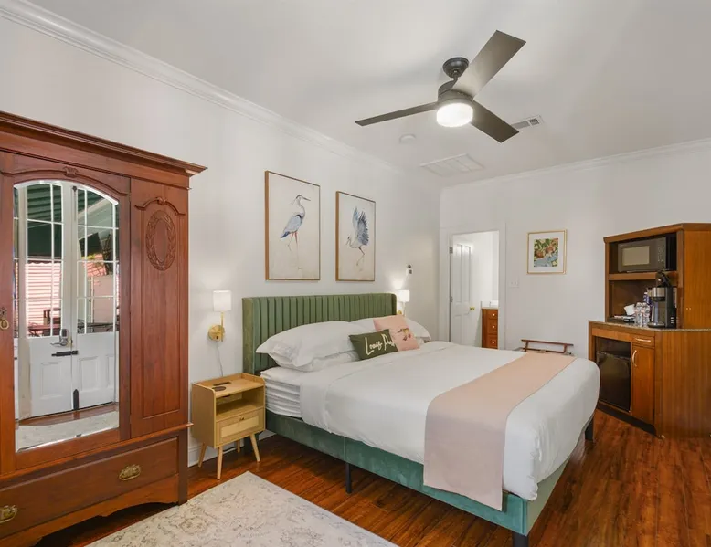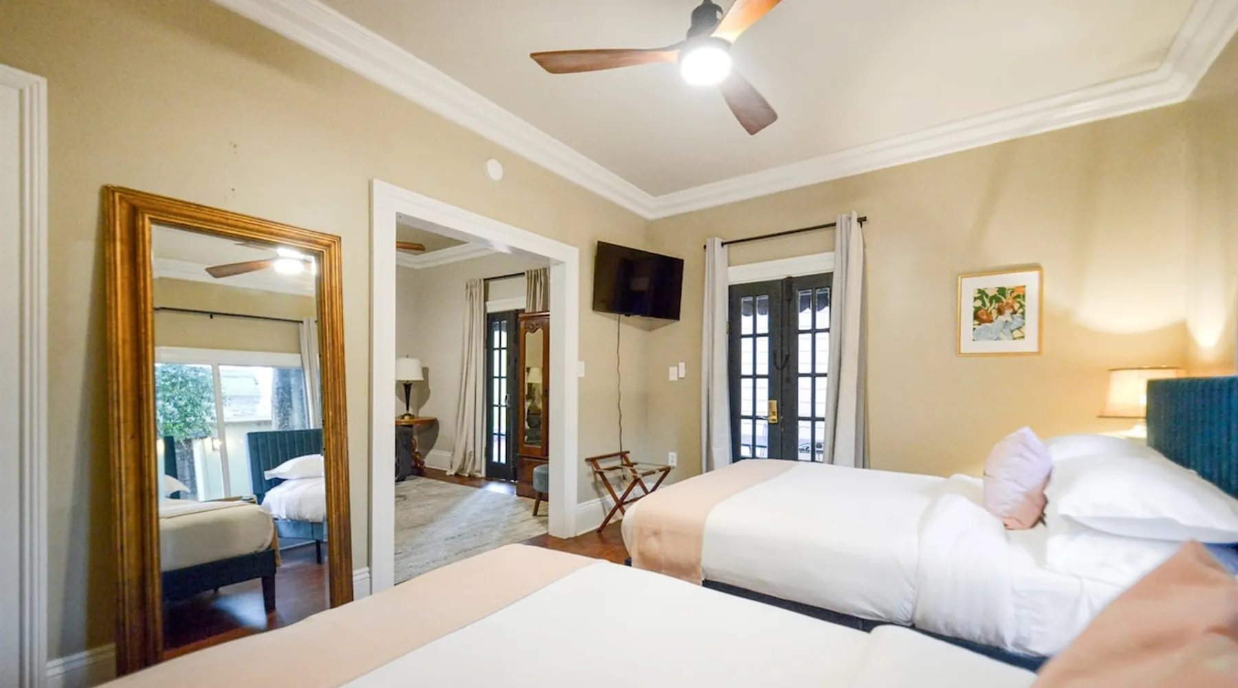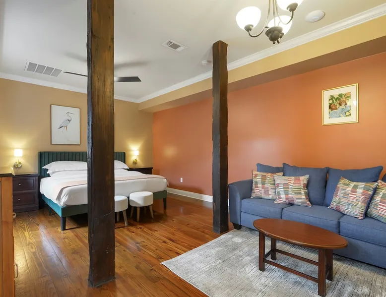 Welcome to Louis Park Hotel, an exclusive gated property steps from the French Quarter. Perfect for group getaways, reunions, weddings, and company retreats, this historic property blends New Orleans charm with boutique hotel comfort. The compound features 11 private guest houses with modern amenities, 12 parking spots, and a landscaped courtyard with outdoor seating — ideal for cocktails, music, or coffee. Each suite honors local jazz legends and is equipped with AC, Wi-Fi, and plush bedding. The space The Al Hirt Guest House sleeps up to eight guests in two bedrooms, each with two queen beds. A full bathroom with a bathtub is accessed through the second bedroom. Guests enjoy direct access to our full kitchen and lobby space, The Commons. The King Oliver Guest House accommodates up to four guests with one king bedroom and an attached living room featuring a queen sleeper sofa. Highlights include exposed brick walls and beams, a full bathroom with a walk-in shower, and direct access to the landscaped courtyard. The Bolden Guest House offers space for up to four guests with a king bedroom and an attached living room with a queen sleeper sofa. Its exposed brick construction, renovated bathroom with a tub and walk-in shower, and direct access to the landscaped courtyard. The White Guest House is a serene retreat for two guests, offering a king bedroom with blackout curtains, a cozy seating area, and a renovated bathroom with walk-in shower. Guests can relax in the landscaped courtyard just outside the door. The Mayfield Guest House is designed for up to four guests, featuring a king bedroom, an attached living room with a queen sleeper sofa, and a renovated bathroom with a modern shower. The Shorty Guest House sleeps four and includes a king bedroom and an attached living room with a queen sleeper sofa. The exposed historic beams, renovated bathroom with tub and separate walk-in shower make this guest house a cozy option. The Connick Guest House accommodates six guests with two bedrooms: one with a king bed and the other with a queen bed and a queen sleeper sofa. Its Jack-and-Jill bathroom and courtyard access offer convenience and comfort. The Kermit Guest House is ideal for up to four guests, featuring a king bedroom, a separate living room with a queen sleeper sofa, a bathroom with walk-in shower, and 11-foot ceilings. Direct access to the courtyard compliments the space. The Fountain Guest House accommodates up to six guests with one bedroom offering two queen beds and an attached living room with a queen sleeper sofa. The renovated bathroom with a walk-in shower and courtyard access ensures a comfortable stay. The Marsalis Guest House offers accommodations for up to eight guests. It features a king bedroom with a private gallery-style porch, an attached living room with a queen sleeper sofa, and a second bedroom with two queen beds. With a full-size kitchen, a Jacuzzi-style tub, and 11-foot ceilings, it’s both luxurious and spacious. The Armstrong Guest House sleeps four guests in one king bedroom and a queen sleeper sofa in the attached living room. It includes a compact kitchen, 11-foot ceilings, a Jacuzzi-style tub, and a private side gallery-style porch. Guest access Guests renting the entire property have exclusive use of all 11 guest houses, the landscaped courtyard, and the private parking lot. Each guest house is fully equipped for a comfortable stay, with private bathrooms, premium linens, and thoughtful amenities. Other things to note • Sleeping Arrangements: 14 bedrooms with king or queen beds, plus sleeper sofas in living rooms. • Bathrooms: 12.5 modern bathrooms, some with Jacuzzi tubs or walk-in showers. • Kitchen Access: Full kitchens in Al Hirt and Marsalis, compact kitchens in other guest houses. • Outdoor Spaces: Landscaped courtyard with seating and secure on-site parking for 8–11 vehicles. Registration details 24-XSTR-18160