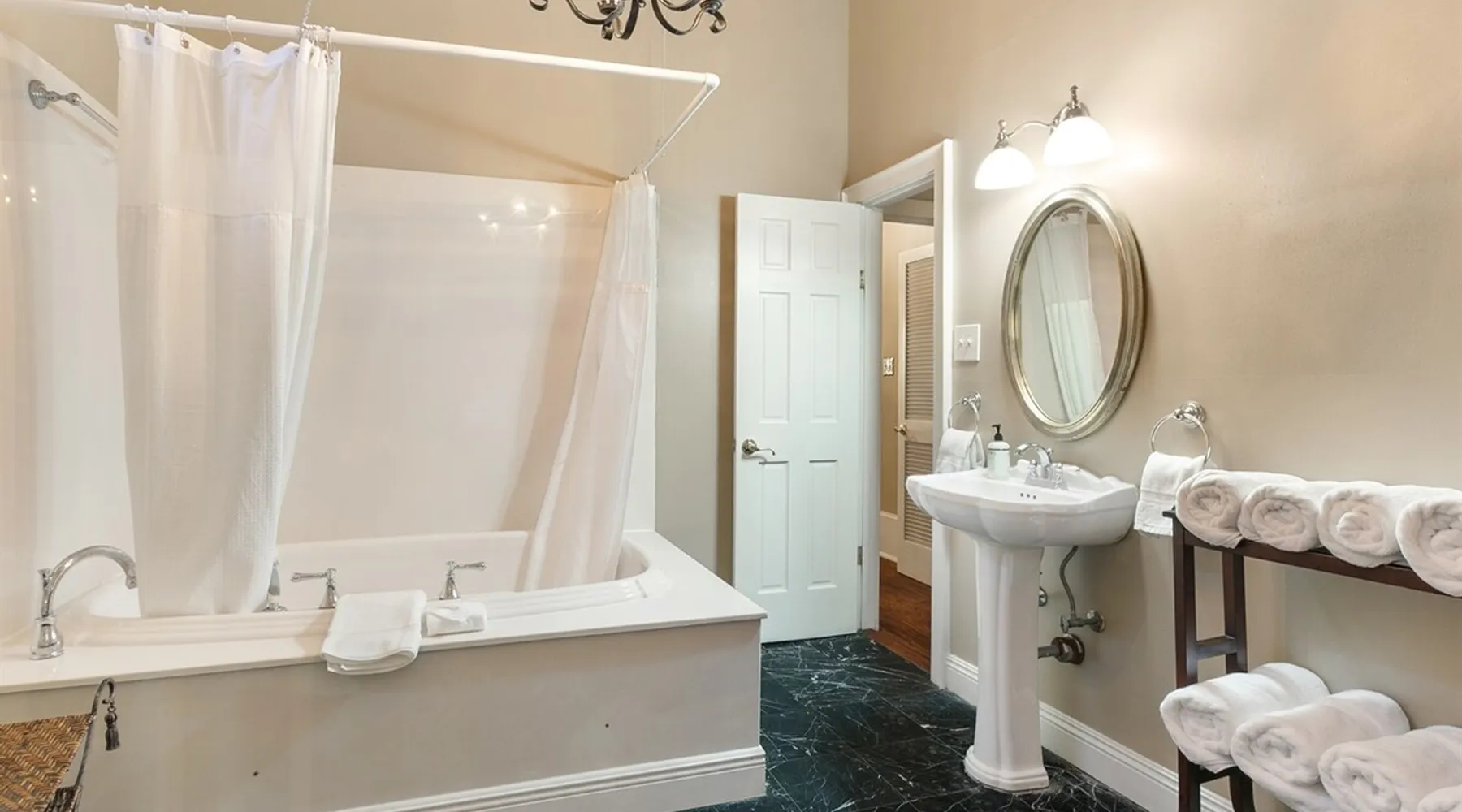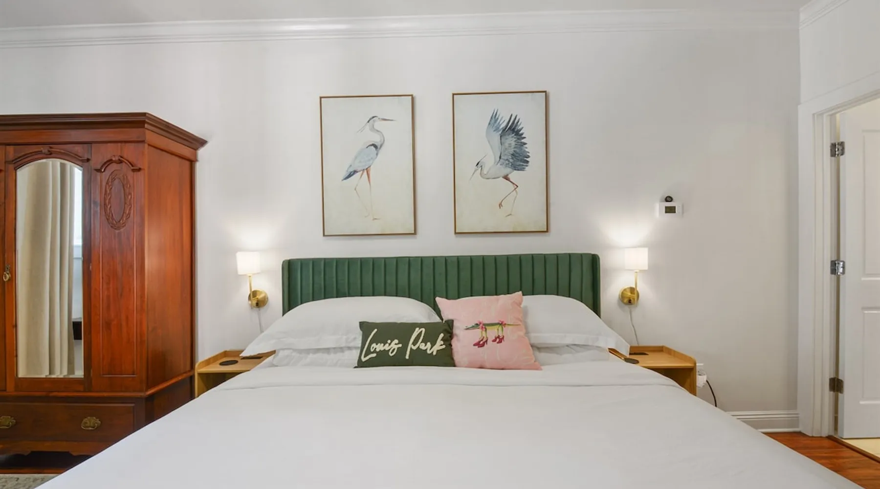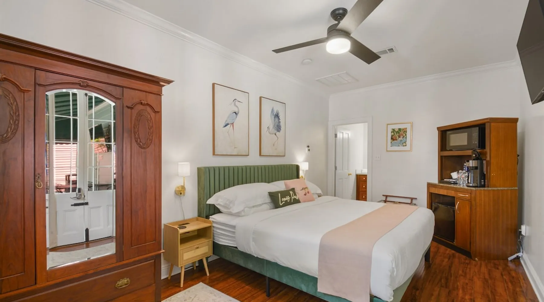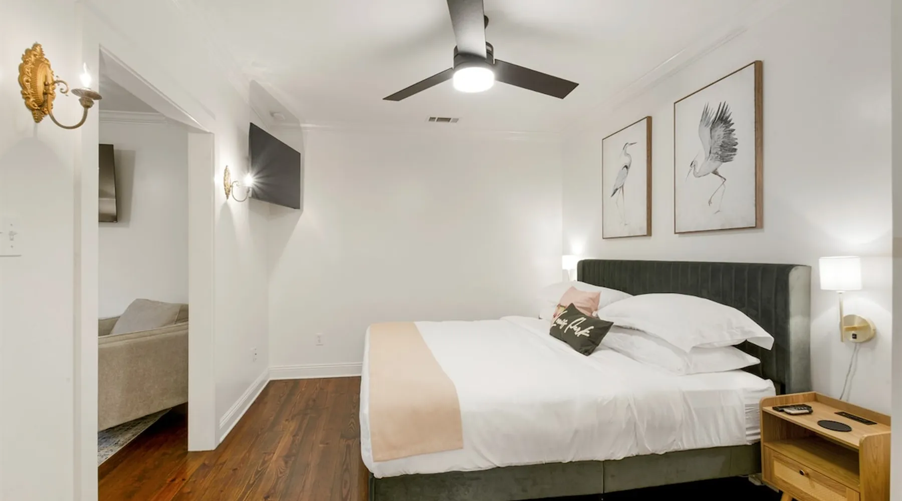Welcome to Louis Park Hotel, an exclusive gated property steps from the French Quarter. Perfect for group getaways, reunions, weddings, and company retreats, this historic property blends New Orleans charm with boutique hotel comfort. The compound features 11 private guest houses with modern amenities, 12 parking spots, and a landscaped courtyard with outdoor seating — ideal for cocktails, music, or coffee. Each suite honors local jazz legends and is equipped with AC, Wi-Fi, and plush bedding. The space The Al Hirt Guest House sleeps up to eight guests in two bedrooms, each with two queen beds. A full bathroom with a bathtub is accessed through the second bedroom. Guests enjoy direct access to our full kitchen and lobby space, The Commons. The King Oliver Guest House accommodates up to four guests with one king bedroom and an attached living room featuring a queen sleeper sofa. Highlights include exposed brick walls and beams, a full bathroom with a walk-in shower, and direct access to the landscaped courtyard. The Bolden Guest House offers space for up to four guests with a king bedroom and an attached living room with a queen sleeper sofa. Its exposed brick construction, renovated bathroom with a tub and walk-in shower, and direct access to the landscaped courtyard. The White Guest House is a serene retreat for two guests, offering a king bedroom with blackout curtains, a cozy seating area, and a renovated bathroom with walk-in shower. Guests can relax in the landscaped courtyard just outside the door. The Mayfield Guest House is designed for up to four guests, featuring a king bedroom, an attached living room with a queen sleeper sofa, and a renovated bathroom with a modern shower. The Shorty Guest House sleeps four and includes a king bedroom and an attached living room with a queen sleeper sofa. The exposed historic beams, renovated bathroom with tub and separate walk-in shower make this guest house a cozy option. The Connick Guest House accommodates six guests with two bedrooms: one with a king bed and the other with a queen bed and a queen sleeper sofa. Its Jack-and-Jill bathroom and courtyard access offer convenience and comfort. The Kermit Guest House is ideal for up to four guests, featuring a king bedroom, a separate living room with a queen sleeper sofa, a bathroom with walk-in shower, and 11-foot ceilings. Direct access to the courtyard compliments the space. The Fountain Guest House accommodates up to six guests with one bedroom offering two queen beds and an attached living room with a queen sleeper sofa. The renovated bathroom with a walk-in shower and courtyard access ensures a comfortable stay. The Marsalis Guest House offers accommodations for up to eight guests. It features a king bedroom with a private gallery-style porch, an attached living room with a queen sleeper sofa, and a second bedroom with two queen beds. With a full-size kitchen, a Jacuzzi-style tub, and 11-foot ceilings, it’s both luxurious and spacious. The Armstrong Guest House sleeps four guests in one king bedroom and a queen sleeper sofa in the attached living room. It includes a compact kitchen, 11-foot ceilings, a Jacuzzi-style tub, and a private side gallery-style porch. Guest access Guests renting the entire property have exclusive use of all 11 guest houses, the landscaped courtyard, and the private parking lot. Each guest house is fully equipped for a comfortable stay, with private bathrooms, premium linens, and thoughtful amenities. Other things to note • Sleeping Arrangements: 14 bedrooms with king or queen beds, plus sleeper sofas in living rooms. • Bathrooms: 12.5 modern bathrooms, some with Jacuzzi tubs or walk-in showers. • Kitchen Access: Full kitchens in Al Hirt and Marsalis, compact kitchens in other guest houses. • Outdoor Spaces: Landscaped courtyard with seating and secure on-site parking for 8–11 vehicles. Registration details 24-XSTR-18160