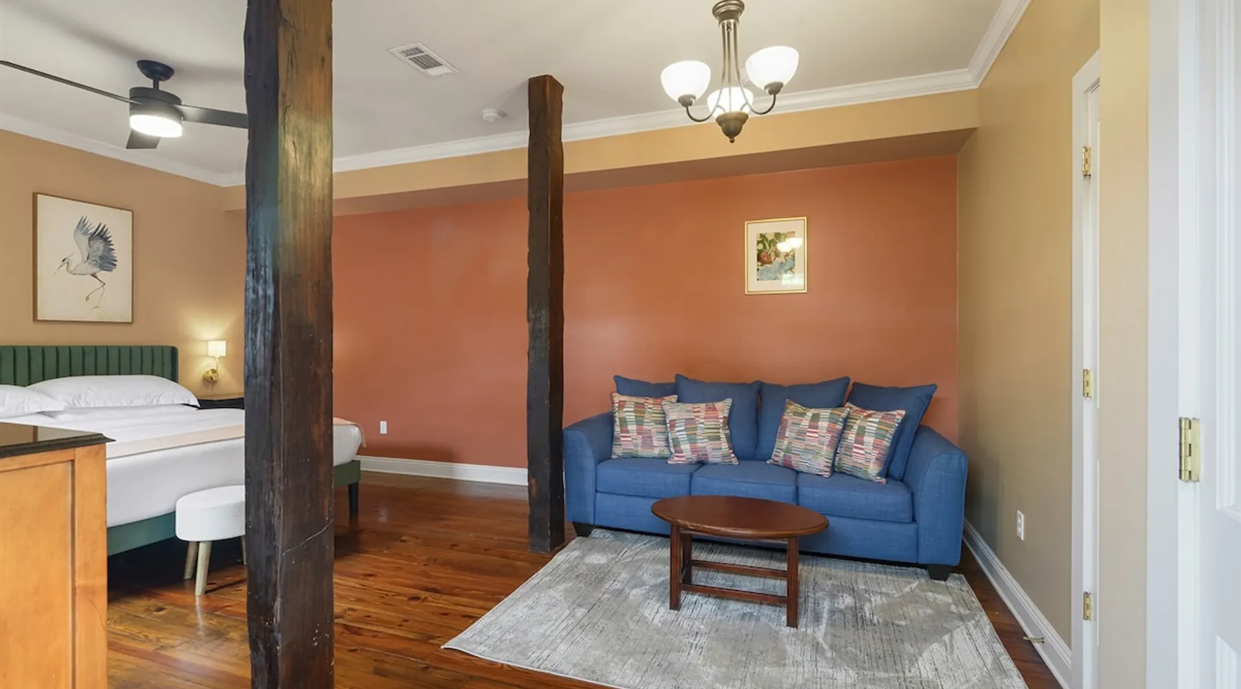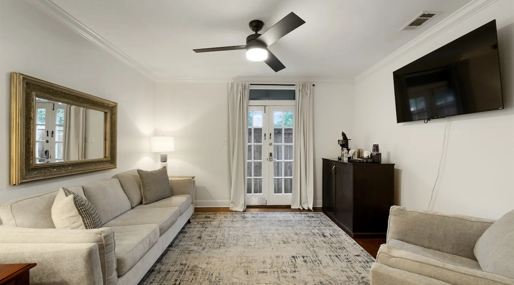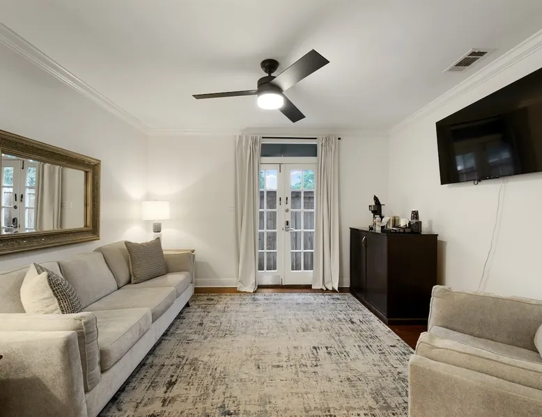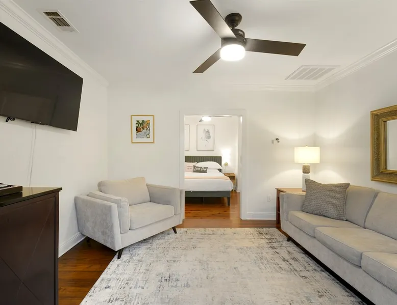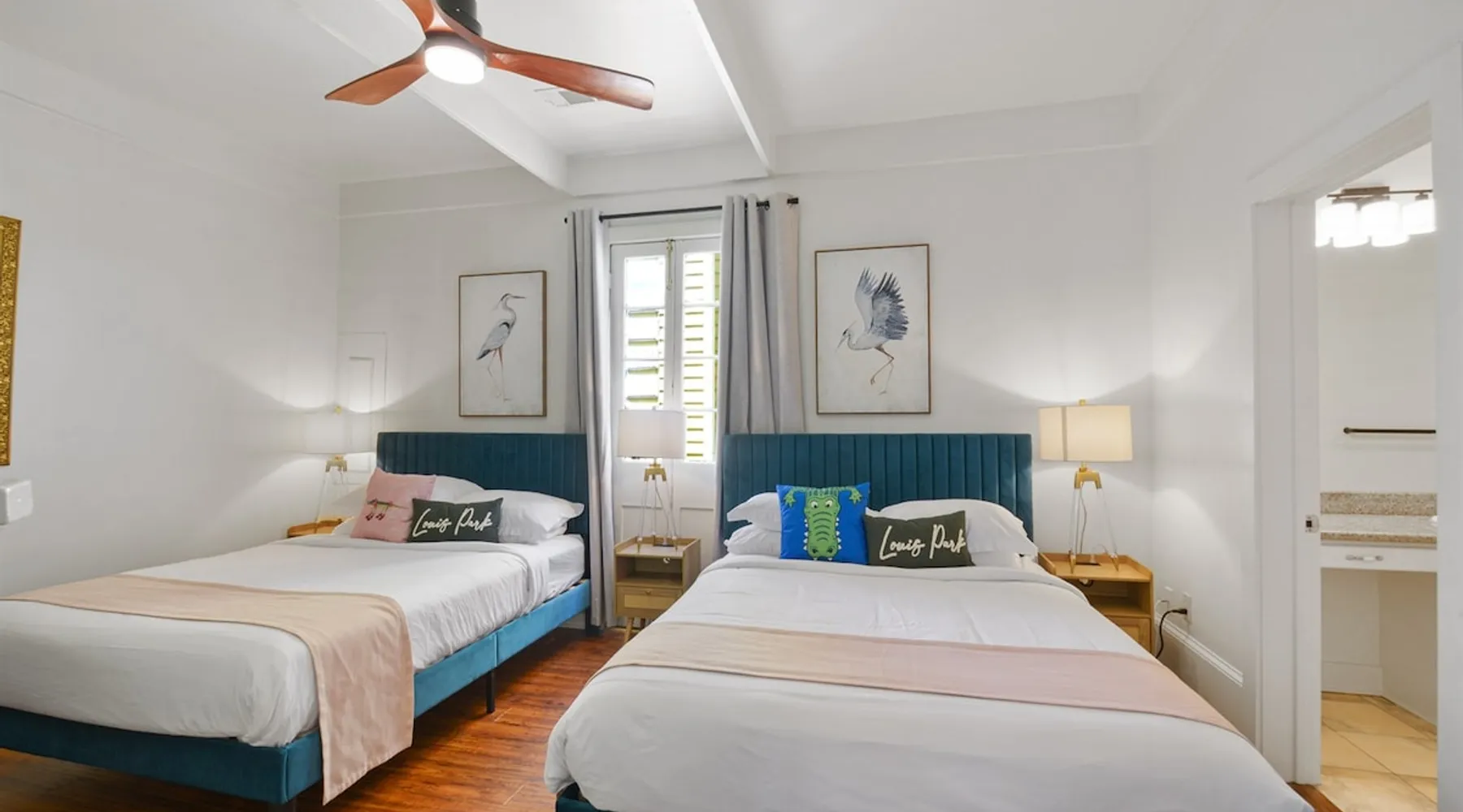The Parkside Villas at Louis Park Hotel is a gated retreat steps from the French Quarter. With 6 guest houses, 7 bedrooms, 6 baths, and 9 real beds (plus 4 sleeper sofas) it sleeps up to 26 guests and is perfect for reunions, weddings, corporate and special events. Walk easily to New Orleans’ vibrant music, dining, and cultural landmarks, then return to lush courtyards, secure parking, and modern comfort infused with authentic charm. The space The Al Hirt Guest House sleeps up to eight guests in two bedrooms, each with two queen beds. A full bathroom with a bathtub is accessed through the second bedroom. Guests enjoy direct access to our full kitchen and lobby space, The Commons. The King Oliver Guest House accommodates up to four guests with one king bedroom and an attached living room featuring a queen sleeper sofa. Highlights include exposed brick walls and beams, a full bathroom with a walk-in shower, and direct access to the landscaped courtyard. The Bolden Guest House offers space for up to four guests with a king bedroom and an attached living room with a queen sleeper sofa. Its exposed brick construction, renovated bathroom with a tub and walk-in shower, and direct access to the landscaped courtyard. The White Guest House is a serene retreat for two guests, offering a king bedroom with blackout curtains, a cozy seating area, and a renovated bathroom with walk-in shower. Guests can relax in the landscaped courtyard just outside the door. The Mayfield Guest House is designed for up to four guests, featuring a king bedroom, an attached living room with a queen sleeper sofa, and a renovated bathroom with a modern shower. The Shorty Guest House sleeps four and includes a king bedroom and an attached living room with a queen sleeper sofa. The exposed historic beams, renovated bathroom with tub and separate walk-in shower make this guest house a cozy option. Guest access Guests have private access to the five guest houses included in the Parkside Villas, including all bedrooms, bathrooms, and living spaces. Guests have additional shared access to the landscaped courtyard and The Commons kitchen and lobby. Additional amenities include gated off street parking for 5 vehicles Other things to note Guests who have booked the Parkside Villas will enjoy private access to 6 of the guest houses at Louis Park Hotel and shared access to the landscaped courtyard. Five complimentary off street parking spaces are included in the reservation. Registration Details 24-XSTR-18160