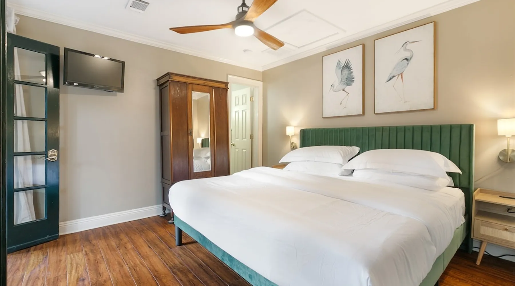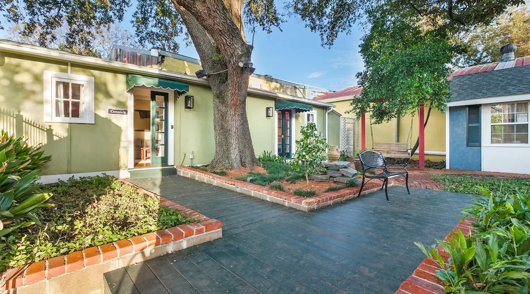 Welcome to the Connick Guest House, a tribute to Harry Connick Jr., at Louis Park Hotel. This two-bedroom retreat features a king bed in one room and a queen bed with a queen sleeper sofa in the second, connected by a Jack-and-Jill bathroom. Located in a secure, gated compound with a serene garden swing, it offers top-rated linens, Nexxus toiletries, and easy access to world-class dining and the French Quarter, ensuring an unforgettable New Orleans experience for small groups or families. The space The Connick Guest House is a two-bedroom retreat featuring elegant furnishings, premium amenities, and a connection to New Orleans’ rich culture. One bedroom includes a king bed, while the second features a queen bed and a queen sleeper sofa. The Jack and Jill bathroom provides convenience for guests. Step outside to the garden with a swing for moments of tranquility. Guest access Guests have private access to the Connick Guest House, including both bedrooms and the Jack and Jill bathroom. Guests have additional shared access to the landscaped courtyard and The Commons kitchen and lobby. Shared access to secure outdoor spaces and optional reserved parking is also available. Limited parking spaces within our secure lot are available for reservation at a cost of $20 per car per night. Free parking spaces can be found on St. Philip Street, and metered parking spots can be found along Rampart Street. Other things to note • Sleeping Arrangements: One king bed, one queen bed, and a queen sleeper sofa with a high-quality mattress. • Bathroom: Full Jack and Jill-style bathroom with premium Nexxus shampoo and conditioner. • Outdoor Space: Opens to a serene garden with a swing, ideal for relaxation. • Secure Compound: Located within a gated property with tranquil shared spaces. Registration Details 24-XSTR-18160