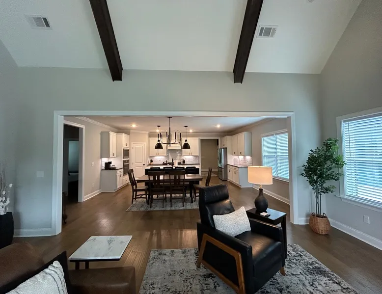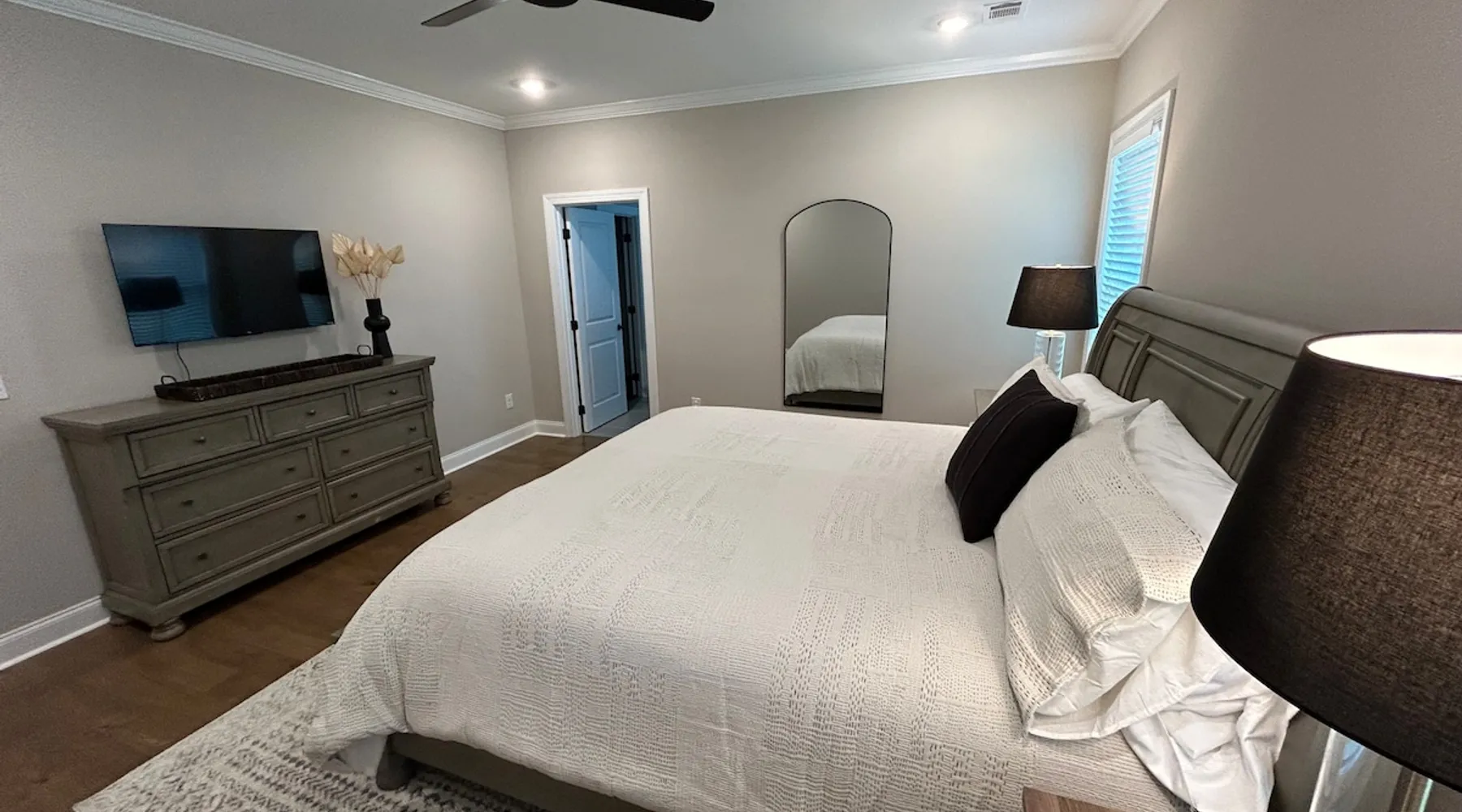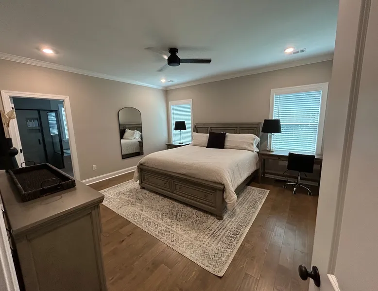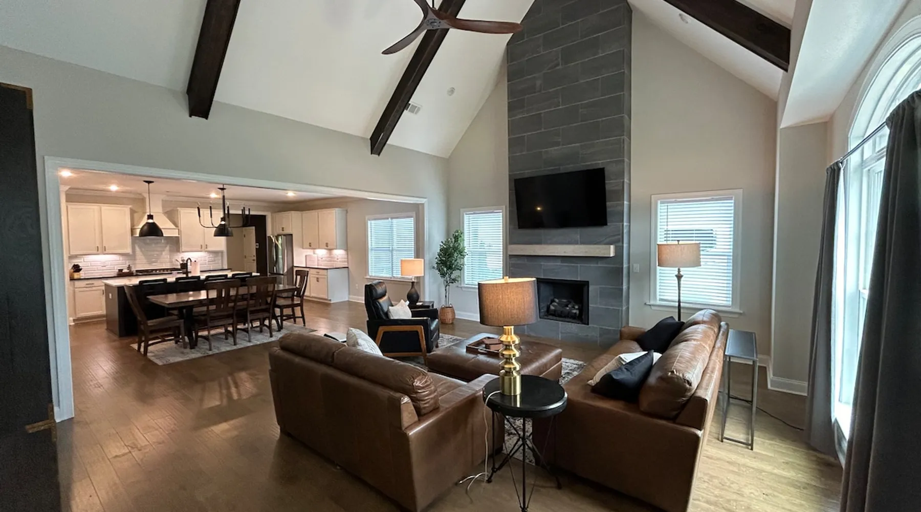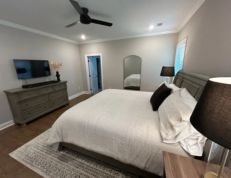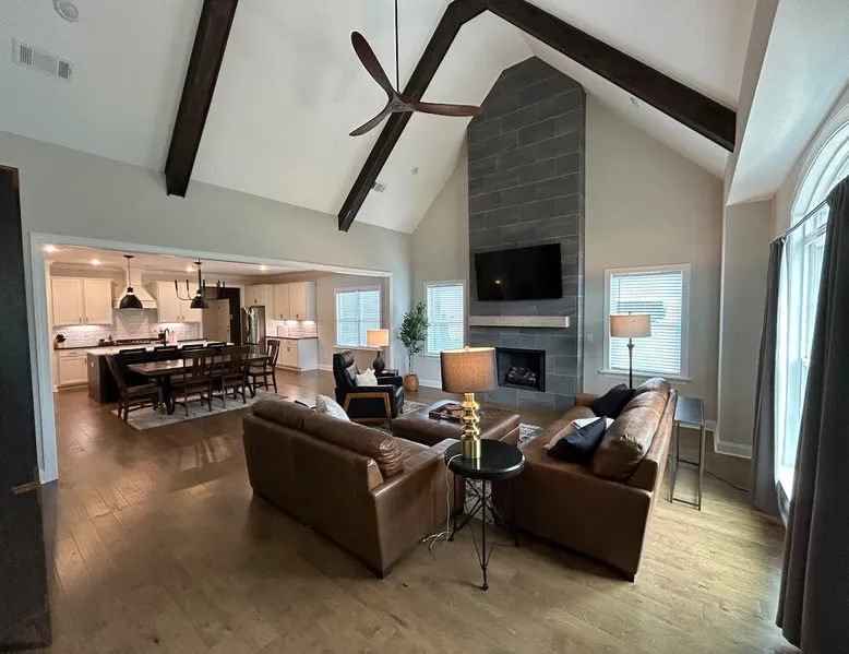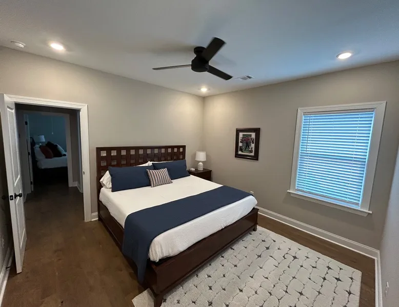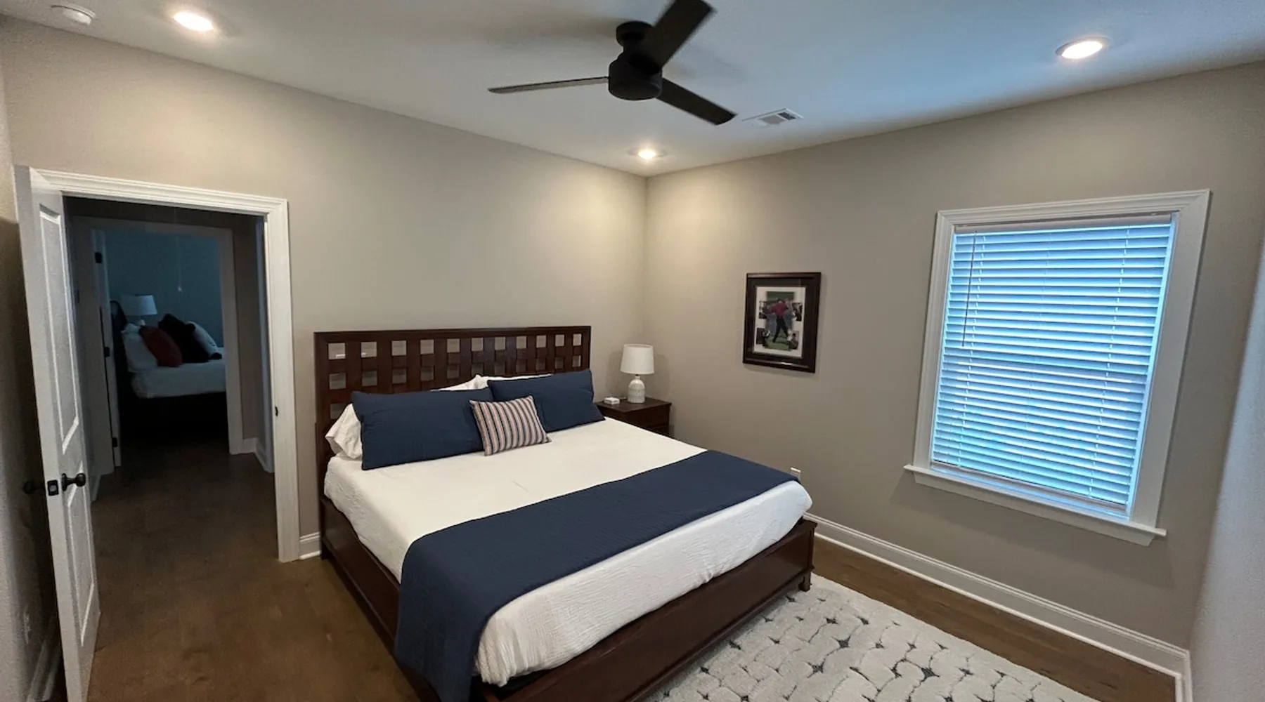 This new stylish 3 king bedroom and 2 full bath house is perfect for game day or getting way. Just 3 miles to Auburn University and by the Yarbrough Tennis Center within the Auburn University Club community. This home has an open living and dining room with a fully stocked kitchen featuring granite countertops, a pantry, a large island/eat-at bar and full dining table. Outdoor areas include a back patio, outdoor dining, grill, fenced in yard and a game day garage with a TV and seating area.