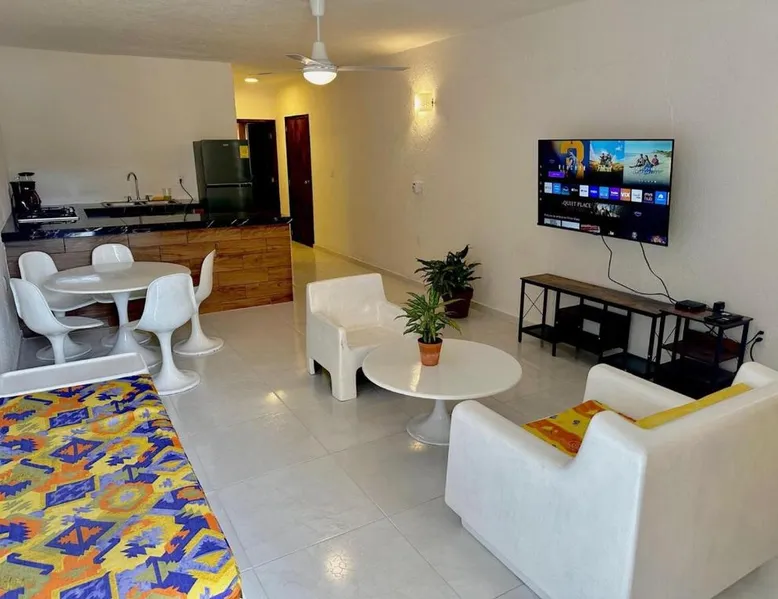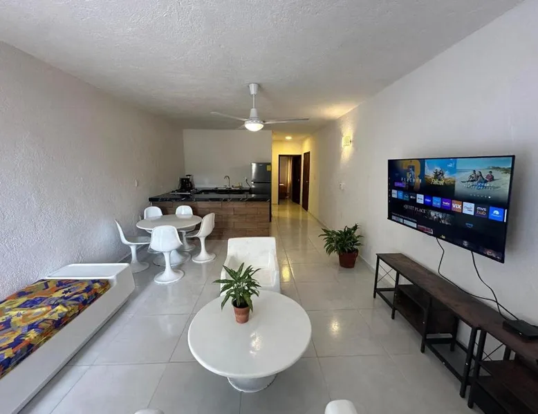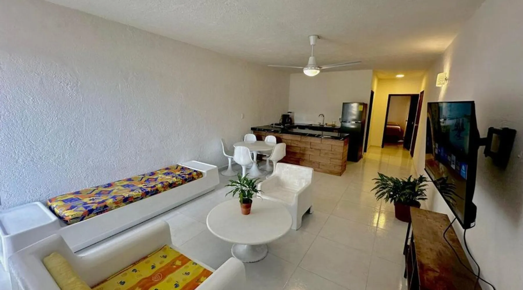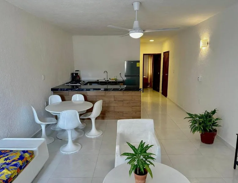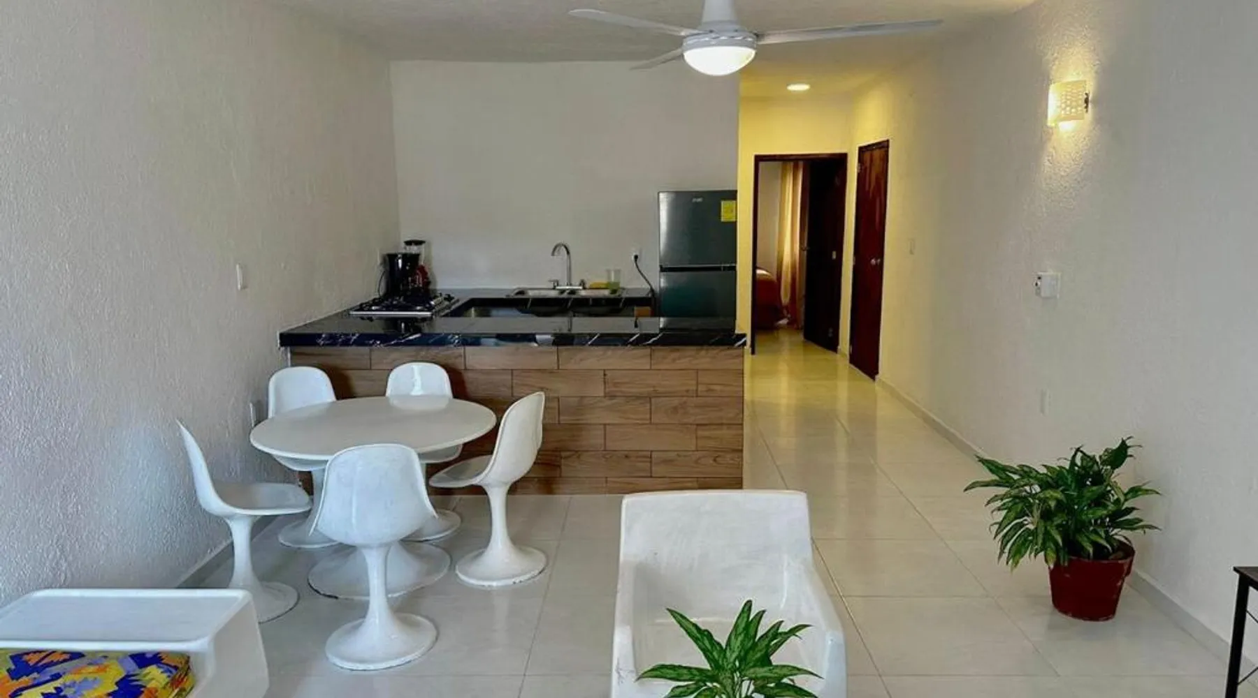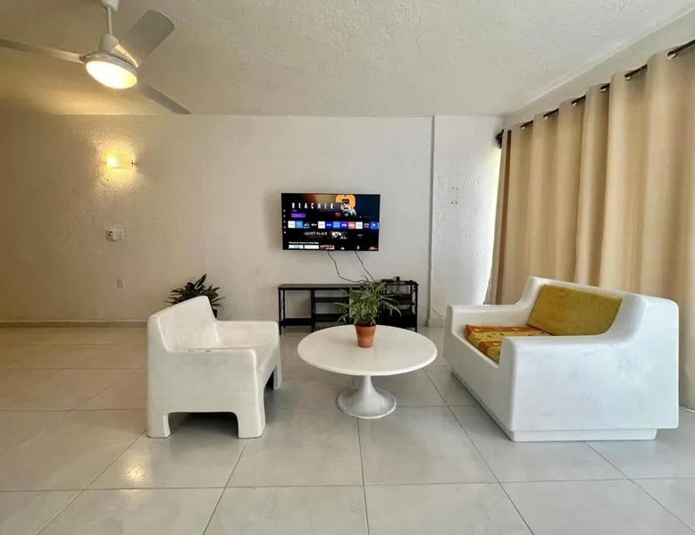 Beachfront Location: Depto #20 in Manzanillo offers direct beachfront access and stunning sea views. Guests can relax on the sandy shores just a short walk from Azul Beach. Comfortable Accommodations: The apartment features one bedroom and a bathroom, providing a cozy retreat. Family rooms cater to all travelers, ensuring a pleasant stay. Modern Amenities: Enjoy free WiFi, air-conditioning, a balcony, and a fully equipped kitchen with a refrigerator and tea and coffee maker. Additional amenities include a work desk, TV, and private entrance. Convenient Facilities: Free parking is available on-site. Reception staff speak English and Spanish, assisting guests with their needs. Nearby Attractions: Playa de Oro International Airport is 21 mi away. Las Hadas Golf Course lies 5 mi from the property, while the Swordfish Monument is 6.2 mi distant. The apartment's kitchen, which has a refrigerator and a tea and coffee maker, is available for cooking and storing food. This apartment features air conditioning, a private entrance, a flat-screen TV and a balcony. The unit offers 2 beds.