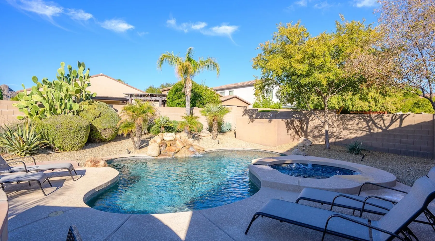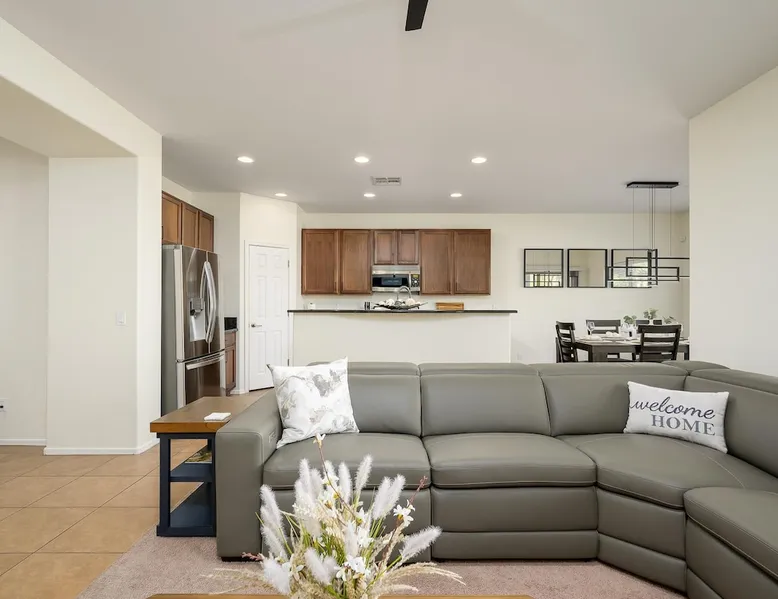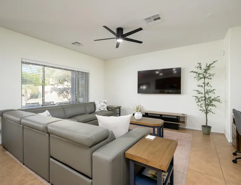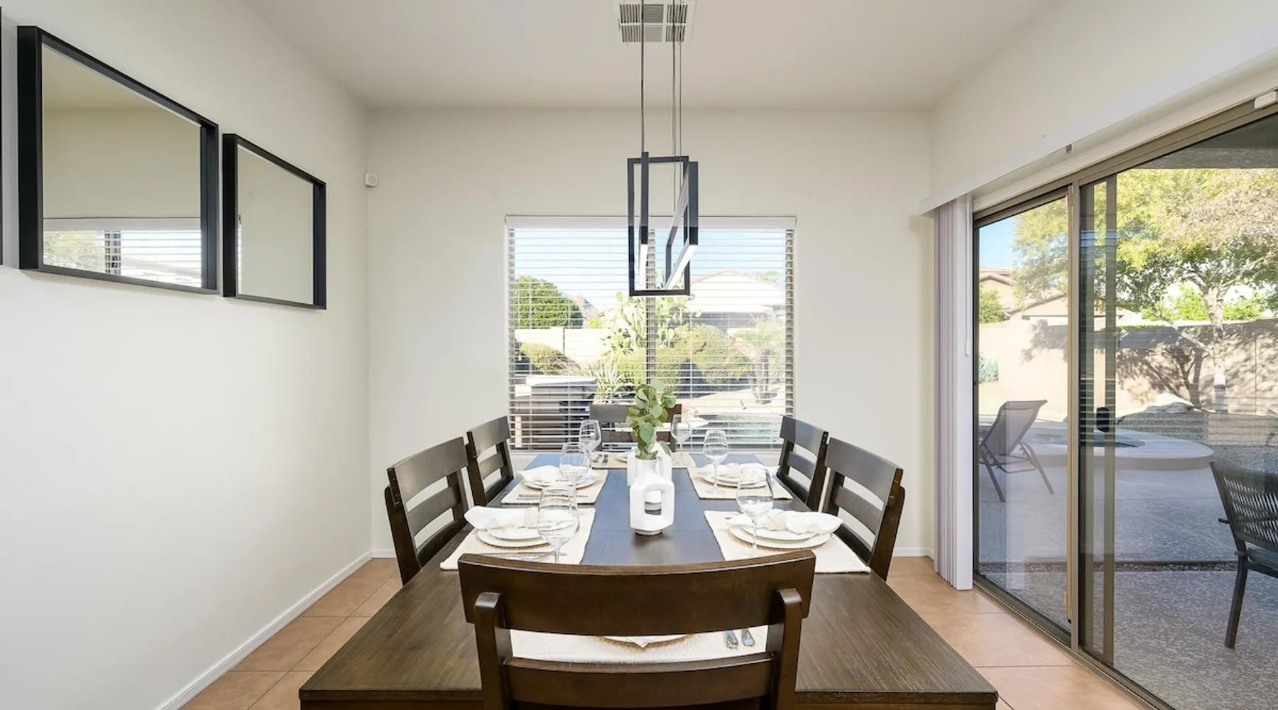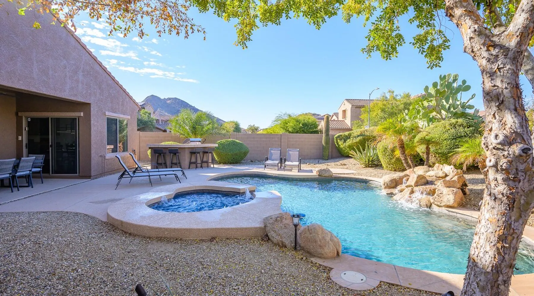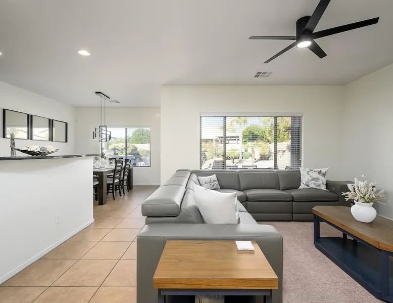 4 Bedroom, 2 bath sleeps 8. The space CASA STETSON - NEW to inventory. All new furnishings. ***Please read the description in its entirety. Please note that the calendar is always exact and up to date, so if it looks available, it is. Also, you can get an exact rate quote and even reserve the property online. Thanks, and I hope we can help with your upcoming visit! All linens, bath & pool towels provided; free WIFI. Casa Stetson is a private single family home all on one level with no stairs; located in a quiet neighborhood of north Phoenix, just off of highway 17. The great room offers a huge couch and TV (cable channels included) that opens up to the kitchen with breakfast bar and inside dining. You will also find a desk in the living room to send those necessary work emails. A sliding door leads you to outdoor dining overlooking the sparkling pool and hot tub. The pool can be heated for additional charge. The hot tub can be used at leisure at no cost. 4 chaise lounge chairs to get some AZ sun. Built in BBQ and outdoor bar to enjoy and cocktail while helping the cook. For bedrooms you will have 2 King bedrooms and 2 queen bedrooms. TV in the master bedroom. 2 car garage, parking available in driveway as well. Laundry room with full size washer/dryer. Fully gated yard. ***Please note $350/week ($1250/month) fee to heat the pool (to 85 degrees) in the winter if desired; upon request only. The heated spa can be used at your leisure. ***Dog allowed with approval only. A "Pet Fee" will be added to your booking when reserving online. Pet Fees are non-refundable and are not to cover any damages, extra cleaning or picking up your dogs poop. ***$400/month Electric Cap in the summer months (June through September). Guests agree to this policy upon booking and are liable for the overages. You can get an exact price quote and price breakdown as well as confirm a booking on this page. We accept Visa, MasterCard, Discover, American Express & Electronic Check at no additional costs. 50% of total due upon reservation confirmation 50% of total due 30 days from arrival If booking within 30 days of arrival, 100% due upon booking ***Guests are liable for any damages caused to the property Please note - OUR RATES & AVAILABILITY IS ALWAYS EXACT AND UP TO DATE ONLINE!