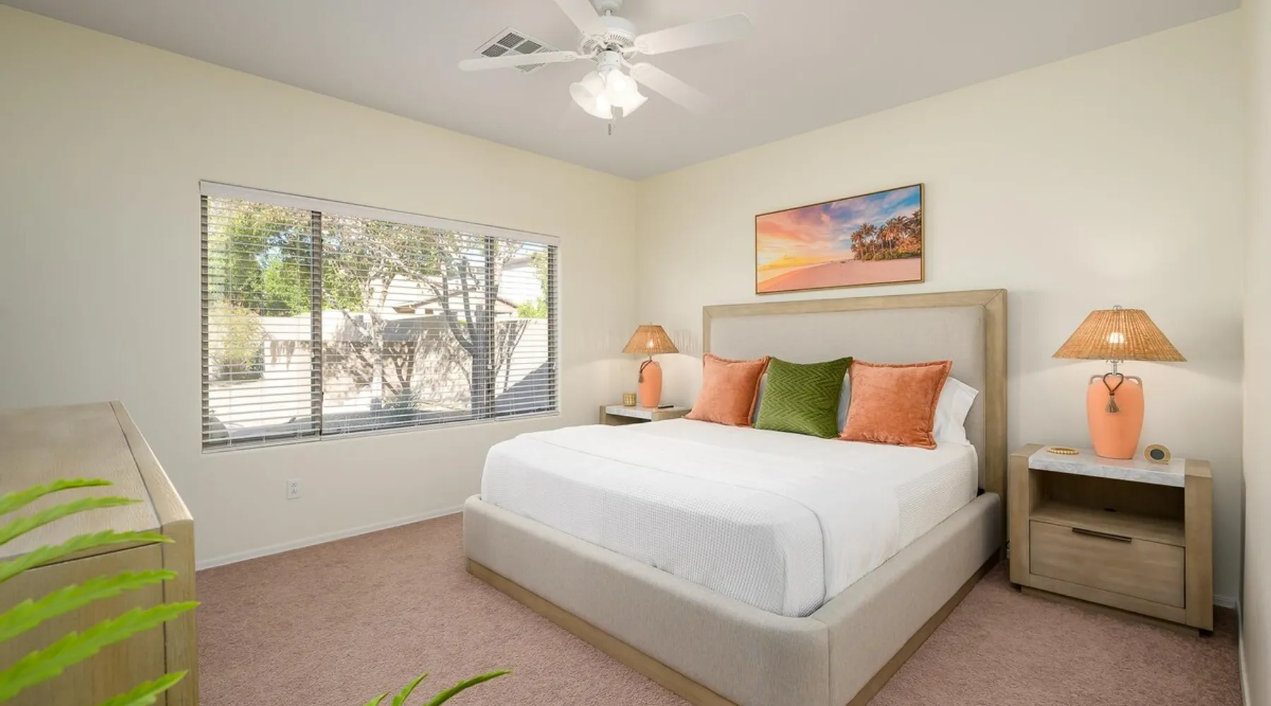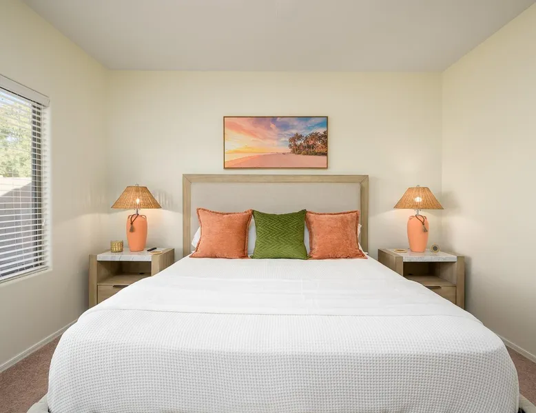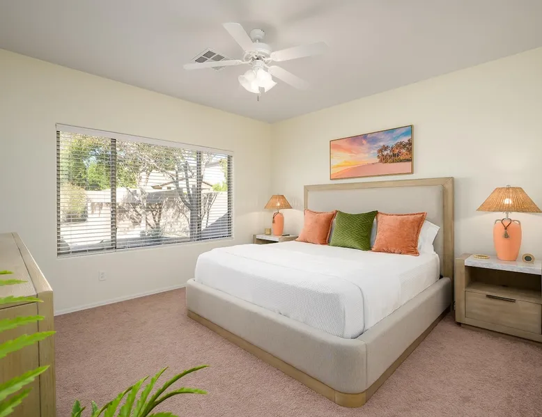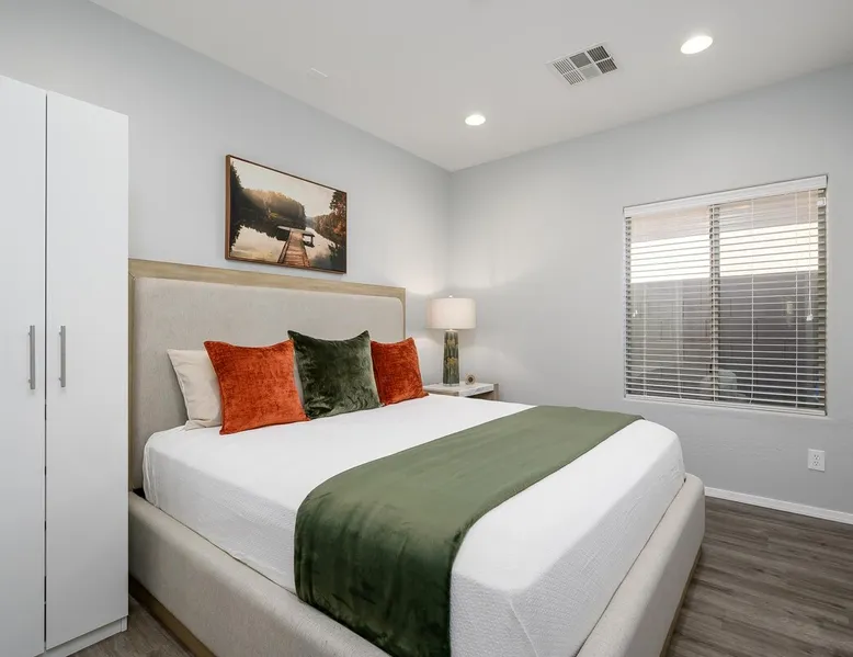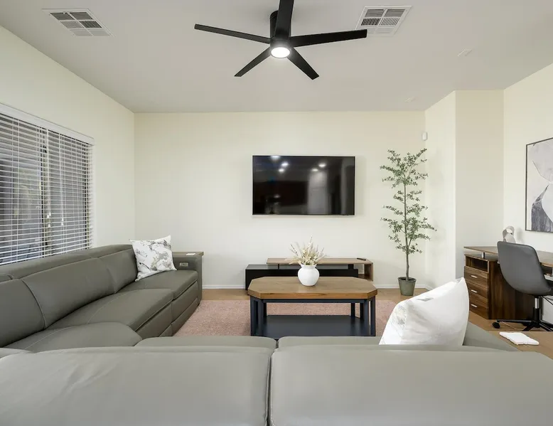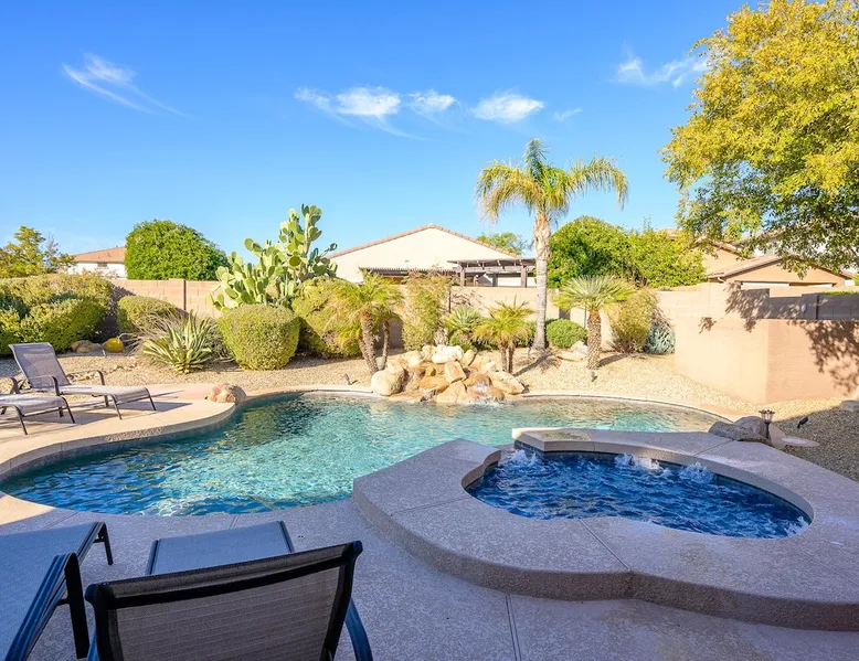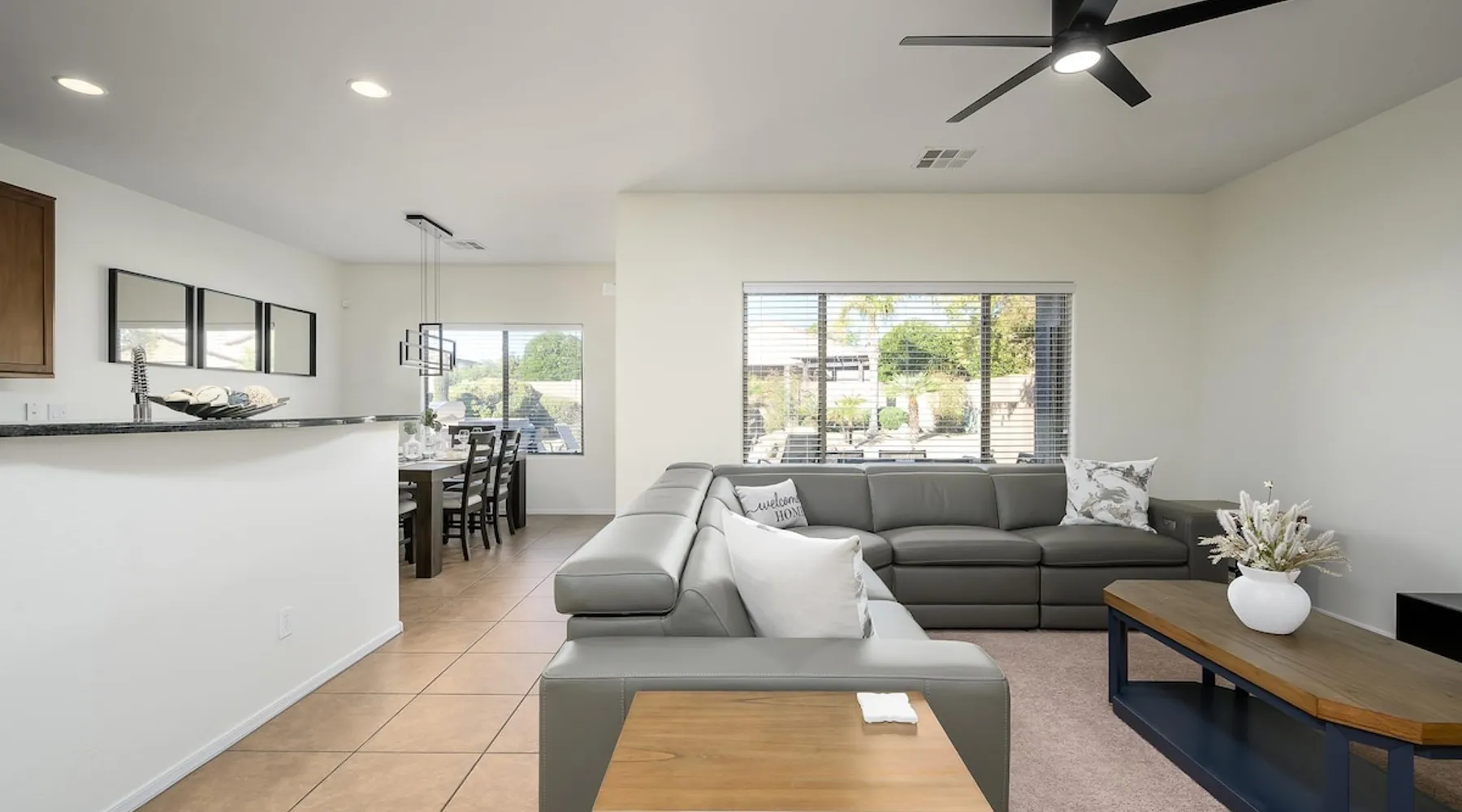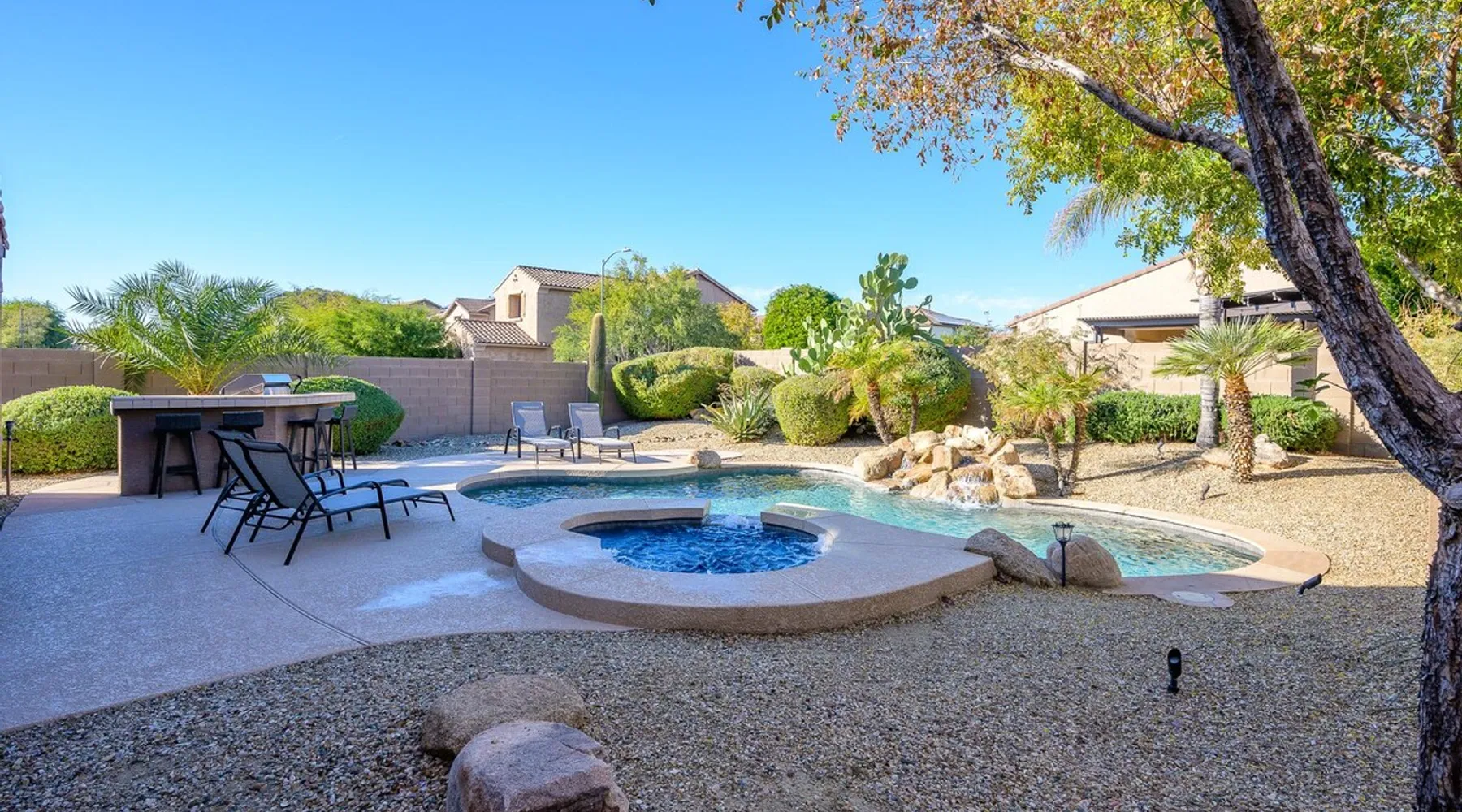 4 Bedroom, 2 bath sleeps 8. The space CASA STETSON - NEW to inventory. All new furnishings. ***Please read the description in its entirety. Please note that the calendar is always exact and up to date, so if it looks available, it is. Also, you can get an exact rate quote and even reserve the property online. Thanks, and I hope we can help with your upcoming visit! All linens, bath & pool towels provided; free WIFI. Casa Stetson is a private single family home all on one level with no stairs; located in a quiet neighborhood of north Phoenix, just off of highway 17. The great room offers a huge couch and TV (cable channels included) that opens up to the kitchen with breakfast bar and inside dining. You will also find a desk in the living room to send those necessary work emails. A sliding door leads you to outdoor dining overlooking the sparkling pool and hot tub. The pool can be heated for additional charge. The hot tub can be used at leisure at no cost. 4 chaise lounge chairs to get some AZ sun. Built in BBQ and outdoor bar to enjoy and cocktail while helping the cook. For bedrooms you will have 2 King bedrooms and 2 queen bedrooms. TV in the master bedroom. 2 car garage, parking available in driveway as well. Laundry room with full size washer/dryer. Fully gated yard. ***Please note $350/week ($1250/month) fee to heat the pool (to 85 degrees) in the winter if desired; upon request only. The heated spa can be used at your leisure. ***Dog allowed with approval only. A "Pet Fee" will be added to your booking when reserving online. Pet Fees are non-refundable and are not to cover any damages, extra cleaning or picking up your dogs poop. ***$400/month Electric Cap in the summer months (June through September). Guests agree to this policy upon booking and are liable for the overages. You can get an exact price quote and price breakdown as well as confirm a booking on this page. We accept Visa, MasterCard, Discover, American Express & Electronic Check at no additional costs. 50% of total due upon reservation confirmation 50% of total due 30 days from arrival If booking within 30 days of arrival, 100% due upon booking ***Guests are liable for any damages caused to the property Please note - OUR RATES & AVAILABILITY IS ALWAYS EXACT AND UP TO DATE ONLINE!