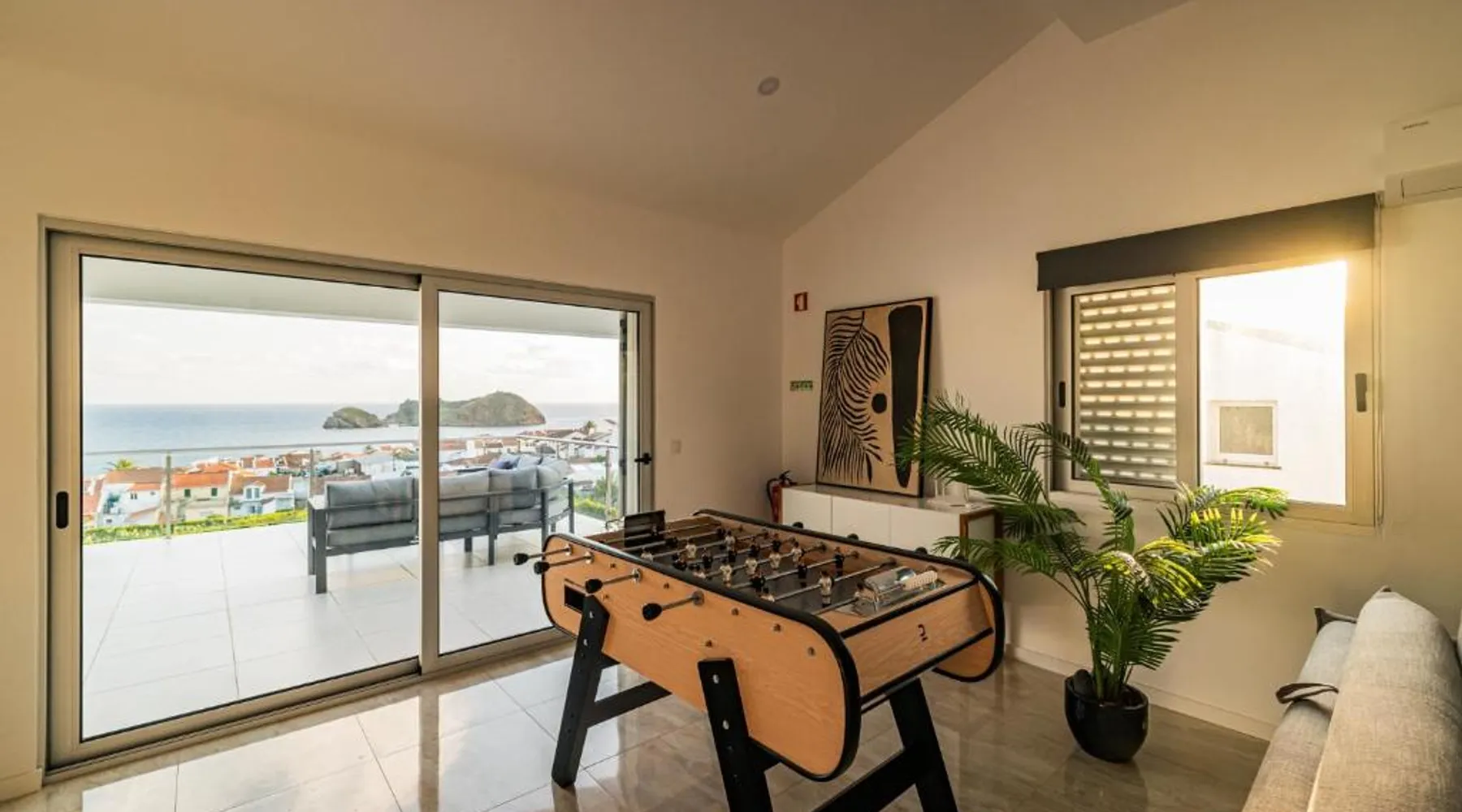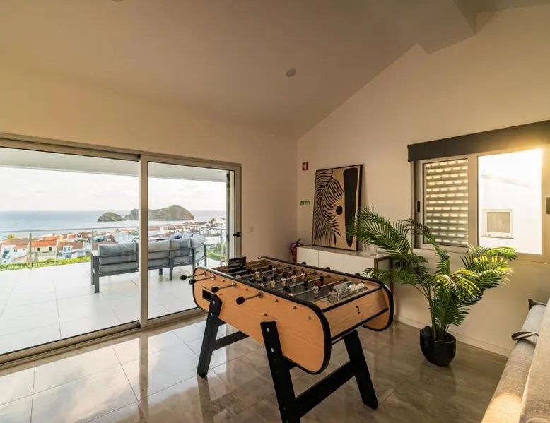 Spacious Accommodations: The Islet Retreat in Vila Franca Do Campo offers a spacious holiday home with five bedrooms and five bathrooms. The property features a living room, family rooms, and a games room, ensuring comfort for all guests. Outdoor Amenities: Guests can enjoy a sun terrace and free WiFi, perfect for relaxation. The outdoor fireplace and hot tub provide additional leisure options, while the outdoor seating area and bicycle parking cater to active travelers. Local Attractions: Praia do Corpo Santo is a 7-minute walk away, while Ilheu de Vila Franca do Campo lies less than 0.6 mi from the property. João Paulo II Airport is 17 mi distant, providing convenient travel connections. This holiday home features a hot tub. Boasting a private entrance, this air-conditioned holiday home features 2 living rooms, 5 separate bedrooms and 5 bathrooms with a shower and a bidet. Guests will find a stovetop, a refrigerator, a dishwasher and kitchenware in the kitchen. The holiday home also comes with a barbecue. The spacious holiday home features a washing machine, a tea and coffee maker, a seating area, a flat-screen TV with satellite channels, as well as sea views. The unit has 10 beds.