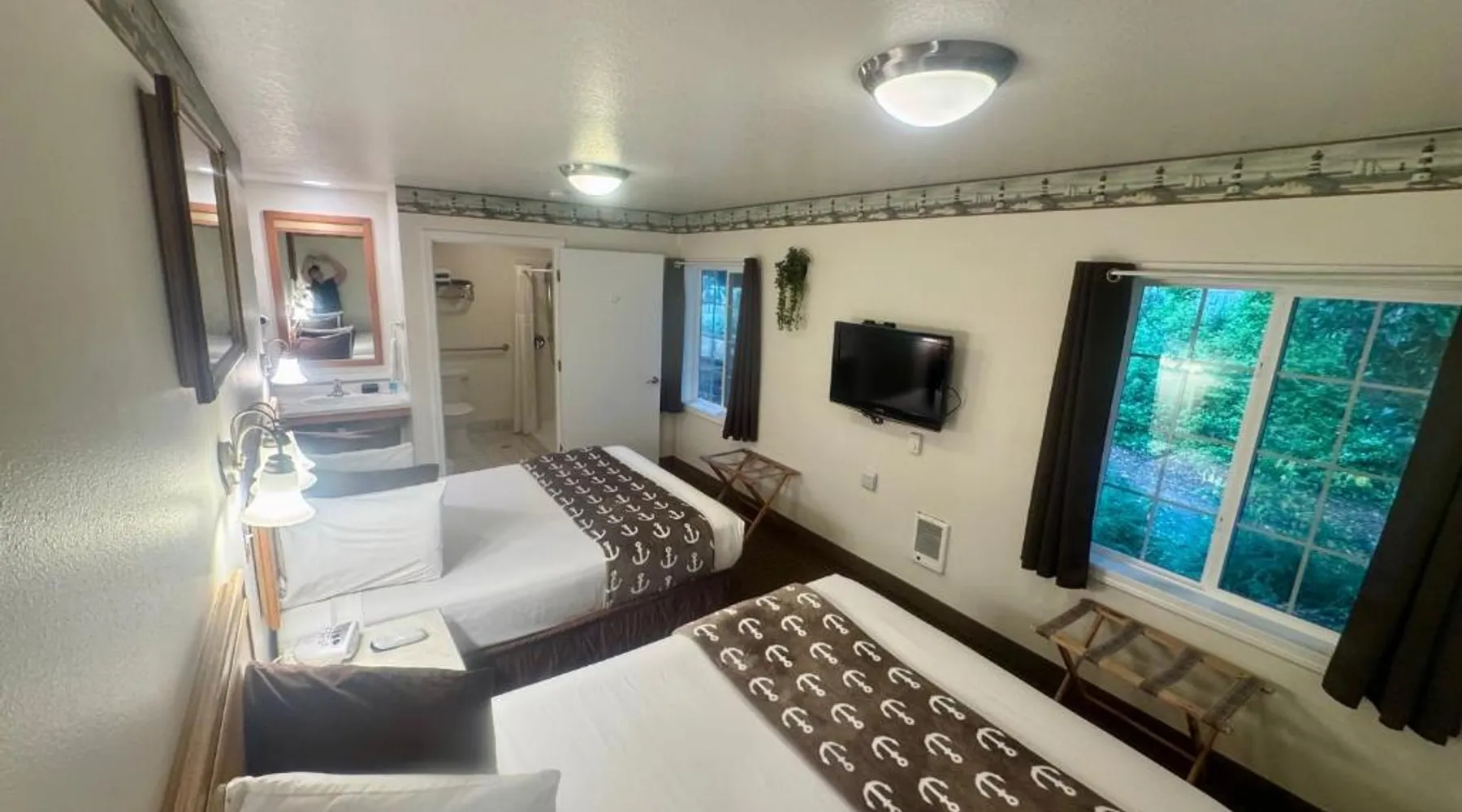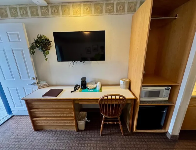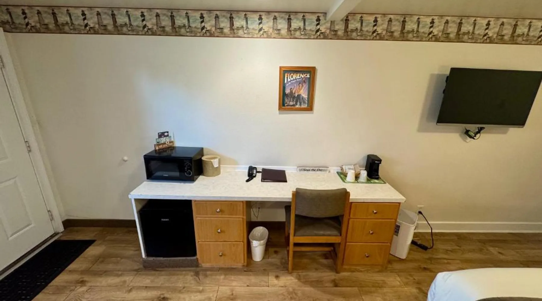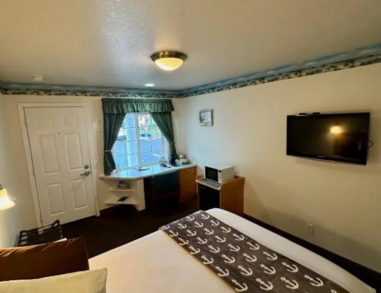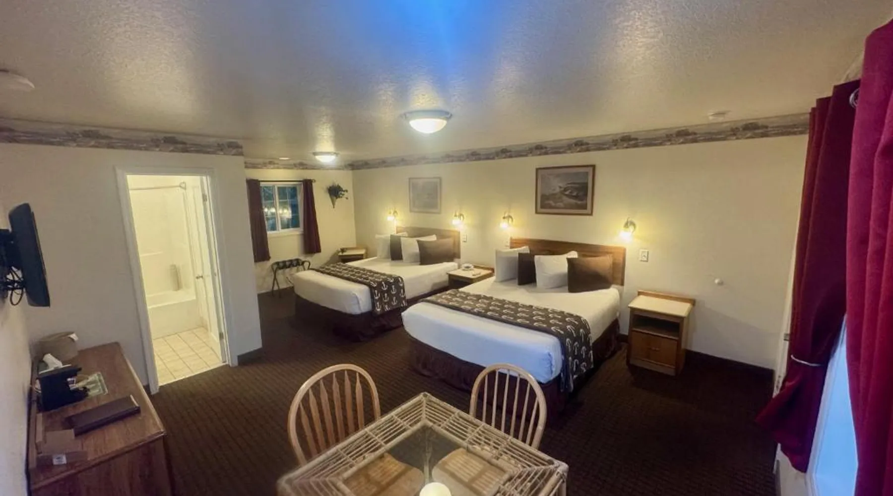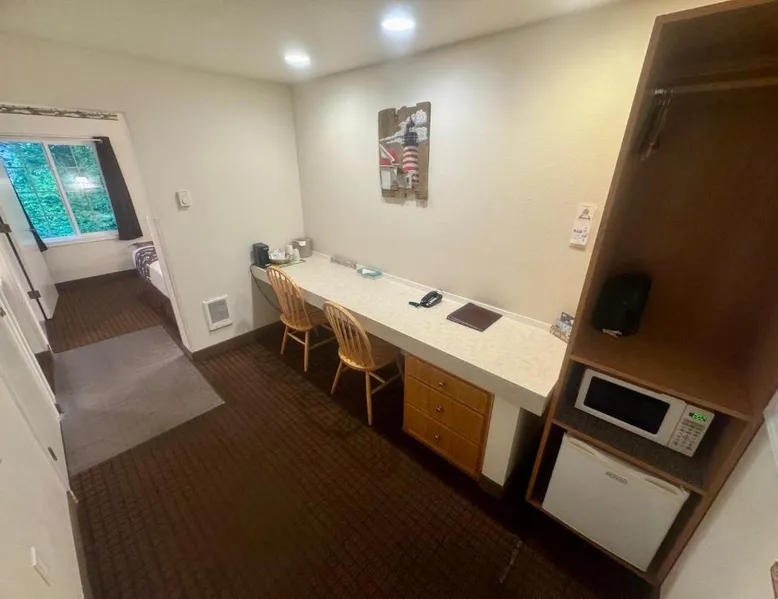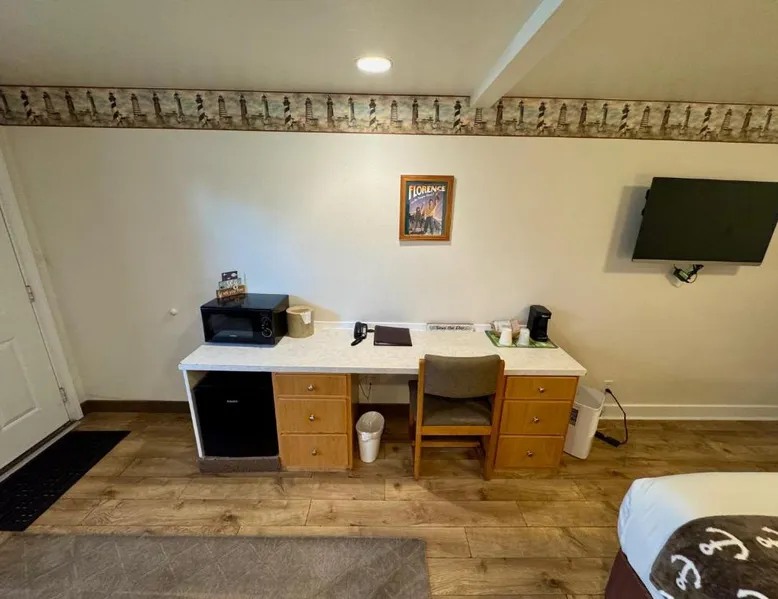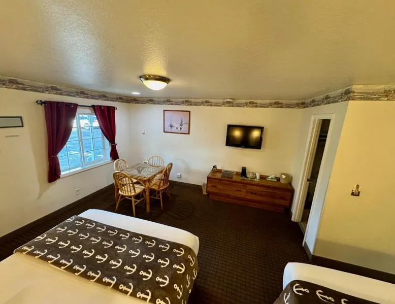 Comfortable Accommodations: Ocean Breeze Motel in Florence offers family rooms with private bathrooms, featuring free WiFi, tea and coffee makers, and work desks. Each room includes a refrigerator, microwave, TV, and free toiletries. Relaxing Facilities: Guests can enjoy a garden and outdoor fireplace, perfect for relaxation. The motel provides free on-site private parking, a minimarket, and a 24-hour front desk. Local Attractions: Located 13 mi from Sea Lion Caves and 14 mi from Heceta Head Lighthouse, the property is also close to Sutton Lake (1.6 mi) and Umpqua Lighthouse (25 mi). North Bend Municipal Airport is 45 mi away. Activities and Surroundings: Guests can engage in fishing, hiking, horse riding, and boating. The surrounding area offers scenic views and diverse activities for all visitors. The suite has 1 bedroom and 1 bathroom with a bath and free toiletries. The suite features a tea and coffee maker, a dining area, a carpeted floor, heating, as well as a flat-screen TV. The unit has 2 beds.