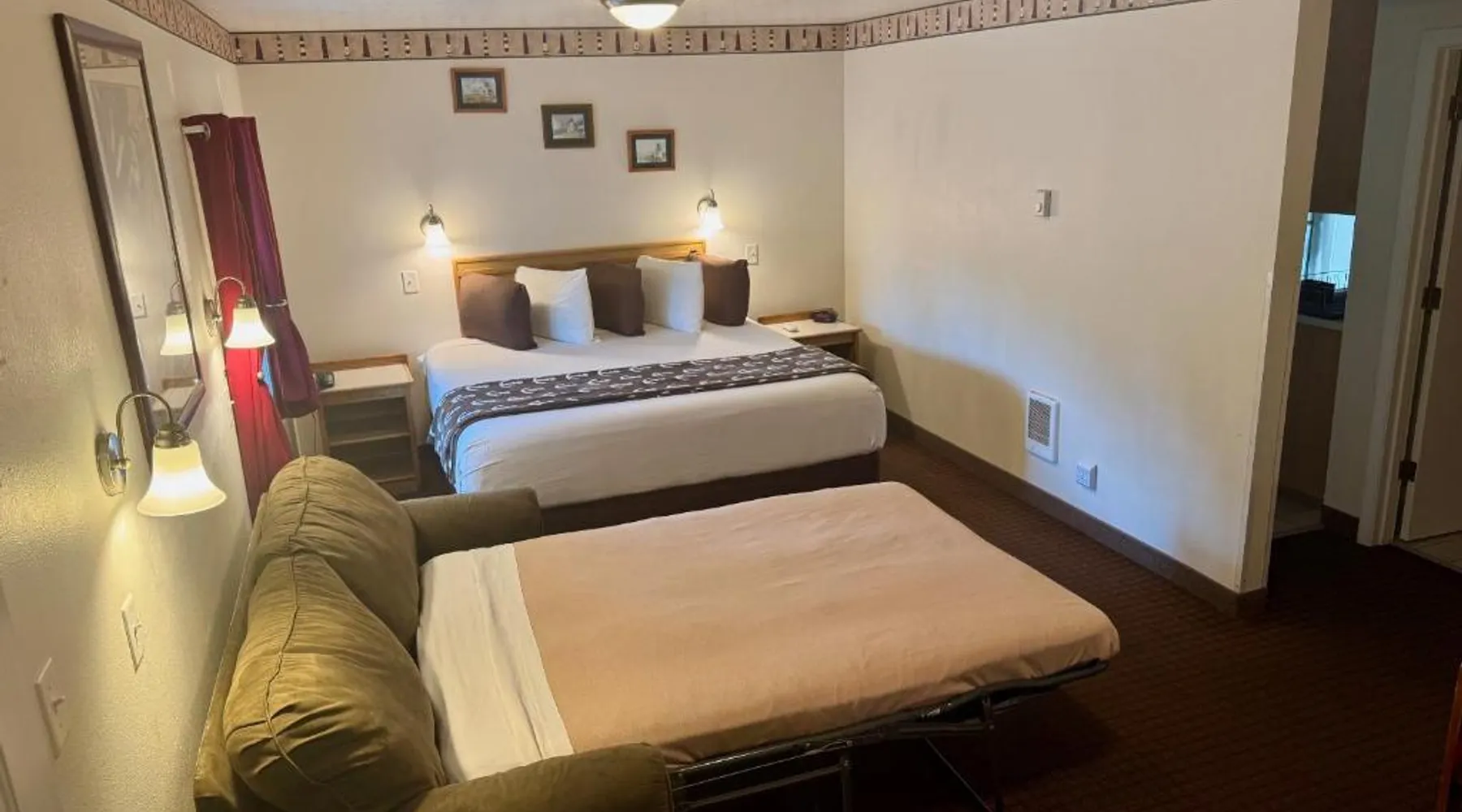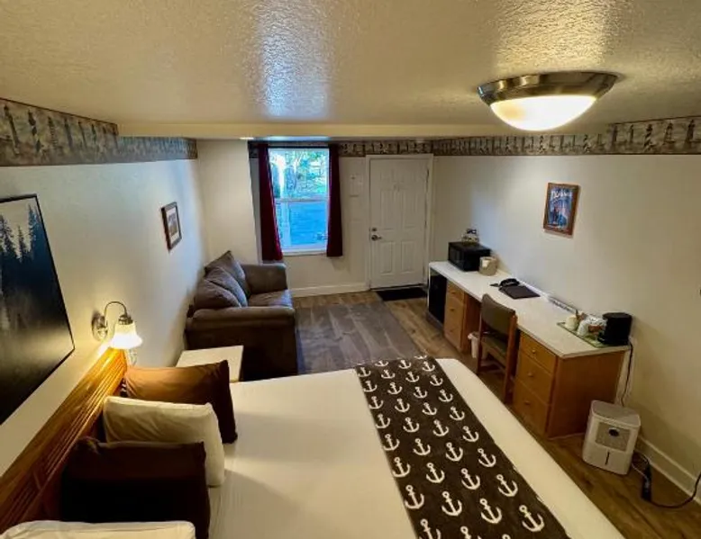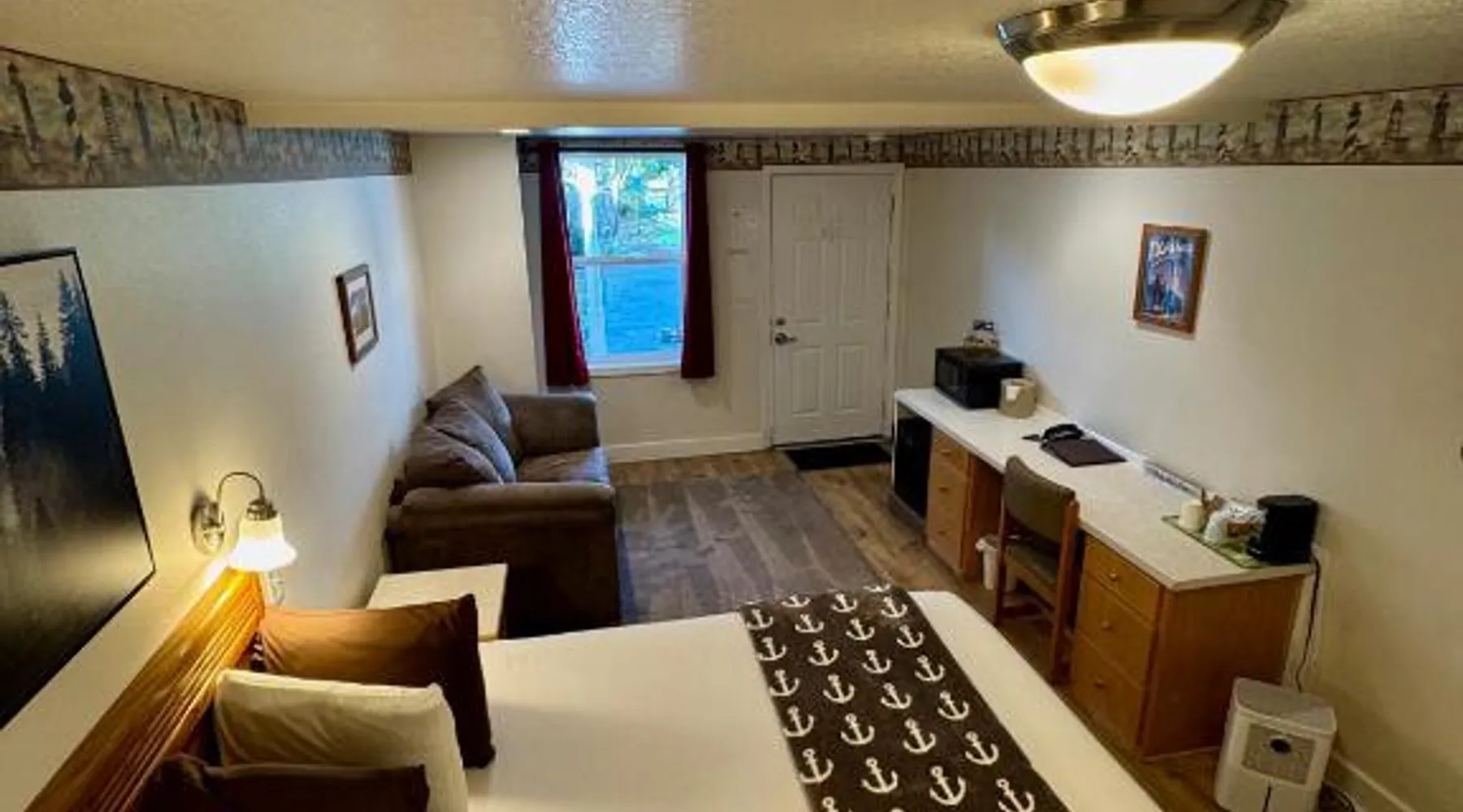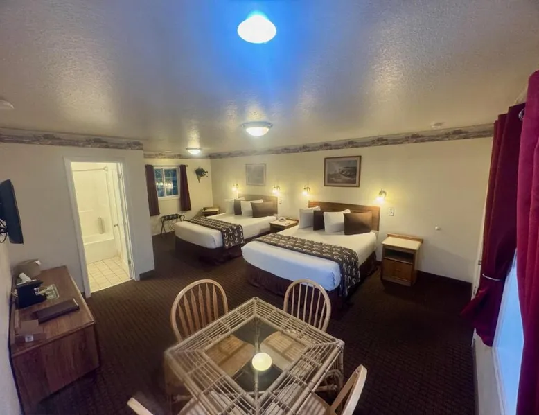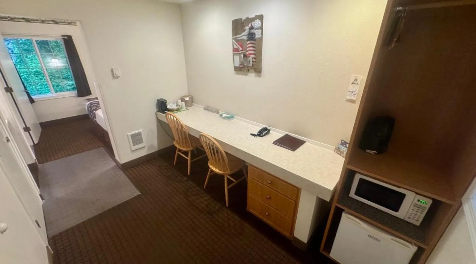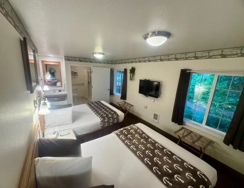 Comfortable Accommodations: Ocean Breeze Motel in Florence offers family rooms with private bathrooms, featuring free WiFi, tea and coffee makers, and work desks. Each room includes a refrigerator, microwave, TV, and free toiletries. Relaxing Facilities: Guests can enjoy a garden and outdoor fireplace, perfect for relaxation. The motel provides free on-site private parking, a minimarket, and a 24-hour front desk. Local Attractions: Located 13 mi from Sea Lion Caves and 14 mi from Heceta Head Lighthouse, the property is also close to Sutton Lake (1.6 mi) and Umpqua Lighthouse (25 mi). North Bend Municipal Airport is 45 mi away. Activities and Surroundings: Guests can engage in fishing, hiking, horse riding, and boating. The surrounding area offers scenic views and diverse activities for all visitors. The suite has 1 bedroom and 1 bathroom with a bath and free toiletries. The suite features a tea and coffee maker, a dining area, a carpeted floor, heating, as well as a flat-screen TV. The unit has 2 beds.