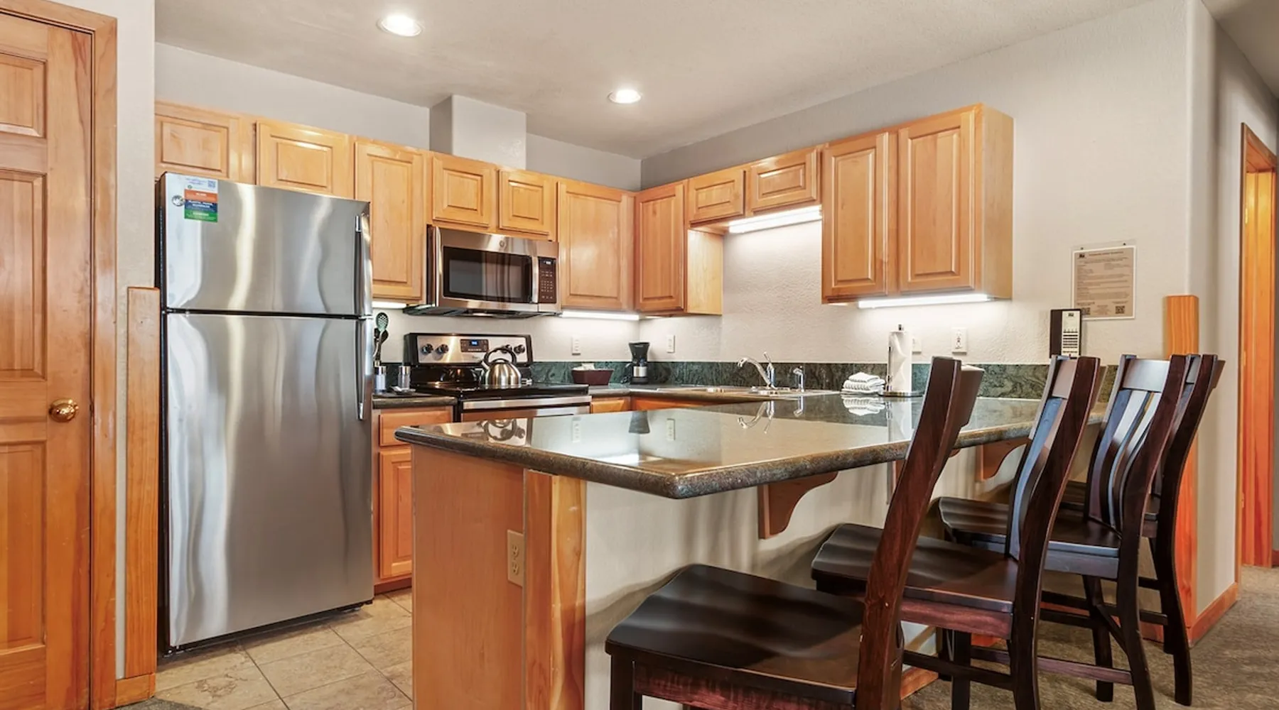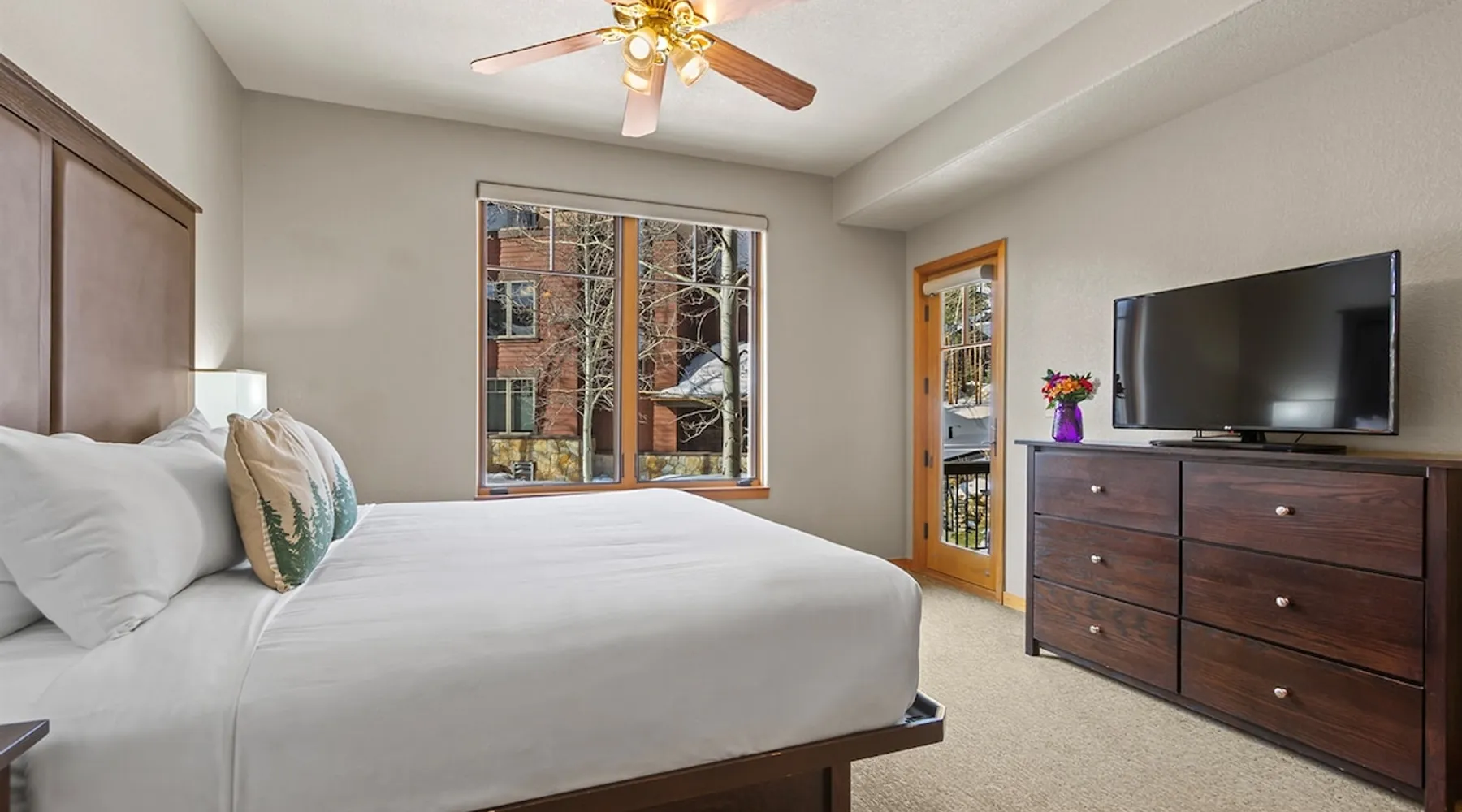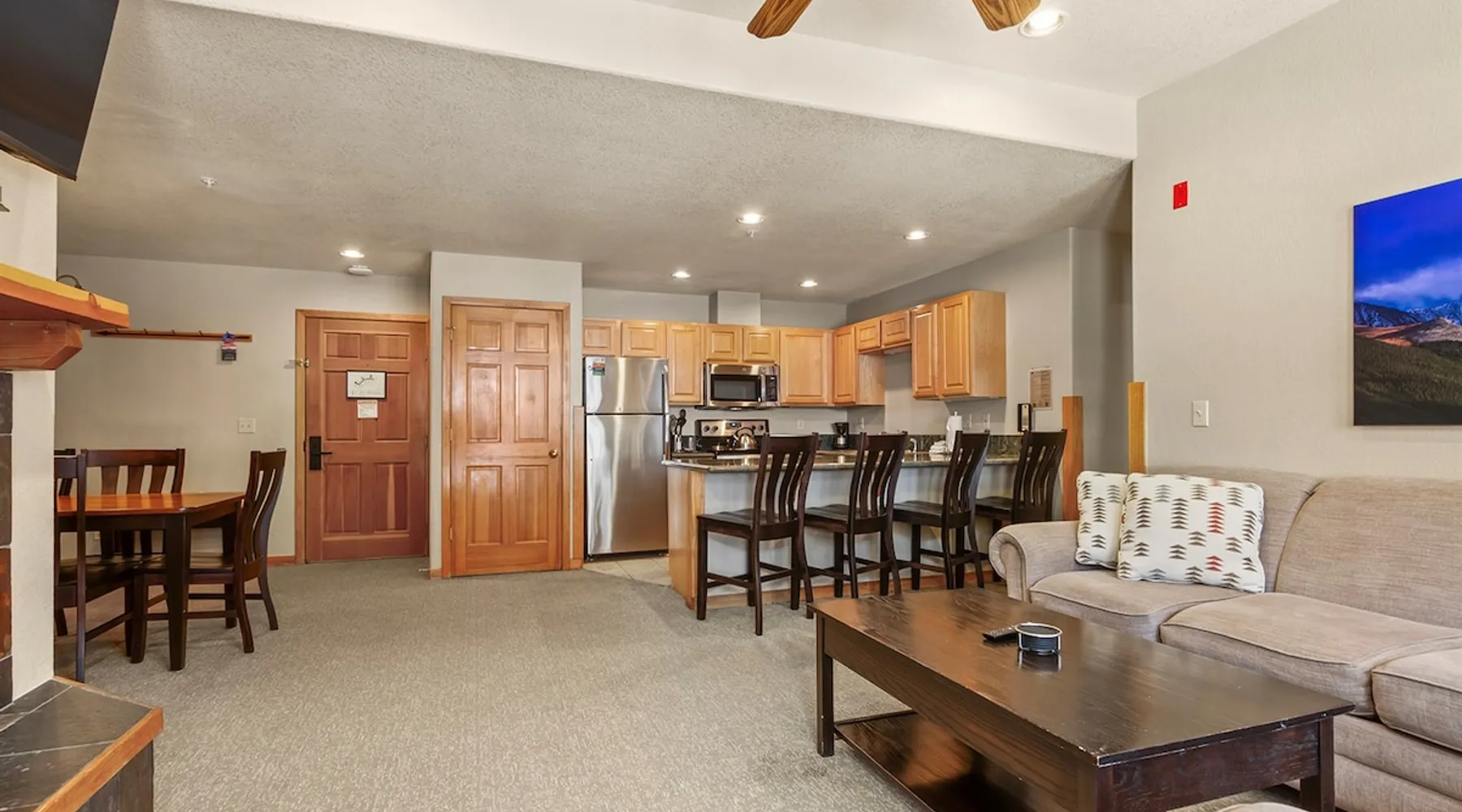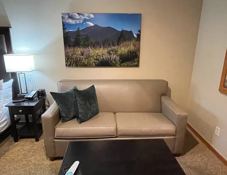 Located between peaks 8 and 9, Grand Timber Lodge is the ultimate destination for a serene mountain retreat. Guests can easily access the slopes via the Snowflake Chairlift, which is just a few steps away. After a day on the mountain, ski back to the property using the Lower Sawmill trail. This resort is a perfect fit for families and beginners alike, offering both slope accessibility and the tranquility of a silent getaway. Plus, it's just a short distance from the lively Main Street. The space Grand Timber Lodge – 2 Bedroom Villa The spacious two-bedroom villa at Grand Timber Lodge offers comfort, functionality, and all the mountain touches you’d expect in Breckenridge. The primary bedroom features a king-size bed, large dresser, flat-screen TV, and a luxurious ensuite bath with a jacuzzi tub, walk-in shower, and dual vanities. The guest bedroom includes a queen-size bed, sleeper sofa, kitchenette, and ensuite bathroom with a shower/tub combination and single vanity. The kitchenette is equipped with a microwave, coffee maker, small refrigerator, toaster, sink, kettle, dishwasher, and all basic dishes and utensils for convenience. The main living area, situated between the bedrooms, invites relaxation with a large fireplace, sleeper sofa, and flat-screen TV. A separate dining area offers seating for up to 10 guests. The full kitchen is upgraded with granite countertops and stainless appliances, including a full refrigerator, oven, stovetop, microwave, toaster, coffee maker, dishwasher, cookware, and table settings for up to 10. A washer and dryer are also provided in the villa for added convenience. Units are assigned at check-in. Photos are representative; décor, layout, and views may vary. Guest access Guests will check in at the front desk of the property Other things to note Grand Timber Lodge is perfect for families & Friends. Ideally located just a stones throw away from the hustle and bustle of Main Street. Resort Features • Indoor/outdoor hot tubs and all-season heated pools with locker rooms, showers, and sundecks with lounge chairs • Refresh Massage Studio – spa services including skincare, nails, and body treatments • Fitness Center – state-of-the-art equipment, towels, and water station provided • The Boot Saloon – cozy gathering space with comfort food by the fireplace • Media Room – theater with over 150 movies, recliners, bean bag chairs, popcorn, and beverages • Family Fun Center – arcade and family games • The Grand Room – large river rock fireplace, pool table, oversized chairs, and floor-to-ceiling windows with mountain views • Grand Timber Lodge Market – essentials and snacks, from sunscreen to beverages • Complimentary shuttle service • Seasonal children’s playground • Outdoor grill area