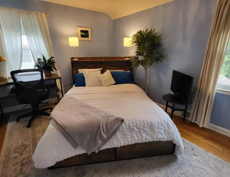 Spacious Accommodations: Cute 3 b 1 b Family home in Cle offers a spacious holiday home in Lyndhurst, Ohio. The property features one bedroom and one bathroom, providing ample space for guests. Modern Amenities: Guests enjoy free WiFi, air-conditioning, and a terrace. The home includes a fully equipped kitchen with a dishwasher, microwave, and oven. Additional amenities include a washing machine, fireplace, and free on-site private parking. Outdoor Spaces: The property features a garden and outdoor dining area, perfect for relaxation. Garden views enhance the stay, complemented by outdoor furniture and a patio. Local Attractions: Located 6.8 mi from Western Reserve Historical Society, Cleveland Botanical Garden, and Cleveland Museum of Art, the home is also close to Cleveland Orchestra and Progressive Field. The fireplace is a top feature of this holiday home. The fully equipped kitchen has a stovetop, a refrigerator, a dishwasher and kitchenware. The spacious air-conditioned holiday home features a flat-screen TV, a washing machine, a private entrance, a tea and coffee maker as well as garden views. The unit has 1 bed.