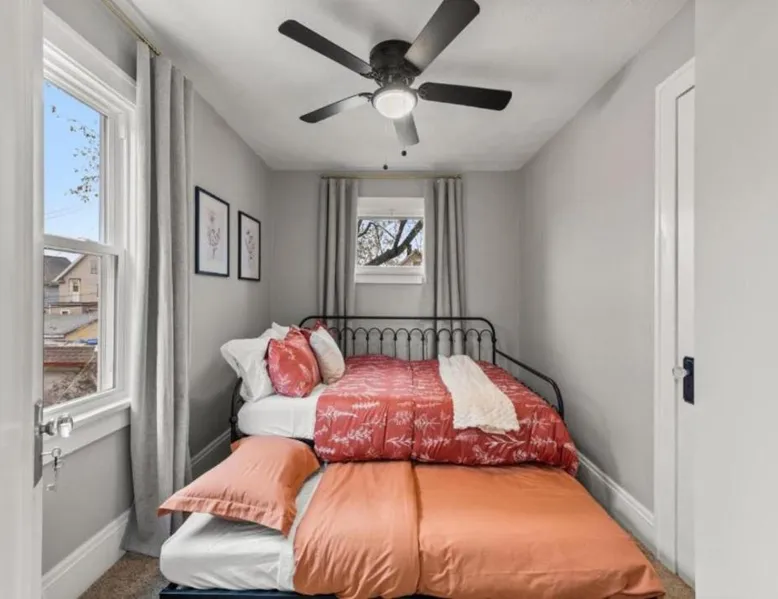 Spacious Accommodations: Newly Renovated and Designed Near Downtown offers a spacious holiday home in Cleveland, Ohio. The property features three bedrooms and two bathrooms, ensuring ample space for guests. Modern Amenities: Guests enjoy a fully equipped kitchen with a dishwasher, microwave, and oven. The home includes air-conditioning, a washing machine, and a work desk. Free WiFi is available throughout the property. Outdoor Spaces: A beautiful garden provides a relaxing outdoor area. The property also features a games room, perfect for entertainment. Convenient Location: Located 6.2 mi from Cleveland Hopkins International Airport, the holiday home is close to attractions such as Cleveland Metroparks Zoo (5.6 mi) and Rock and Roll Hall of Fame (6.8 mi). An ice-skating rink is also nearby. Boasting a private entrance, this spacious holiday home also features 3 separate bedrooms and 2 bathrooms with a bath and a shower. Meals can be prepared in the kitchen, which features a stovetop, a refrigerator, a dishwasher and kitchenware. The holiday home features air conditioning, a washing machine, a tea and coffee maker, a dining area, as well as a TV. The unit has 4 beds.