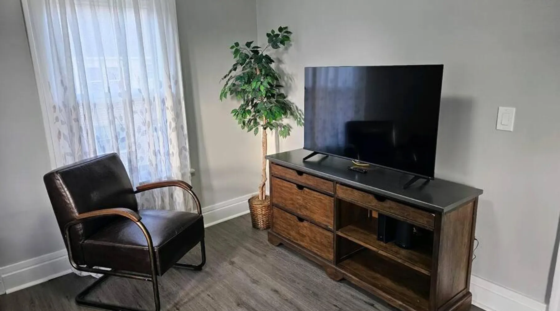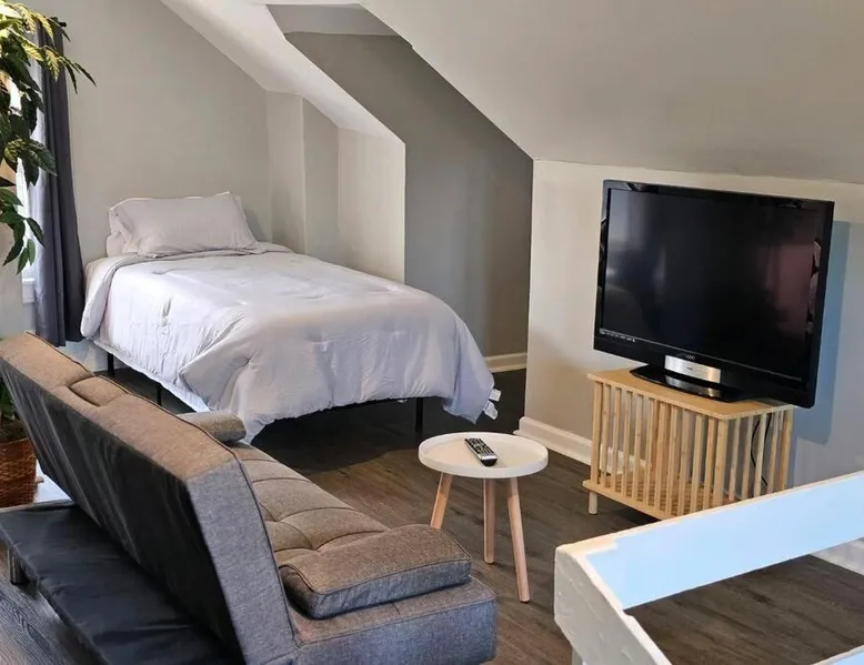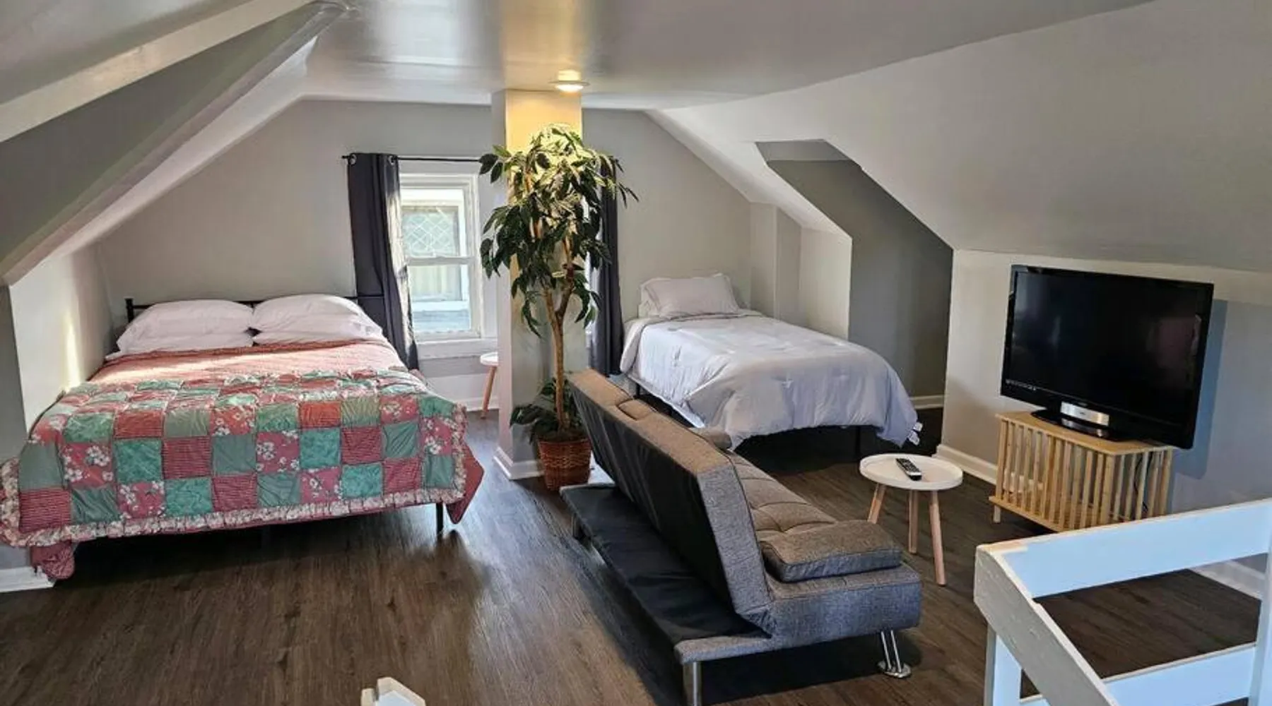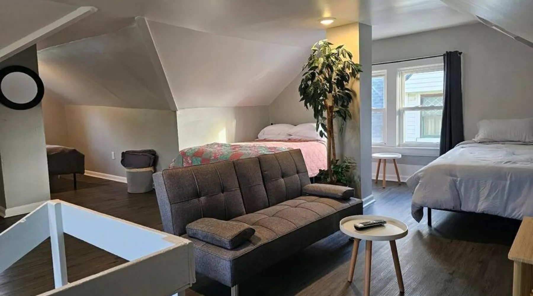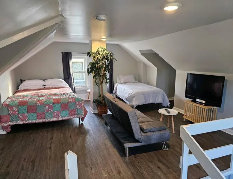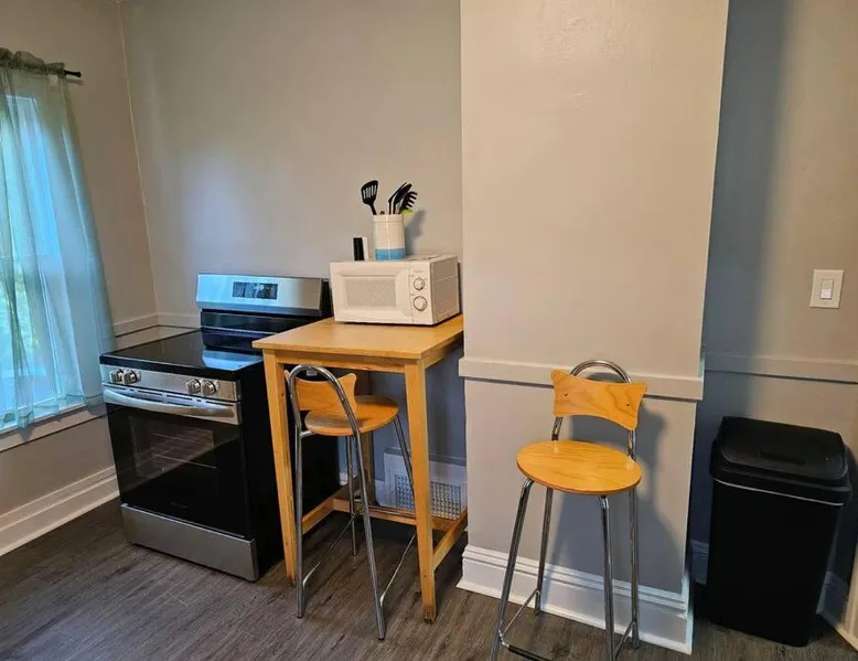 Modern Comforts: Spacious in the heart of it all offers a recently renovated apartment in Cleveland. Guests enjoy free WiFi, air-conditioning, and a fully equipped kitchen with a refrigerator, oven, stovetop, microwave, and toaster. Convenient Facilities: The property features an outdoor seating area, family rooms, and free on-site parking. Additional amenities include a dining table, work desk, TV, and private entrance. Prime Location: Located 8.7 mi from Cleveland Hopkins International Airport, the apartment is close to attractions such as Edgewater Park Beach (1.6 mi), Cleveland Metroparks Zoo (4.3 mi), and Cleveland Browns Stadium (4.3 mi). An ice-skating rink is also nearby. In the fully equipped kitchen, guests will find a stovetop, a refrigerator, kitchenware and an oven. This apartment is air-conditioned and has a seating area with a flat-screen TV, a private entrance, a tea and coffee maker, a dining area, as well as a wardrobe. The unit has 4 beds.
