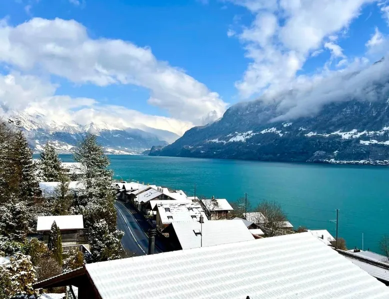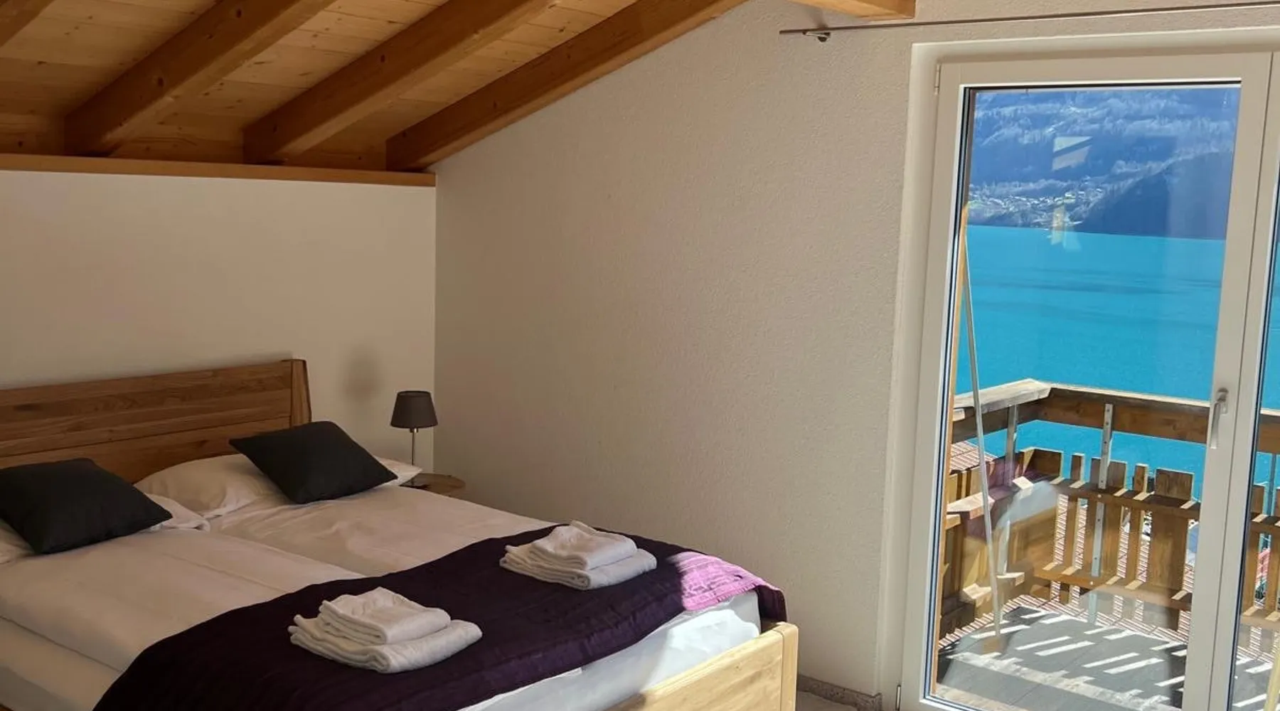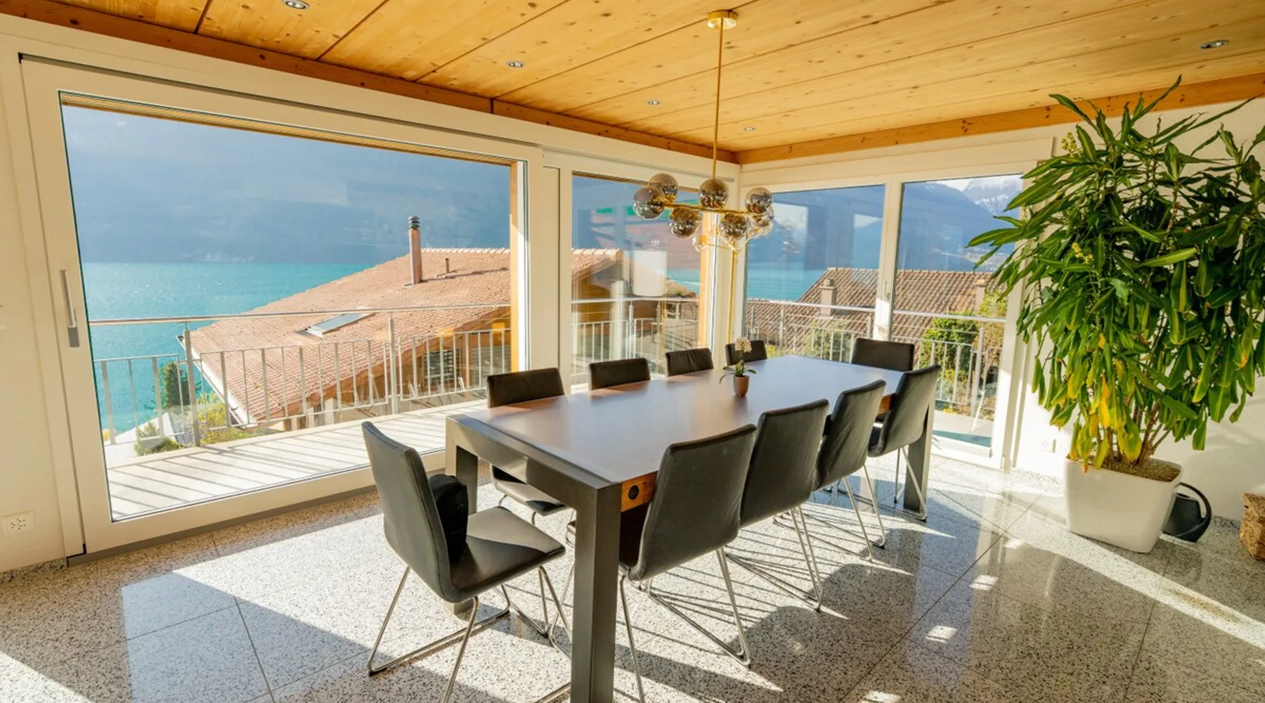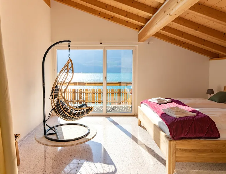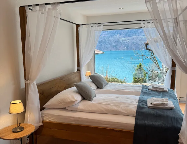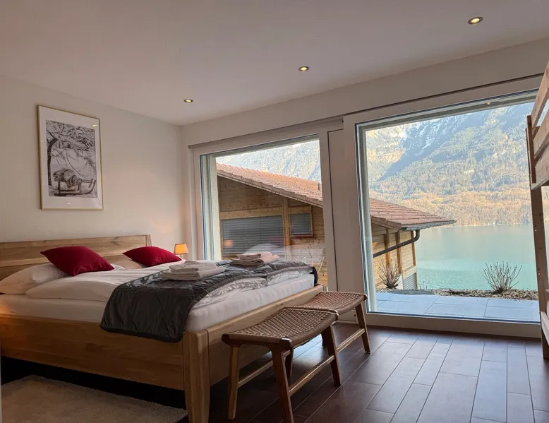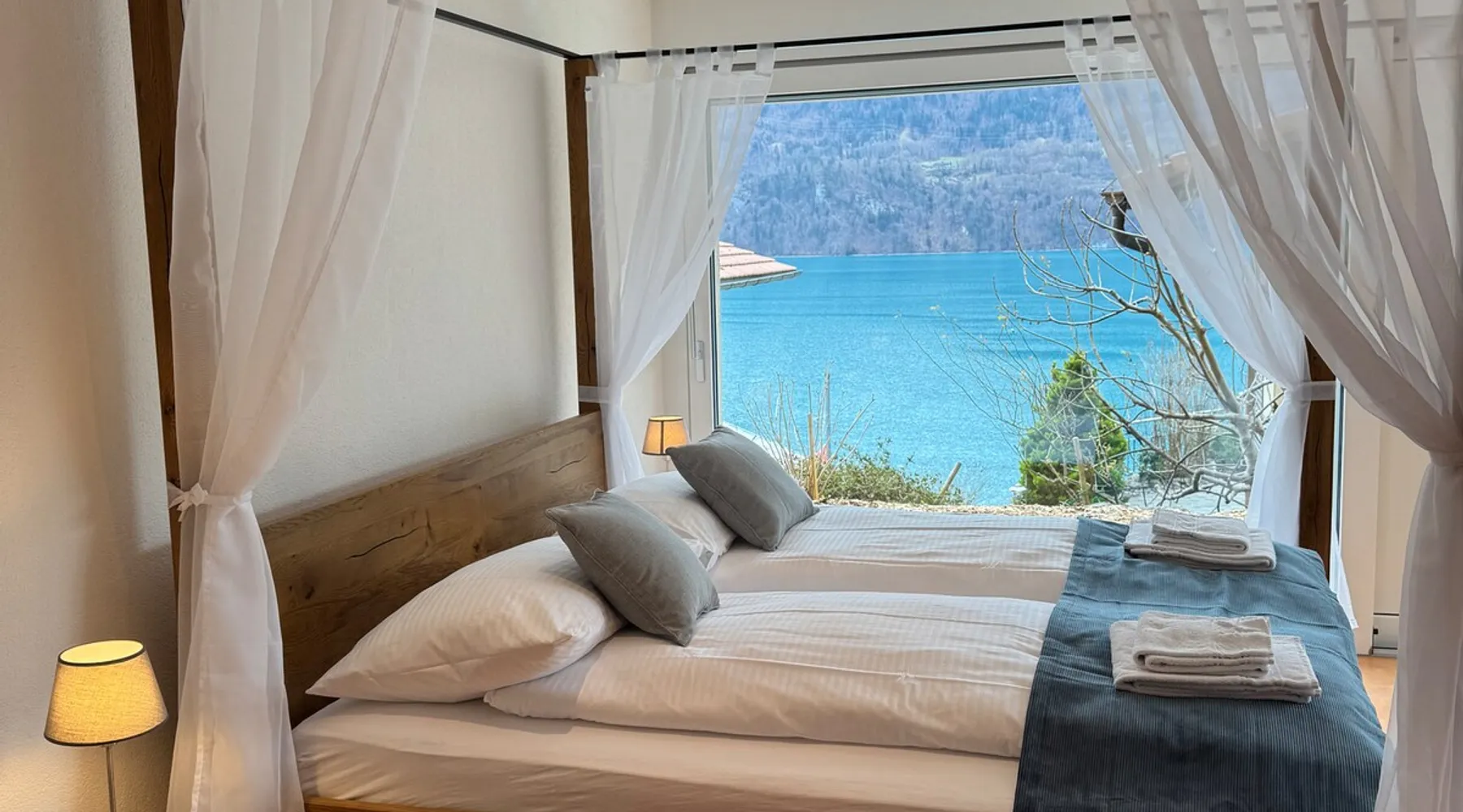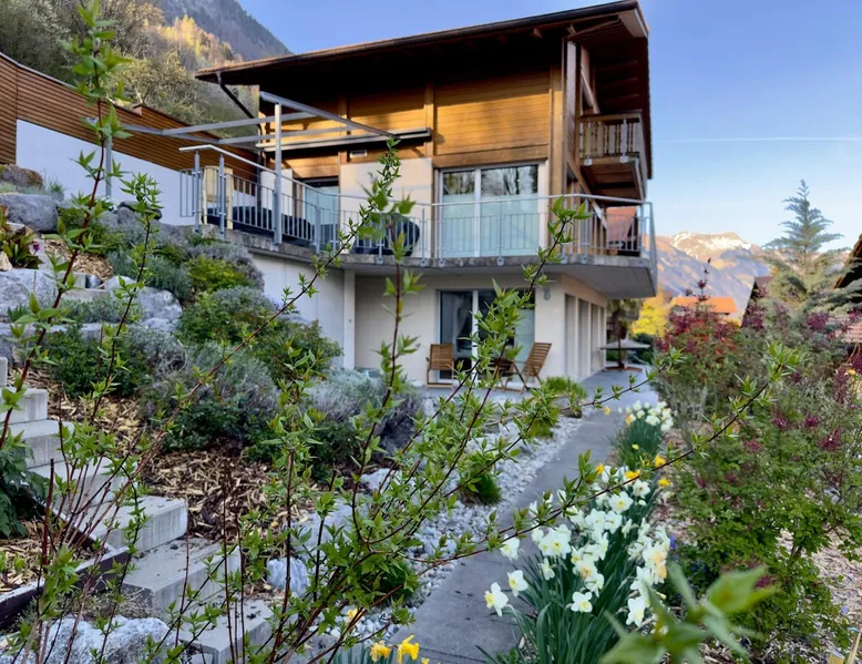 Escape to your private paradise for creating unforgettable memories with your family and friends. ❄️ Air Conditioning in Every Room for your best summer experience 🧖♀️ Private Finnish Sauna for Ultimate Relaxation 🏞️ Unrivalled Lake & Mountain Views from Every Room 🏠 Perfect for Families & Groups (Sleeps 12) ☀️ Expansive Terrace with BBQ & a Garden with Bio-Pond ✨ 5-Star Service: Pro management, a complimentary Interlaken transfer & lot of exclusive addons like private-chef The space Welcome to Chalet Swiss Dream, one of the few truly spacious and private lakeview villas in the Interlaken region. Designed to comfortably host up to 12 guests, our home is the ultimate backdrop for an unforgettable alpine escape. The Chalet: A Tour of Your Private Sanctuary Our chalet unfolds over multiple levels, designed to maximize both the breathtaking views and your personal comfort. THE HEART OF THE HOME: The spacious, open-plan living area is where everyone can gather, relax, and share stories. It flows seamlessly into a fully equipped kitchen, ready for everything from a quick breakfast to a gourmet dinner. We've included traditional Swiss fondue 🫕 & raclette 🧀 sets for an authentic and cozy alpine evening. OUTDOOR LIVING & VIEWS: Step outside onto one of the three expansive terraces. This is your front-row seat to the magnificent theatre of the Swiss Alps. Enjoy your morning coffee, dine alfresco, or host a spectacular evening BBQ on the covered patio while gazing at the stunning turquoise waters of Lake Brienz. REST & REJUVENATE: Four beautifully appointed bedrooms and a comfortable sofa bed ensure a restful night's sleep for your entire group. Bedroom 1: Queen-Size Bed 🛌+ Double Bunk Bed 🧸 Bedroom 2: King-Size Canopy Bed 🛌 Bedroom 3: Queen-Size Bed 🛏️ Bedroom 4: King-Size Bed 🛏️ Living Room: Comfortable Double Sofa Bed 🛋️ WELLNESS & COMFORT: 4 Bathrooms: No morning queues with 3 full bathrooms and a separate guest toilet. Two main bathrooms feature luxurious AcquaClean automatic toilets. Private Finnish Sauna: Your personal wellness retreat to unwind after a day of adventure. Modern Conveniences: A private washer & dryer 🧺, Smart TV, and high-speed Wi-Fi 📶 are all included. Curated Experiences & 5-Star Service As our guest, you receive more than just a key. We are managed by SwissHome to ensure a professional, seamless stay. Complimentary Transfer: To make your arrival effortless, we include a one-time free transfer from the Interlaken train station to the chalet. Elevate Your Stay: Let us enhance your vacation with our range of exclusive add-on services (extra fees apply, bookable via our guest portal): Private Chef Dinner: A gourmet experience in the comfort of your chalet. Fully Serviced BBQ: We handle the grilling so you can relax and enjoy the view. Adventure Bookings: From paragliding to boat trips, let us help you arrange the details. Other things to note An Unbeatable Location: Your Gateway to the Jungfrau Region Your private sanctuary at Chalet Swiss Dream is the perfect base for exploring the world-renowned beauty of the Interlaken area. Whether you seek thrilling adventure or charming alpine villages, you are just minutes away. ADVENTURE & THRILLS Paragliding Interlaken: 🚗 9 min – Soar like a bird over the turquoise lakes for a truly once-in-a-lifetime experience. Rope Park Interlaken (Seilpark): 🚗 13 min – A fun-filled challenge for all ages, navigating treetop courses with stunning views. CULTURE & TOWN CHARM Interlaken City Center: 🚗 9 min – Explore the vibrant heart of the region, home to luxury boutiques, wonderful cafes, and the beautiful Kursaal Park. Ballenberg Open-Air Museum: 🚗 21 min – A fascinating journey into Swiss history, with centuries-old buildings and traditional crafts. ICONIC MOUNTAIN ESCAPES World-Famous Resorts: 🚗 within 30 min – You are perfectly positioned to access the legendary ski and hiking areas of Grindelwald, Wengen, and Mürren. The gateways to iconic peaks like the Jungfrau, Schilthorn, and Männlichen are all within easy reach. Everyday Conveniences 🍓🍏🥂🥑🥐🧀 Stocking up on groceries, local cheeses, and fine wines is effortless. You will find a wide selection of major supermarkets, including Coop, Aldi, and Landi, all within a quick 7-9 minute drive from the chalet.