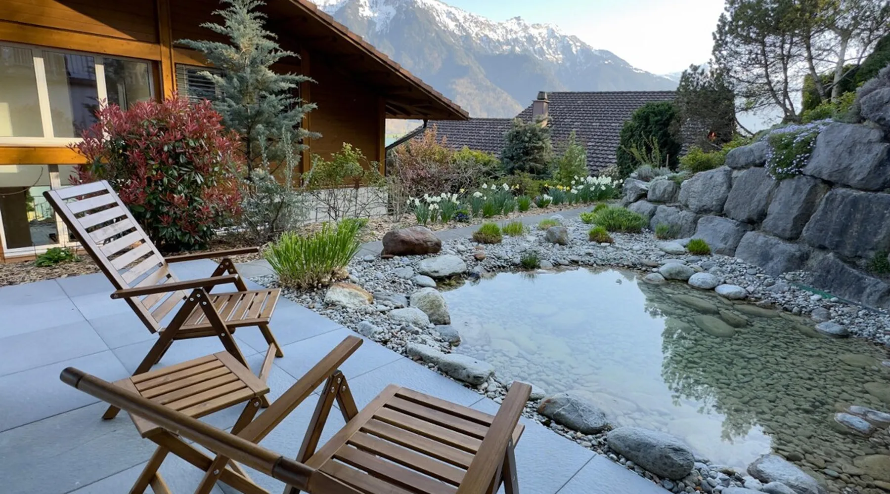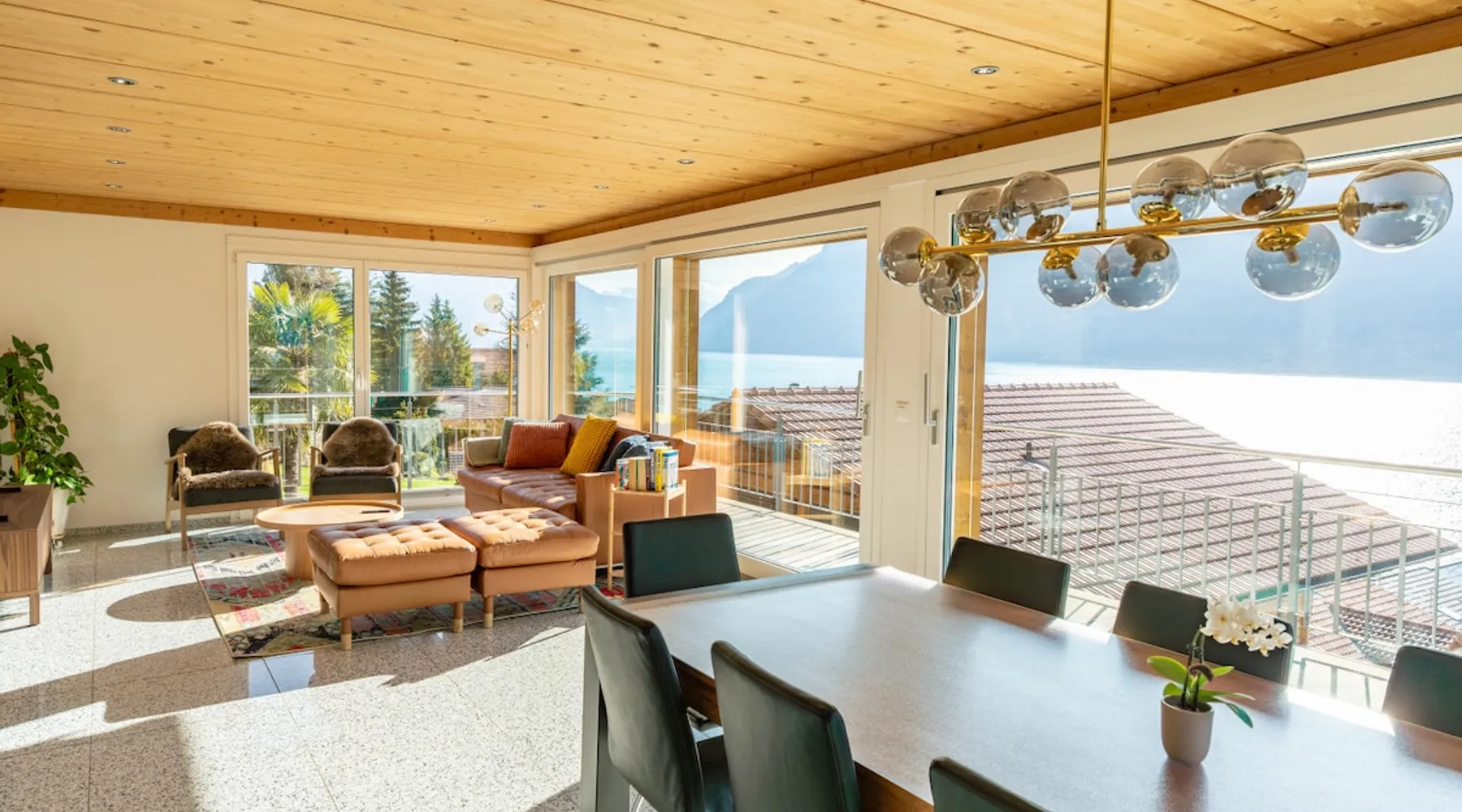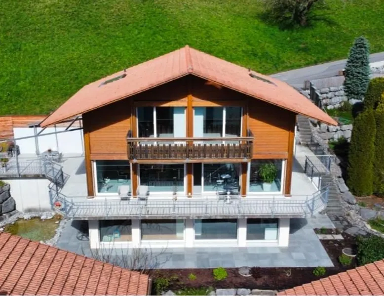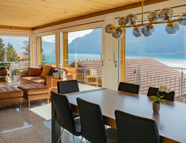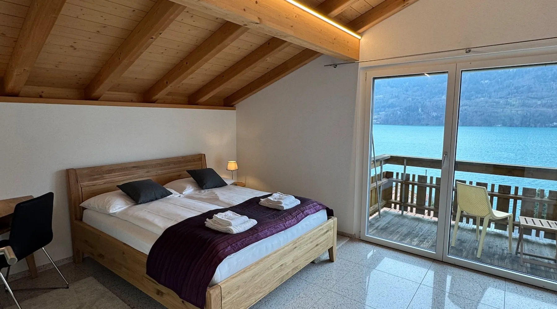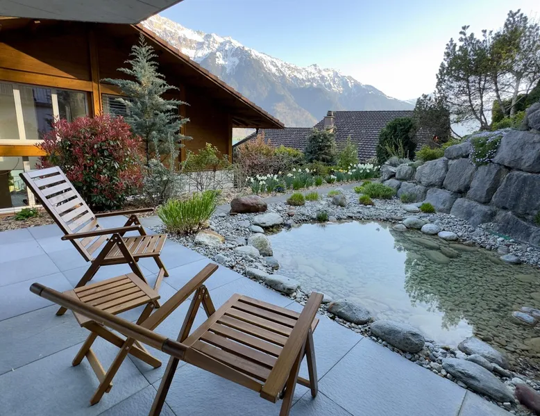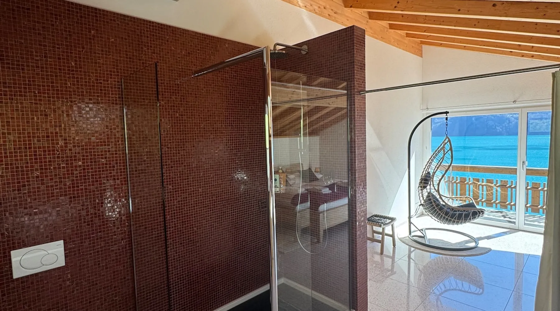 Escape to your private paradise for creating unforgettable memories with your family and friends. ❄️ Air Conditioning in Every Room for your best summer experience 🧖♀️ Private Finnish Sauna for Ultimate Relaxation 🏞️ Unrivalled Lake & Mountain Views from Every Room 🏠 Perfect for Families & Groups (Sleeps 12) ☀️ Expansive Terrace with BBQ & a Garden with Bio-Pond ✨ 5-Star Service: Pro management, a complimentary Interlaken transfer & lot of exclusive addons like private-chef The space Welcome to Chalet Swiss Dream, one of the few truly spacious and private lakeview villas in the Interlaken region. Designed to comfortably host up to 12 guests, our home is the ultimate backdrop for an unforgettable alpine escape. The Chalet: A Tour of Your Private Sanctuary Our chalet unfolds over multiple levels, designed to maximize both the breathtaking views and your personal comfort. THE HEART OF THE HOME: The spacious, open-plan living area is where everyone can gather, relax, and share stories. It flows seamlessly into a fully equipped kitchen, ready for everything from a quick breakfast to a gourmet dinner. We've included traditional Swiss fondue 🫕 & raclette 🧀 sets for an authentic and cozy alpine evening. OUTDOOR LIVING & VIEWS: Step outside onto one of the three expansive terraces. This is your front-row seat to the magnificent theatre of the Swiss Alps. Enjoy your morning coffee, dine alfresco, or host a spectacular evening BBQ on the covered patio while gazing at the stunning turquoise waters of Lake Brienz. REST & REJUVENATE: Four beautifully appointed bedrooms and a comfortable sofa bed ensure a restful night's sleep for your entire group. Bedroom 1: Queen-Size Bed 🛌+ Double Bunk Bed 🧸 Bedroom 2: King-Size Canopy Bed 🛌 Bedroom 3: Queen-Size Bed 🛏️ Bedroom 4: King-Size Bed 🛏️ Living Room: Comfortable Double Sofa Bed 🛋️ WELLNESS & COMFORT: 4 Bathrooms: No morning queues with 3 full bathrooms and a separate guest toilet. Two main bathrooms feature luxurious AcquaClean automatic toilets. Private Finnish Sauna: Your personal wellness retreat to unwind after a day of adventure. Modern Conveniences: A private washer & dryer 🧺, Smart TV, and high-speed Wi-Fi 📶 are all included. Curated Experiences & 5-Star Service As our guest, you receive more than just a key. We are managed by SwissHome to ensure a professional, seamless stay. Complimentary Transfer: To make your arrival effortless, we include a one-time free transfer from the Interlaken train station to the chalet. Elevate Your Stay: Let us enhance your vacation with our range of exclusive add-on services (extra fees apply, bookable via our guest portal): Private Chef Dinner: A gourmet experience in the comfort of your chalet. Fully Serviced BBQ: We handle the grilling so you can relax and enjoy the view. Adventure Bookings: From paragliding to boat trips, let us help you arrange the details. Other things to note An Unbeatable Location: Your Gateway to the Jungfrau Region Your private sanctuary at Chalet Swiss Dream is the perfect base for exploring the world-renowned beauty of the Interlaken area. Whether you seek thrilling adventure or charming alpine villages, you are just minutes away. ADVENTURE & THRILLS Paragliding Interlaken: 🚗 9 min – Soar like a bird over the turquoise lakes for a truly once-in-a-lifetime experience. Rope Park Interlaken (Seilpark): 🚗 13 min – A fun-filled challenge for all ages, navigating treetop courses with stunning views. CULTURE & TOWN CHARM Interlaken City Center: 🚗 9 min – Explore the vibrant heart of the region, home to luxury boutiques, wonderful cafes, and the beautiful Kursaal Park. Ballenberg Open-Air Museum: 🚗 21 min – A fascinating journey into Swiss history, with centuries-old buildings and traditional crafts. ICONIC MOUNTAIN ESCAPES World-Famous Resorts: 🚗 within 30 min – You are perfectly positioned to access the legendary ski and hiking areas of Grindelwald, Wengen, and Mürren. The gateways to iconic peaks like the Jungfrau, Schilthorn, and Männlichen are all within easy reach. Everyday Conveniences 🍓🍏🥂🥑🥐🧀 Stocking up on groceries, local cheeses, and fine wines is effortless. You will find a wide selection of major supermarkets, including Coop, Aldi, and Landi, all within a quick 7-9 minute drive from the chalet.