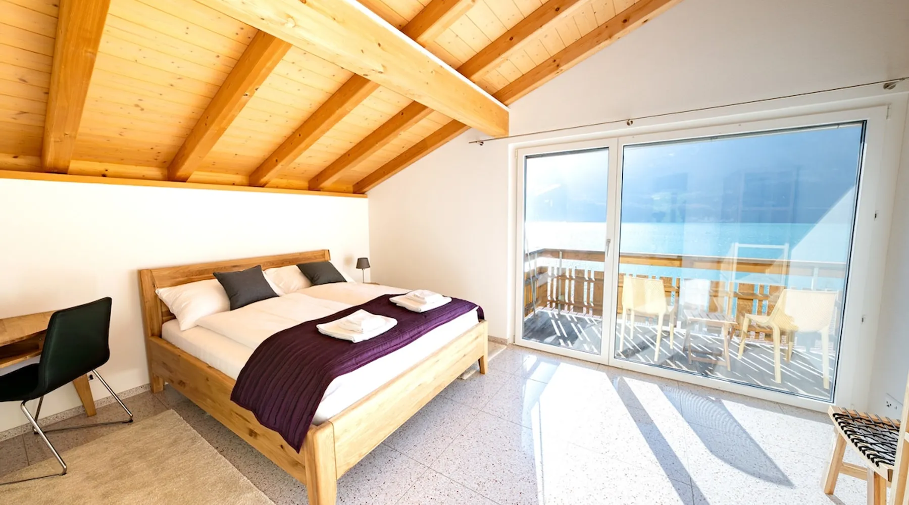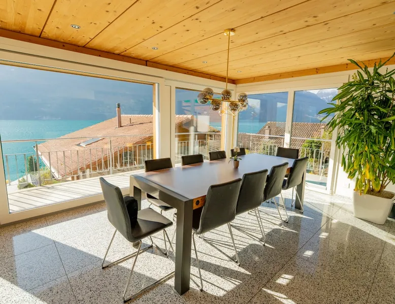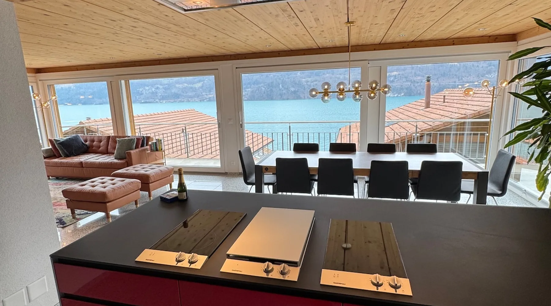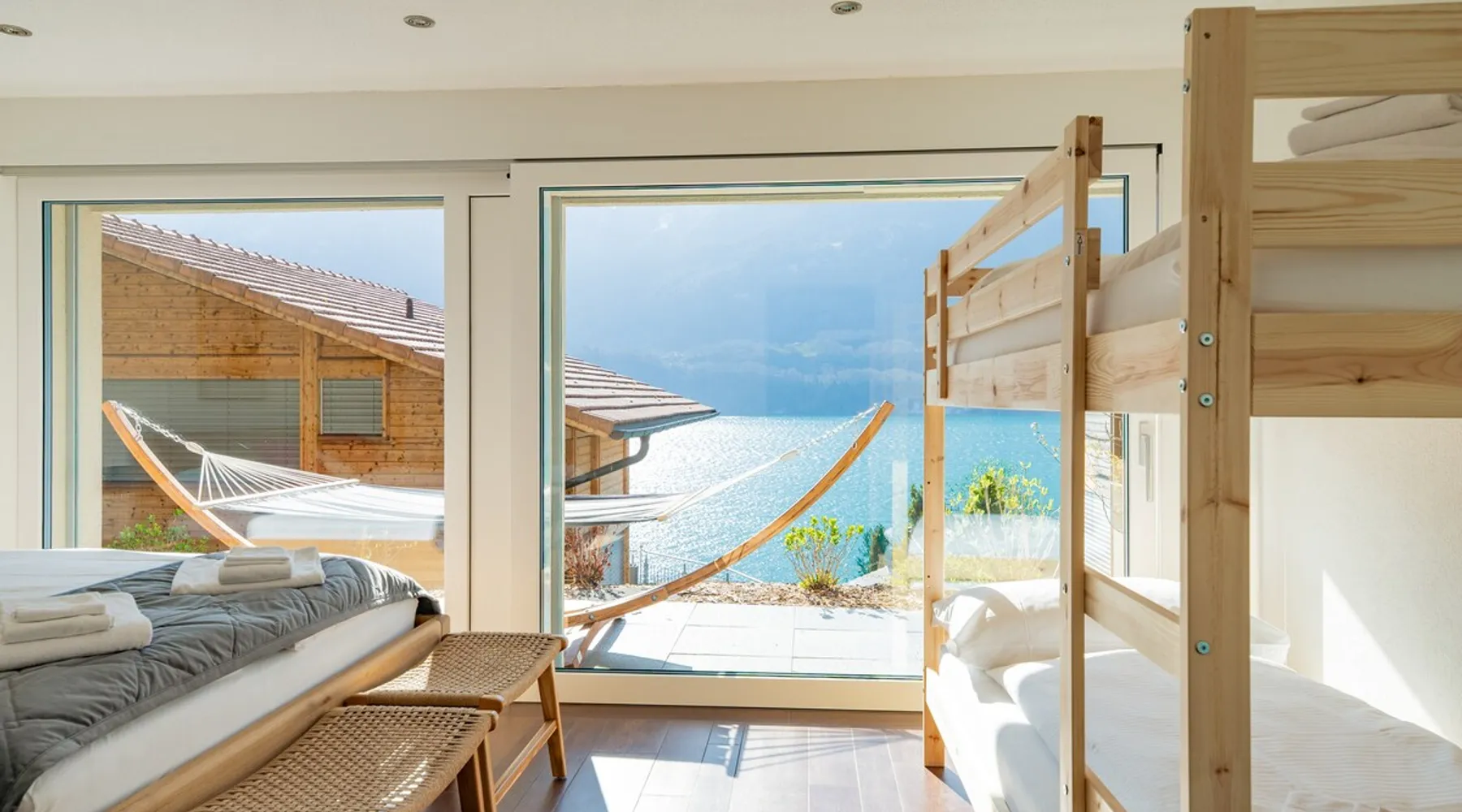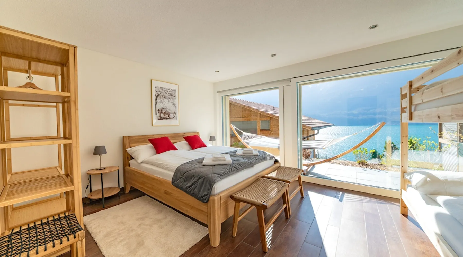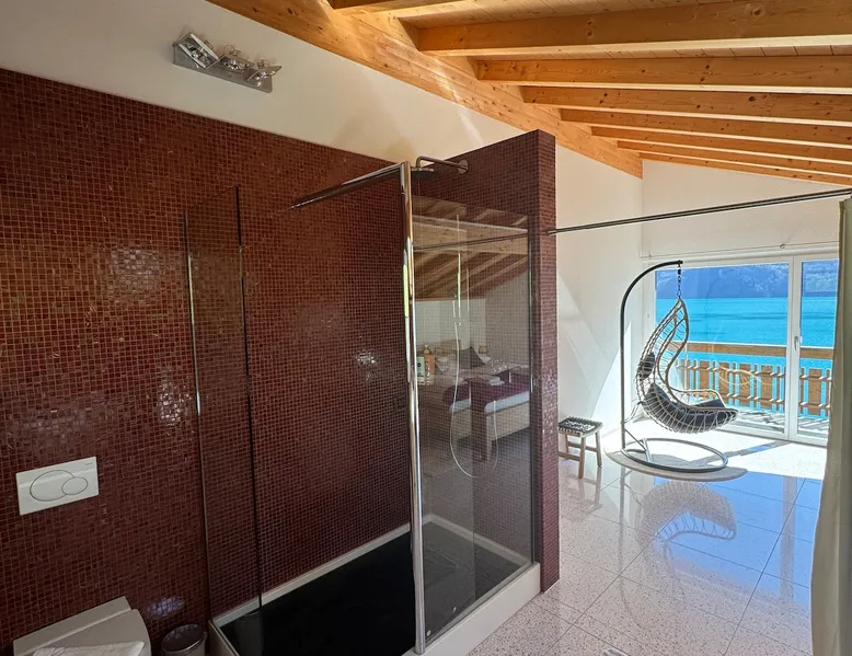 Escape to your private paradise for creating unforgettable memories with your family and friends. ❄️ Air Conditioning in Every Room for your best summer experience 🧖♀️ Private Finnish Sauna for Ultimate Relaxation 🏞️ Unrivalled Lake & Mountain Views from Every Room 🏠 Perfect for Families & Groups (Sleeps 12) ☀️ Expansive Terrace with BBQ & a Garden with Bio-Pond ✨ 5-Star Service: Pro management, a complimentary Interlaken transfer & lot of exclusive addons like private-chef The space Welcome to Chalet Swiss Dream, one of the few truly spacious and private lakeview villas in the Interlaken region. Designed to comfortably host up to 12 guests, our home is the ultimate backdrop for an unforgettable alpine escape. The Chalet: A Tour of Your Private Sanctuary Our chalet unfolds over multiple levels, designed to maximize both the breathtaking views and your personal comfort. THE HEART OF THE HOME: The spacious, open-plan living area is where everyone can gather, relax, and share stories. It flows seamlessly into a fully equipped kitchen, ready for everything from a quick breakfast to a gourmet dinner. We've included traditional Swiss fondue 🫕 & raclette 🧀 sets for an authentic and cozy alpine evening. OUTDOOR LIVING & VIEWS: Step outside onto one of the three expansive terraces. This is your front-row seat to the magnificent theatre of the Swiss Alps. Enjoy your morning coffee, dine alfresco, or host a spectacular evening BBQ on the covered patio while gazing at the stunning turquoise waters of Lake Brienz. REST & REJUVENATE: Four beautifully appointed bedrooms and a comfortable sofa bed ensure a restful night's sleep for your entire group. Bedroom 1: Queen-Size Bed 🛌+ Double Bunk Bed 🧸 Bedroom 2: King-Size Canopy Bed 🛌 Bedroom 3: Queen-Size Bed 🛏️ Bedroom 4: King-Size Bed 🛏️ Living Room: Comfortable Double Sofa Bed 🛋️ WELLNESS & COMFORT: 4 Bathrooms: No morning queues with 3 full bathrooms and a separate guest toilet. Two main bathrooms feature luxurious AcquaClean automatic toilets. Private Finnish Sauna: Your personal wellness retreat to unwind after a day of adventure. Modern Conveniences: A private washer & dryer 🧺, Smart TV, and high-speed Wi-Fi 📶 are all included. Curated Experiences & 5-Star Service As our guest, you receive more than just a key. We are managed by SwissHome to ensure a professional, seamless stay. Complimentary Transfer: To make your arrival effortless, we include a one-time free transfer from the Interlaken train station to the chalet. Elevate Your Stay: Let us enhance your vacation with our range of exclusive add-on services (extra fees apply, bookable via our guest portal): Private Chef Dinner: A gourmet experience in the comfort of your chalet. Fully Serviced BBQ: We handle the grilling so you can relax and enjoy the view. Adventure Bookings: From paragliding to boat trips, let us help you arrange the details. Other things to note An Unbeatable Location: Your Gateway to the Jungfrau Region Your private sanctuary at Chalet Swiss Dream is the perfect base for exploring the world-renowned beauty of the Interlaken area. Whether you seek thrilling adventure or charming alpine villages, you are just minutes away. ADVENTURE & THRILLS Paragliding Interlaken: 🚗 9 min – Soar like a bird over the turquoise lakes for a truly once-in-a-lifetime experience. Rope Park Interlaken (Seilpark): 🚗 13 min – A fun-filled challenge for all ages, navigating treetop courses with stunning views. CULTURE & TOWN CHARM Interlaken City Center: 🚗 9 min – Explore the vibrant heart of the region, home to luxury boutiques, wonderful cafes, and the beautiful Kursaal Park. Ballenberg Open-Air Museum: 🚗 21 min – A fascinating journey into Swiss history, with centuries-old buildings and traditional crafts. ICONIC MOUNTAIN ESCAPES World-Famous Resorts: 🚗 within 30 min – You are perfectly positioned to access the legendary ski and hiking areas of Grindelwald, Wengen, and Mürren. The gateways to iconic peaks like the Jungfrau, Schilthorn, and Männlichen are all within easy reach. Everyday Conveniences 🍓🍏🥂🥑🥐🧀 Stocking up on groceries, local cheeses, and fine wines is effortless. You will find a wide selection of major supermarkets, including Coop, Aldi, and Landi, all within a quick 7-9 minute drive from the chalet.