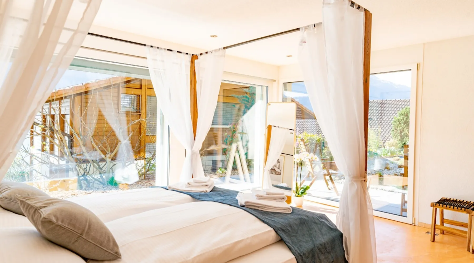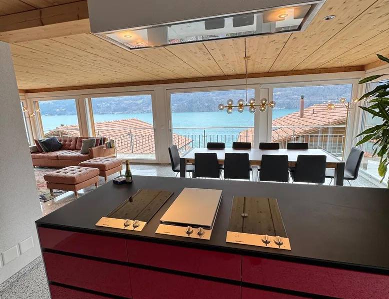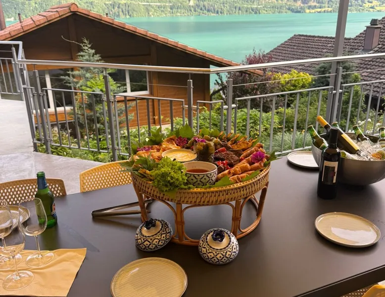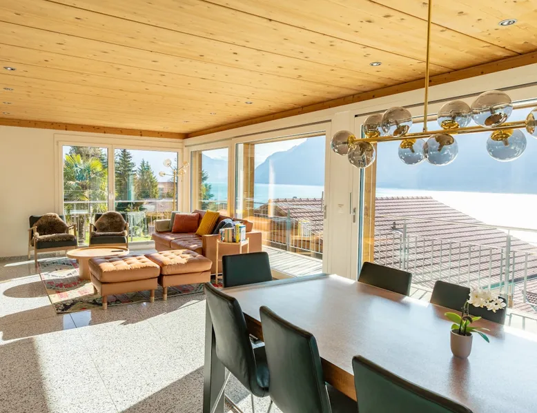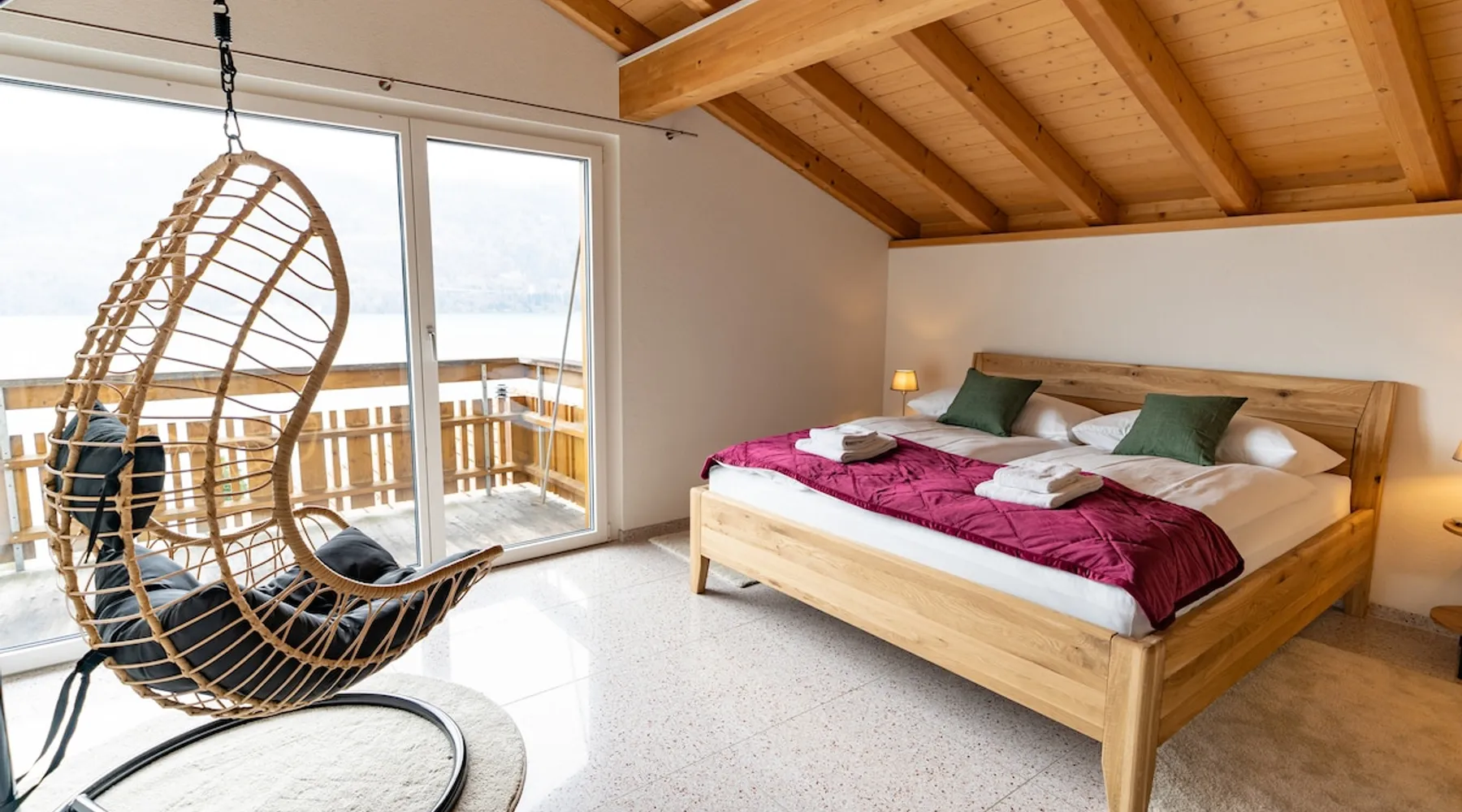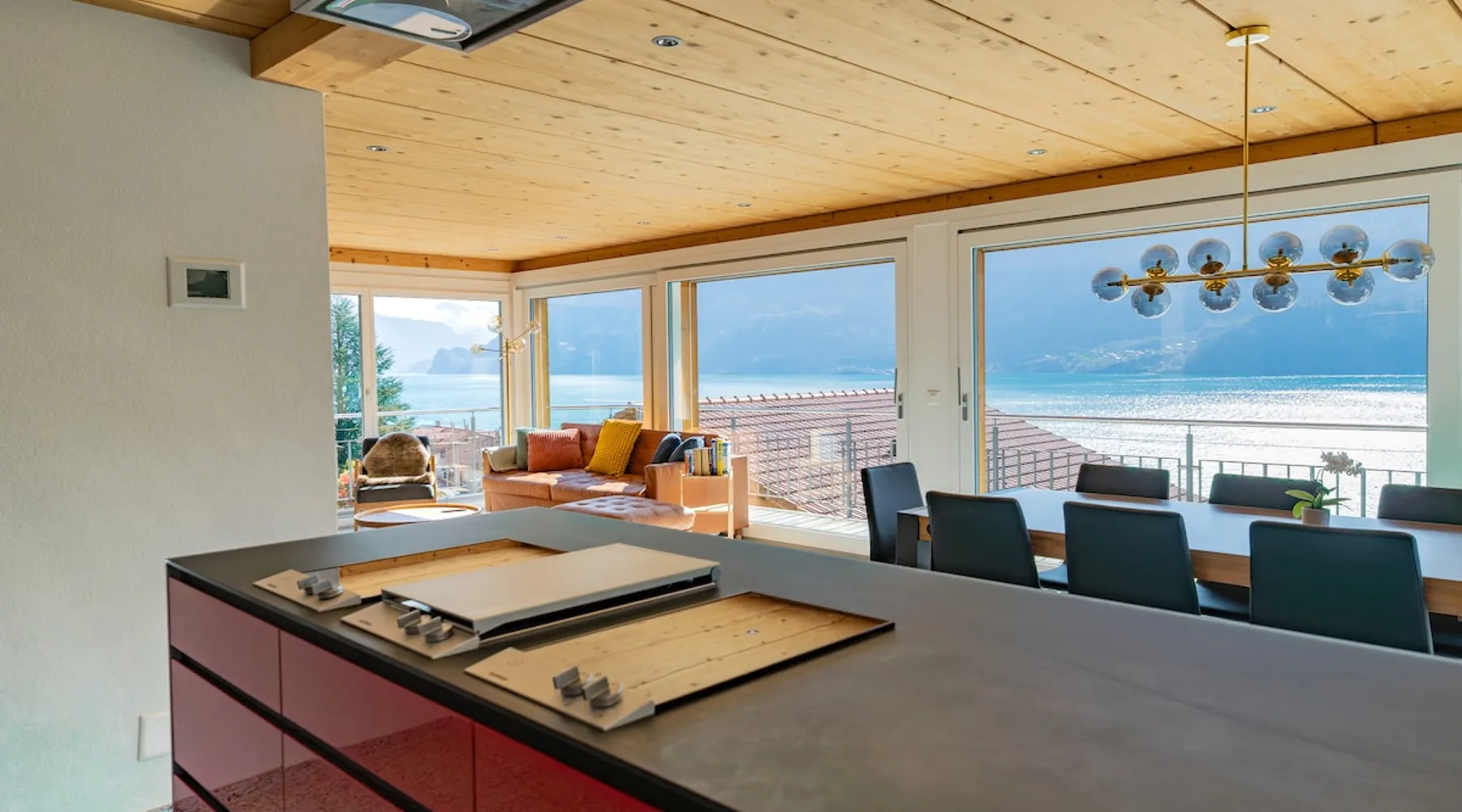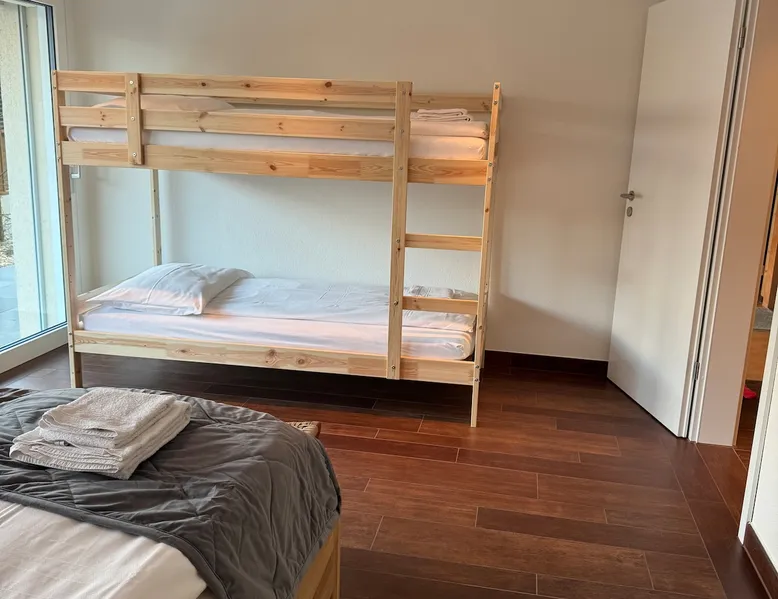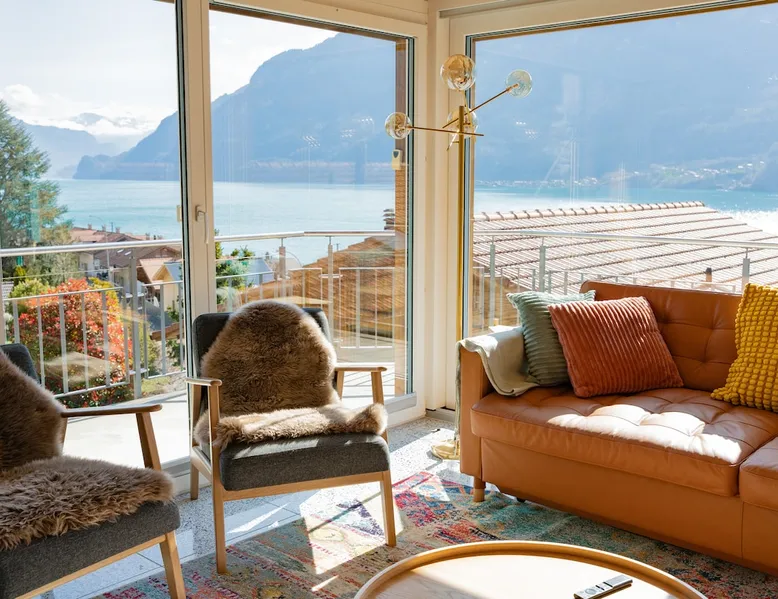 Escape to your private paradise for creating unforgettable memories with your family and friends. ❄️ Air Conditioning in Every Room for your best summer experience 🧖♀️ Private Finnish Sauna for Ultimate Relaxation 🏞️ Unrivalled Lake & Mountain Views from Every Room 🏠 Perfect for Families & Groups (Sleeps 12) ☀️ Expansive Terrace with BBQ & a Garden with Bio-Pond ✨ 5-Star Service: Pro management, a complimentary Interlaken transfer & lot of exclusive addons like private-chef The space Welcome to Chalet Swiss Dream, one of the few truly spacious and private lakeview villas in the Interlaken region. Designed to comfortably host up to 12 guests, our home is the ultimate backdrop for an unforgettable alpine escape. The Chalet: A Tour of Your Private Sanctuary Our chalet unfolds over multiple levels, designed to maximize both the breathtaking views and your personal comfort. THE HEART OF THE HOME: The spacious, open-plan living area is where everyone can gather, relax, and share stories. It flows seamlessly into a fully equipped kitchen, ready for everything from a quick breakfast to a gourmet dinner. We've included traditional Swiss fondue 🫕 & raclette 🧀 sets for an authentic and cozy alpine evening. OUTDOOR LIVING & VIEWS: Step outside onto one of the three expansive terraces. This is your front-row seat to the magnificent theatre of the Swiss Alps. Enjoy your morning coffee, dine alfresco, or host a spectacular evening BBQ on the covered patio while gazing at the stunning turquoise waters of Lake Brienz. REST & REJUVENATE: Four beautifully appointed bedrooms and a comfortable sofa bed ensure a restful night's sleep for your entire group. Bedroom 1: Queen-Size Bed 🛌+ Double Bunk Bed 🧸 Bedroom 2: King-Size Canopy Bed 🛌 Bedroom 3: Queen-Size Bed 🛏️ Bedroom 4: King-Size Bed 🛏️ Living Room: Comfortable Double Sofa Bed 🛋️ WELLNESS & COMFORT: 4 Bathrooms: No morning queues with 3 full bathrooms and a separate guest toilet. Two main bathrooms feature luxurious AcquaClean automatic toilets. Private Finnish Sauna: Your personal wellness retreat to unwind after a day of adventure. Modern Conveniences: A private washer & dryer 🧺, Smart TV, and high-speed Wi-Fi 📶 are all included. Curated Experiences & 5-Star Service As our guest, you receive more than just a key. We are managed by SwissHome to ensure a professional, seamless stay. Complimentary Transfer: To make your arrival effortless, we include a one-time free transfer from the Interlaken train station to the chalet. Elevate Your Stay: Let us enhance your vacation with our range of exclusive add-on services (extra fees apply, bookable via our guest portal): Private Chef Dinner: A gourmet experience in the comfort of your chalet. Fully Serviced BBQ: We handle the grilling so you can relax and enjoy the view. Adventure Bookings: From paragliding to boat trips, let us help you arrange the details. Other things to note An Unbeatable Location: Your Gateway to the Jungfrau Region Your private sanctuary at Chalet Swiss Dream is the perfect base for exploring the world-renowned beauty of the Interlaken area. Whether you seek thrilling adventure or charming alpine villages, you are just minutes away. ADVENTURE & THRILLS Paragliding Interlaken: 🚗 9 min – Soar like a bird over the turquoise lakes for a truly once-in-a-lifetime experience. Rope Park Interlaken (Seilpark): 🚗 13 min – A fun-filled challenge for all ages, navigating treetop courses with stunning views. CULTURE & TOWN CHARM Interlaken City Center: 🚗 9 min – Explore the vibrant heart of the region, home to luxury boutiques, wonderful cafes, and the beautiful Kursaal Park. Ballenberg Open-Air Museum: 🚗 21 min – A fascinating journey into Swiss history, with centuries-old buildings and traditional crafts. ICONIC MOUNTAIN ESCAPES World-Famous Resorts: 🚗 within 30 min – You are perfectly positioned to access the legendary ski and hiking areas of Grindelwald, Wengen, and Mürren. The gateways to iconic peaks like the Jungfrau, Schilthorn, and Männlichen are all within easy reach. Everyday Conveniences 🍓🍏🥂🥑🥐🧀 Stocking up on groceries, local cheeses, and fine wines is effortless. You will find a wide selection of major supermarkets, including Coop, Aldi, and Landi, all within a quick 7-9 minute drive from the chalet.