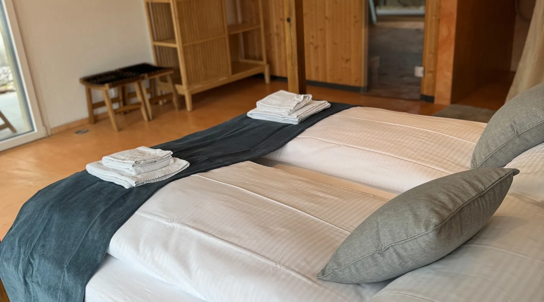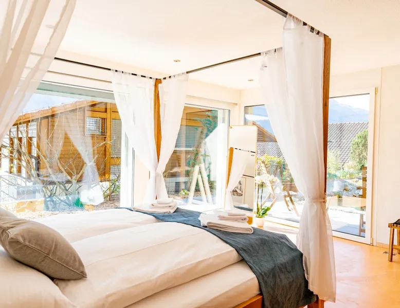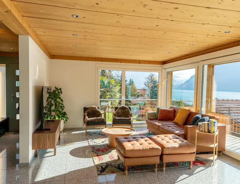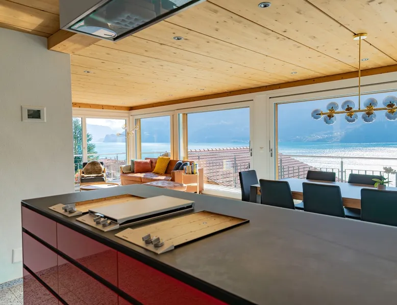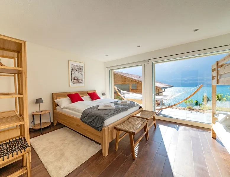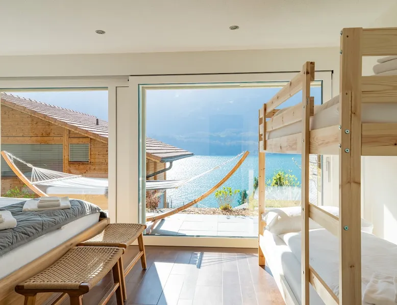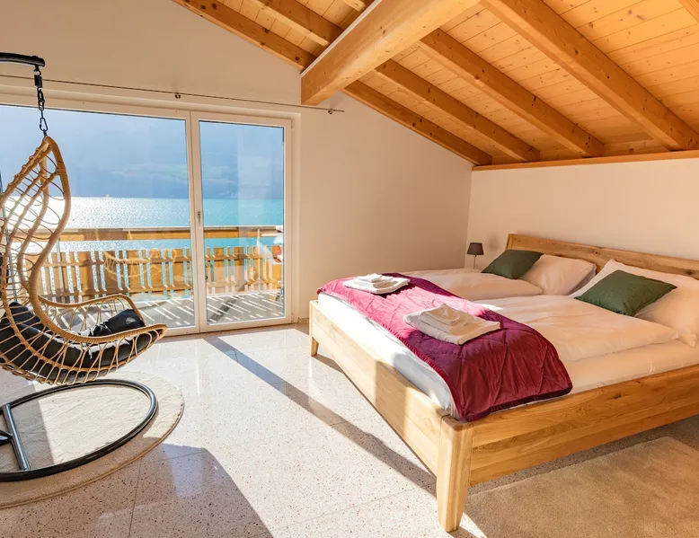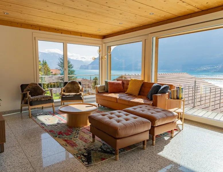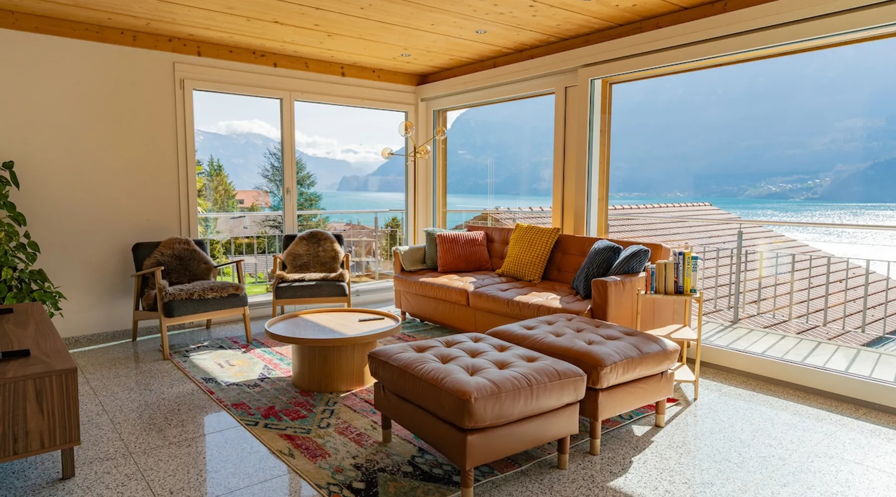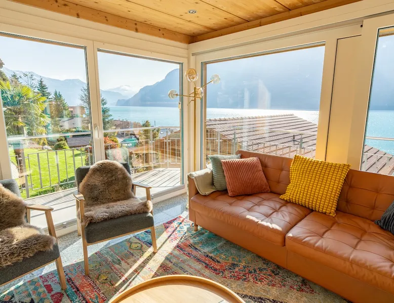 Escape to your private paradise for creating unforgettable memories with your family and friends. ❄️ Air Conditioning in Every Room for your best summer experience 🧖♀️ Private Finnish Sauna for Ultimate Relaxation 🏞️ Unrivalled Lake & Mountain Views from Every Room 🏠 Perfect for Families & Groups (Sleeps 12) ☀️ Expansive Terrace with BBQ & a Garden with Bio-Pond ✨ 5-Star Service: Pro management, a complimentary Interlaken transfer & lot of exclusive addons like private-chef The space Welcome to Chalet Swiss Dream, one of the few truly spacious and private lakeview villas in the Interlaken region. Designed to comfortably host up to 12 guests, our home is the ultimate backdrop for an unforgettable alpine escape. The Chalet: A Tour of Your Private Sanctuary Our chalet unfolds over multiple levels, designed to maximize both the breathtaking views and your personal comfort. THE HEART OF THE HOME: The spacious, open-plan living area is where everyone can gather, relax, and share stories. It flows seamlessly into a fully equipped kitchen, ready for everything from a quick breakfast to a gourmet dinner. We've included traditional Swiss fondue 🫕 & raclette 🧀 sets for an authentic and cozy alpine evening. OUTDOOR LIVING & VIEWS: Step outside onto one of the three expansive terraces. This is your front-row seat to the magnificent theatre of the Swiss Alps. Enjoy your morning coffee, dine alfresco, or host a spectacular evening BBQ on the covered patio while gazing at the stunning turquoise waters of Lake Brienz. REST & REJUVENATE: Four beautifully appointed bedrooms and a comfortable sofa bed ensure a restful night's sleep for your entire group. Bedroom 1: Queen-Size Bed 🛌+ Double Bunk Bed 🧸 Bedroom 2: King-Size Canopy Bed 🛌 Bedroom 3: Queen-Size Bed 🛏️ Bedroom 4: King-Size Bed 🛏️ Living Room: Comfortable Double Sofa Bed 🛋️ WELLNESS & COMFORT: 4 Bathrooms: No morning queues with 3 full bathrooms and a separate guest toilet. Two main bathrooms feature luxurious AcquaClean automatic toilets. Private Finnish Sauna: Your personal wellness retreat to unwind after a day of adventure. Modern Conveniences: A private washer & dryer 🧺, Smart TV, and high-speed Wi-Fi 📶 are all included. Curated Experiences & 5-Star Service As our guest, you receive more than just a key. We are managed by SwissHome to ensure a professional, seamless stay. Complimentary Transfer: To make your arrival effortless, we include a one-time free transfer from the Interlaken train station to the chalet. Elevate Your Stay: Let us enhance your vacation with our range of exclusive add-on services (extra fees apply, bookable via our guest portal): Private Chef Dinner: A gourmet experience in the comfort of your chalet. Fully Serviced BBQ: We handle the grilling so you can relax and enjoy the view. Adventure Bookings: From paragliding to boat trips, let us help you arrange the details. Other things to note An Unbeatable Location: Your Gateway to the Jungfrau Region Your private sanctuary at Chalet Swiss Dream is the perfect base for exploring the world-renowned beauty of the Interlaken area. Whether you seek thrilling adventure or charming alpine villages, you are just minutes away. ADVENTURE & THRILLS Paragliding Interlaken: 🚗 9 min – Soar like a bird over the turquoise lakes for a truly once-in-a-lifetime experience. Rope Park Interlaken (Seilpark): 🚗 13 min – A fun-filled challenge for all ages, navigating treetop courses with stunning views. CULTURE & TOWN CHARM Interlaken City Center: 🚗 9 min – Explore the vibrant heart of the region, home to luxury boutiques, wonderful cafes, and the beautiful Kursaal Park. Ballenberg Open-Air Museum: 🚗 21 min – A fascinating journey into Swiss history, with centuries-old buildings and traditional crafts. ICONIC MOUNTAIN ESCAPES World-Famous Resorts: 🚗 within 30 min – You are perfectly positioned to access the legendary ski and hiking areas of Grindelwald, Wengen, and Mürren. The gateways to iconic peaks like the Jungfrau, Schilthorn, and Männlichen are all within easy reach. Everyday Conveniences 🍓🍏🥂🥑🥐🧀 Stocking up on groceries, local cheeses, and fine wines is effortless. You will find a wide selection of major supermarkets, including Coop, Aldi, and Landi, all within a quick 7-9 minute drive from the chalet.