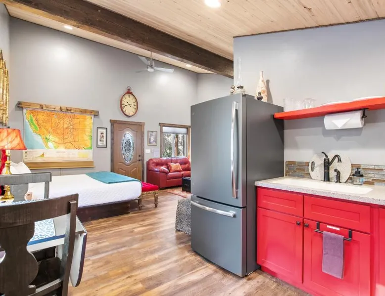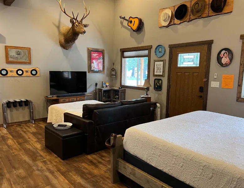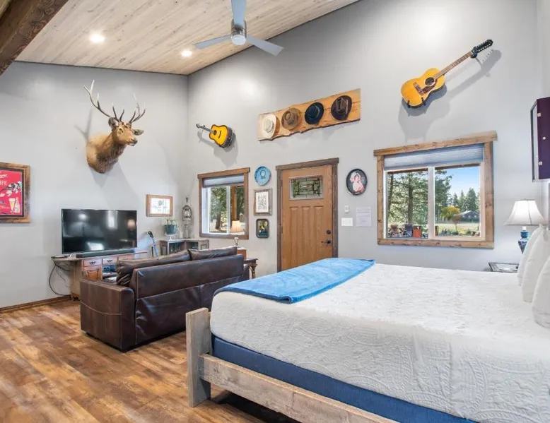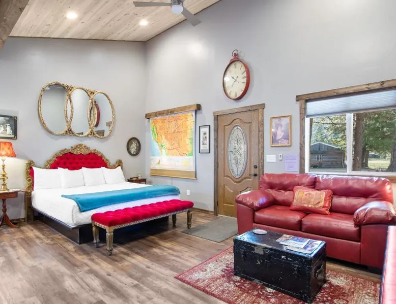 Comfortable Accommodations: Fort Williamson Glacier Vacation Rentals in Columbia Falls offers a holiday home with free WiFi and free on-site private parking. Guests enjoy a balcony with garden and mountain views, a private bathroom, and a fully equipped kitchen. Modern Amenities: The property features a barbecue, tea and coffee maker, bidet, hairdryer, dining table, outdoor dining area, ground-floor unit, walk-in shower, inner courtyard view, refrigerator, seating area, microwave, shower, TV, private entrance, sofa, dining area, electric kettle, kitchenware, stovetop, and toaster. Convenient Location: Located 9.9 mi from Glacier Park International Airport and 1.9 mi from Big Sky Waterpark, the holiday home provides easy access to local attractions. Guests appreciate the host, the convenient location for nature trips, and the scenic views. This holiday home features a hot tub. Boasting a private entrance, this spacious holiday home also features 1 bedroom, a seating area and 1 bathroom with a walk-in shower and a bidet. Guests can make meals in the kitchen that has a stovetop, a refrigerator, kitchenware and an oven. The air-conditioned holiday home features a flat-screen TV, a tea and coffee maker, a dining area, a barbecue as well as garden views. The unit has 1 bed.