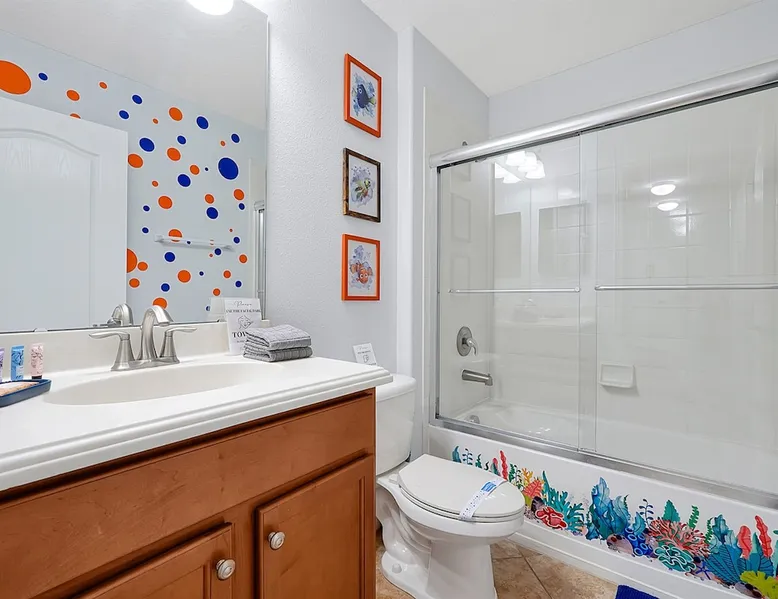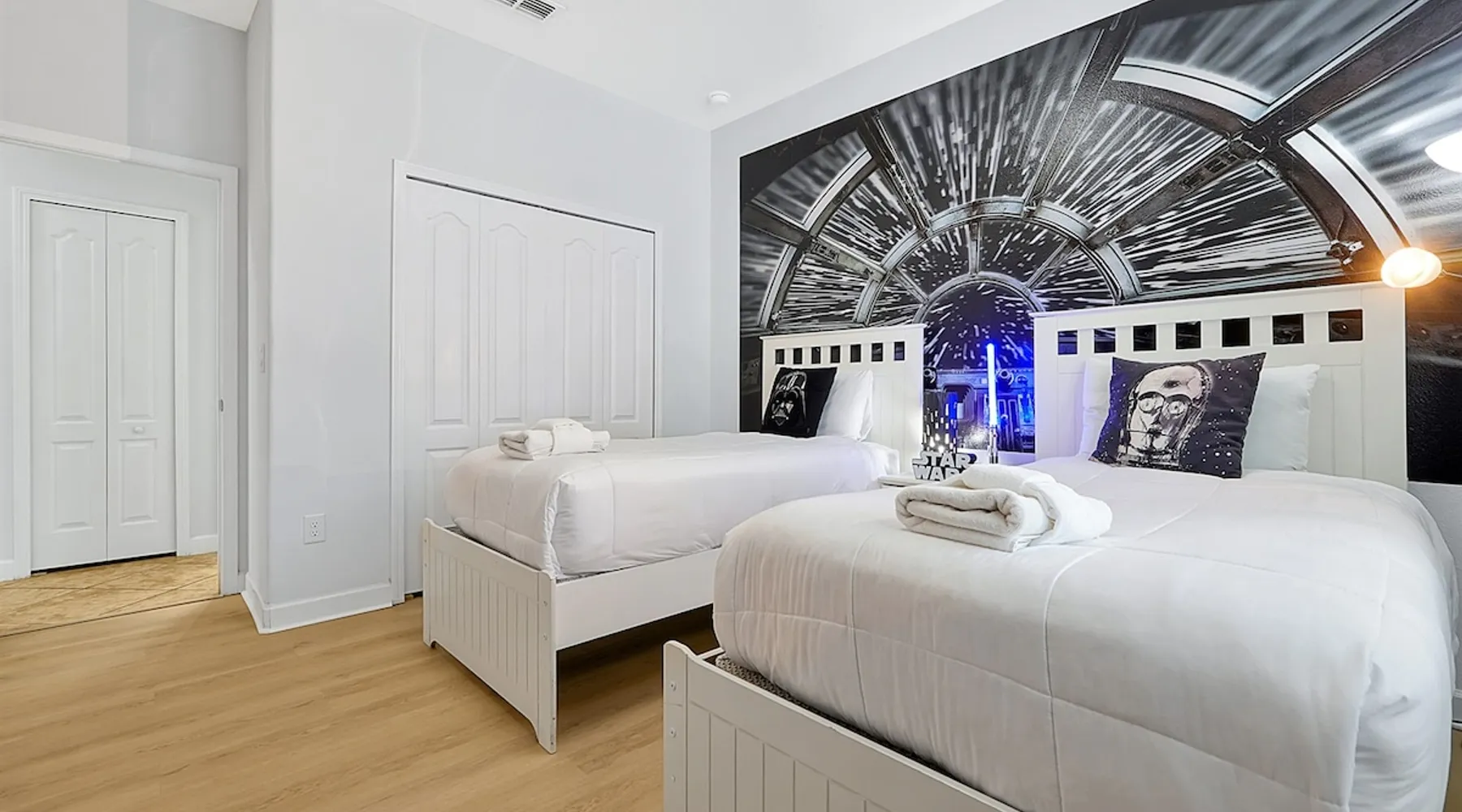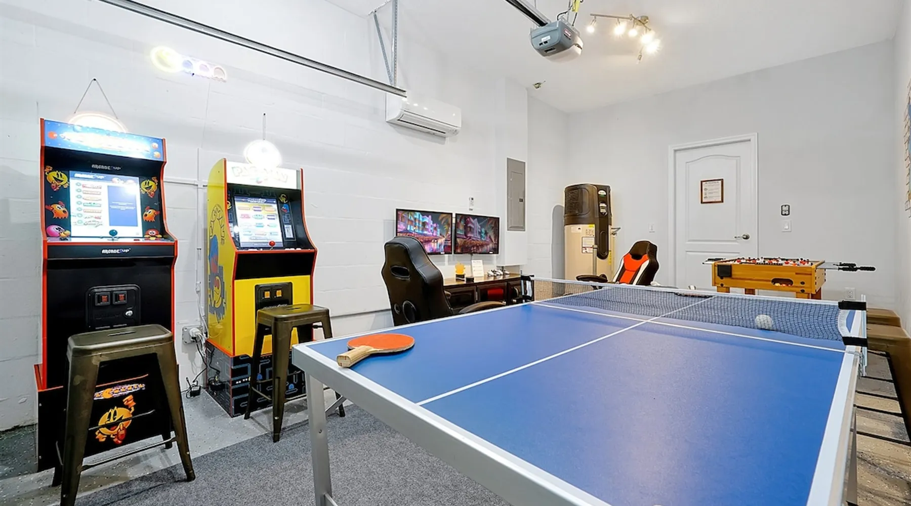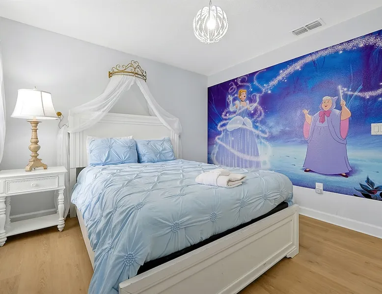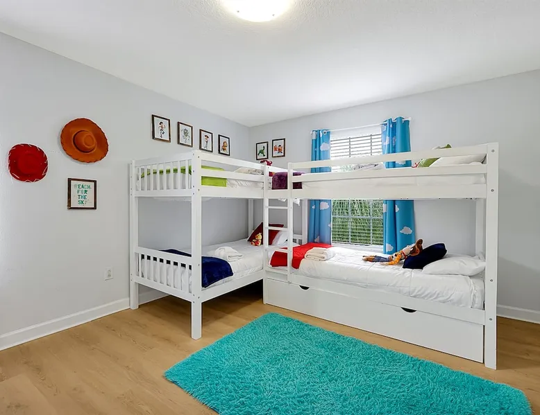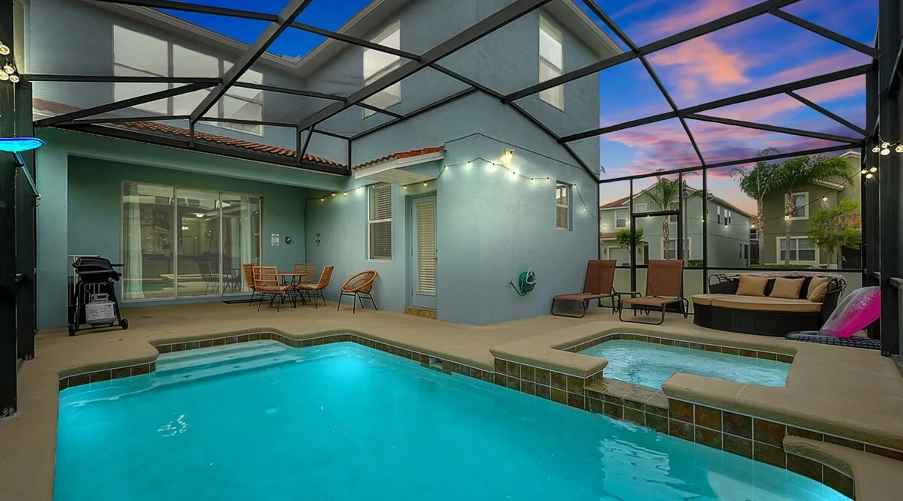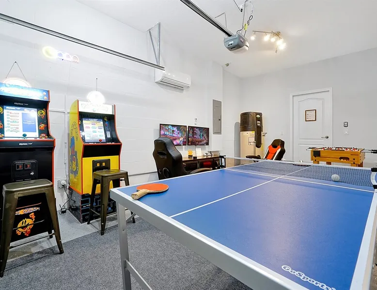 ✔️Mins to Disney ✔️Mins to Universal ✔️Mins to Seaworld ✔️Mins to Legoland ✔️Mins to Airport ✔️Mins to Outlet Malls ✔️Gated Entrance ✔️Guarded Community ✔️24H Security ✔️Clubhouse Access ✔️Themed House ✔️ Game Room ✔️Saltwater Pool ✔️ Spa ✔️5BR/5B ✔️Lvl 2 EV Charger ✔️Spacious ✔️Open Concept ✔️Granite Counters ✔️Cable TV ✔️1Gbps Free Wifi ✔️Free Parking ✔️Xbox One The space * Escape to Orlando's Magic in Our Themed 5BR Villa! * Luxury and Fun for the Whole Family This spacious 3015 sqft, two-story villa offers the perfect blend of luxury and fun for your Orlando vacation. Located in a secure gated community with 24-hour security, you'll enjoy peace of mind and access to fantastic resort-style amenities, including a clubhouse with a pool, spa, gym, and more! * Prime Location for Theme Park Adventures Just a short drive from all the major attractions, including Disney World, Universal Studios, SeaWorld, and Legoland, our villa puts you in the heart of the action. Outlet malls and the airport are also easily accessible. * Inside Your Dream Vacation Home: - Themed Bedrooms: Delight in the magic of our uniquely themed bedrooms, perfect for creating unforgettable memories. - Game Room: Keep the fun going with our dedicated game room, featuring arcades, ping-pong, foosball among others. - Private Oasis: Relax and unwind in your own private screened-in saltwater pool and spa (heating optional for $30/night). - Gourmet Kitchen: Prepare delicious meals in our fully equipped kitchen with stainless steel appliances and granite countertops. - Spacious Living: Enjoy an open-concept living area, perfect for gathering with family and friends. - Modern Amenities: Stay connected with 1 Gbps free Wi-Fi, cable TV, and a Level 2 EV charger. Guest access - You'll have access to the entire house (except for owner's closets) with a personalized door code. - Free private parking and Level 2 EV charging are available. - Early check-in/late check-out may be available for an additional $50, subject to availability. - Starter pack of toiletries and common household consumables provided. Other things to note * Resort-Style Amenities: - Enjoy access to the community clubhouse, featuring a gym, theater, arcade, sauna, pool, spa, playground, beach volleyball, basketball, pickleball, and tennis courts. A market and bar & grill are also available for your convenience. (Guest registration required - please provide first and last names of all guests.) - Property is treated periodically for pests and is on city water & sewage. Please flush only toilet paper. - Security cameras are located at the front door and outside the pool enclosure. - Maximum occupancy: 12 guests.