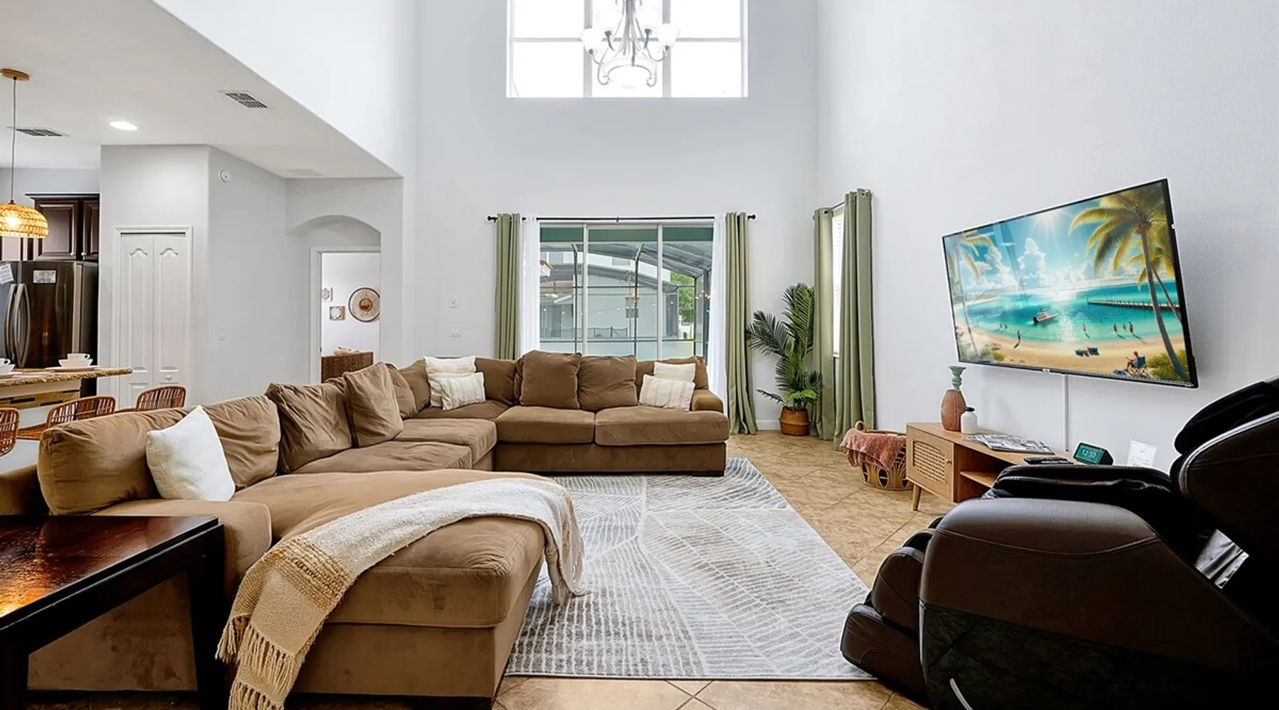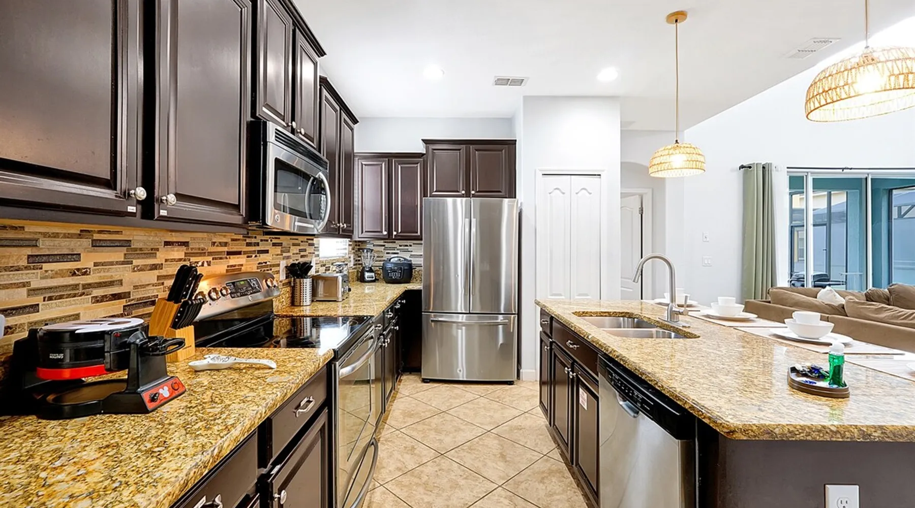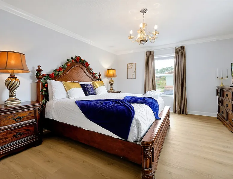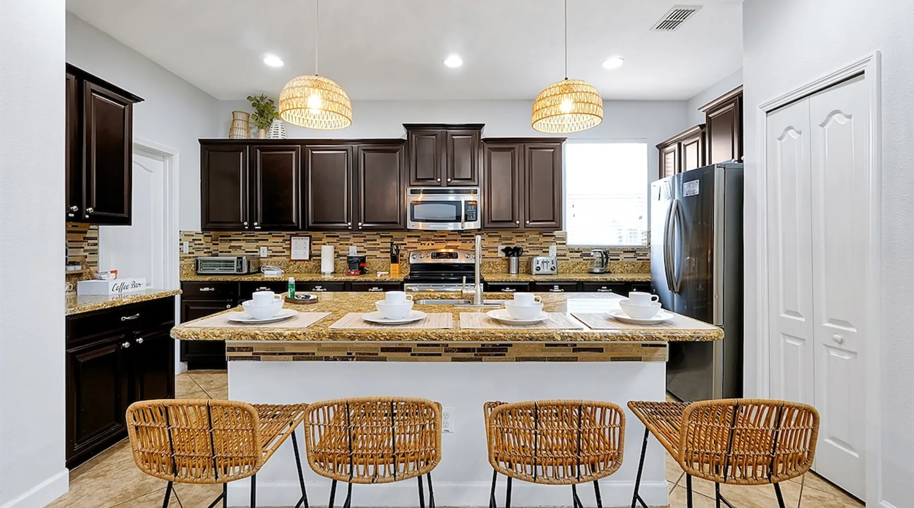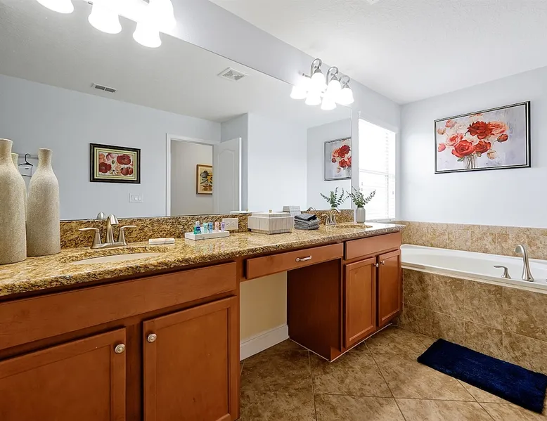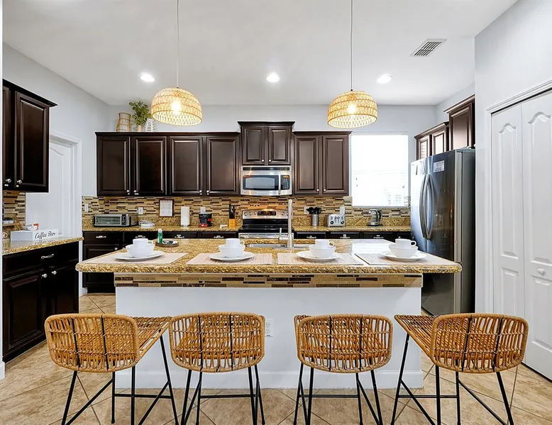 ✔️Mins to Disney ✔️Mins to Universal ✔️Mins to Seaworld ✔️Mins to Legoland ✔️Mins to Airport ✔️Mins to Outlet Malls ✔️Gated Entrance ✔️Guarded Community ✔️24H Security ✔️Clubhouse Access ✔️Themed House ✔️ Game Room ✔️Saltwater Pool ✔️ Spa ✔️5BR/5B ✔️Lvl 2 EV Charger ✔️Spacious ✔️Open Concept ✔️Granite Counters ✔️Cable TV ✔️1Gbps Free Wifi ✔️Free Parking ✔️Xbox One The space * Escape to Orlando's Magic in Our Themed 5BR Villa! * Luxury and Fun for the Whole Family This spacious 3015 sqft, two-story villa offers the perfect blend of luxury and fun for your Orlando vacation. Located in a secure gated community with 24-hour security, you'll enjoy peace of mind and access to fantastic resort-style amenities, including a clubhouse with a pool, spa, gym, and more! * Prime Location for Theme Park Adventures Just a short drive from all the major attractions, including Disney World, Universal Studios, SeaWorld, and Legoland, our villa puts you in the heart of the action. Outlet malls and the airport are also easily accessible. * Inside Your Dream Vacation Home: - Themed Bedrooms: Delight in the magic of our uniquely themed bedrooms, perfect for creating unforgettable memories. - Game Room: Keep the fun going with our dedicated game room, featuring arcades, ping-pong, foosball among others. - Private Oasis: Relax and unwind in your own private screened-in saltwater pool and spa (heating optional for $30/night). - Gourmet Kitchen: Prepare delicious meals in our fully equipped kitchen with stainless steel appliances and granite countertops. - Spacious Living: Enjoy an open-concept living area, perfect for gathering with family and friends. - Modern Amenities: Stay connected with 1 Gbps free Wi-Fi, cable TV, and a Level 2 EV charger. Guest access - You'll have access to the entire house (except for owner's closets) with a personalized door code. - Free private parking and Level 2 EV charging are available. - Early check-in/late check-out may be available for an additional $50, subject to availability. - Starter pack of toiletries and common household consumables provided. Other things to note * Resort-Style Amenities: - Enjoy access to the community clubhouse, featuring a gym, theater, arcade, sauna, pool, spa, playground, beach volleyball, basketball, pickleball, and tennis courts. A market and bar & grill are also available for your convenience. (Guest registration required - please provide first and last names of all guests.) - Property is treated periodically for pests and is on city water & sewage. Please flush only toilet paper. - Security cameras are located at the front door and outside the pool enclosure. - Maximum occupancy: 12 guests.