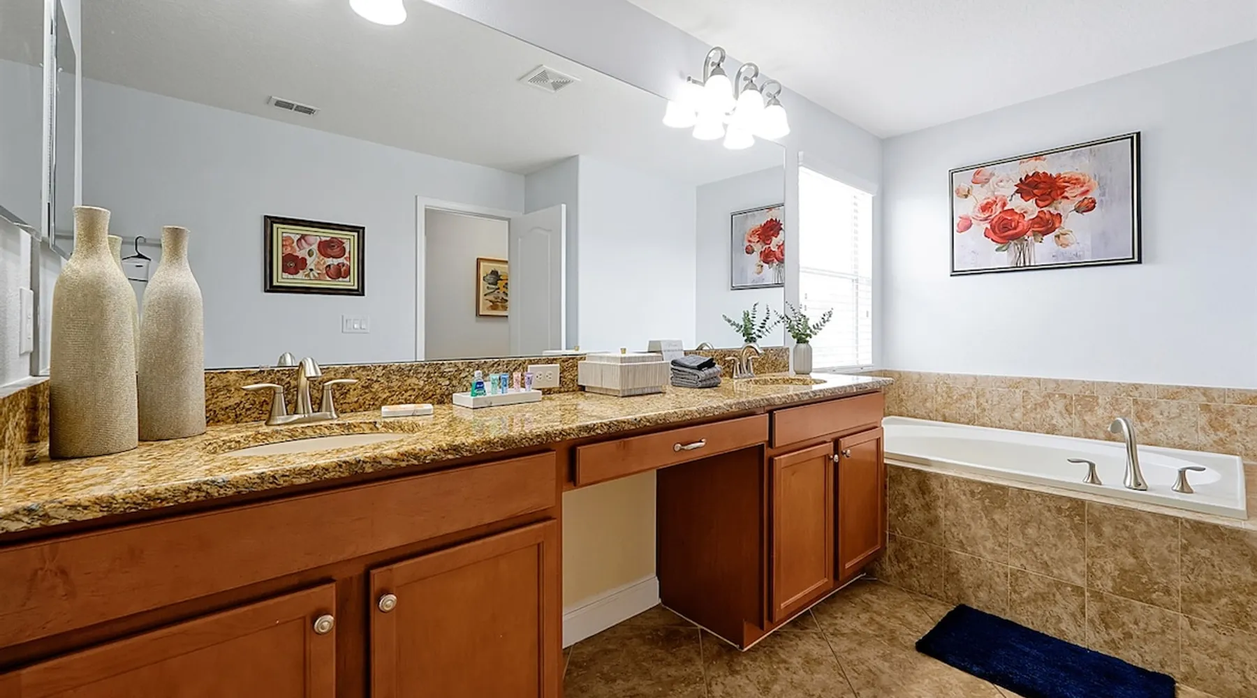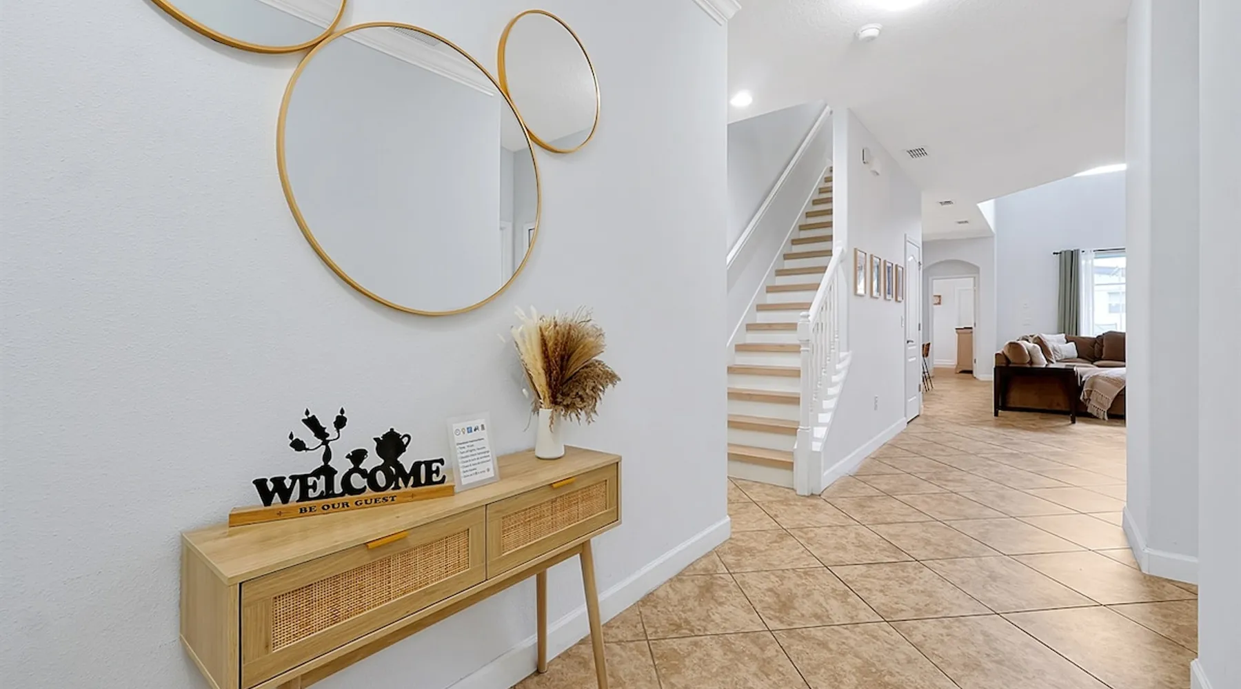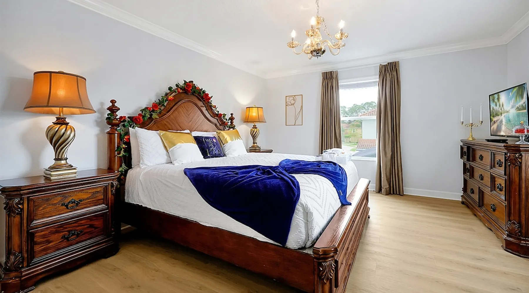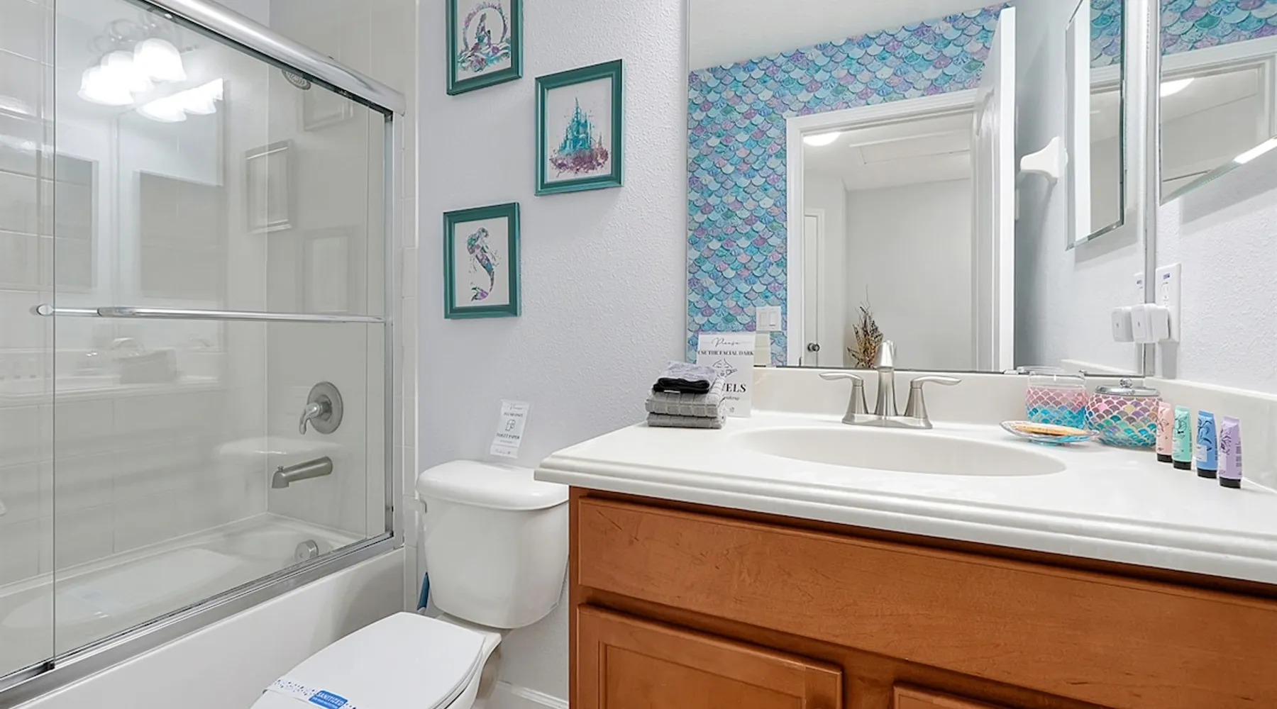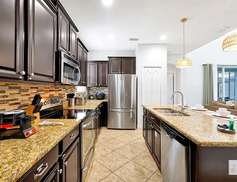 ✔️Mins to Disney ✔️Mins to Universal ✔️Mins to Seaworld ✔️Mins to Legoland ✔️Mins to Airport ✔️Mins to Outlet Malls ✔️Gated Entrance ✔️Guarded Community ✔️24H Security ✔️Clubhouse Access ✔️Themed House ✔️ Game Room ✔️Saltwater Pool ✔️ Spa ✔️5BR/5B ✔️Lvl 2 EV Charger ✔️Spacious ✔️Open Concept ✔️Granite Counters ✔️Cable TV ✔️1Gbps Free Wifi ✔️Free Parking ✔️Xbox One The space * Escape to Orlando's Magic in Our Themed 5BR Villa! * Luxury and Fun for the Whole Family This spacious 3015 sqft, two-story villa offers the perfect blend of luxury and fun for your Orlando vacation. Located in a secure gated community with 24-hour security, you'll enjoy peace of mind and access to fantastic resort-style amenities, including a clubhouse with a pool, spa, gym, and more! * Prime Location for Theme Park Adventures Just a short drive from all the major attractions, including Disney World, Universal Studios, SeaWorld, and Legoland, our villa puts you in the heart of the action. Outlet malls and the airport are also easily accessible. * Inside Your Dream Vacation Home: - Themed Bedrooms: Delight in the magic of our uniquely themed bedrooms, perfect for creating unforgettable memories. - Game Room: Keep the fun going with our dedicated game room, featuring arcades, ping-pong, foosball among others. - Private Oasis: Relax and unwind in your own private screened-in saltwater pool and spa (heating optional for $30/night). - Gourmet Kitchen: Prepare delicious meals in our fully equipped kitchen with stainless steel appliances and granite countertops. - Spacious Living: Enjoy an open-concept living area, perfect for gathering with family and friends. - Modern Amenities: Stay connected with 1 Gbps free Wi-Fi, cable TV, and a Level 2 EV charger. Guest access - You'll have access to the entire house (except for owner's closets) with a personalized door code. - Free private parking and Level 2 EV charging are available. - Early check-in/late check-out may be available for an additional $50, subject to availability. - Starter pack of toiletries and common household consumables provided. Other things to note * Resort-Style Amenities: - Enjoy access to the community clubhouse, featuring a gym, theater, arcade, sauna, pool, spa, playground, beach volleyball, basketball, pickleball, and tennis courts. A market and bar & grill are also available for your convenience. (Guest registration required - please provide first and last names of all guests.) - Property is treated periodically for pests and is on city water & sewage. Please flush only toilet paper. - Security cameras are located at the front door and outside the pool enclosure. - Maximum occupancy: 12 guests.