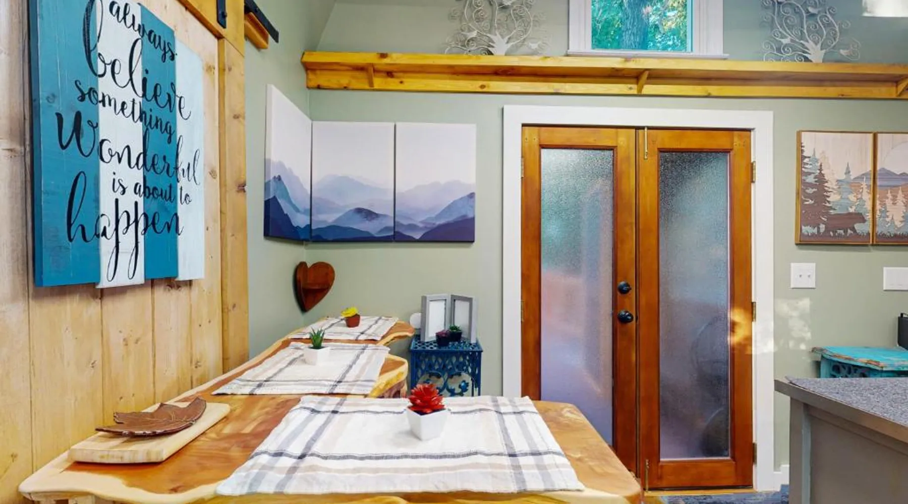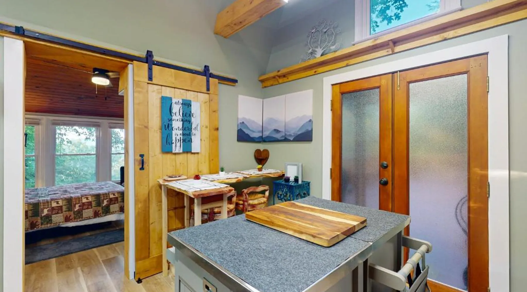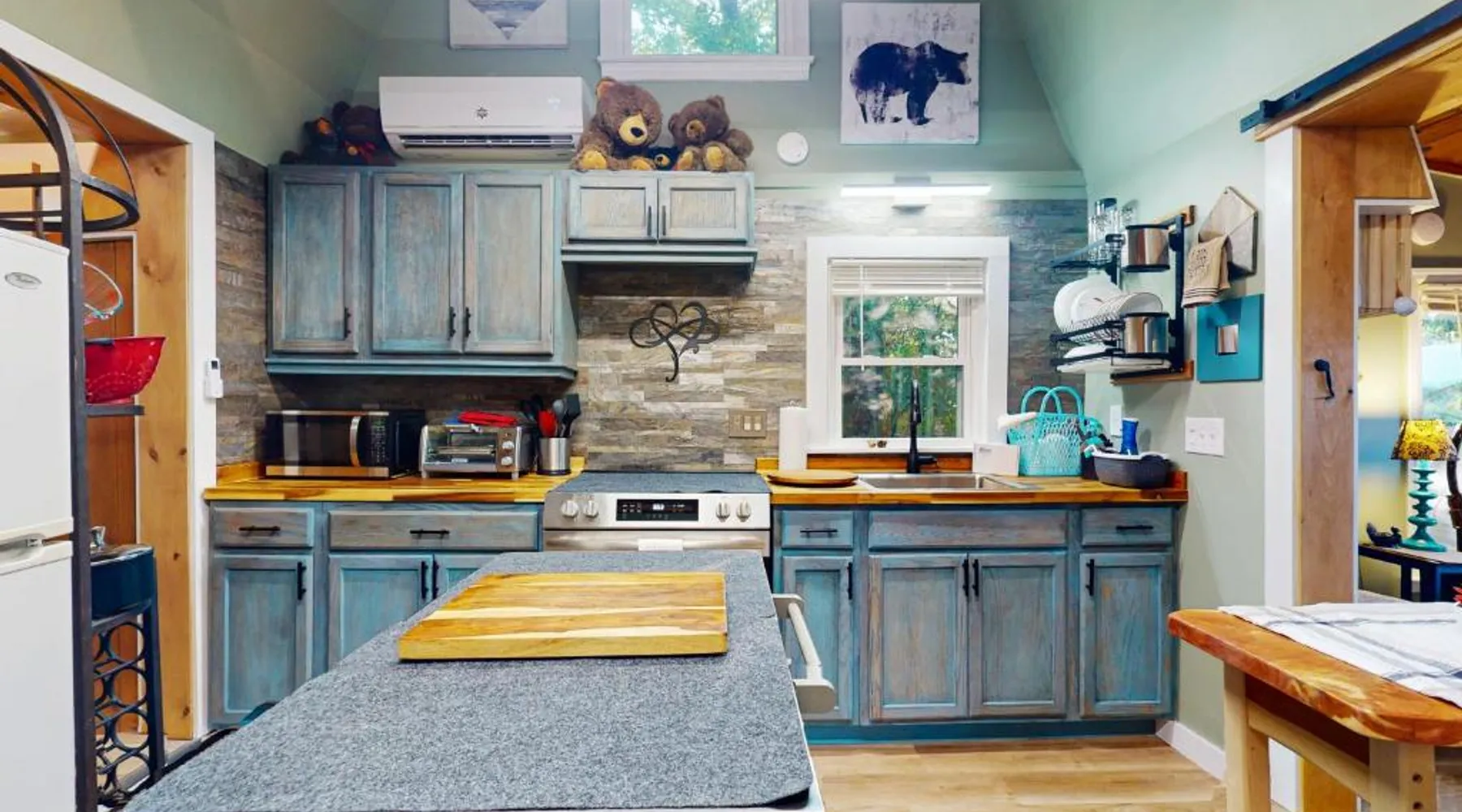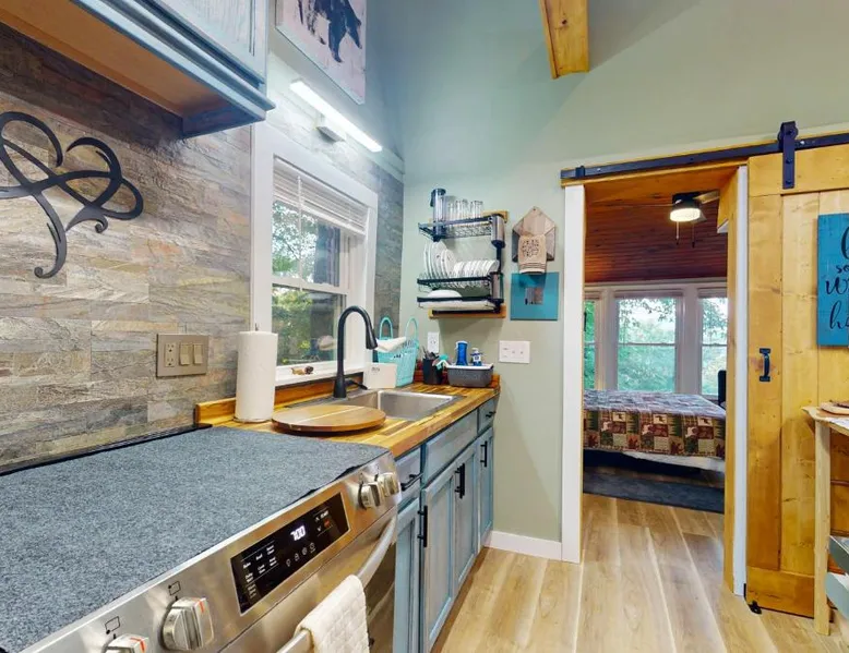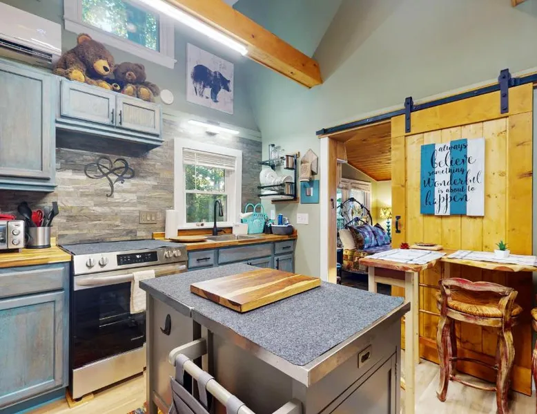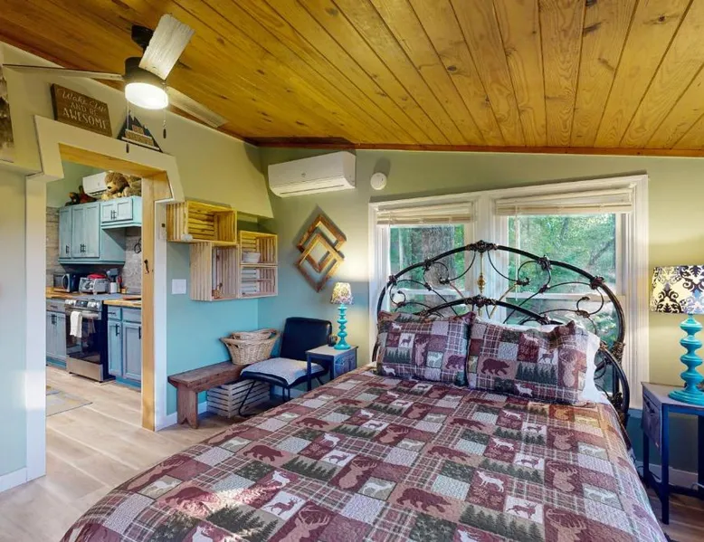Comfortable Living: View for Two in Ellijay offers a holiday home with one bedroom and one bathroom. The property features air-conditioning, a kitchenette, and a private entrance. Leisure Facilities: Guests can enjoy an indoor and outdoor swimming pool, an outdoor fireplace, a fitness room, and a games room. The home includes a patio and a barbecue area for relaxation. Convenient Amenities: The holiday home provides streaming services, a washing machine, free toiletries, and a fully equipped kitchen with a refrigerator, microwave, oven, and stovetop. Additional amenities include a hairdryer and a TV. Accessibility: Chattanooga Metropolitan Airport is 66 mi away, offering convenient travel options. Guests will have a special experience as this holiday home offers a fireplace. Boasting a private entrance, this air-conditioned holiday home includes 1 bedroom and 1 bathroom with a hairdryer. Guests will find a stovetop, a refrigerator, kitchenware and an oven in the kitchen. The holiday home also features a barbecue. This holiday home has a washing machine, tumble dryer, a flat-screen TV with streaming services and a patio. The unit has 1 bed.