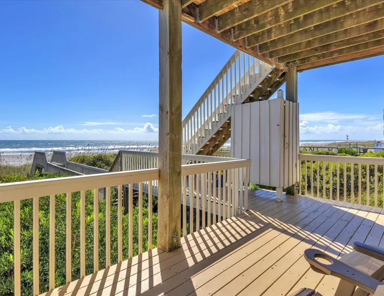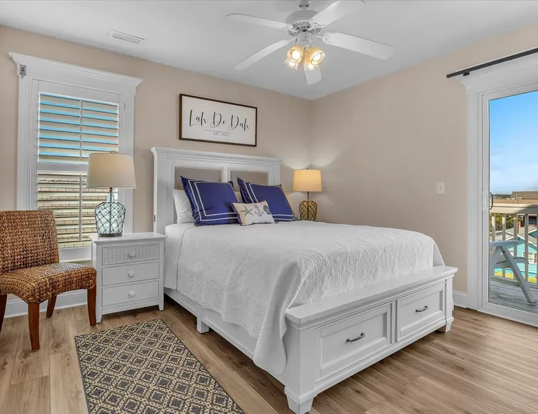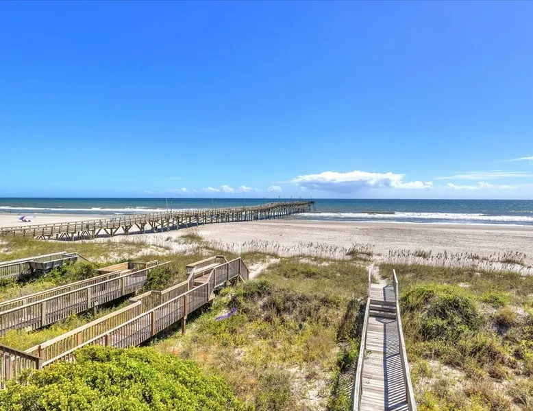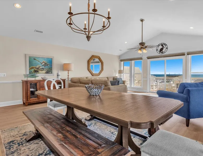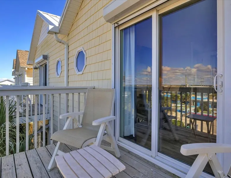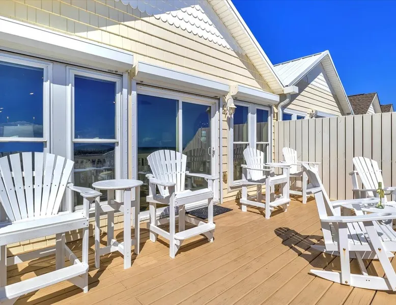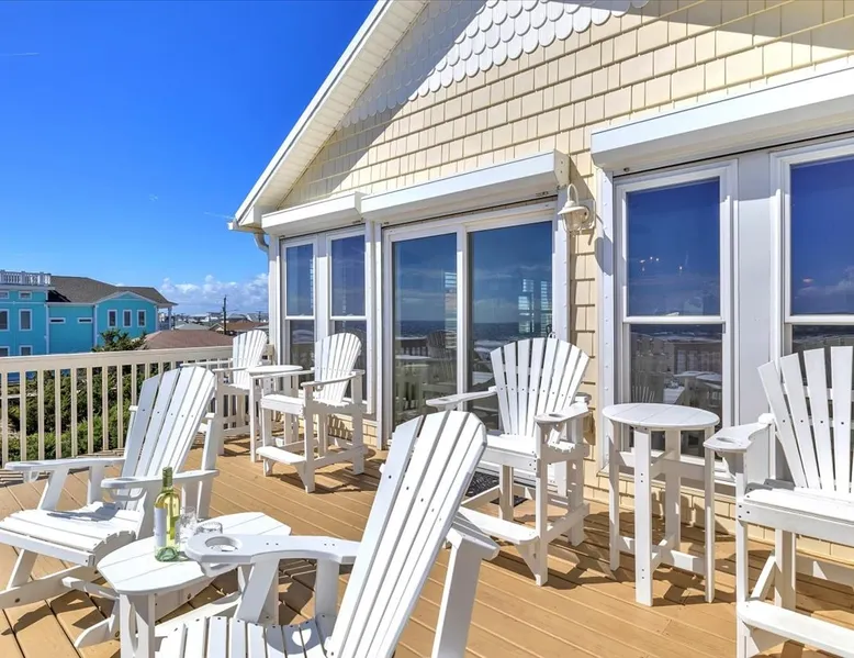 Drift Away, professionally managed by Blue Anchor Property Management “Give me the beat, boys, and free my soul…” At Drift Away, that’s exactly what you’ll do. Nestled right on the beach, this beautiful 4-bedroom, 3-bathroom oceanfront townhouse is your perfect coastal escape — where sea breezes, sunsets, and the sound of the waves melt your worries away. The Space Step inside and feel the coastal charm in every room. The open-concept living area features a wall of ocean-view windows and a The space Drift Away is a beachfront 4-bedroom, 3-bathroom townhouse designed for easy, comfortable coastal living. Professionally managed by Blue Anchor Property Management. The open floor plan features a sun-filled living room with sweeping ocean views, a fully equipped kitchen, and a dining table that seats 10. Step out onto the large deck to enjoy ocean breezes, sunsets, and outdoor dining. Private bedrooms offer peaceful retreats, including a primary suite with its own balcony overlooking the beach. Sleeping Arrangements Lower Level Bedroom 1: Primary King Suite — TV, private oceanfront deck, ensuite bathroom with double vanities, soaking tub, and large tiled shower Bedroom 2: Queen — TV, hallway bath access Bedroom 3: Queen — private balcony, TV, desk, and hallway bath access Upper Level Bedroom 4: Queen — TV and desk with hallway bath access Living & Kitchen The upper-level open-concept living space features: Oceanfront deck with bar-height seating Fully equipped kitchen with stainless steel appliances Large granite countertop with seating for 4 Dining table seating for 8 Comfortable coastal furnishings and TV Enjoy meals indoors, on the oceanfront deck. You'll find, high-speed Wi-Fi, smart TVs, and everything you need for a relaxed and memorable stay. This home is professionally managed by Blue Anchor Property Management. Head over and check out our reviews and discounts. This property also offers Keyless Access Entry for a quick and easy check-in and check-out process. Codes are given upon check-in and will no longer work after check-out time. Check-in time is 4 pm and check-out is 10 am sharp! No smoking or vaping allowed. No grilling allowed on this property. **Guests are required to be a minimum of 25 years old, provide valid ID, authorize a security deposit hold, and sign a lease and addenda with Blue Anchor Property Management within 48 hours before the reservation is confirmed. Guests that are not related must be 30 years old, and all guests in the party must present a valid ID and sign a lease with addenda with Blue Anchor Property Management; no house parties allowed. Blue Anchor Property Management has the right to cancel any reservation within 48 hours if any of the above requirements have not been met.** If you have any questions, please do not hesitate to reach out and ask! We look forward to hosting you soon Guest access Keyless entry for easy guest access Other things to note Standout Features: - Professionally managed by Blue Anchor Property Management. - Beachfront location with direct access - Oversized deck with ocean-facing pub tables - Sleeps 8 comfortably with large dining area - Private balcony off the primary bedroom - King size bed in the beachfront primary bedroom - Walk to restaurant - Patio Playground -the Putt-Putt, arcade, and ice cream directly across the street. - Jolly Roger Fishing Pier just three doors to the north. - Wide open view of the beach to the south Amenity Highlights: - Free private parking - Welcome Bag with starter items - Linens and towels provided - Outdoor shower - High-speed Wi-Fi - Smart TVs Experience/Location Perks: - Prime dolphin-watching - Private beach access, steps from the pier - A few blocks from Bush Marina - A short drive to "The Point," the southernmost point of Topsail Island