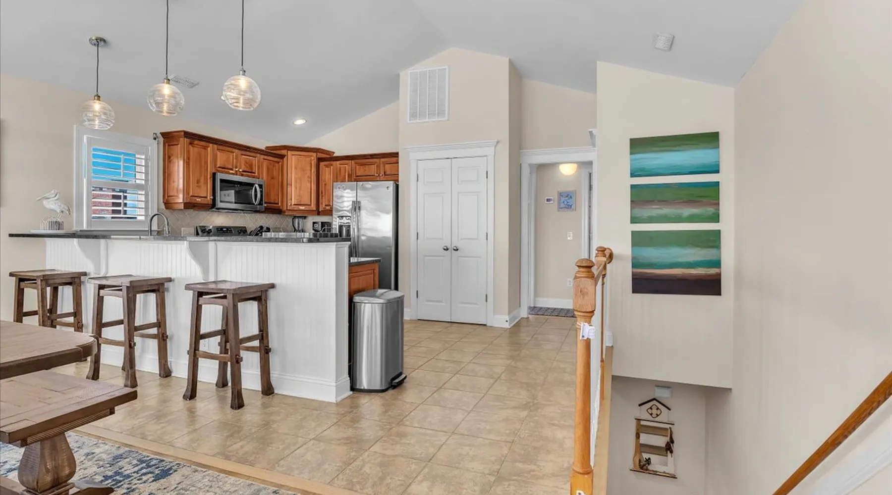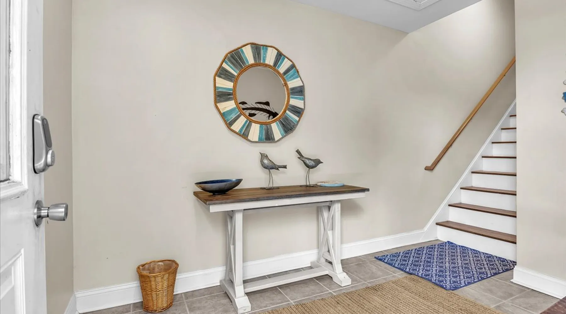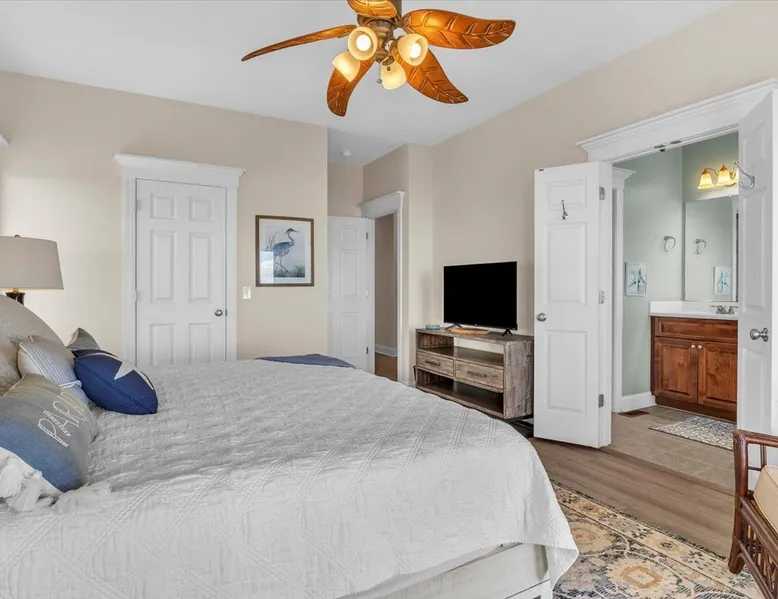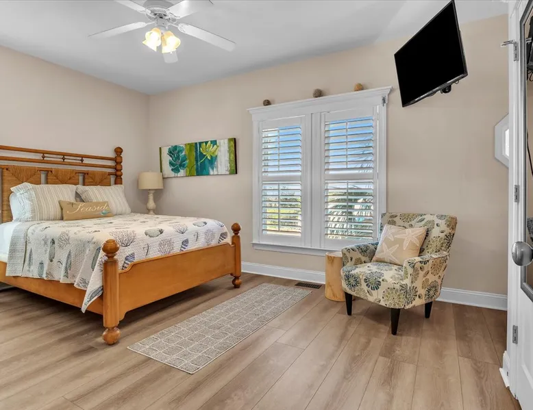 Drift Away, professionally managed by Blue Anchor Property Management “Give me the beat, boys, and free my soul…” At Drift Away, that’s exactly what you’ll do. Nestled right on the beach, this beautiful 4-bedroom, 3-bathroom oceanfront townhouse is your perfect coastal escape — where sea breezes, sunsets, and the sound of the waves melt your worries away. The Space Step inside and feel the coastal charm in every room. The open-concept living area features a wall of ocean-view windows and a The space Drift Away is a beachfront 4-bedroom, 3-bathroom townhouse designed for easy, comfortable coastal living. Professionally managed by Blue Anchor Property Management. The open floor plan features a sun-filled living room with sweeping ocean views, a fully equipped kitchen, and a dining table that seats 10. Step out onto the large deck to enjoy ocean breezes, sunsets, and outdoor dining. Private bedrooms offer peaceful retreats, including a primary suite with its own balcony overlooking the beach. Sleeping Arrangements Lower Level Bedroom 1: Primary King Suite — TV, private oceanfront deck, ensuite bathroom with double vanities, soaking tub, and large tiled shower Bedroom 2: Queen — TV, hallway bath access Bedroom 3: Queen — private balcony, TV, desk, and hallway bath access Upper Level Bedroom 4: Queen — TV and desk with hallway bath access Living & Kitchen The upper-level open-concept living space features: Oceanfront deck with bar-height seating Fully equipped kitchen with stainless steel appliances Large granite countertop with seating for 4 Dining table seating for 8 Comfortable coastal furnishings and TV Enjoy meals indoors, on the oceanfront deck. You'll find, high-speed Wi-Fi, smart TVs, and everything you need for a relaxed and memorable stay. This home is professionally managed by Blue Anchor Property Management. Head over and check out our reviews and discounts. This property also offers Keyless Access Entry for a quick and easy check-in and check-out process. Codes are given upon check-in and will no longer work after check-out time. Check-in time is 4 pm and check-out is 10 am sharp! No smoking or vaping allowed. No grilling allowed on this property. **Guests are required to be a minimum of 25 years old, provide valid ID, authorize a security deposit hold, and sign a lease and addenda with Blue Anchor Property Management within 48 hours before the reservation is confirmed. Guests that are not related must be 30 years old, and all guests in the party must present a valid ID and sign a lease with addenda with Blue Anchor Property Management; no house parties allowed. Blue Anchor Property Management has the right to cancel any reservation within 48 hours if any of the above requirements have not been met.** If you have any questions, please do not hesitate to reach out and ask! We look forward to hosting you soon Guest access Keyless entry for easy guest access Other things to note Standout Features: - Professionally managed by Blue Anchor Property Management. - Beachfront location with direct access - Oversized deck with ocean-facing pub tables - Sleeps 8 comfortably with large dining area - Private balcony off the primary bedroom - King size bed in the beachfront primary bedroom - Walk to restaurant - Patio Playground -the Putt-Putt, arcade, and ice cream directly across the street. - Jolly Roger Fishing Pier just three doors to the north. - Wide open view of the beach to the south Amenity Highlights: - Free private parking - Welcome Bag with starter items - Linens and towels provided - Outdoor shower - High-speed Wi-Fi - Smart TVs Experience/Location Perks: - Prime dolphin-watching - Private beach access, steps from the pier - A few blocks from Bush Marina - A short drive to "The Point," the southernmost point of Topsail Island