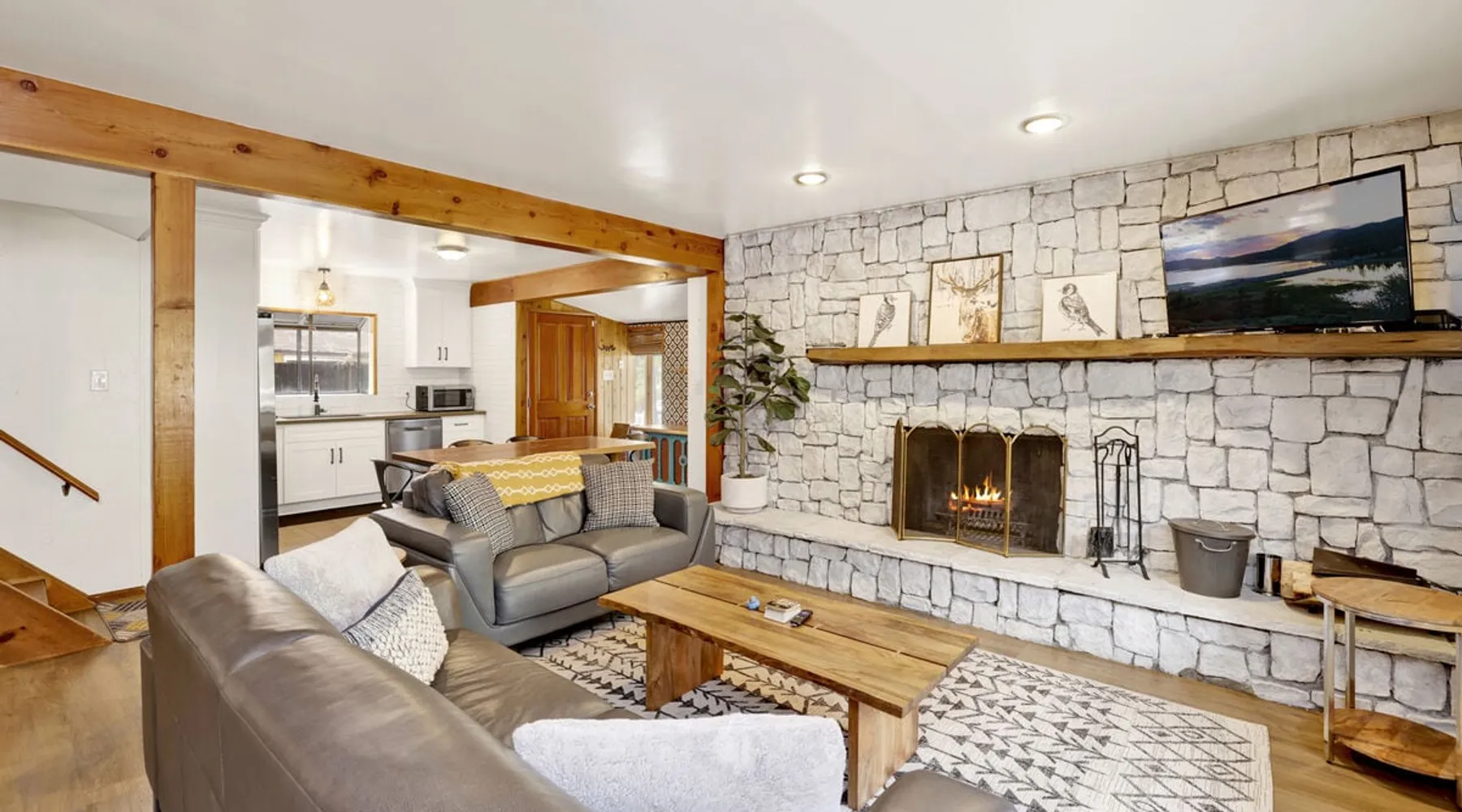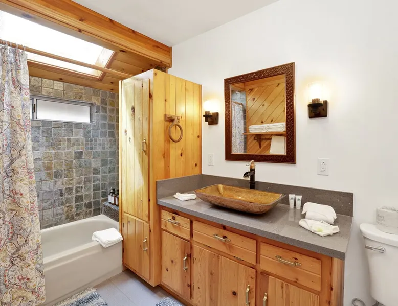 Sugar Bear Pines- Modern Relaxing Family Retreat Welcome to Sugar Bear Pines. A relaxing and renovated retreat cottage providing plenty of space and essential amenities for a family or group vacation to the mountains. Located in a quiet Sugarloaf neighborhood at the east side of town you will be within a short walk to local hiking trails and a quick ten-minute car ride to downtown activities. The space This classic mountain cabin has everything your group needs to enjoy a comfortable adventure to Big Bear no matter the season you choose to visit. Stroll the nature trails nearby or hop in the car and you are within minutes to the grocery stores, ski resorts, marina, and more. You will love this convenient yet secluded location. Come experience your new home away from home today here at Sugar Bear Pines. Sleeping Arrangements: Bedroom 1: King Bed, Streaming TV, Private Half Bath- Downstairs Entry Level Bedroom 2: Queen Bed, Deck Access- Downstairs Entry Level Bedroom 3: Two Twin Beds- Upstairs 2nd Level Bedroom 4: Twin/Twin Trundle Bed- Upstairs 2nd Level Bathroom Arrangements: Hallway Full Bath- Downstairs Entry Level Private Half Bath- Bedroom 1- Downstairs Entry Level -Sleeps 8 -4 Car Driveway Parking -No Pets Allowed- Fines Imposed for Pets on Premises -1,147 Square Feet County Permit #: CESTRP-2024-00836 Guest access Once checked in, guests can enjoy sole access to their private property for the duration of their booked dates. Registration Details CESTRP-2024-00836