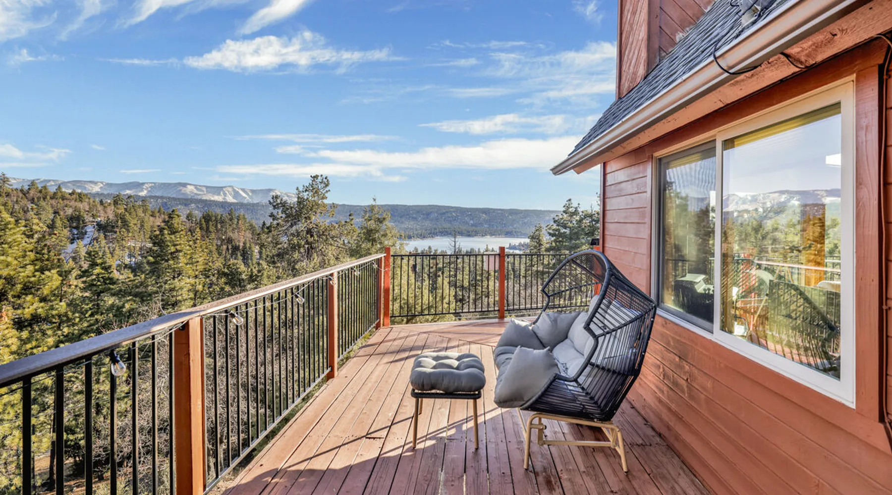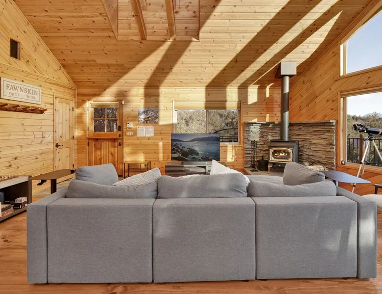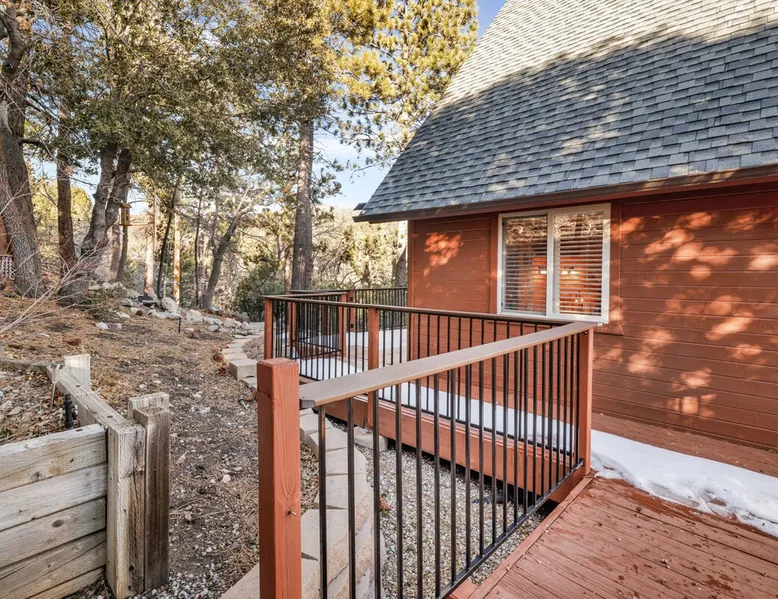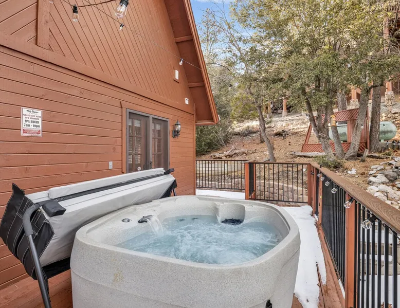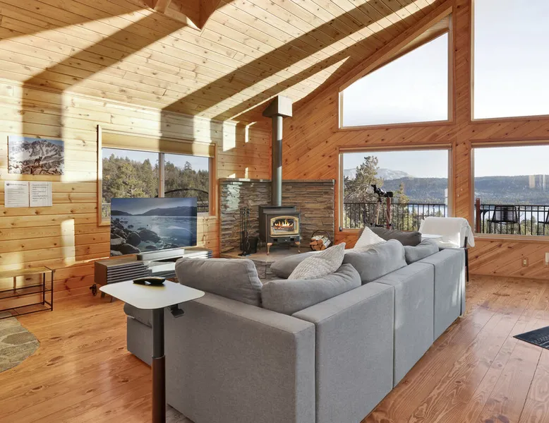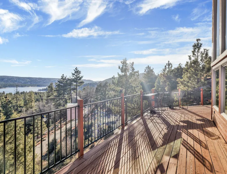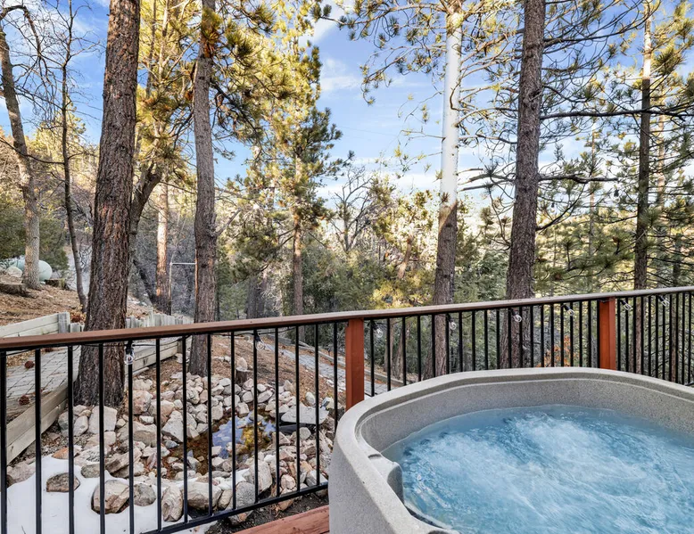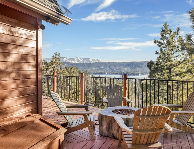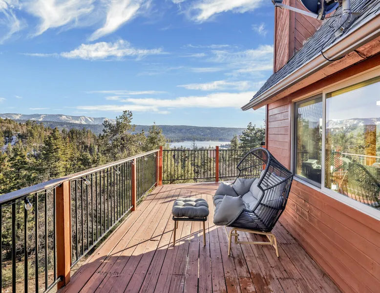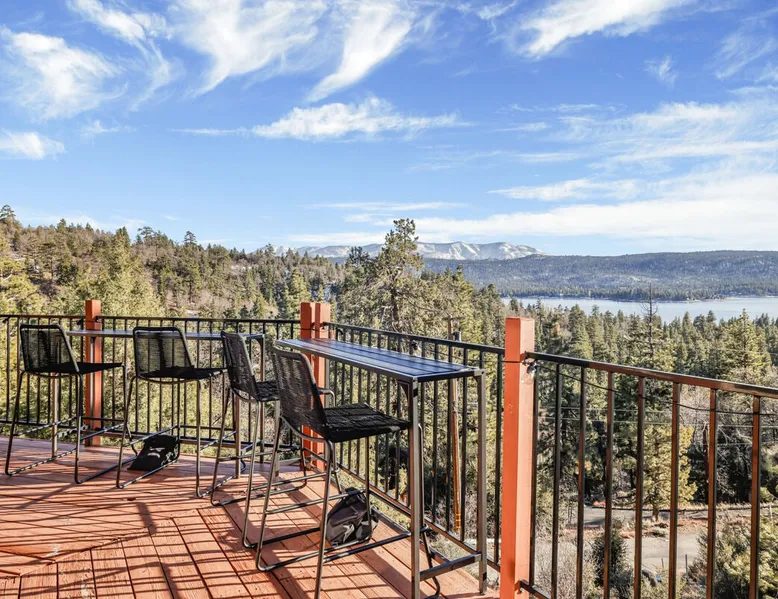 High-Top Lakeview Chateau | Relaxing Modern Fawnskin Retreat Welcome to High-Top Lakeview Chateau, your mountain getaway nestled in the pines above Big Bear Lake on the serene North Shore. This charming cabin is the perfect spot for a family vacation or a getaway with friends, offering a relaxing retreat any time of the year. With everything you need to create lifelong memories, this is the ideal destination for your next mountain escape. The space Step inside and take in breathtaking panoramic views of the lake, forest, and valley through floor-to-ceiling windows that fill the open living space with natural light. Cozy up by the wood-burning fireplace, cook in the modern kitchen equipped with a microwave, air fryer, and electric stovetop, or unwind surrounded by artisan furnishings and warm, inviting décor. Please note- NO OVEN- Each bedroom offers private deck access leading to a soothing outdoor spa, ideal for soaking under the stars after a day of exploring Big Bear’s scenic trails or slopes. Step outside to the wrap-around sun deck where high-top seating, solar lighting, and panoramic lake views create the perfect backdrop for morning coffee, sunset drinks, or al fresco dining. Just 10 minutes from The Village, ski resorts, and marinas, this peaceful Fawnskin retreat offers easy access to all of Big Bear’s best attractions while maintaining the serenity of a secluded mountain escape. Whether you’re visiting for a family adventure, romantic weekend, or a peaceful recharge, High-Top Lakeview Chateau offers the ultimate blend of luxury, nature, and comfort. Book your stay today and experience the best of Big Bear, where relaxation meets adventure! Sleeping Arrangements: Bedroom 1: Queen Bed, Deck Access — Single Level Bedroom 2: Queen Bed + Twin Bed, Deck Access — Single Level Bathroom Arrangements: Hallway Full Bath — Single Level Hallway 3/4 Bath (Shower Only) — Single Level Sleeps 5 2-Car Driveway Parking (Garage not accessible to guests) 2 Pets Welcome w/ Additional Fee 1,260 Square Feet County Permit #: CESTRP-2025-00067 Guest access Once checked in, guests can enjoy sole access to their private property for the duration of their booked dates. Registration Details CESTRP-2025-00067