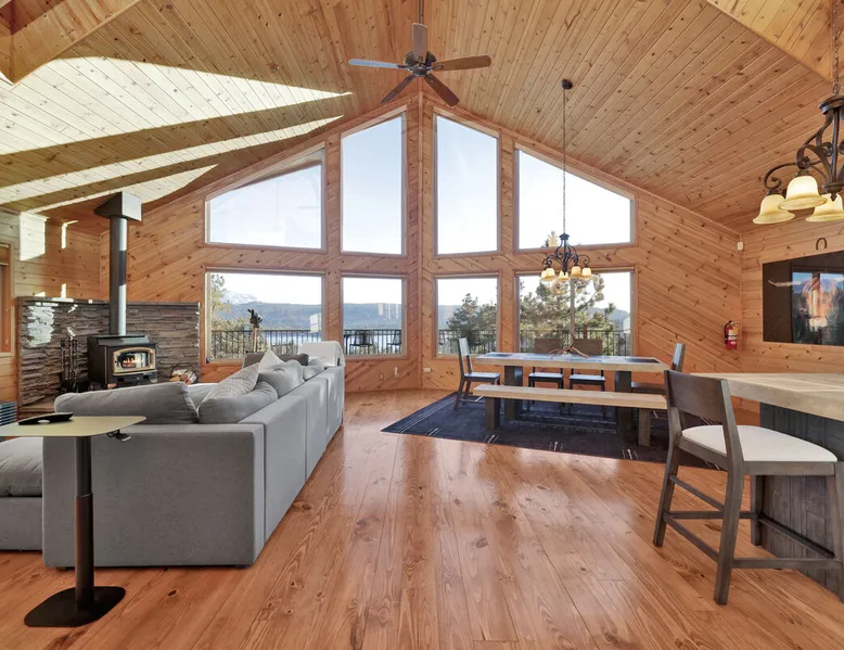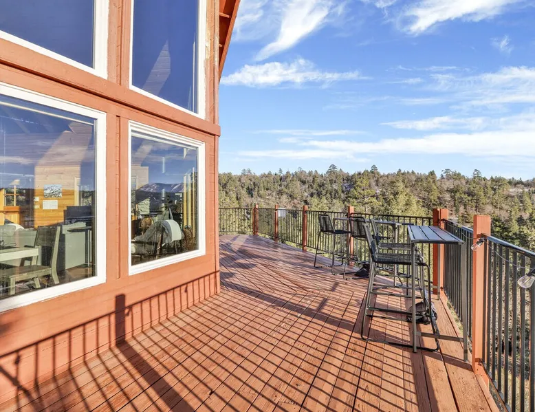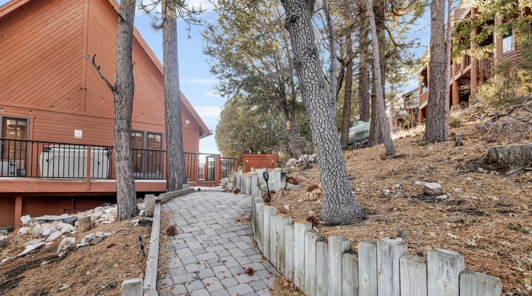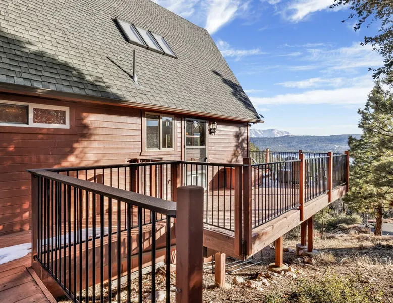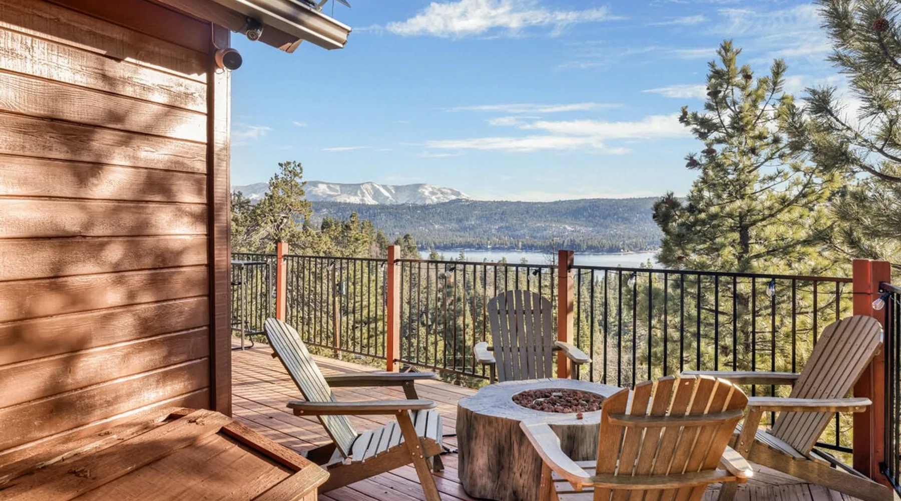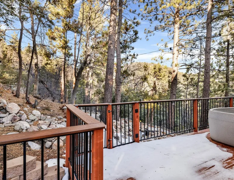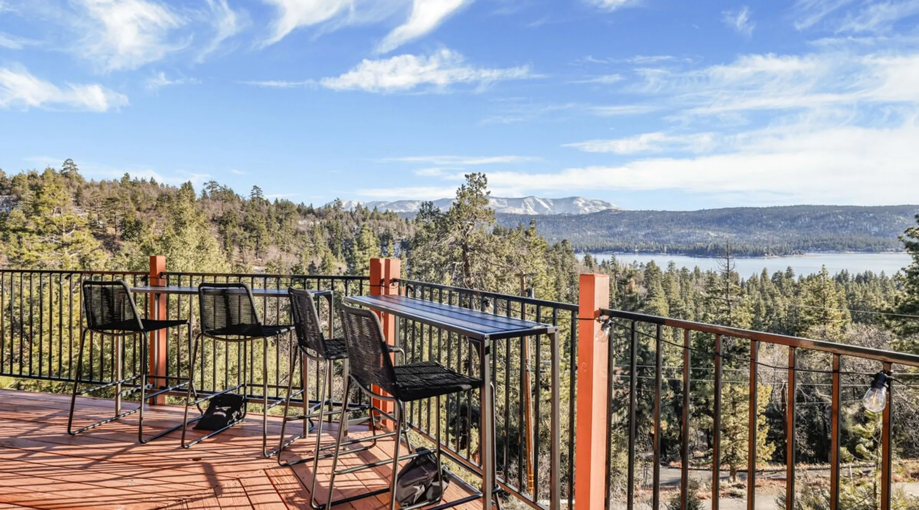 High-Top Lakeview Chateau | Relaxing Modern Fawnskin Retreat Welcome to High-Top Lakeview Chateau, your mountain getaway nestled in the pines above Big Bear Lake on the serene North Shore. This charming cabin is the perfect spot for a family vacation or a getaway with friends, offering a relaxing retreat any time of the year. With everything you need to create lifelong memories, this is the ideal destination for your next mountain escape. The space Step inside and take in breathtaking panoramic views of the lake, forest, and valley through floor-to-ceiling windows that fill the open living space with natural light. Cozy up by the wood-burning fireplace, cook in the modern kitchen equipped with a microwave, air fryer, and electric stovetop, or unwind surrounded by artisan furnishings and warm, inviting décor. Please note- NO OVEN- Each bedroom offers private deck access leading to a soothing outdoor spa, ideal for soaking under the stars after a day of exploring Big Bear’s scenic trails or slopes. Step outside to the wrap-around sun deck where high-top seating, solar lighting, and panoramic lake views create the perfect backdrop for morning coffee, sunset drinks, or al fresco dining. Just 10 minutes from The Village, ski resorts, and marinas, this peaceful Fawnskin retreat offers easy access to all of Big Bear’s best attractions while maintaining the serenity of a secluded mountain escape. Whether you’re visiting for a family adventure, romantic weekend, or a peaceful recharge, High-Top Lakeview Chateau offers the ultimate blend of luxury, nature, and comfort. Book your stay today and experience the best of Big Bear, where relaxation meets adventure! Sleeping Arrangements: Bedroom 1: Queen Bed, Deck Access — Single Level Bedroom 2: Queen Bed + Twin Bed, Deck Access — Single Level Bathroom Arrangements: Hallway Full Bath — Single Level Hallway 3/4 Bath (Shower Only) — Single Level Sleeps 5 2-Car Driveway Parking (Garage not accessible to guests) 2 Pets Welcome w/ Additional Fee 1,260 Square Feet County Permit #: CESTRP-2025-00067 Guest access Once checked in, guests can enjoy sole access to their private property for the duration of their booked dates. Registration Details CESTRP-2025-00067