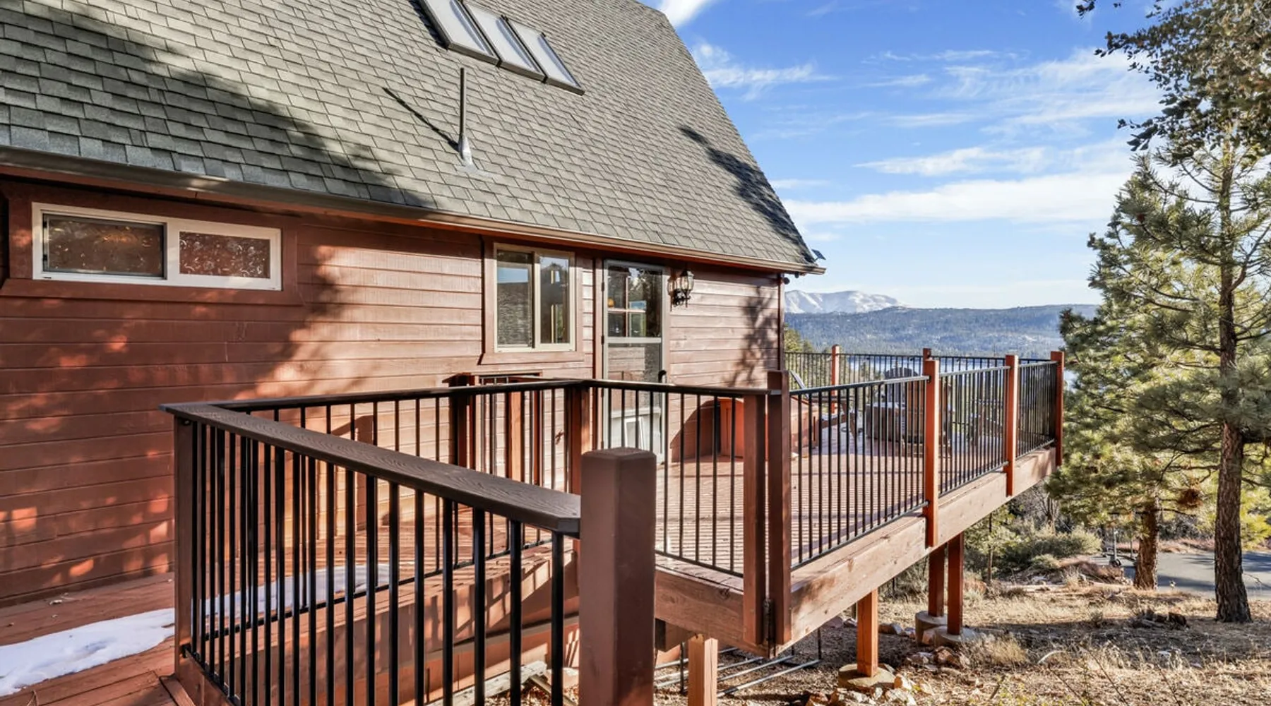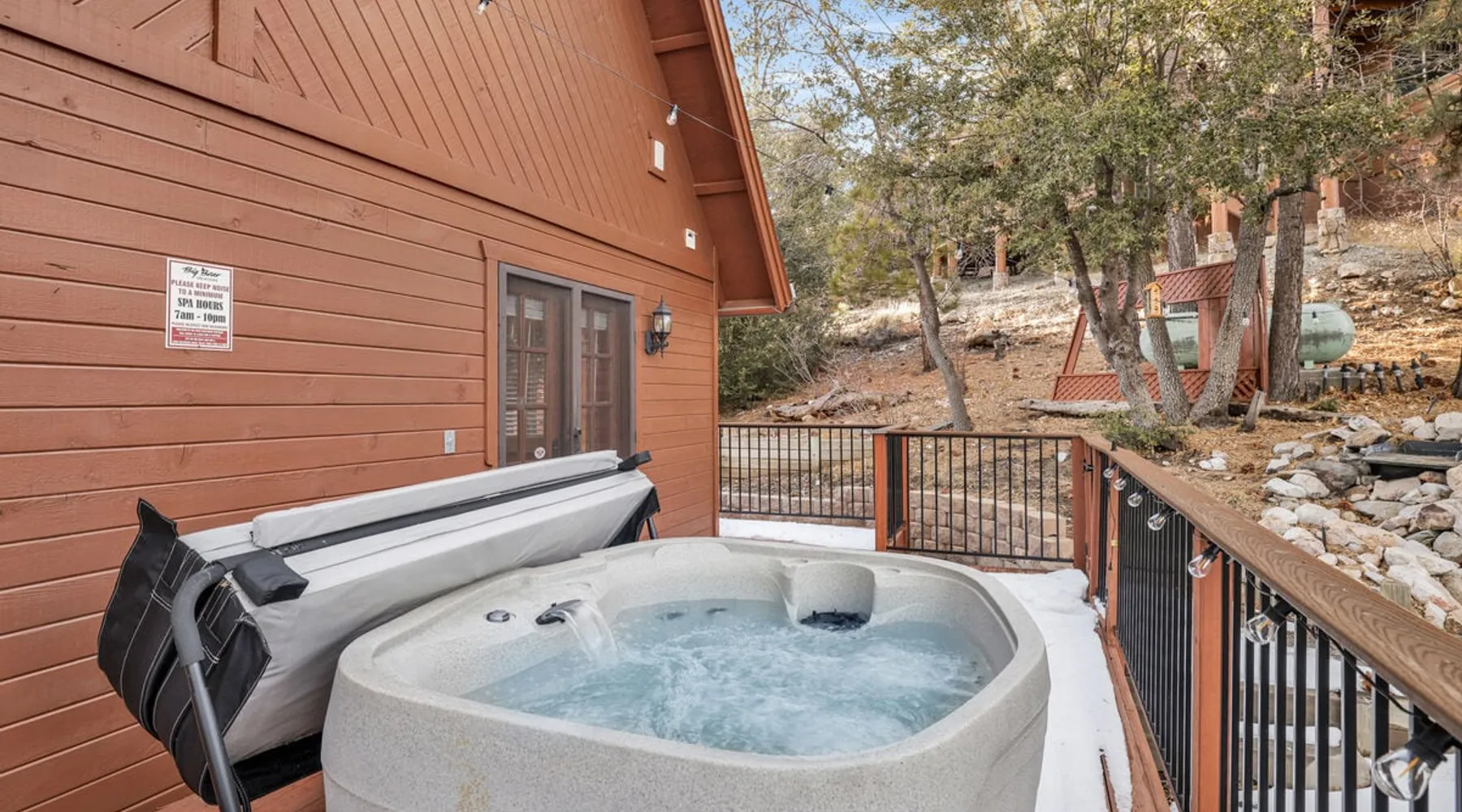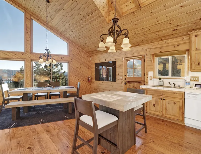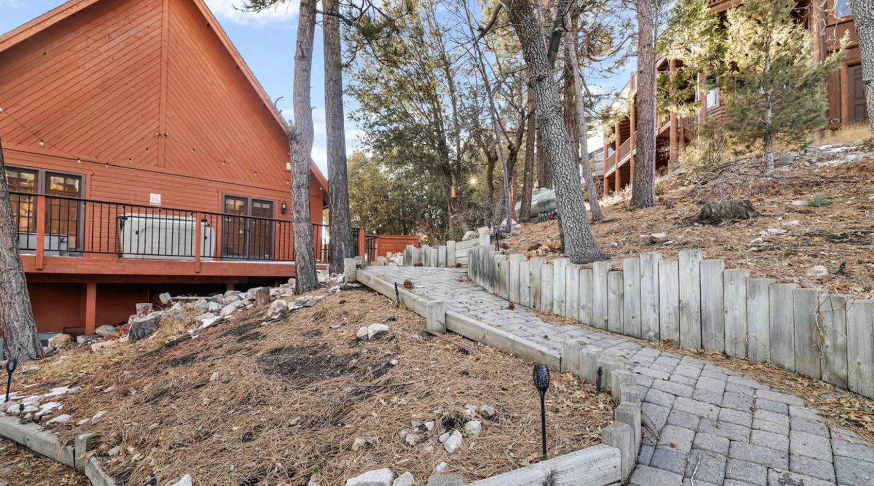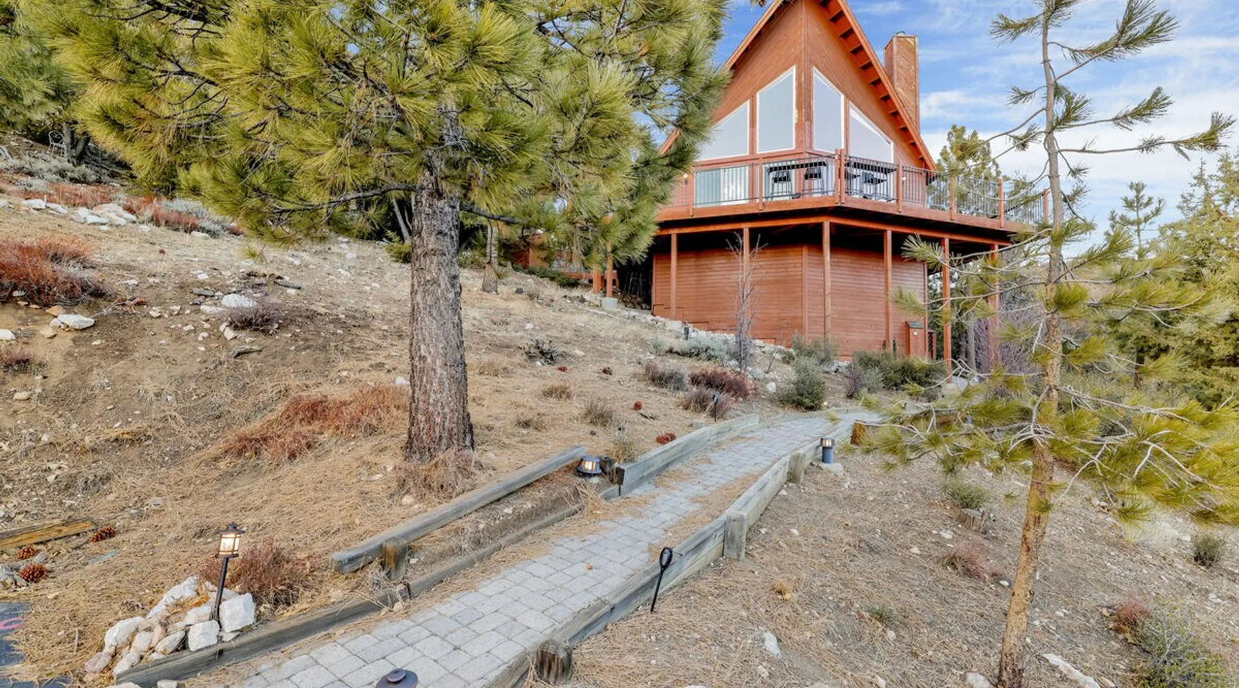 High-Top Lakeview Chateau | Relaxing Modern Fawnskin Retreat Welcome to High-Top Lakeview Chateau, your mountain getaway nestled in the pines above Big Bear Lake on the serene North Shore. This charming cabin is the perfect spot for a family vacation or a getaway with friends, offering a relaxing retreat any time of the year. With everything you need to create lifelong memories, this is the ideal destination for your next mountain escape. The space Step inside and take in breathtaking panoramic views of the lake, forest, and valley through floor-to-ceiling windows that fill the open living space with natural light. Cozy up by the wood-burning fireplace, cook in the modern kitchen equipped with a microwave, air fryer, and electric stovetop, or unwind surrounded by artisan furnishings and warm, inviting décor. Please note- NO OVEN- Each bedroom offers private deck access leading to a soothing outdoor spa, ideal for soaking under the stars after a day of exploring Big Bear’s scenic trails or slopes. Step outside to the wrap-around sun deck where high-top seating, solar lighting, and panoramic lake views create the perfect backdrop for morning coffee, sunset drinks, or al fresco dining. Just 10 minutes from The Village, ski resorts, and marinas, this peaceful Fawnskin retreat offers easy access to all of Big Bear’s best attractions while maintaining the serenity of a secluded mountain escape. Whether you’re visiting for a family adventure, romantic weekend, or a peaceful recharge, High-Top Lakeview Chateau offers the ultimate blend of luxury, nature, and comfort. Book your stay today and experience the best of Big Bear, where relaxation meets adventure! Sleeping Arrangements: Bedroom 1: Queen Bed, Deck Access — Single Level Bedroom 2: Queen Bed + Twin Bed, Deck Access — Single Level Bathroom Arrangements: Hallway Full Bath — Single Level Hallway 3/4 Bath (Shower Only) — Single Level Sleeps 5 2-Car Driveway Parking (Garage not accessible to guests) 2 Pets Welcome w/ Additional Fee 1,260 Square Feet County Permit #: CESTRP-2025-00067 Guest access Once checked in, guests can enjoy sole access to their private property for the duration of their booked dates. Registration Details CESTRP-2025-00067