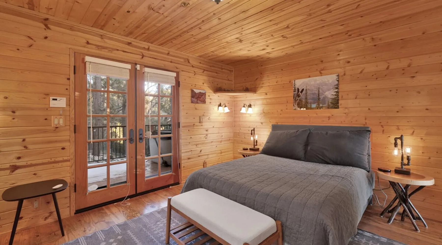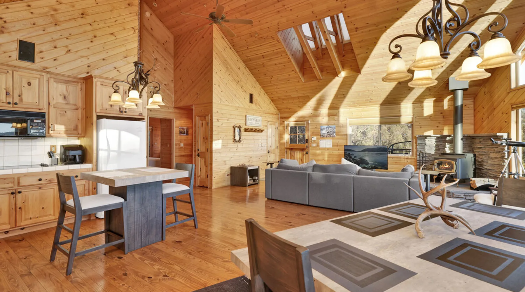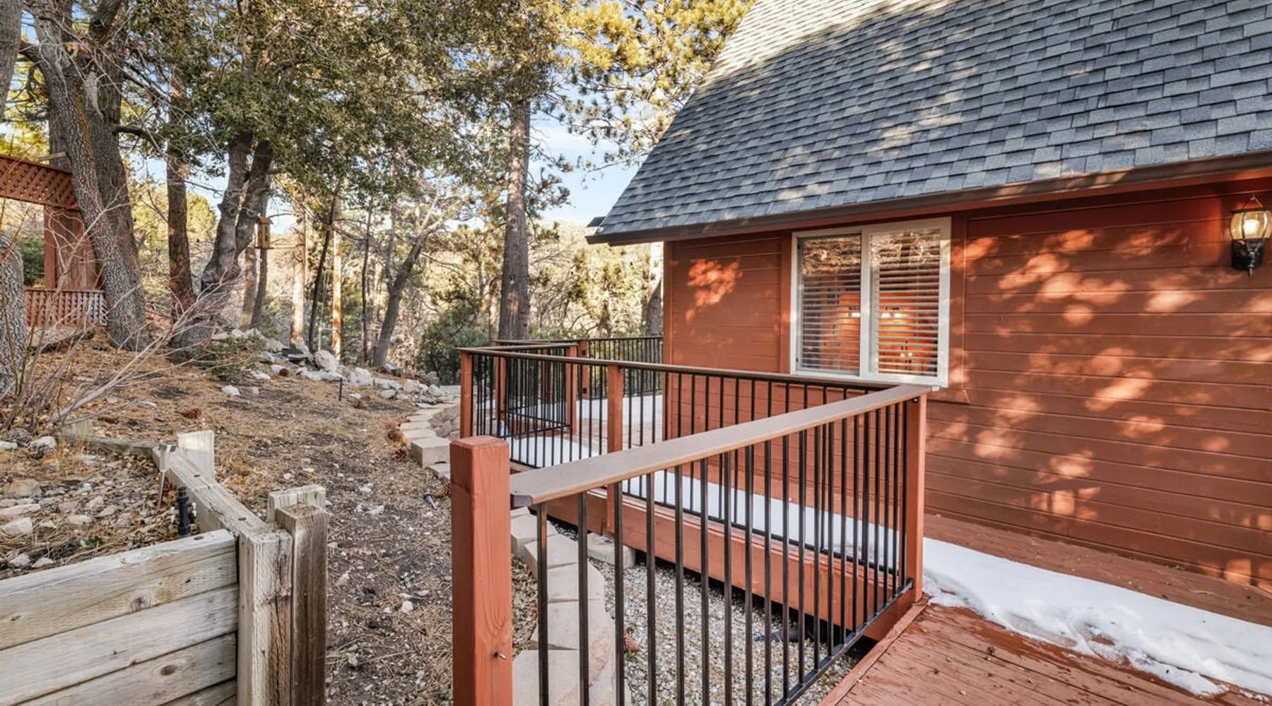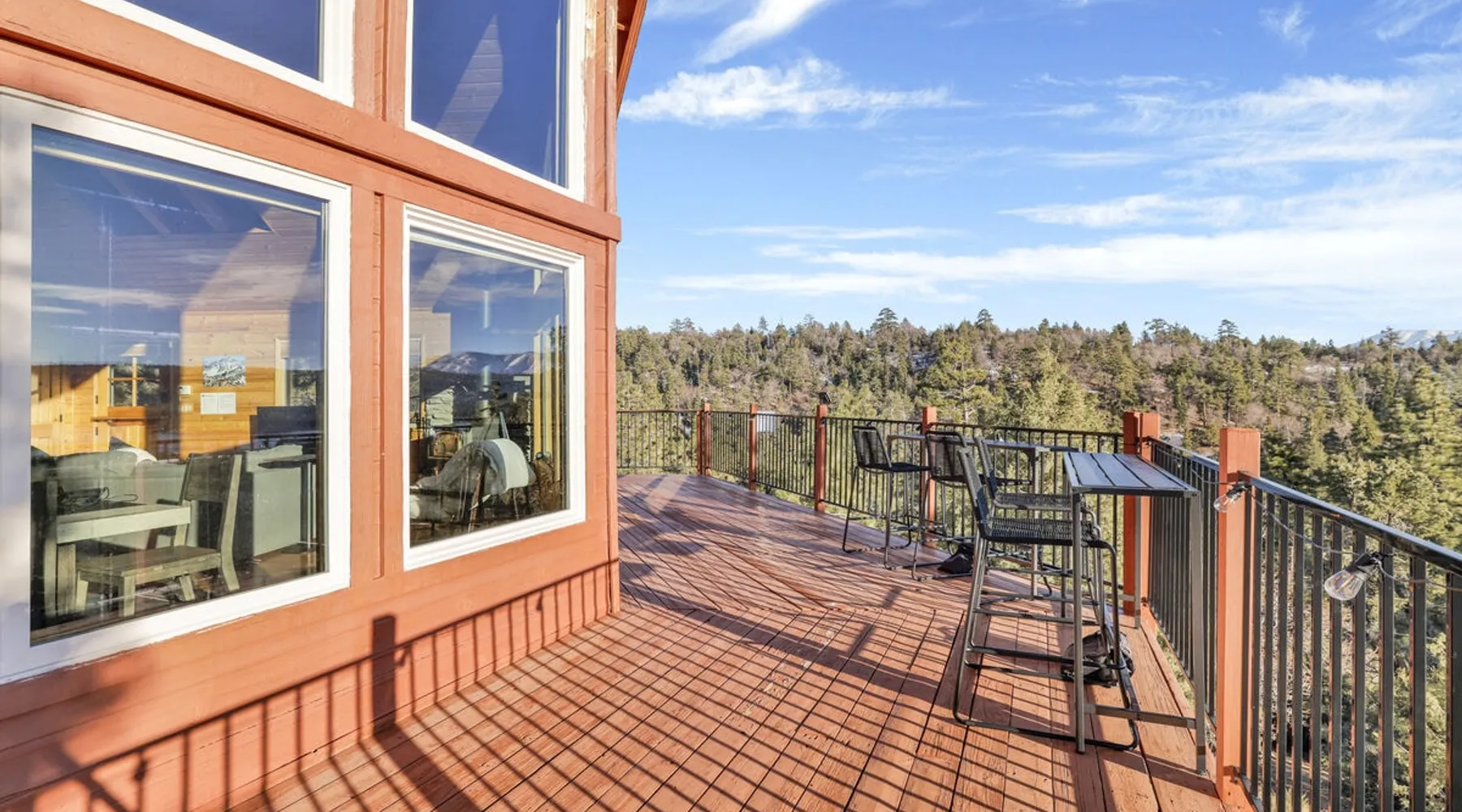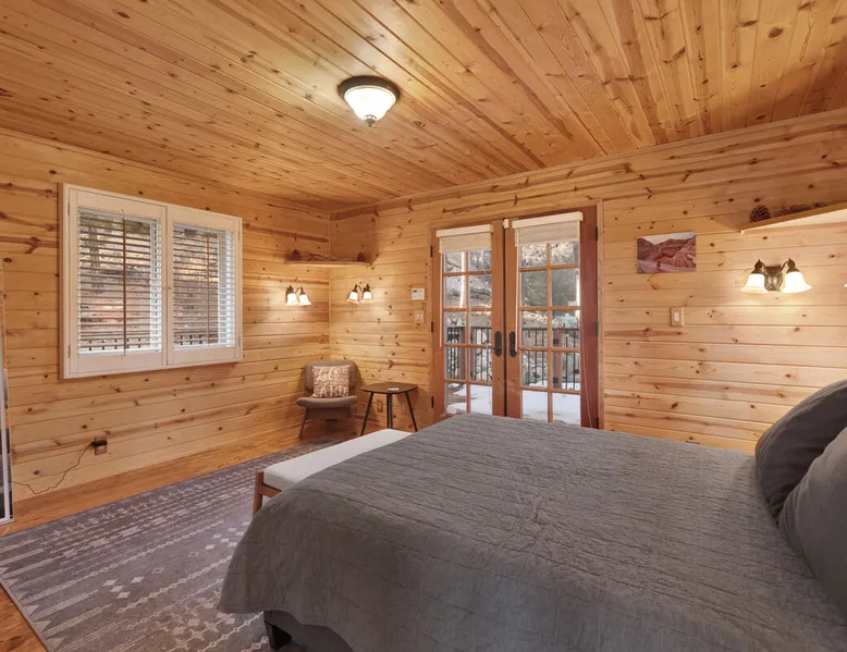 High-Top Lakeview Chateau | Relaxing Modern Fawnskin Retreat Welcome to High-Top Lakeview Chateau, your mountain getaway nestled in the pines above Big Bear Lake on the serene North Shore. This charming cabin is the perfect spot for a family vacation or a getaway with friends, offering a relaxing retreat any time of the year. With everything you need to create lifelong memories, this is the ideal destination for your next mountain escape. The space Step inside and take in breathtaking panoramic views of the lake, forest, and valley through floor-to-ceiling windows that fill the open living space with natural light. Cozy up by the wood-burning fireplace, cook in the modern kitchen equipped with a microwave, air fryer, and electric stovetop, or unwind surrounded by artisan furnishings and warm, inviting décor. Please note- NO OVEN- Each bedroom offers private deck access leading to a soothing outdoor spa, ideal for soaking under the stars after a day of exploring Big Bear’s scenic trails or slopes. Step outside to the wrap-around sun deck where high-top seating, solar lighting, and panoramic lake views create the perfect backdrop for morning coffee, sunset drinks, or al fresco dining. Just 10 minutes from The Village, ski resorts, and marinas, this peaceful Fawnskin retreat offers easy access to all of Big Bear’s best attractions while maintaining the serenity of a secluded mountain escape. Whether you’re visiting for a family adventure, romantic weekend, or a peaceful recharge, High-Top Lakeview Chateau offers the ultimate blend of luxury, nature, and comfort. Book your stay today and experience the best of Big Bear, where relaxation meets adventure! Sleeping Arrangements: Bedroom 1: Queen Bed, Deck Access — Single Level Bedroom 2: Queen Bed + Twin Bed, Deck Access — Single Level Bathroom Arrangements: Hallway Full Bath — Single Level Hallway 3/4 Bath (Shower Only) — Single Level Sleeps 5 2-Car Driveway Parking (Garage not accessible to guests) 2 Pets Welcome w/ Additional Fee 1,260 Square Feet County Permit #: CESTRP-2025-00067 Guest access Once checked in, guests can enjoy sole access to their private property for the duration of their booked dates. Registration Details CESTRP-2025-00067