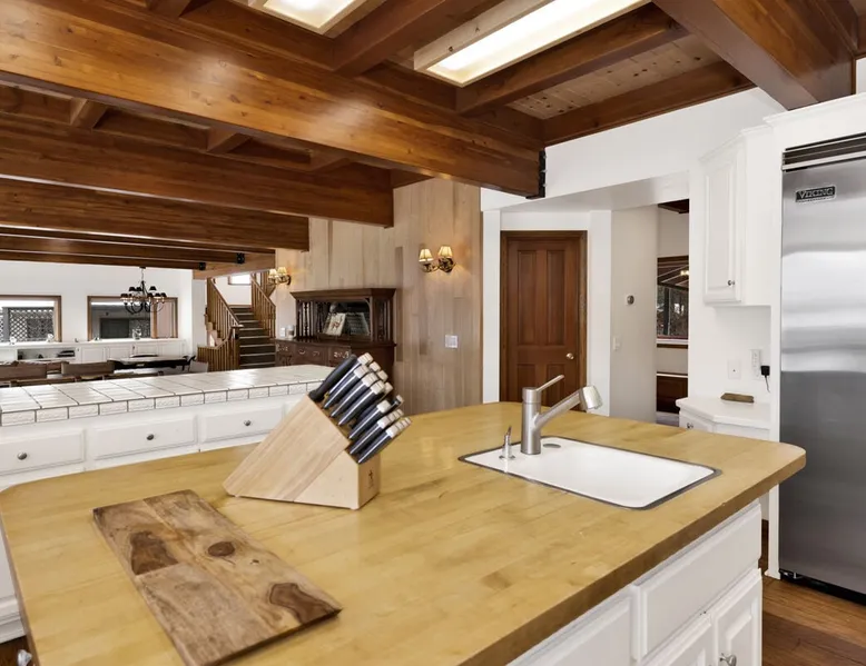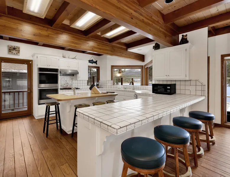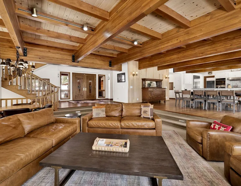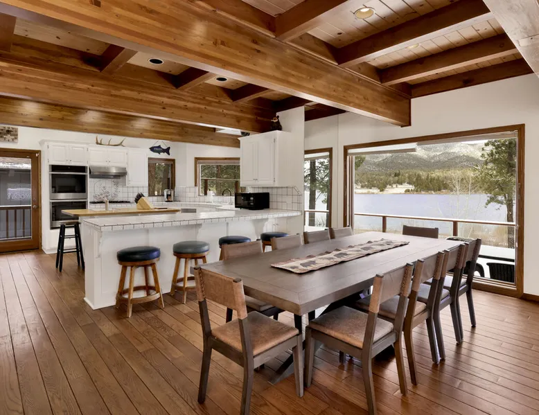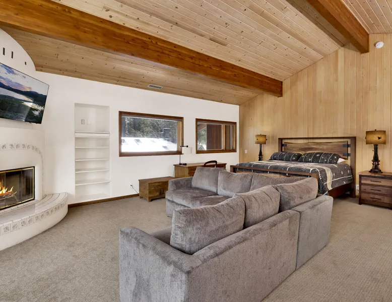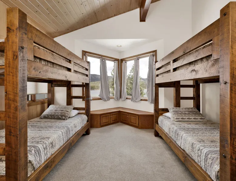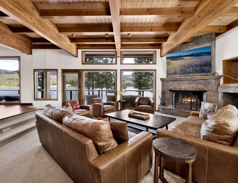 Bear Lake Lodge Lakefront | Incredible Lake House Chalet Welcome to Bear Lake Lodge! This centrally located Eagle Point lakefront chalet is custom built from the ground up with your vacation stay in mind. Boasting spectacular lake views from every room and an incredible floor plan, this home provides plenty of room for families, friends, corporate retreats, and entertaining within an incredible lakefront setting. Sitting within minutes to the slopes, Village shops, and local Big Bear marinas. The space Bear Lake Lodge Lakefront | Incredible Lake House Chalet Welcome to Bear Lake Lodge! This centrally located Eagle Point lakefront chalet is custom built from the ground up with your vacation stay in mind. Boasting spectacular lake views from every room and an incredible floor plan, this home provides plenty of room for families, friends, corporate retreats, and entertaining within an incredible lakefront setting. Sitting within minutes to the slopes, Village shops, and local Big Bear marinas, you have the best of Big Bear right at your fingertips from here! Including three levels of comfortable living space, your group has convenient access to 5 spacious bedrooms, 6 modern bathrooms, a fun packed game room, plus a gourmet kitchen and formal dining area- there is an abundance of space to spend time making memories with your loved ones. Enjoy the open floor plan showcasing the lodge style furnishings, stone fireplaces, knotty pine open beamed cathedral ceilings, hardwood floors, and the most amazing views of Big Bear Lake! Three levels of spacious sun decks wrap the property overlooking Big Bear Lake, making for the ideal place to relax against the great outdoors and socialize together under the eagle-perch pines. You'll love soaking your muscles in the private 8-person spa on the lower deck as you take in the view plus a private boat dock is available in the warmer summer months. Bear Lake Lodge is a spectacular custom home, perfect for any occasion to the mountains, and ready for your next Big Bear vacation! Sleeping Arrangements: Bedroom 1: King Bed, Fireplace, Private Balcony, Private Bath- Upstairs 3rd Level Bedroom 2: King Bed, Lake Views, Private Bath- Upstairs 3rd Level Bedroom 3: Two Twin/Twin Bunk Beds, Private Bath- Upstairs 3rd Level Bedroom 4: Two Twin/Twin Bunk Beds- Downstairs Lower Level Bedroom 5: King Bed + Twin/Twin Bunk Bed, Private Bath- Downstairs Lower Level Bathroom Arrangements: Private Full Bath- Bedroom 1- Upstairs 3rd Level Hallway 3/4 Bath- Upstairs 3rd Level Private Full Bath- Bedroom 2- Upstairs 3rd Level Private Bath- Bedroom 3- Downstairs Lower Level Private Bath- Bedroom 5- Downstairs Lower Level Hallway Half Bath- Middle Entry Level -Sleeps 14- 12 Adults Max + 2 Kids -5 Car Driveway Parking -2 pet's max -5,641 Square Feet -City Permit #: VRR-2025-0439 Guest access Once checked in, guests can enjoy sole access to their private property for the duration of their booked dates. Registration Details 2025-0439