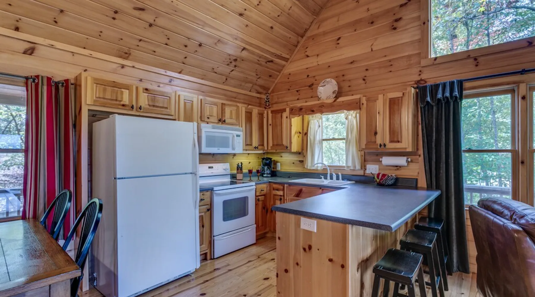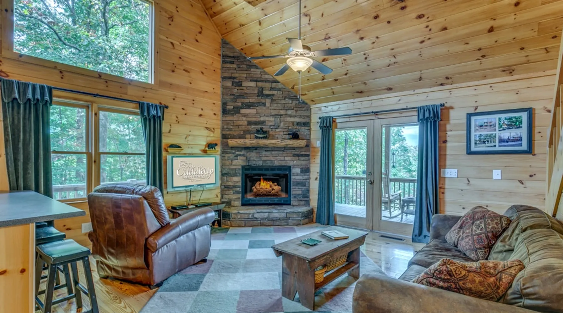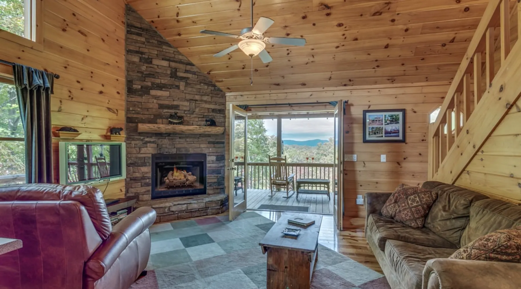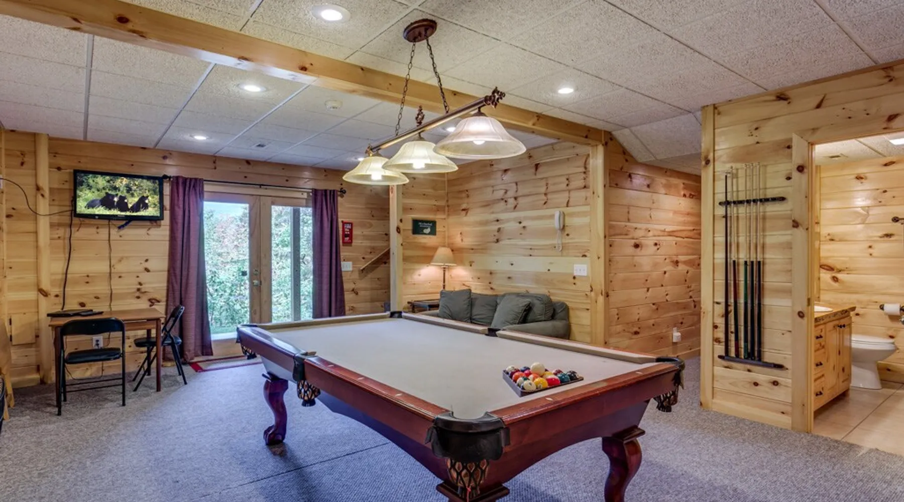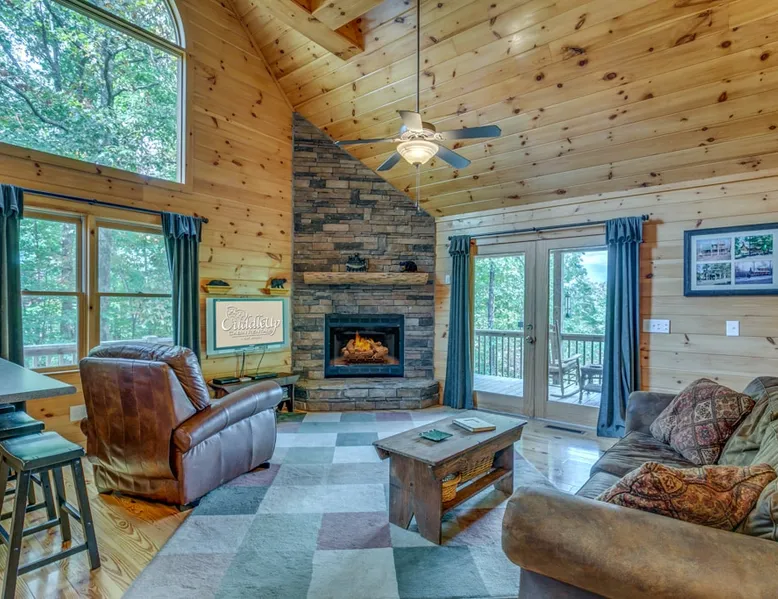 Treetops | Hot Tub | Fire Pit | Pool Table The space When it comes to a fantastic location, this cabin rental near the Ocoee River and McCaysville gives you access to whitewater, tubing, trout fishing, mountain bike, hiking trails, and joys of being cozy in a comfortable accommodation. You are under 10 minutes to the Ocoee River and white water rafting and this rental cabin is large enough to comfortably accommodate up to 10 guests. Your family or small group will enjoy the mountain views and the mountain community of Hideaway Falls. Although its location is one of its greatest amenities, this cabin rental also combines the classic charm of a mountain cabin with all the luxury guests crave. Basic amenities include WiFi, large flat screen televisions, a full size pool table, gas fireplace, private screened porch and stacked stone outdoor fire pit. Traditional leather sofas and cabin decor give Treetops a cozy ambiance with open spaces with sunlight streaming through the large windows. Each bedroom in this Ocoee River cabin rental features French doors that open wide to to the fresh air and mountain views. Whether you choose to enjoy the view from your private bedroom or you choose to take advantage of the wrap around porch, you have everything you need to make the most of the scenic views. Spend an afternoon on the Ocoee River, rafting or fishing, or hiking along the Tanasi Trail System. You might like to go horseback riding too with Blanche Manor. Before you return to civilization, spend some time enjoying the fresh pie at the Cider House Cafe. ** Please Note: For stays longer than 14 days, a mandatory mid-stay cleaning is required. This cleaning will be scheduled during your stay and is charged at the same rate as the standard cleaning fee. If the property requires additional cleaning due to excessive mess or damage, extra charges may apply.** Guests are required to sign a Rental Agreement within 48 hours of booking and prior to check-in. Other things to note test local charges