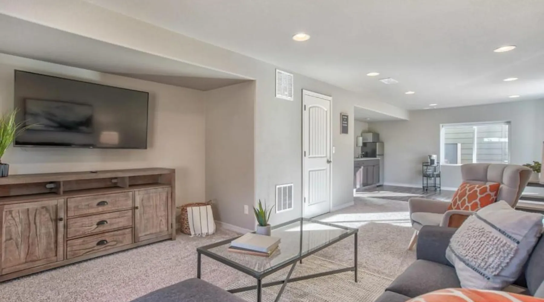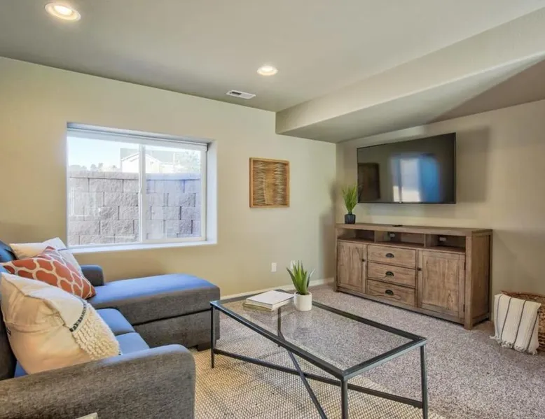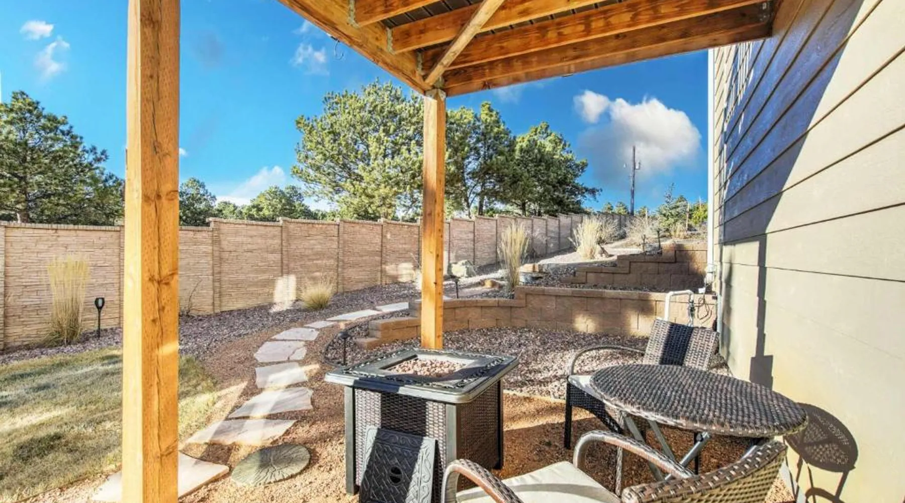 Comfortable Living: Lindenmere Retreat Private Basement w Fire Pit in Monument offers a holiday home with one bedroom and a living room. The property includes a fully equipped kitchen, air-conditioning, and a private entrance. Outdoor Amenities: Guests can enjoy a garden and a patio with a fire pit. Free WiFi is available throughout the property, ensuring connectivity during the stay. Convenient Facilities: The holiday home provides free on-site parking, a TV, and a dishwasher. Additional amenities include a tea and coffee maker, hairdryer, refrigerator, and microwave. Local Attractions: Located 27 mi from Colorado Springs Airport, the property is near attractions such as United States Air Force Academy (11 mi), Garden of the Gods (21 mi), and Cheyenne Mountain Zoo (27 mi). Featuring a private entrance, this air-conditioned apartment is consisted of of 1 living room, 1 separate bedroom and 1 bathroom with a bath and a hairdryer. In the kitchen, guests will find a refrigerator, a dishwasher, kitchenware and a microwave. Boasting a patio, this apartment also offers a tea and coffee maker, a high chair for children and a TV. The unit offers 2 beds.