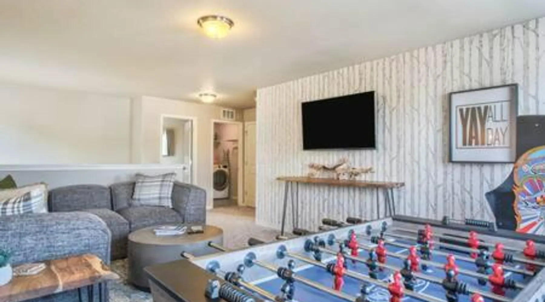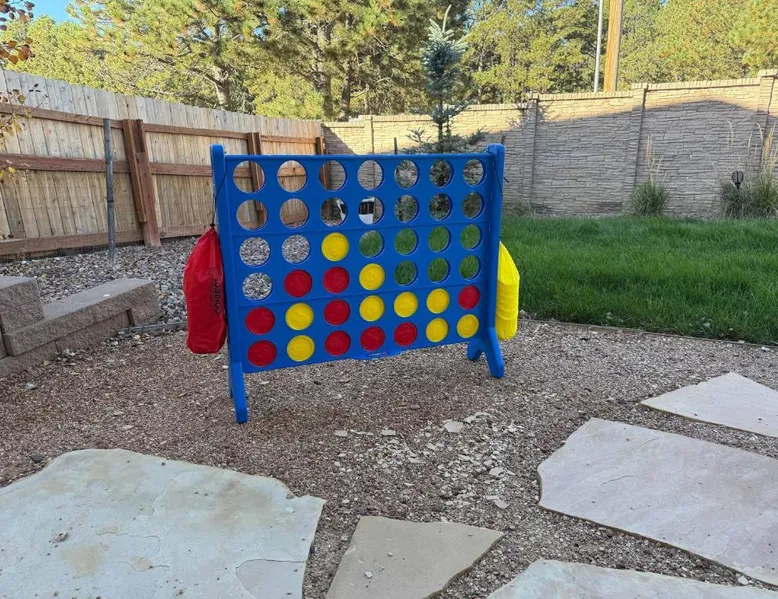 Spacious Holiday Home in Palmer Lake: The _Entire Home_Game Room_Basement_FirePit_ offers a spacious setting with five bedrooms and four bathrooms. The property includes a living room and a private entrance, ensuring comfort for all guests. Modern Amenities: Guests enjoy free WiFi, air-conditioning, and a fully equipped kitchen with a dishwasher, microwave, and oven. Additional amenities include a washing machine, patio, barbecue, and a fire pit for relaxation. Outdoor Spaces: The holiday home features a beautiful garden and a patio, perfect for outdoor activities. Free on-site parking is available for convenience. Nearby Attractions: Located 27 mi from Colorado Springs Airport, the property is close to attractions such as United States Air Force Academy (11 mi), Garden of the Gods (21 mi), and Cheyenne Mountain Zoo (27 mi). Featuring a private entrance, this air-conditioned villa consists of 1 living room, 5 separate bedrooms and 4 bathrooms with a bath and a hairdryer. Guests can make meals in the kitchen that is equipped with a stovetop, a refrigerator, a dishwasher and kitchenware. The spacious villa provides a washing machine, a tea and coffee maker, tumble dryer, a barbecue, as well as a TV with cable channels. The unit offers 6 beds.