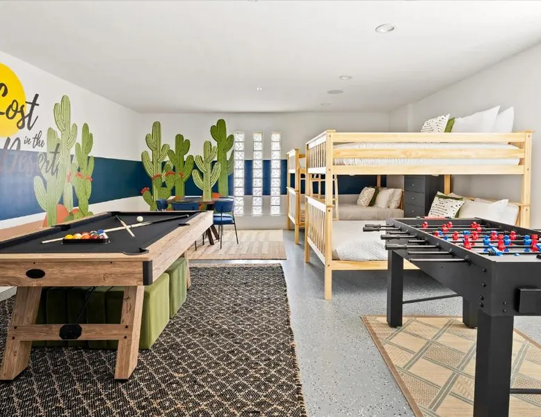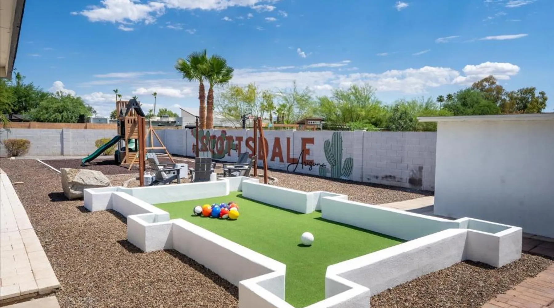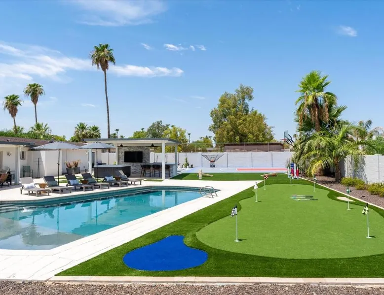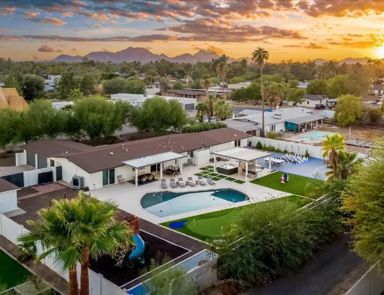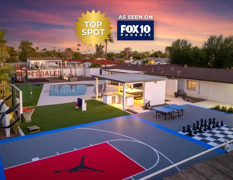 Spacious Accommodations: Sportscourt Pool Hot Tub Game Room Playground in Phenix offers a spacious holiday home with five bedrooms and three bathrooms. The property includes a fully equipped kitchen, dining area, and a private pool. Leisure Facilities: Guests can enjoy a spa and wellness center, outdoor swimming pool, and a hot tub. The property features a casino, waterpark, and games room, ensuring entertainment for all ages. Convenient Amenities: The holiday home provides free WiFi, air-conditioning, and a washing machine. Additional amenities include a patio, barbecue, and free on-site parking. Local Attractions: Located 1.9 mi from Scottsdale Airport, the property is close to attractions such as the Musical Instrument Museum (6.2 mi) and Phenix Convention Center (17 mi). This holiday home's standout features are the private pool and hot tub. Featuring a private entrance, this spacious holiday home also consists of 5 separate bedrooms and 3 bathrooms with a bath and a hairdryer. Guests will find a stovetop, a refrigerator, a dishwasher and kitchenware in the well-equipped kitchen. The holiday home also offers a barbecue. This holiday home features air conditioning, a washing machine, a TV and a patio. The unit offers 9 beds.